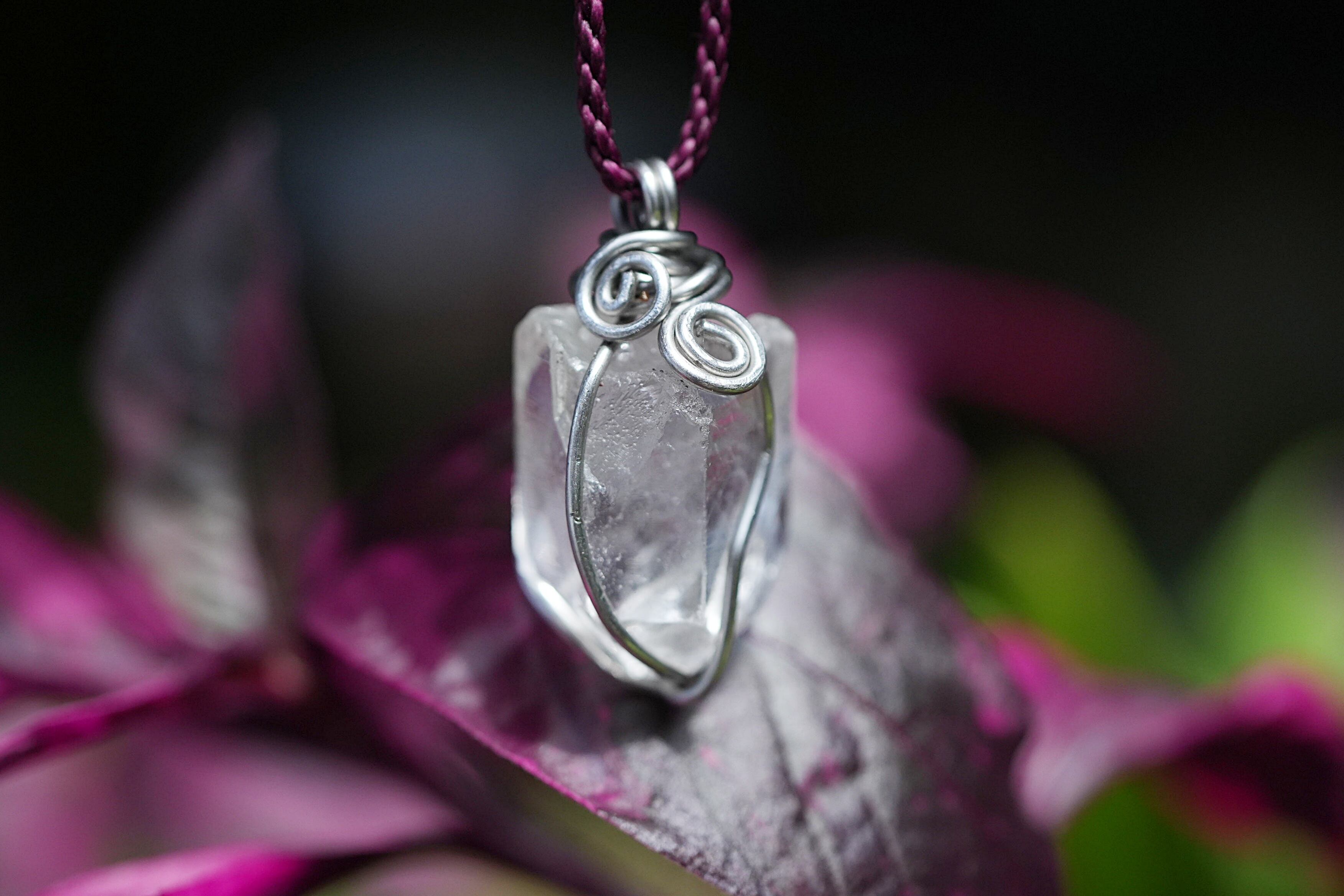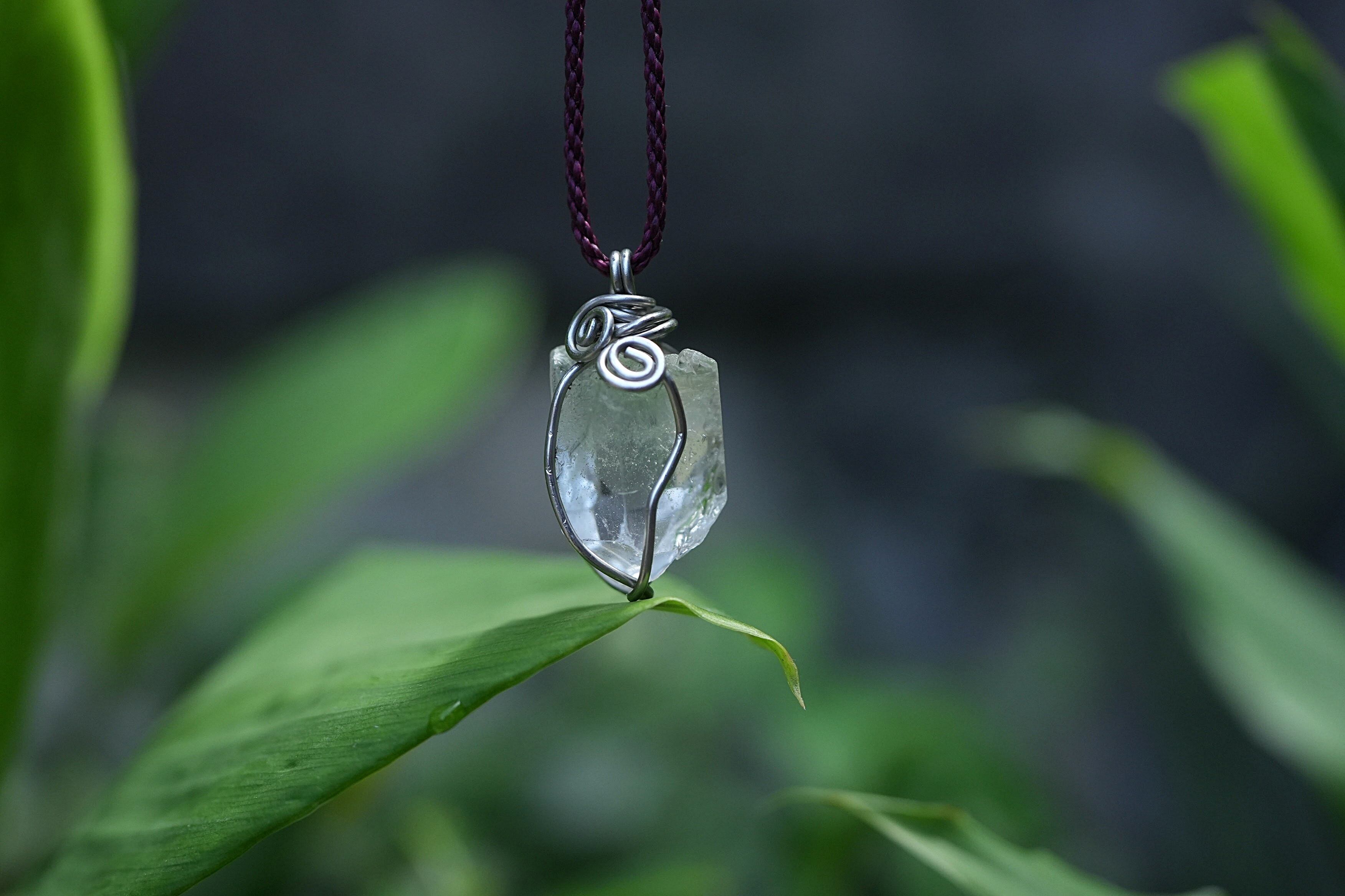 水晶原石を使用し、ワイヤーワークを施してペンダントトップに仕上げました。