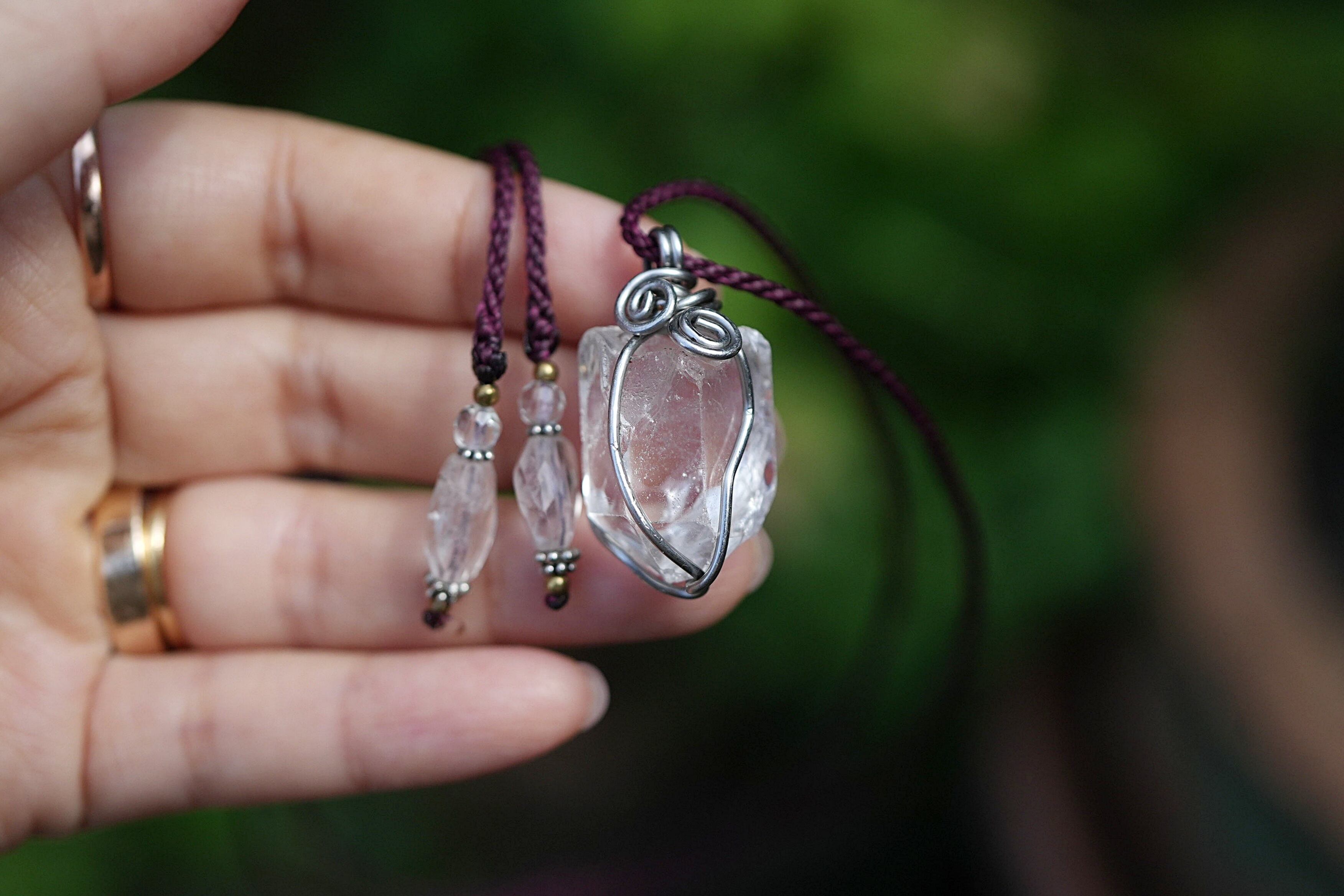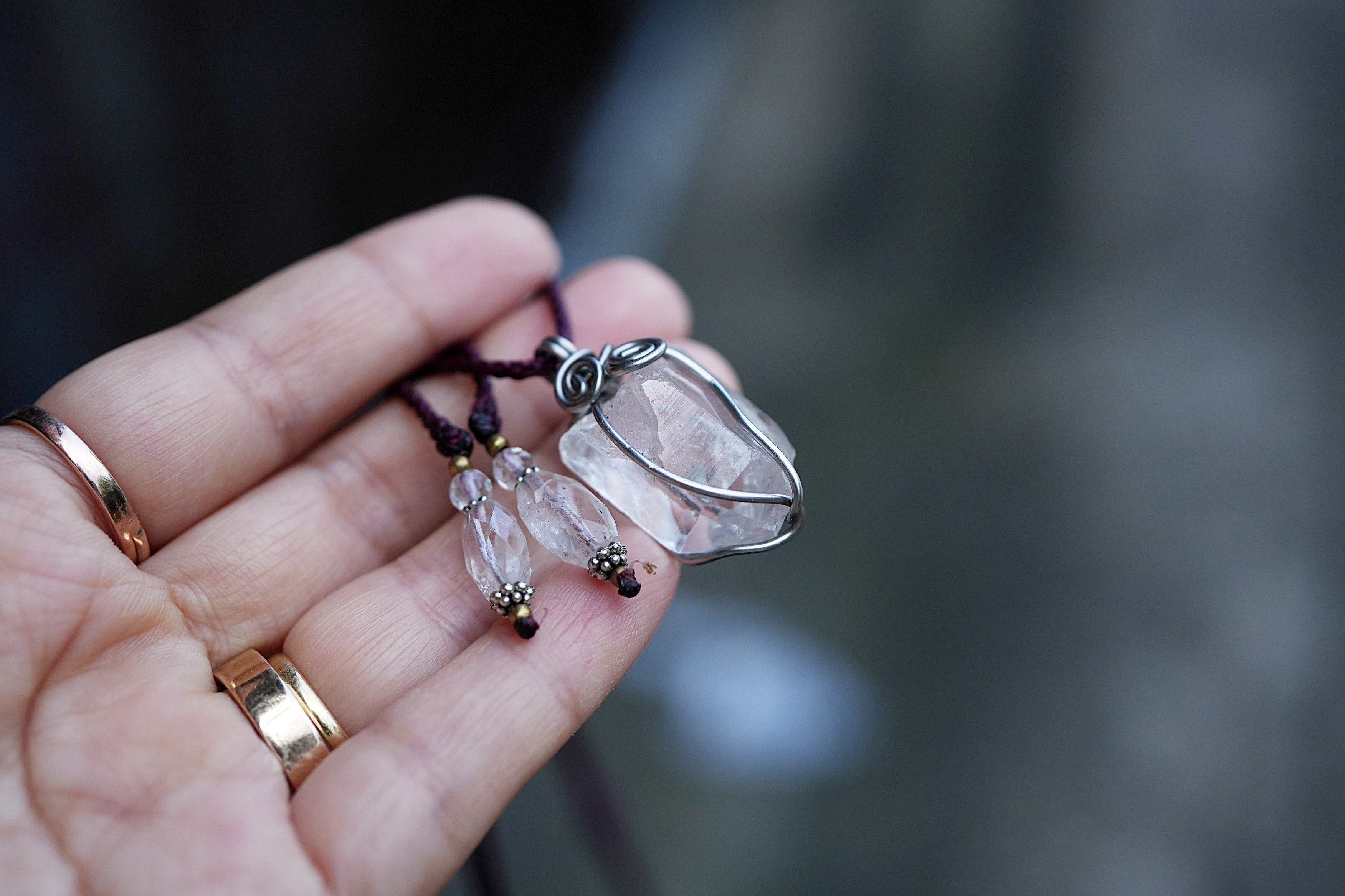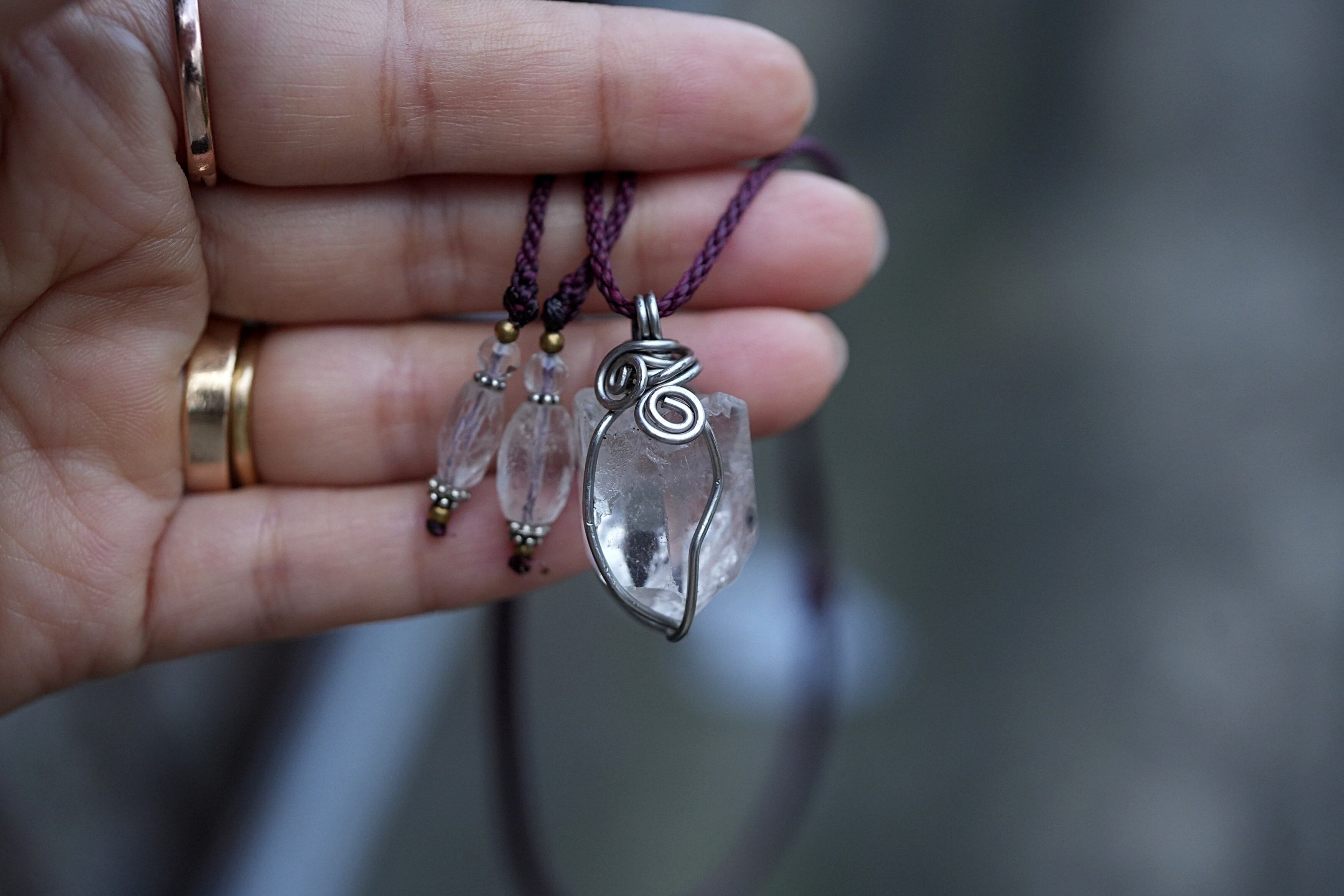 ★クリスタル原石 ワイヤーアートネックレス1648
