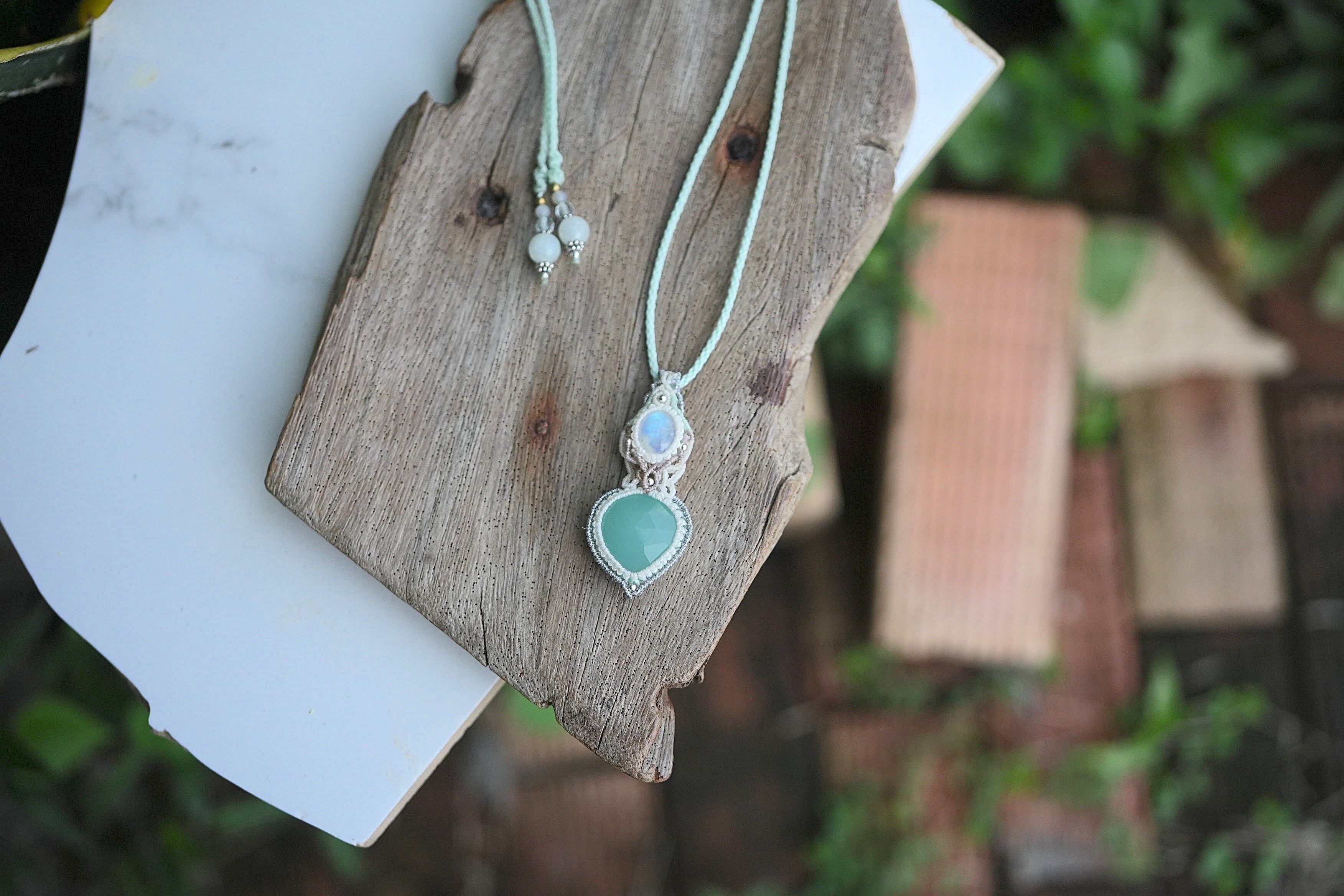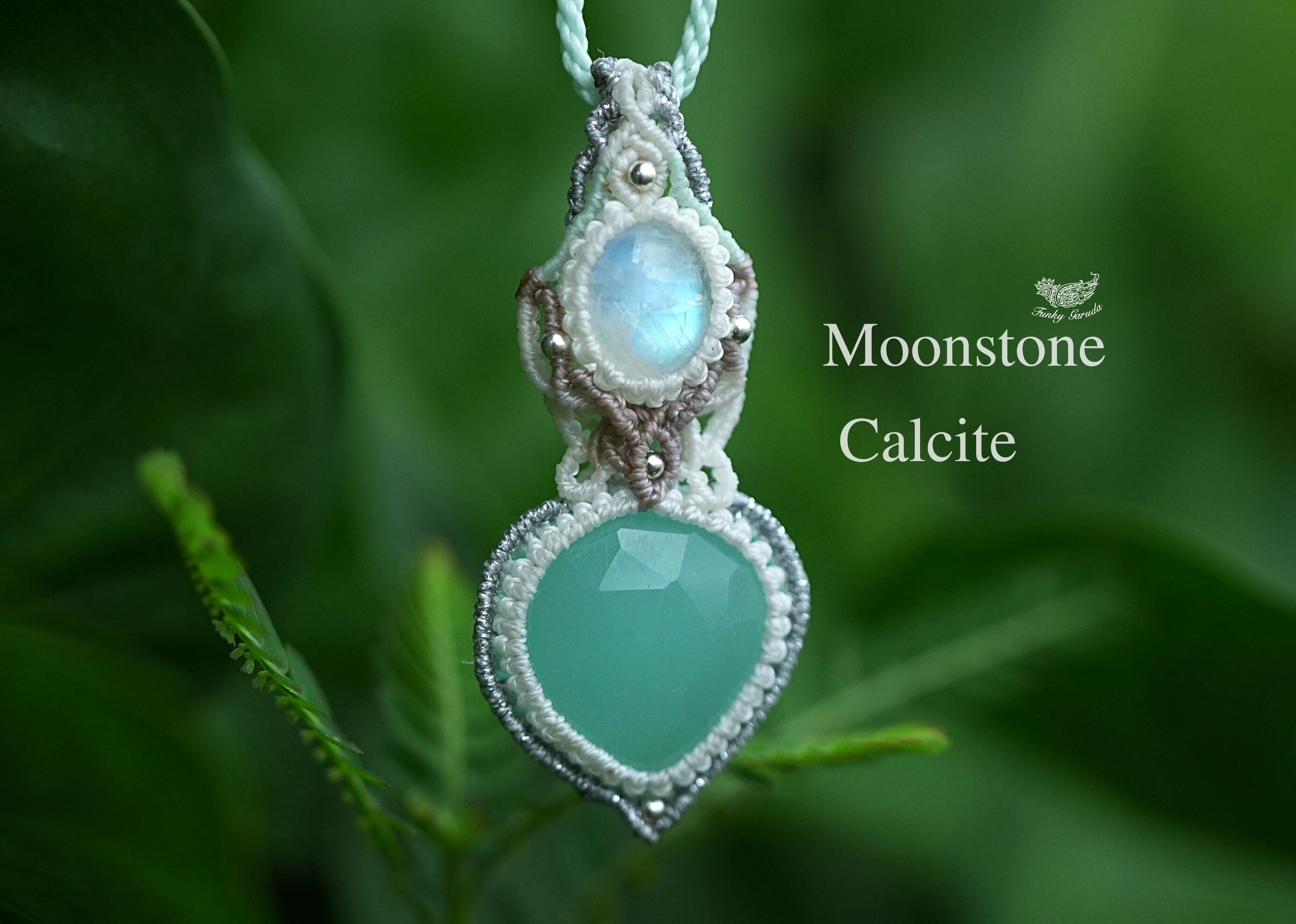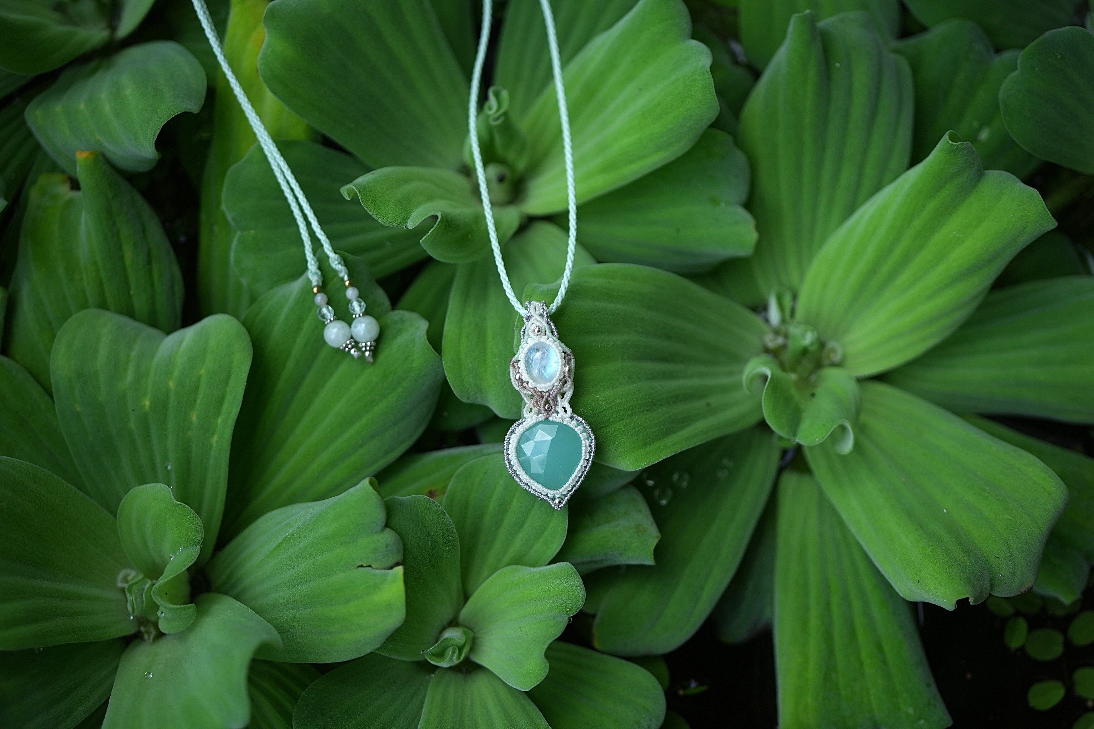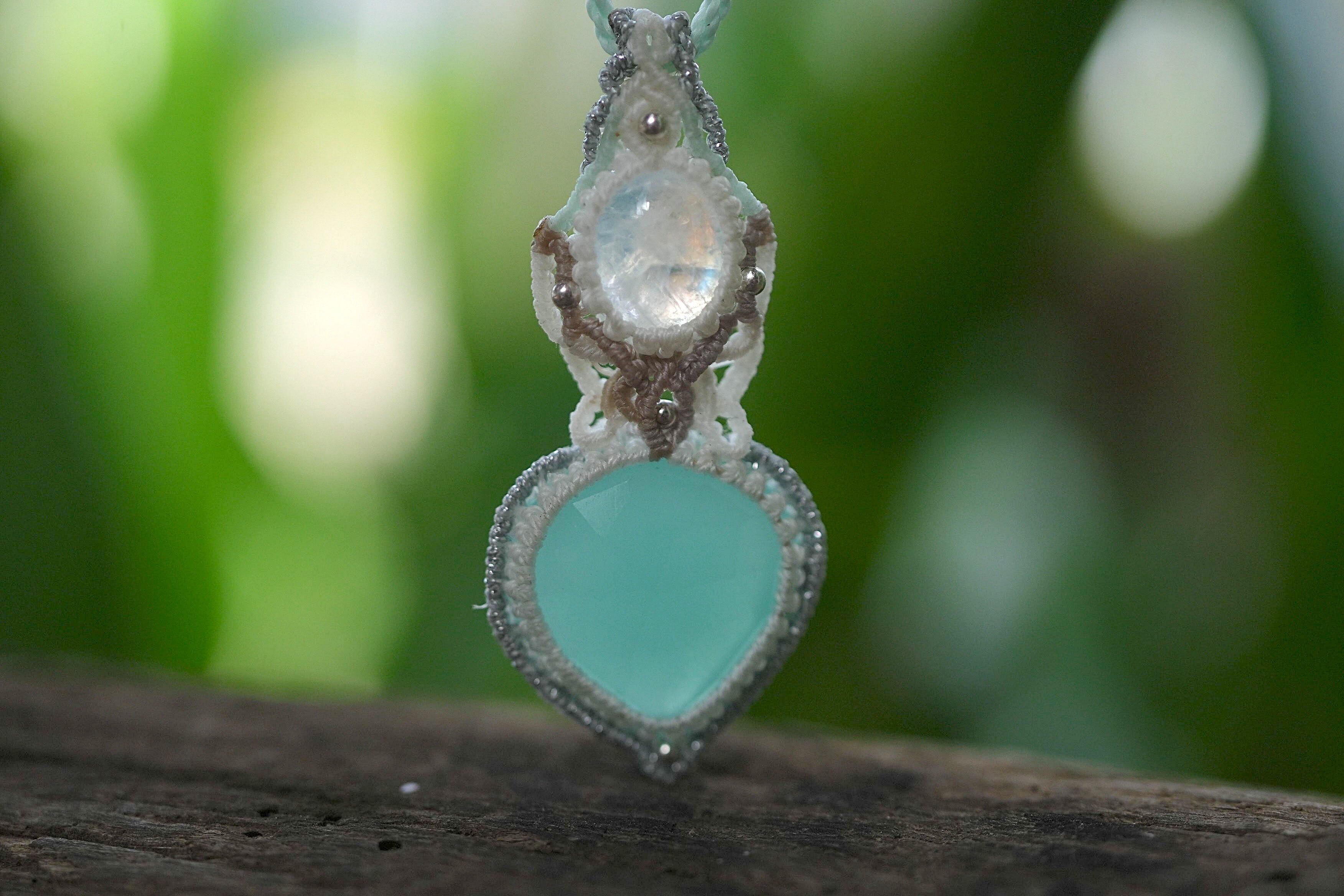 ミルキーなグリーンブルー★カット入りブルーカルサイト マクラメネックレス 1655