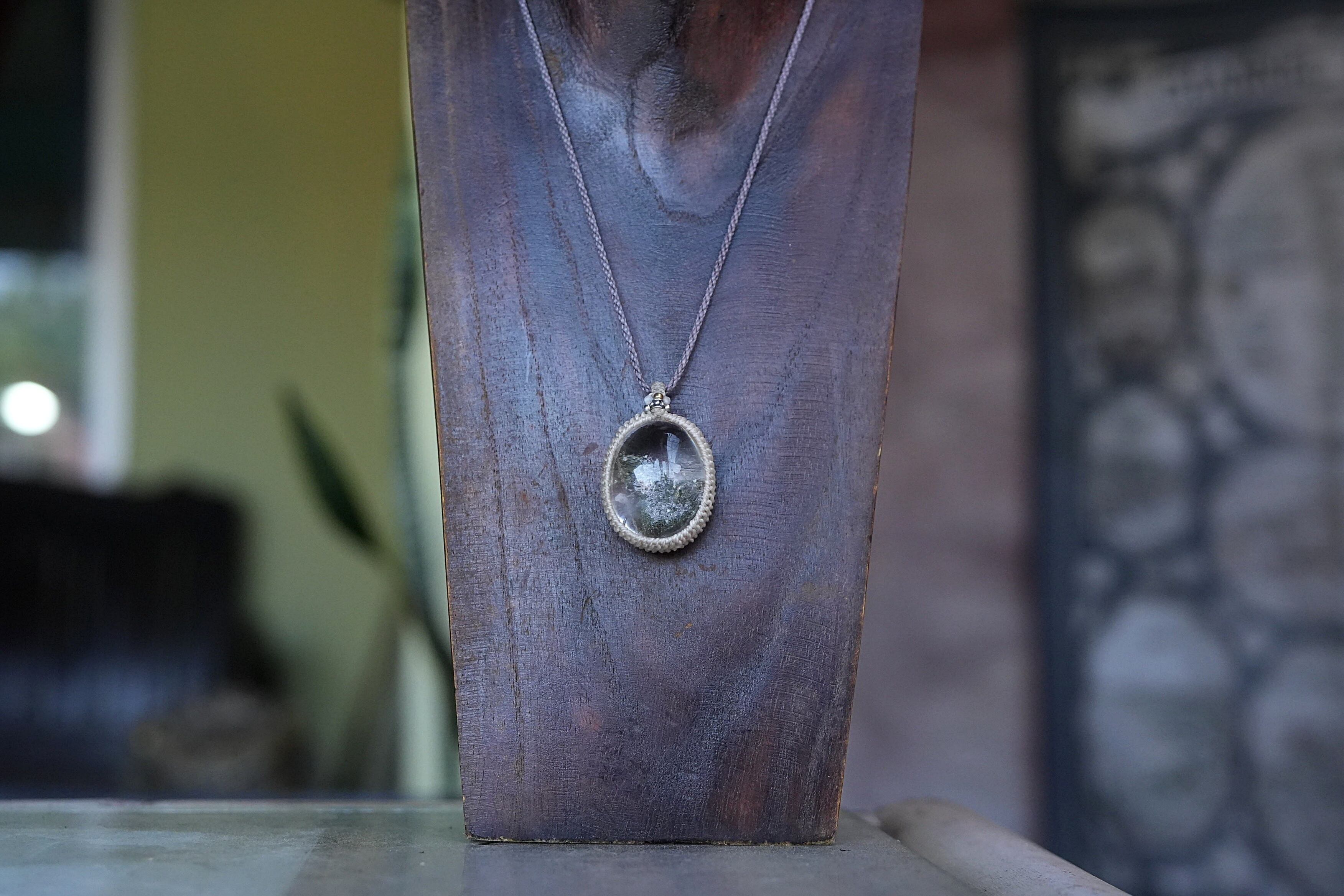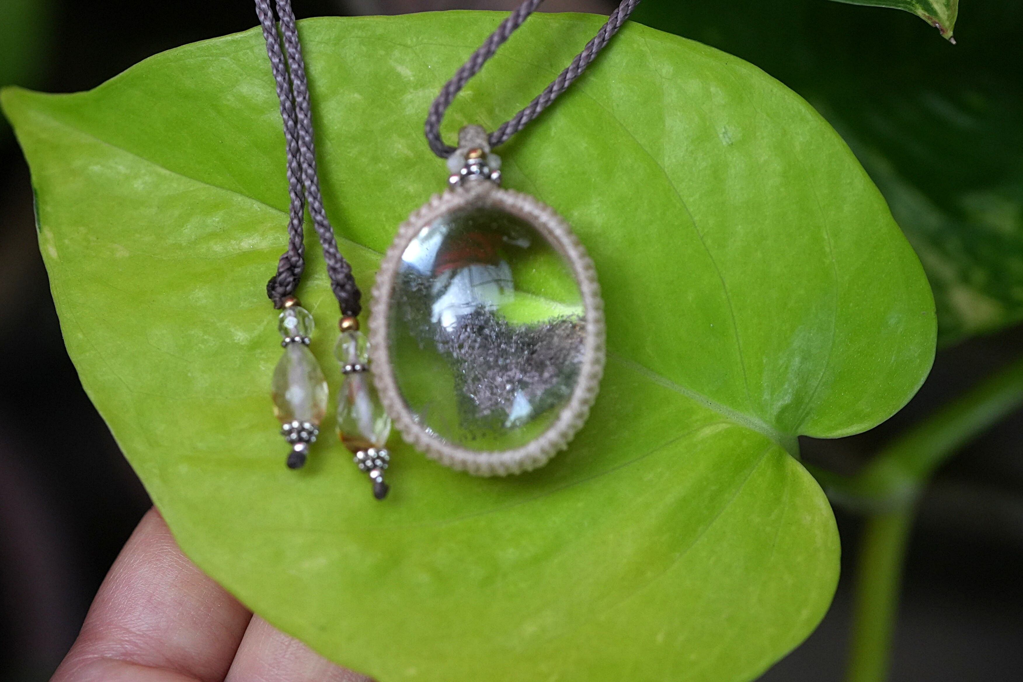 ◆このたびはダブグレイ、ナチュラルホワイト色の蝋引き糸を使用しマクラメ編み装飾を施しました。