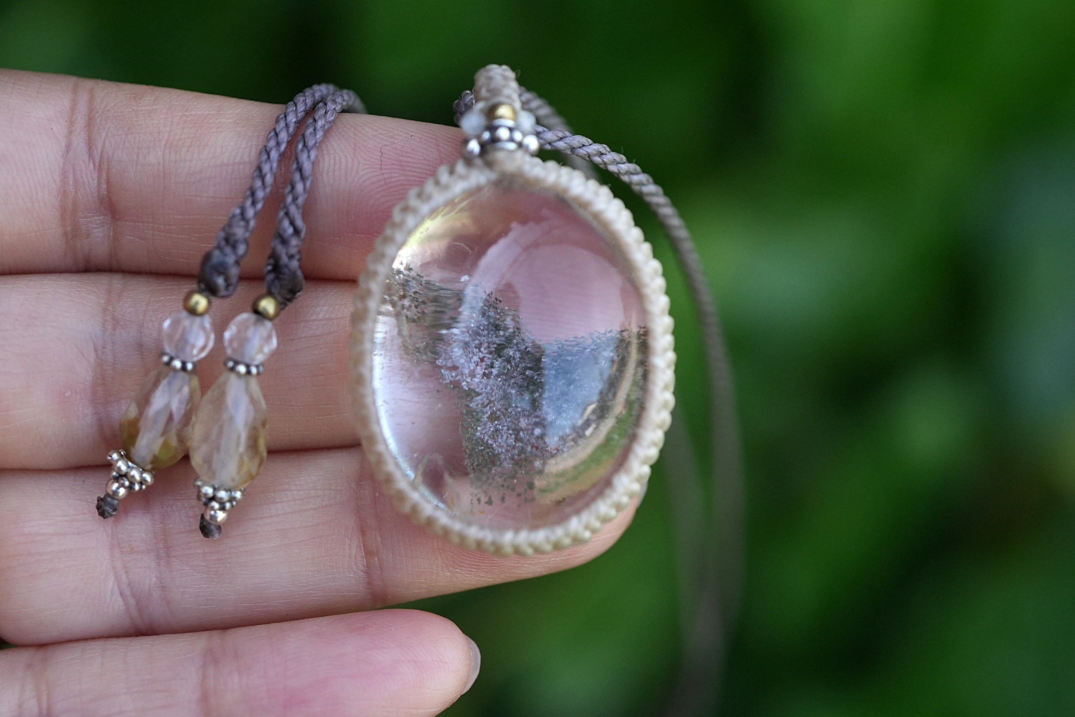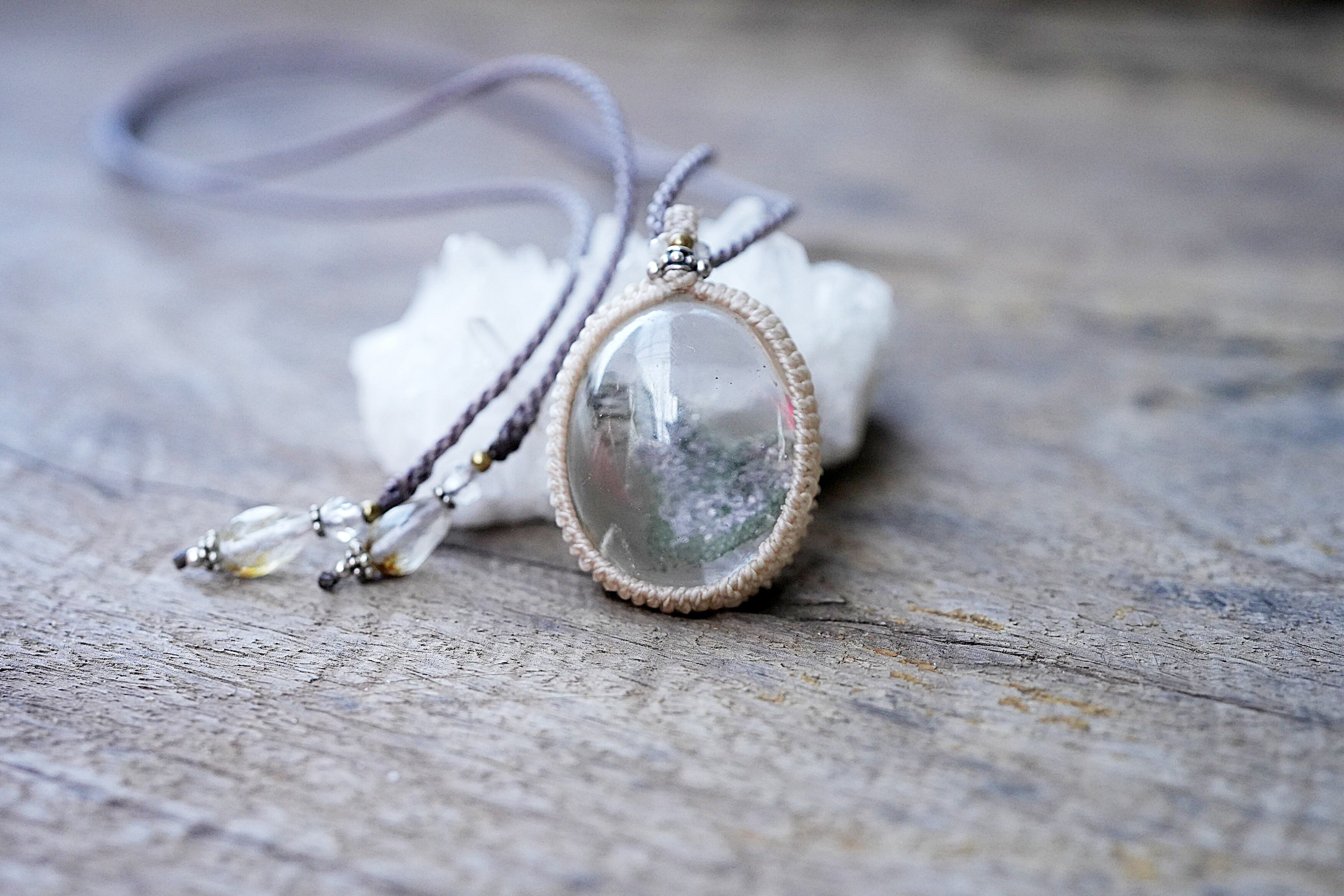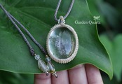 ピンクとグリーンの光シャワー★ガーデンクォーツ マクラメネックレス1677