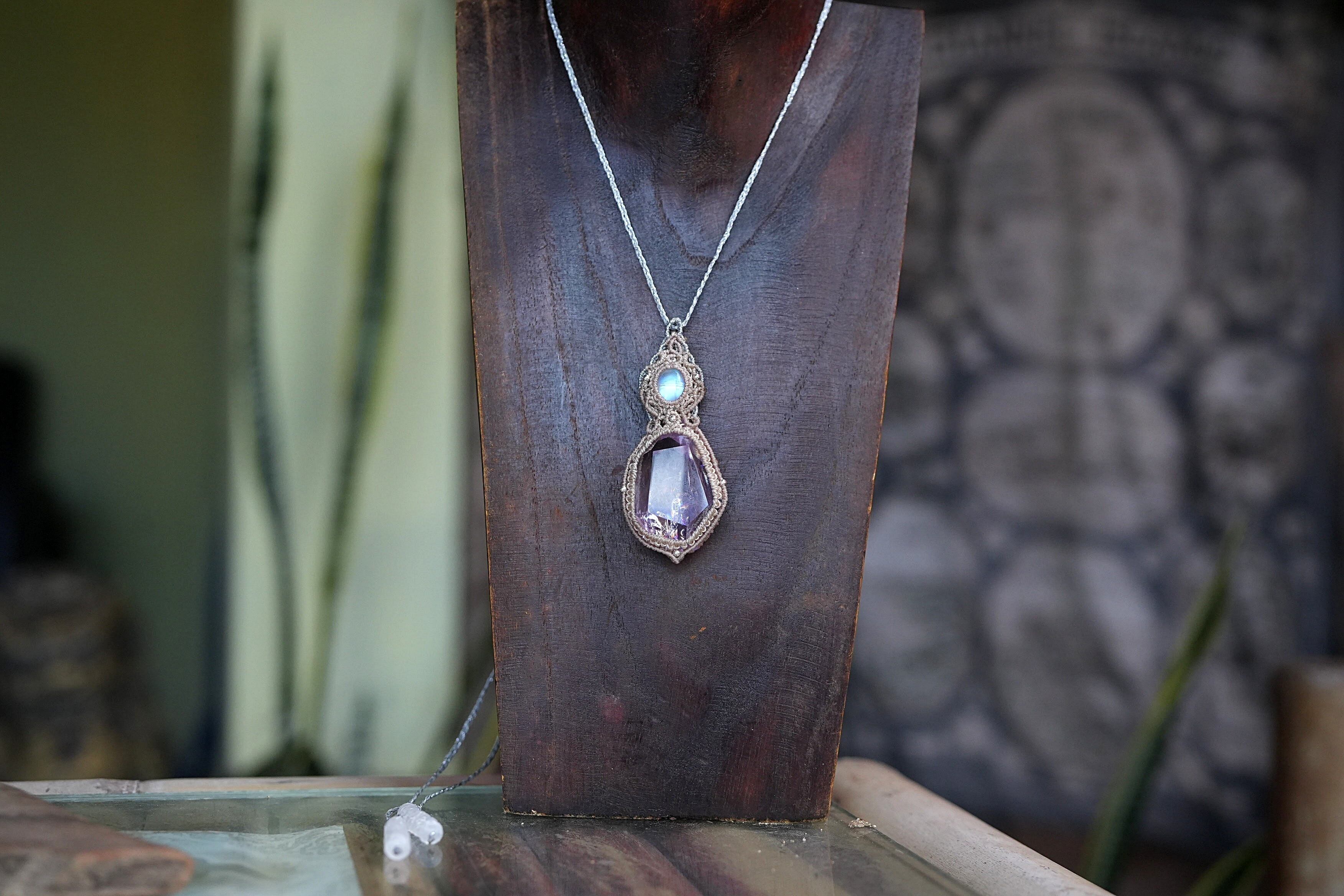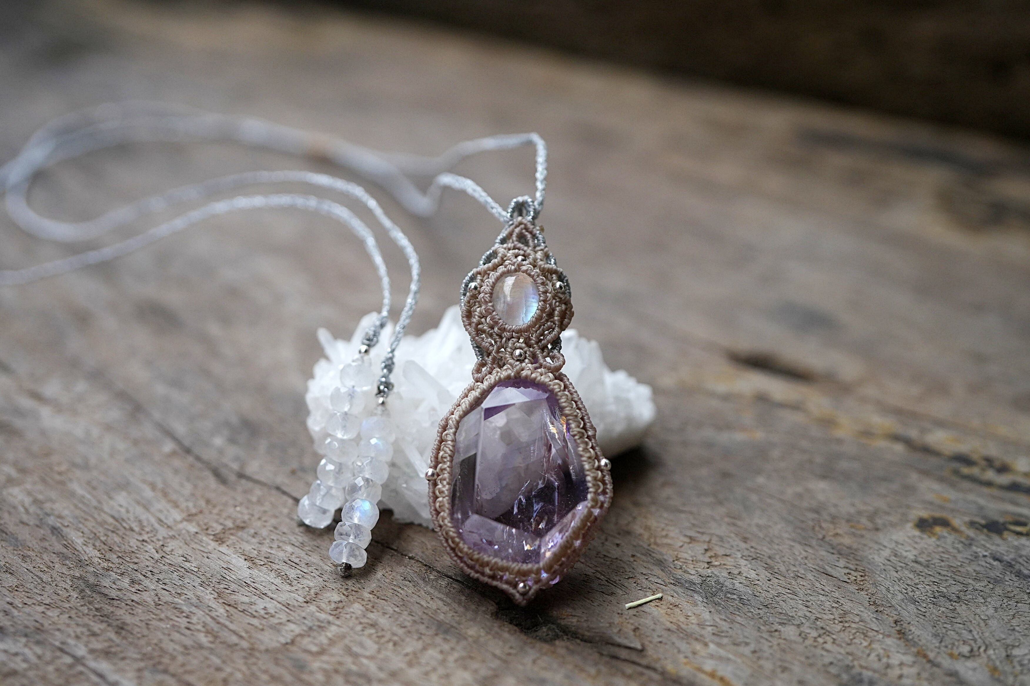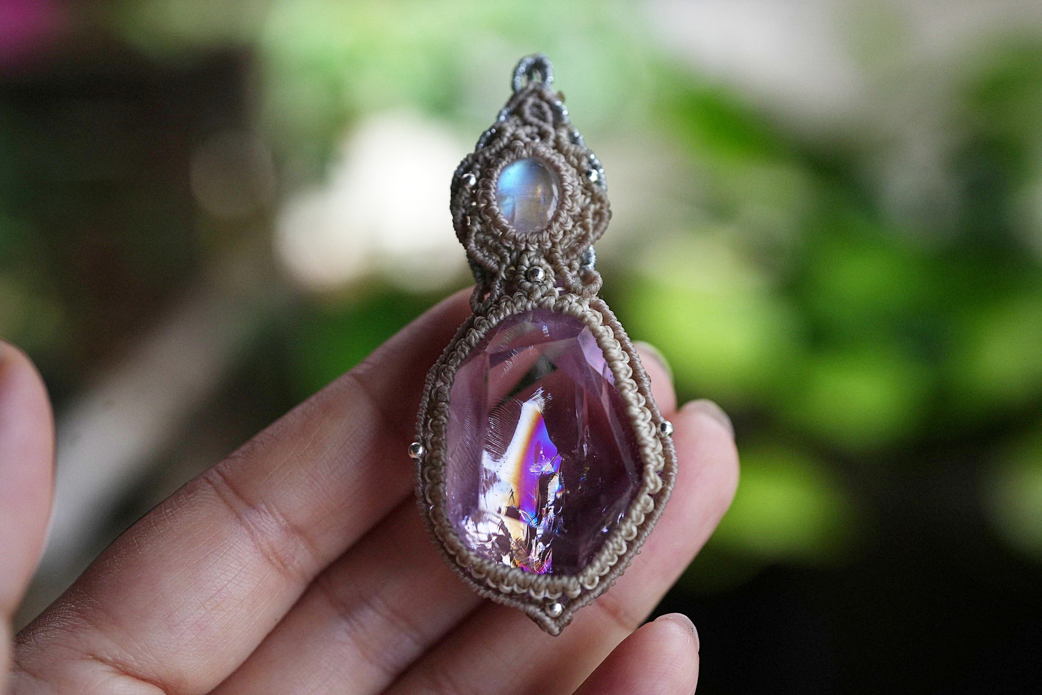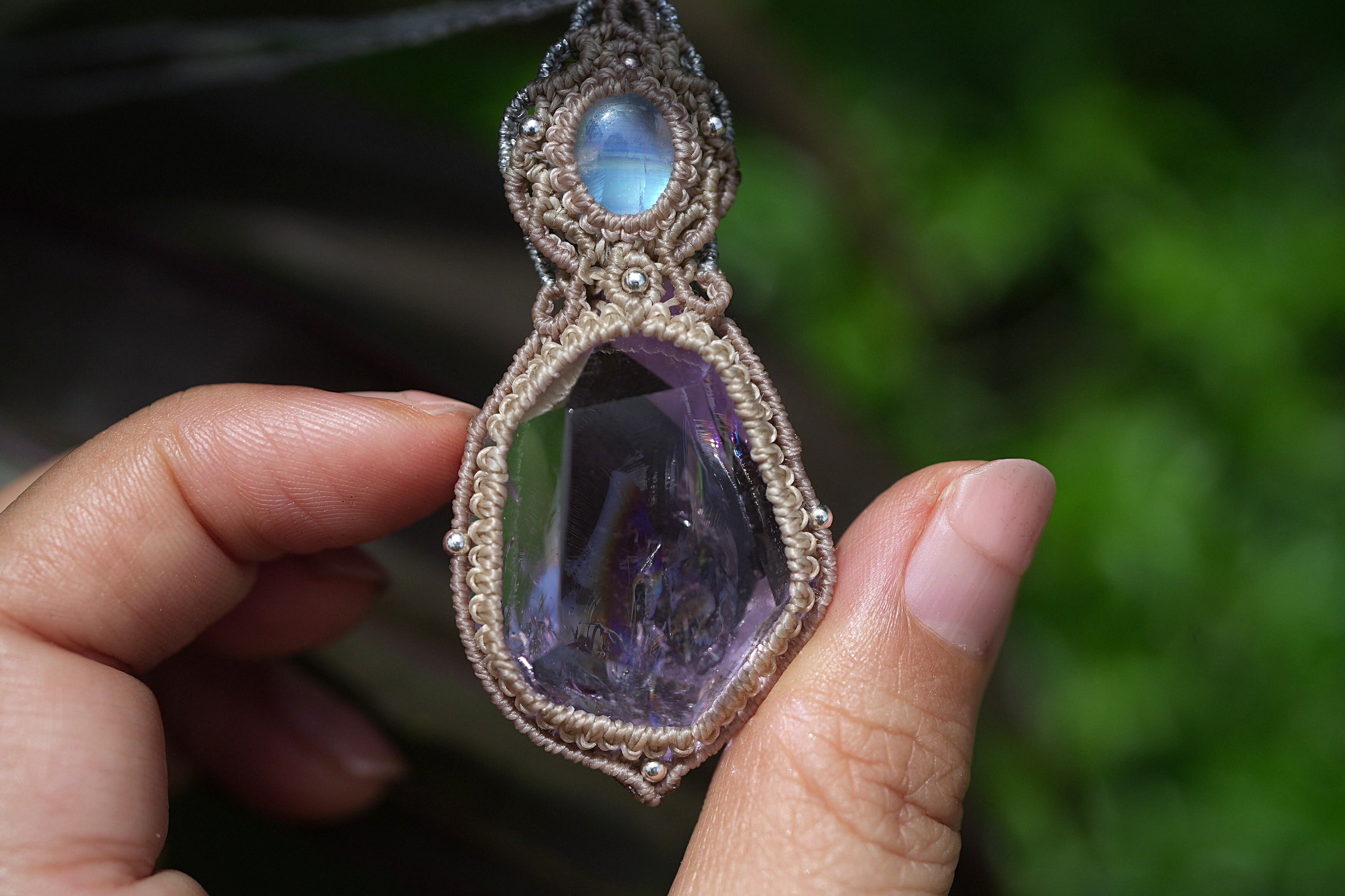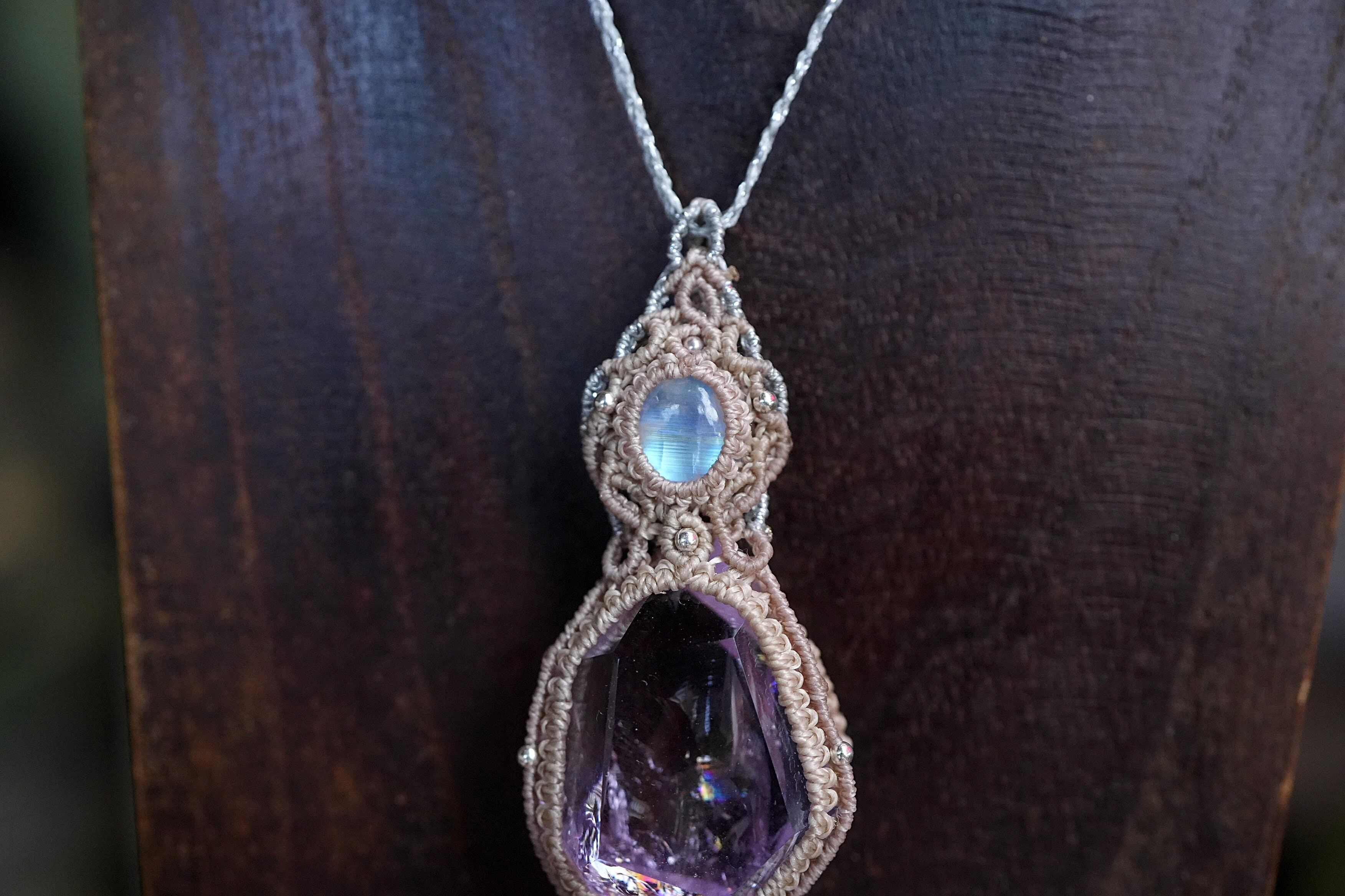 新月と虹★ロイヤルムーンストーン amethyst ネックレス 1682