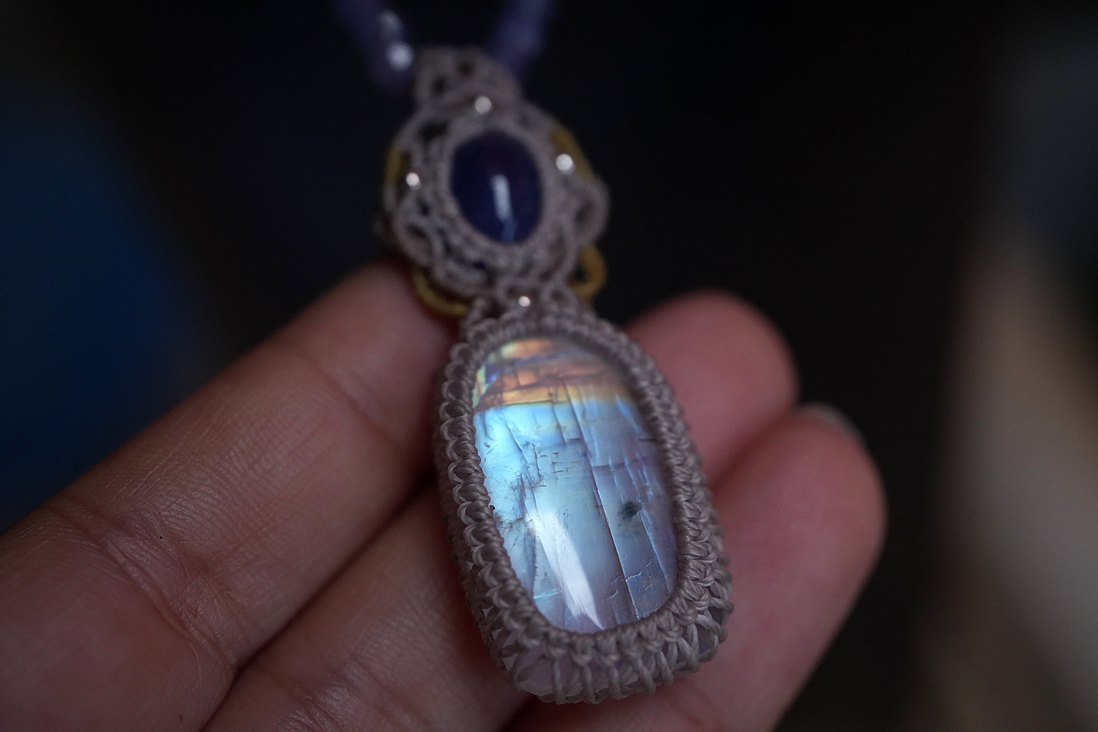 白夜の月★タンザナイト moonstone マクラメネックレス 1683