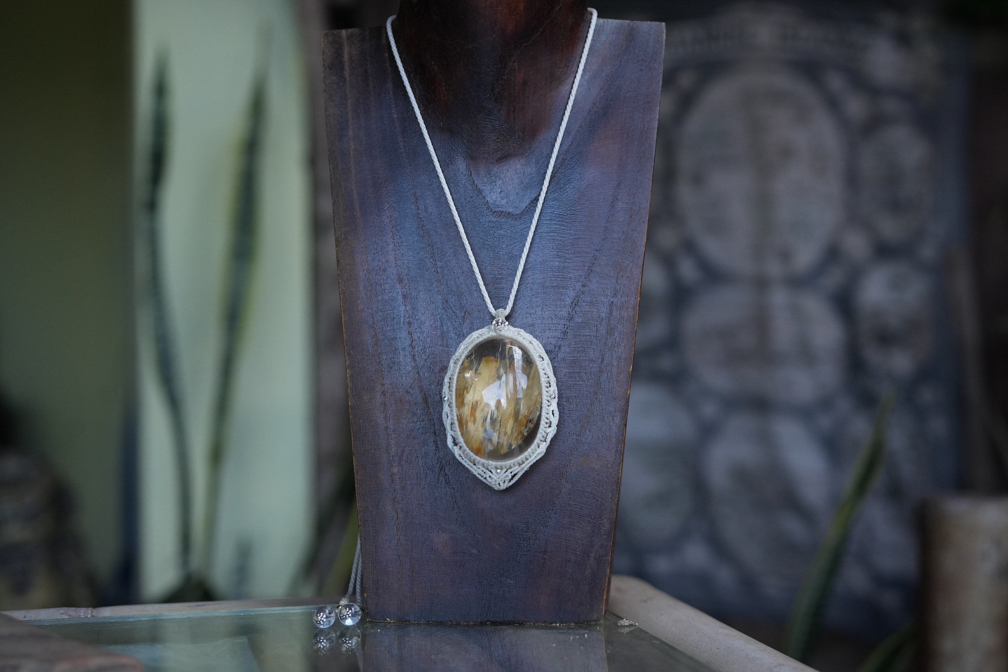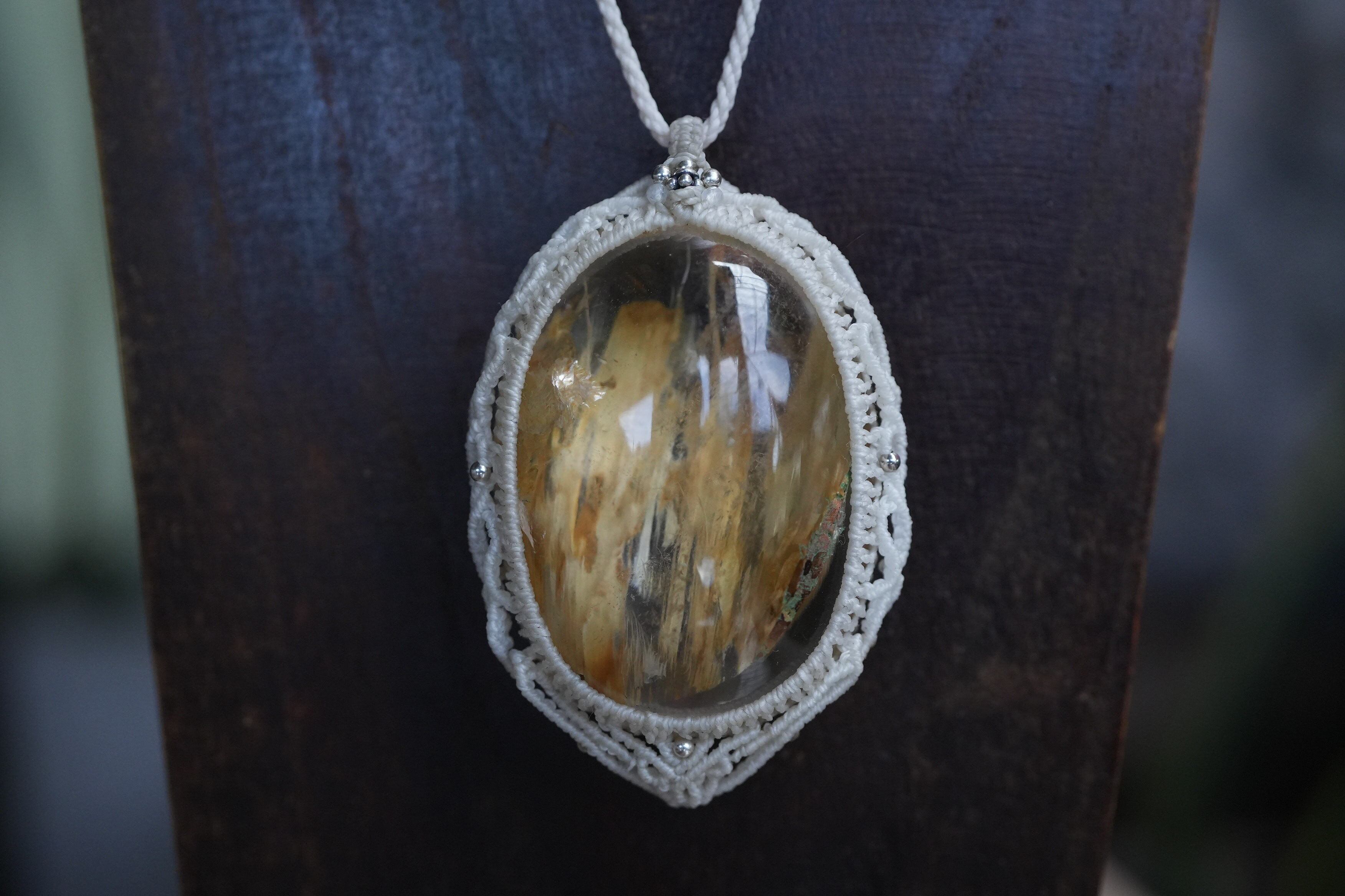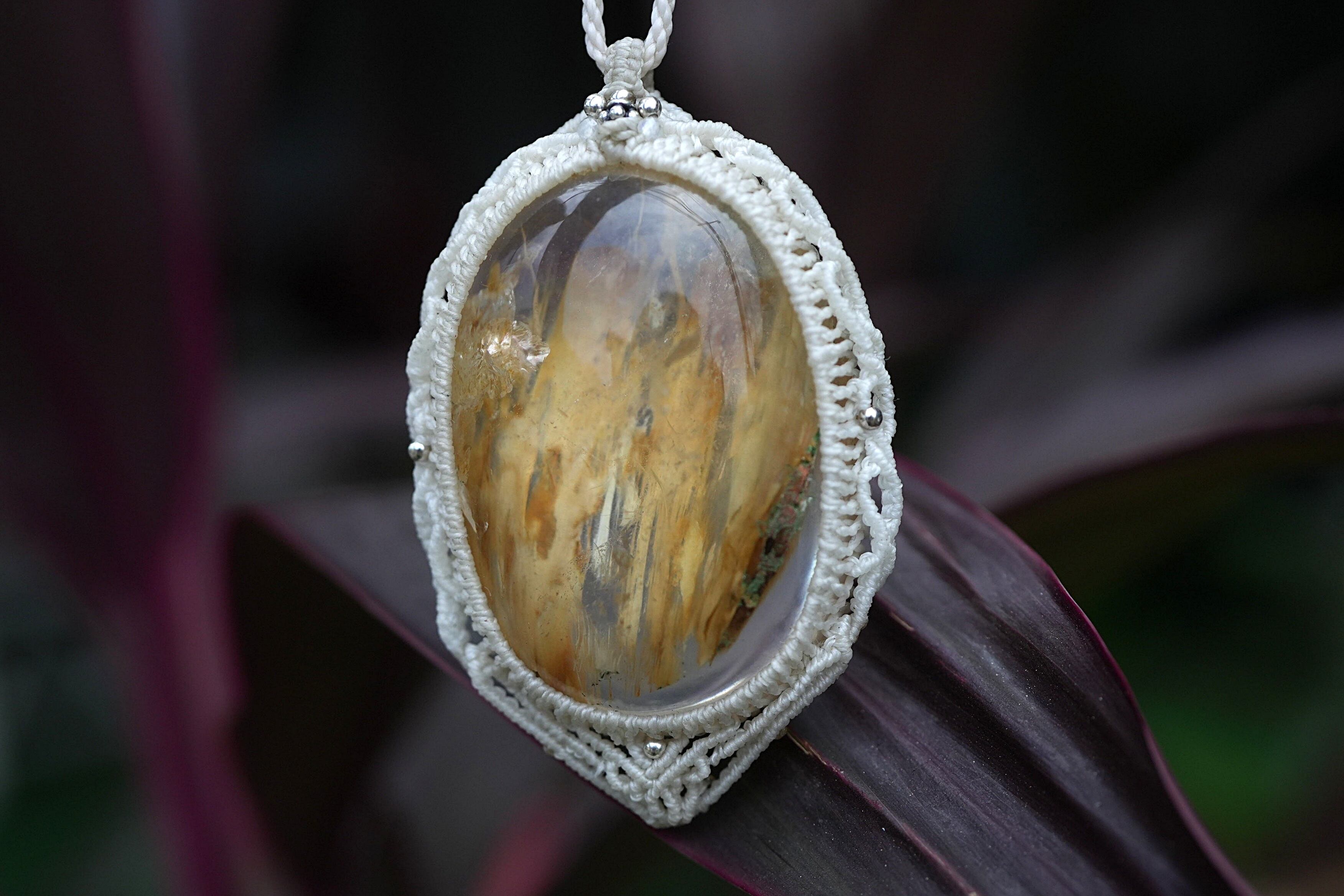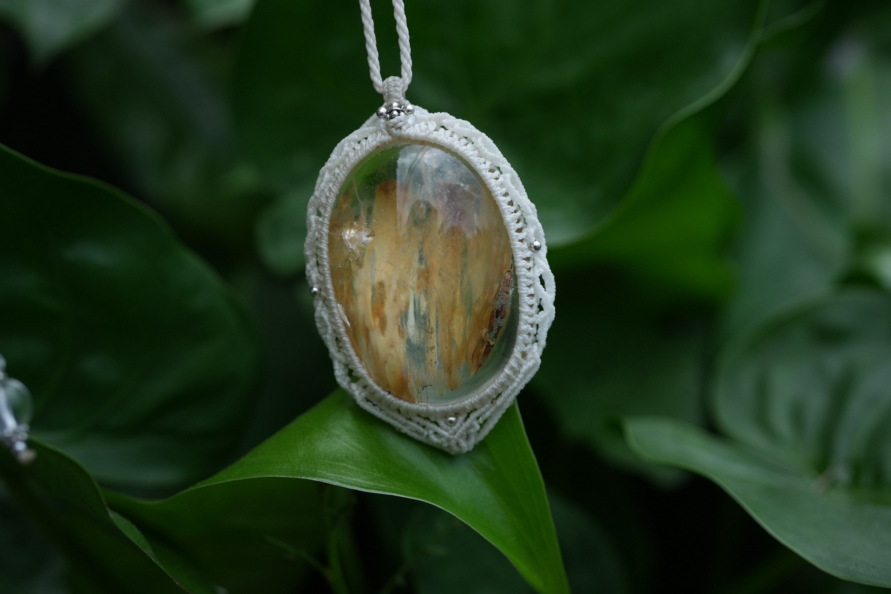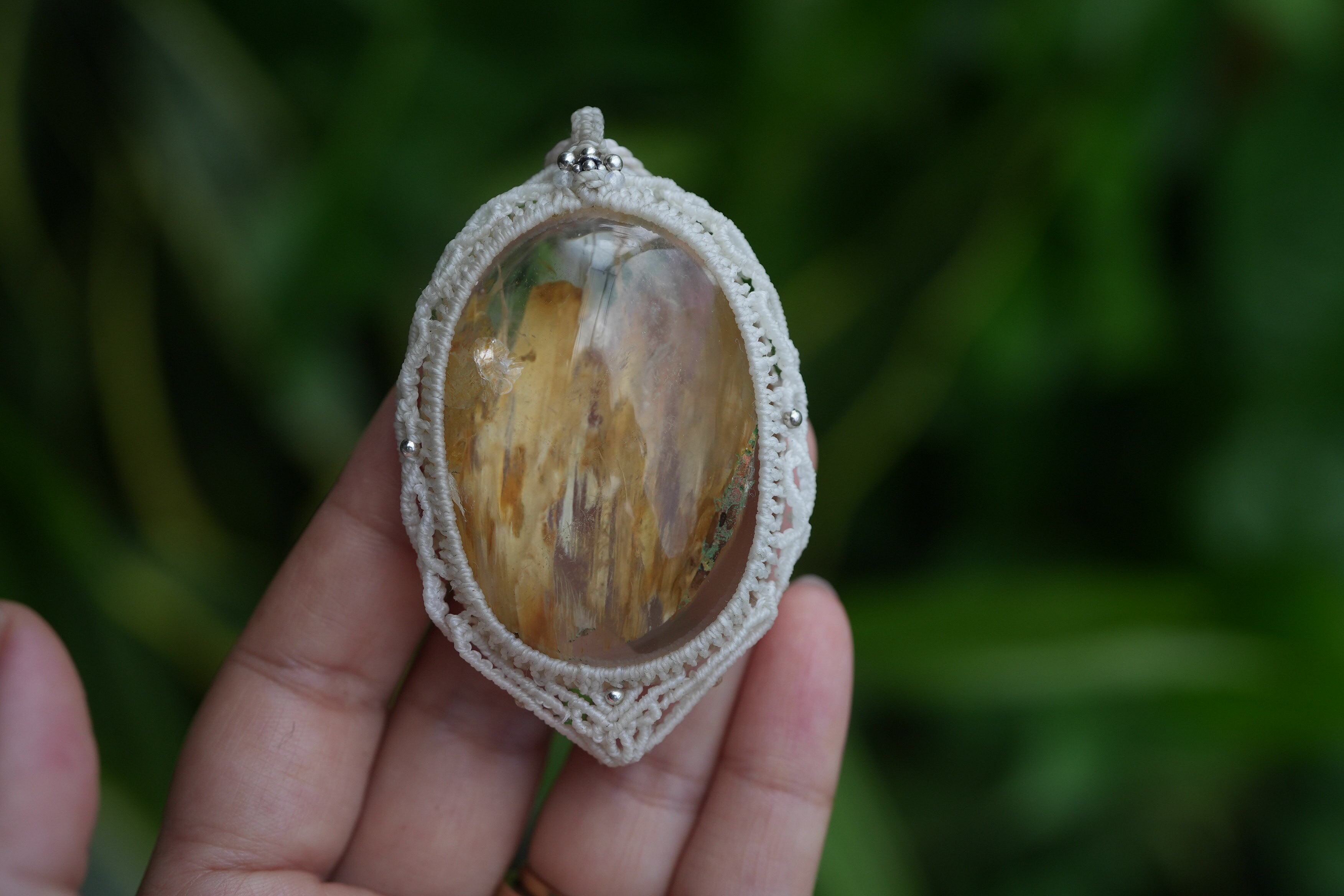 奇跡の断面★特大★ガーデンクォーツ マクラメペンダント1684