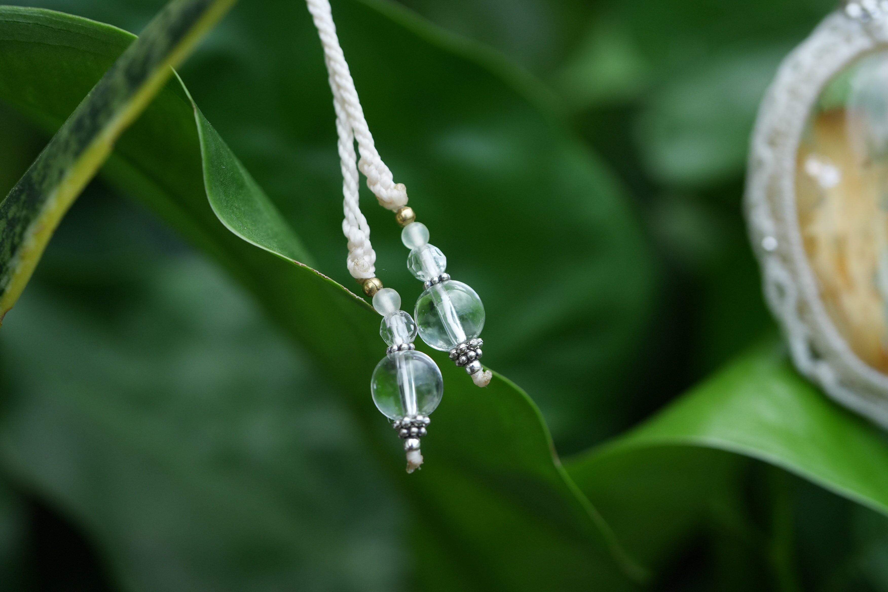 ◆このたびはホワイト色の蝋引き糸を使用しマクラメ編み装飾を施しました。