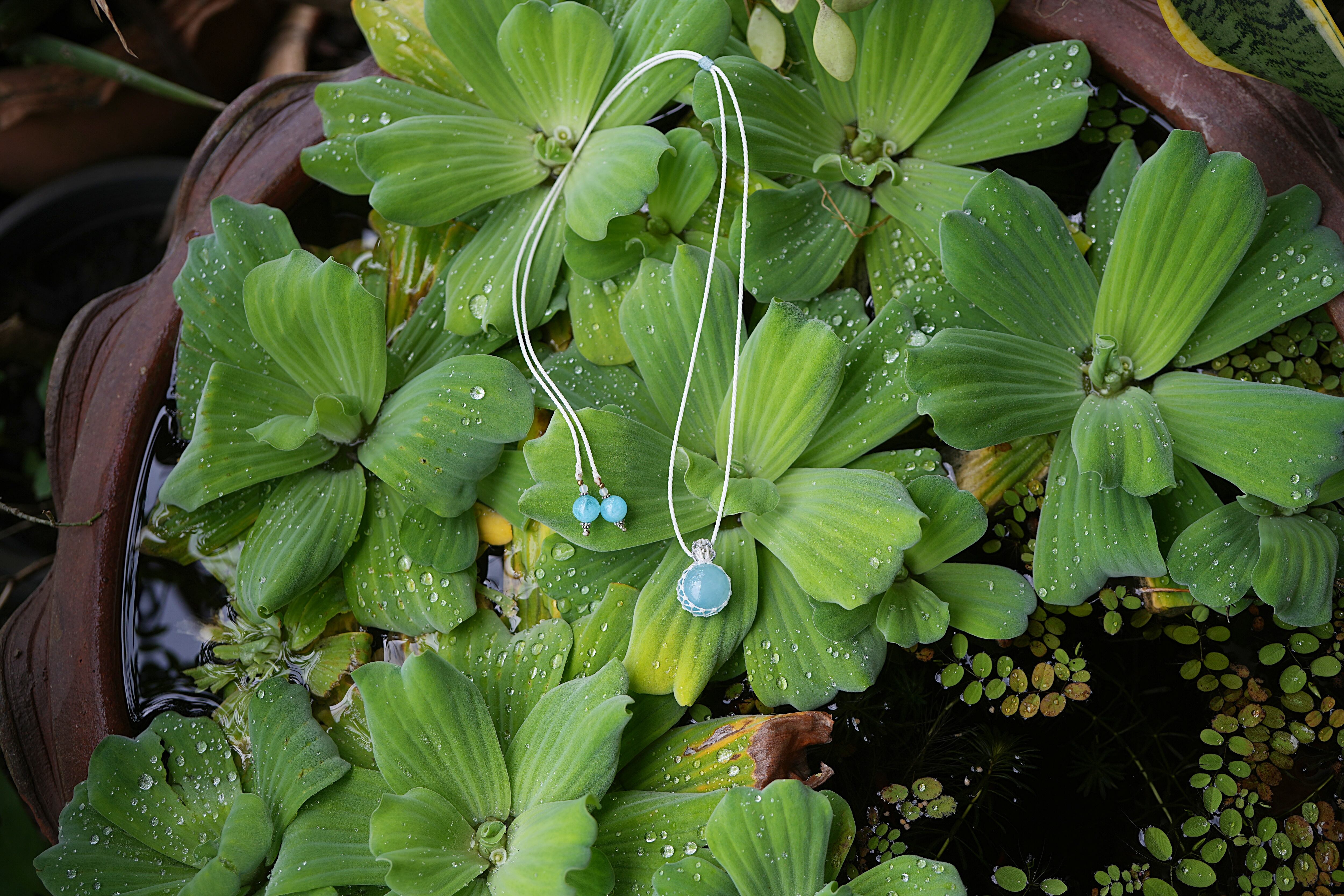 その名の通り、みずみずしさを感じる淡いブルーの天然石です。
