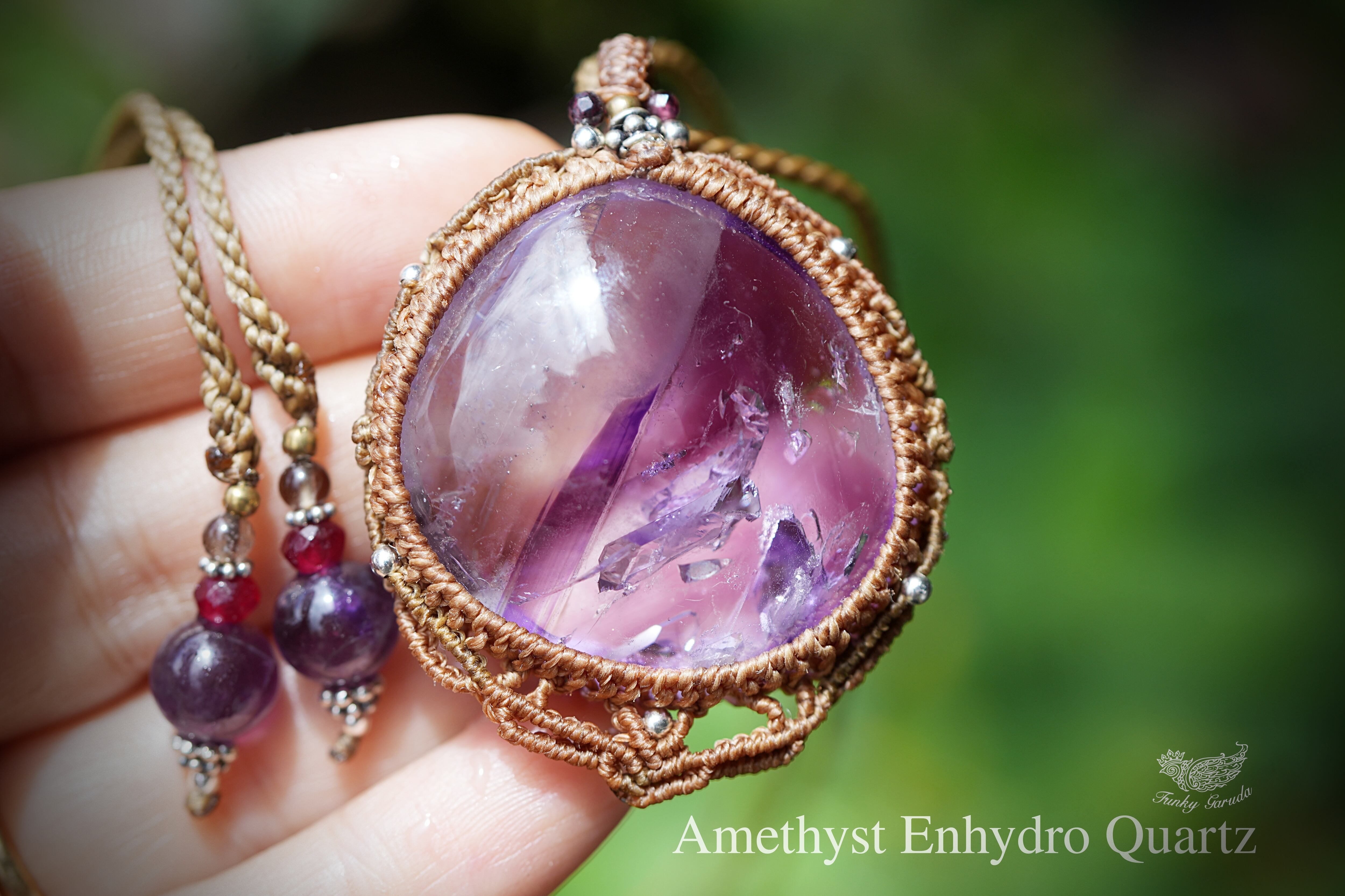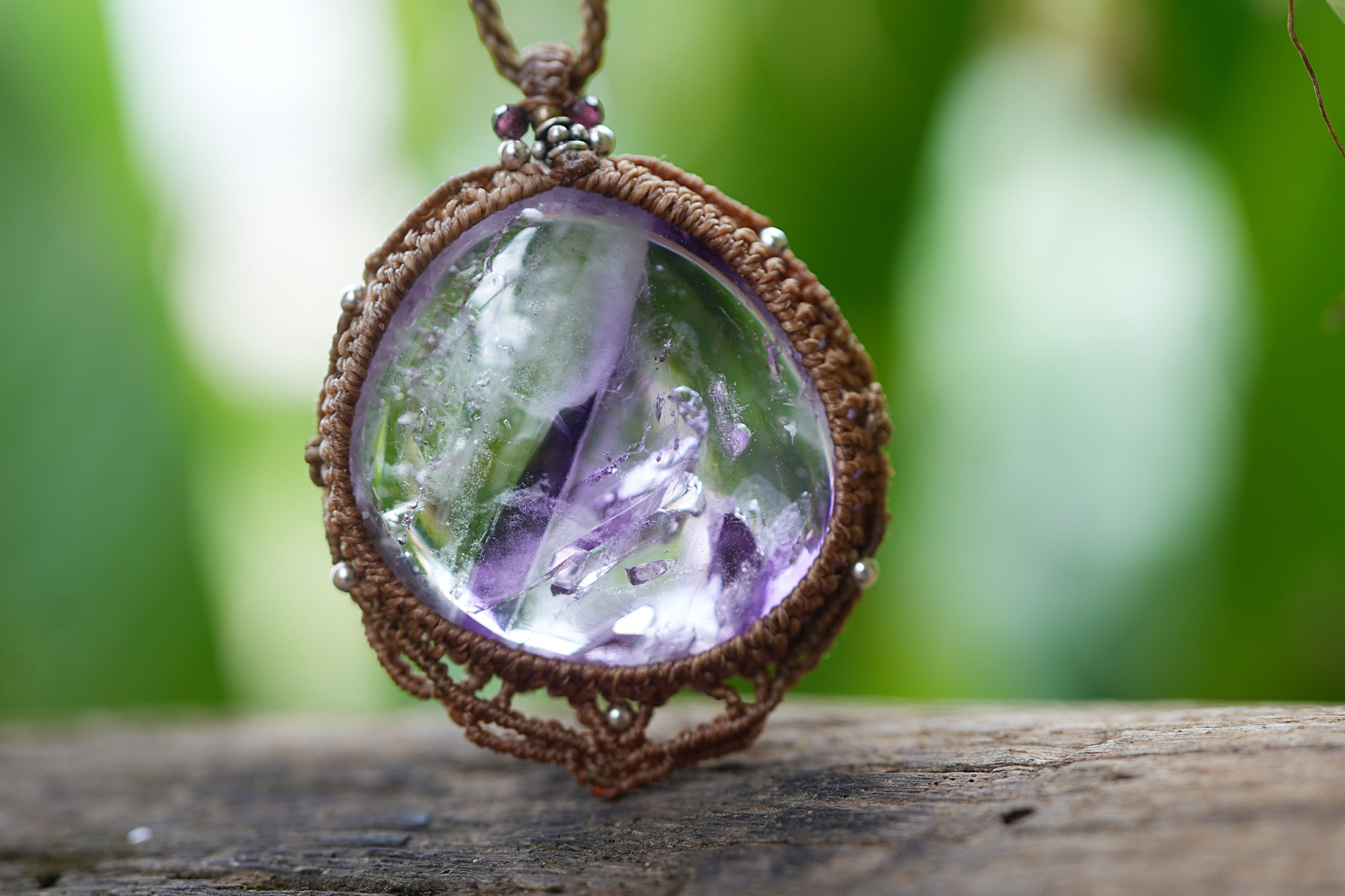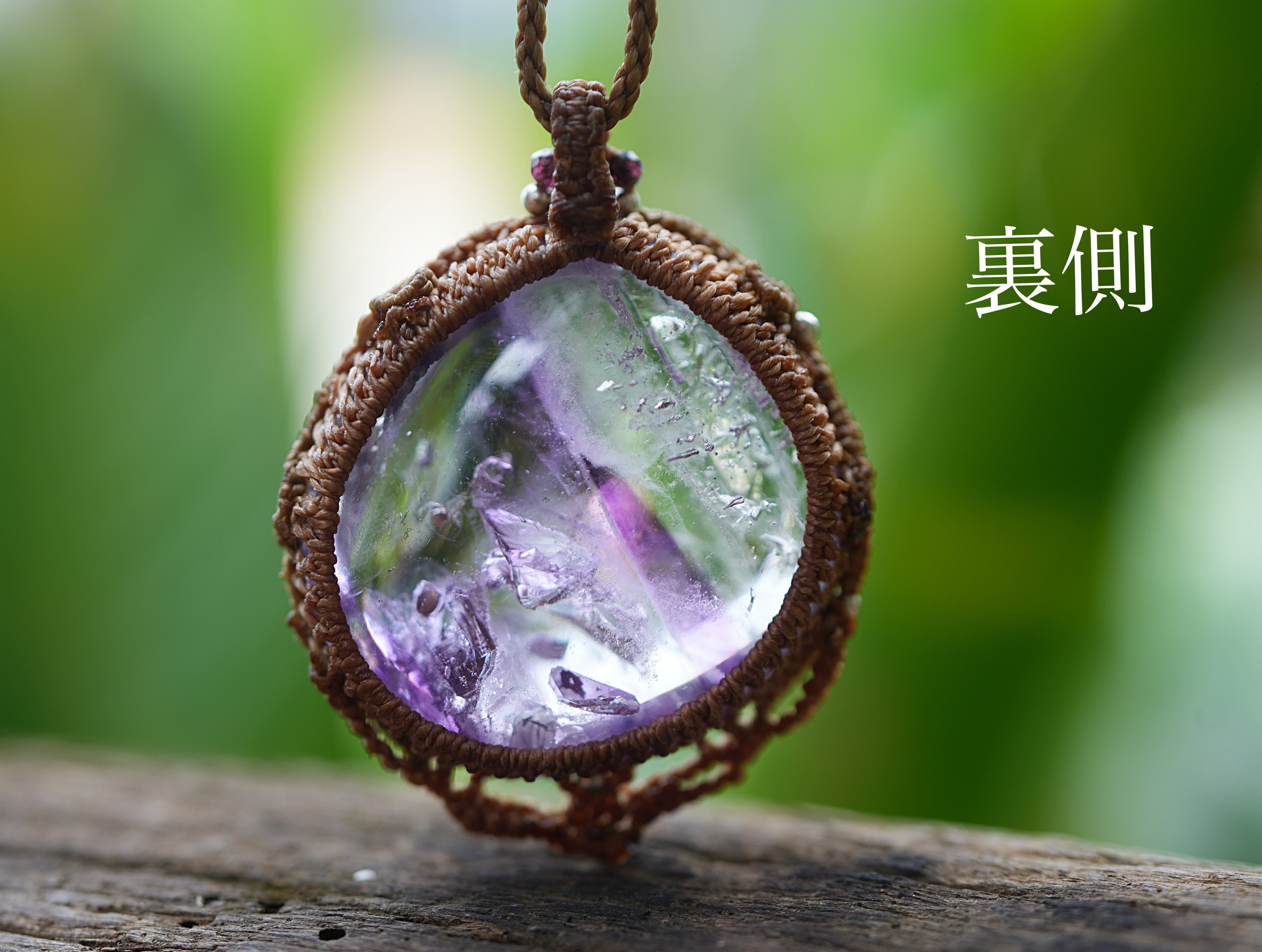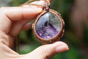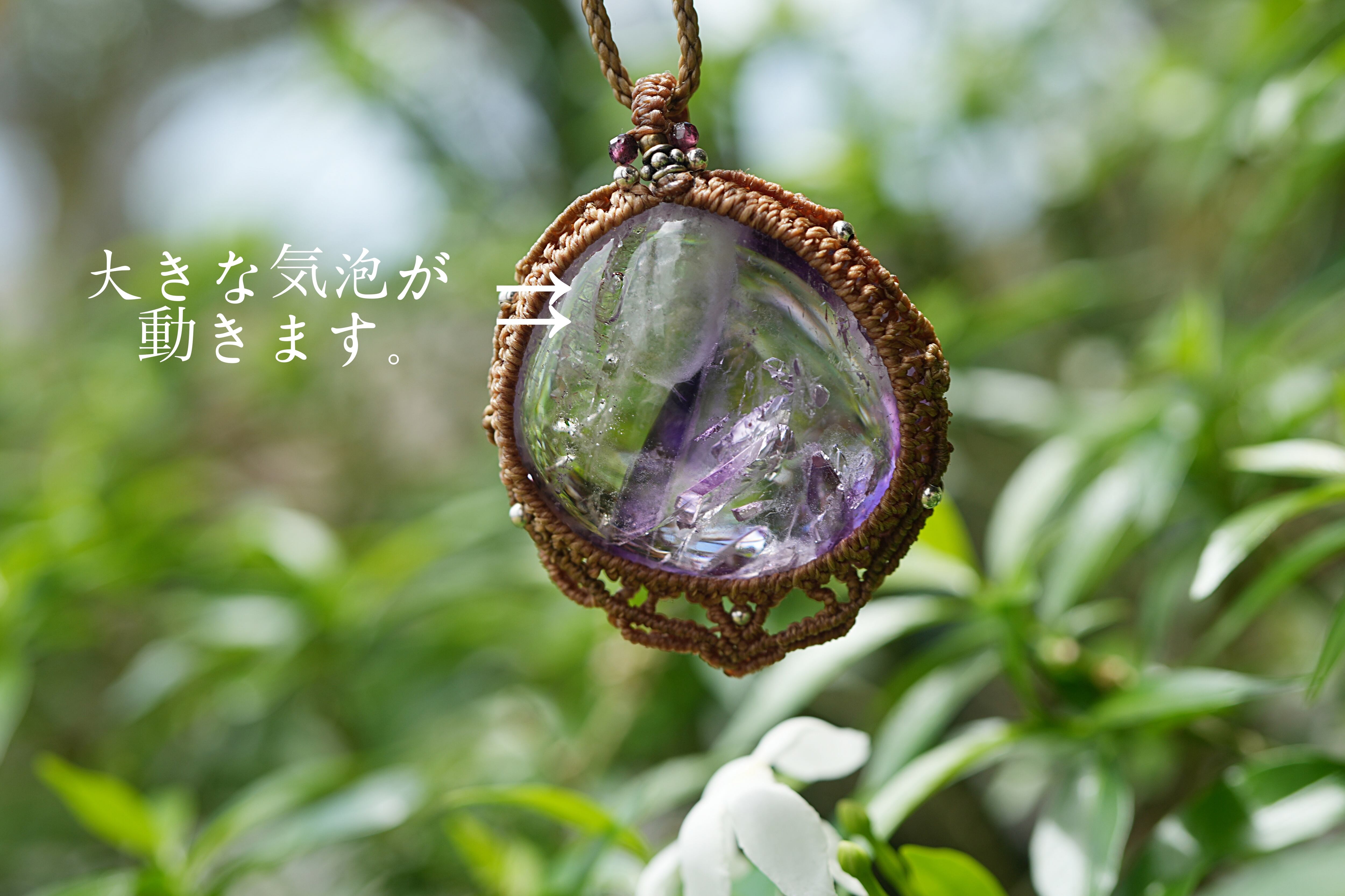 紫のグラデーション★古代の水入り★アメシスト水晶 マクラメネックレス1687