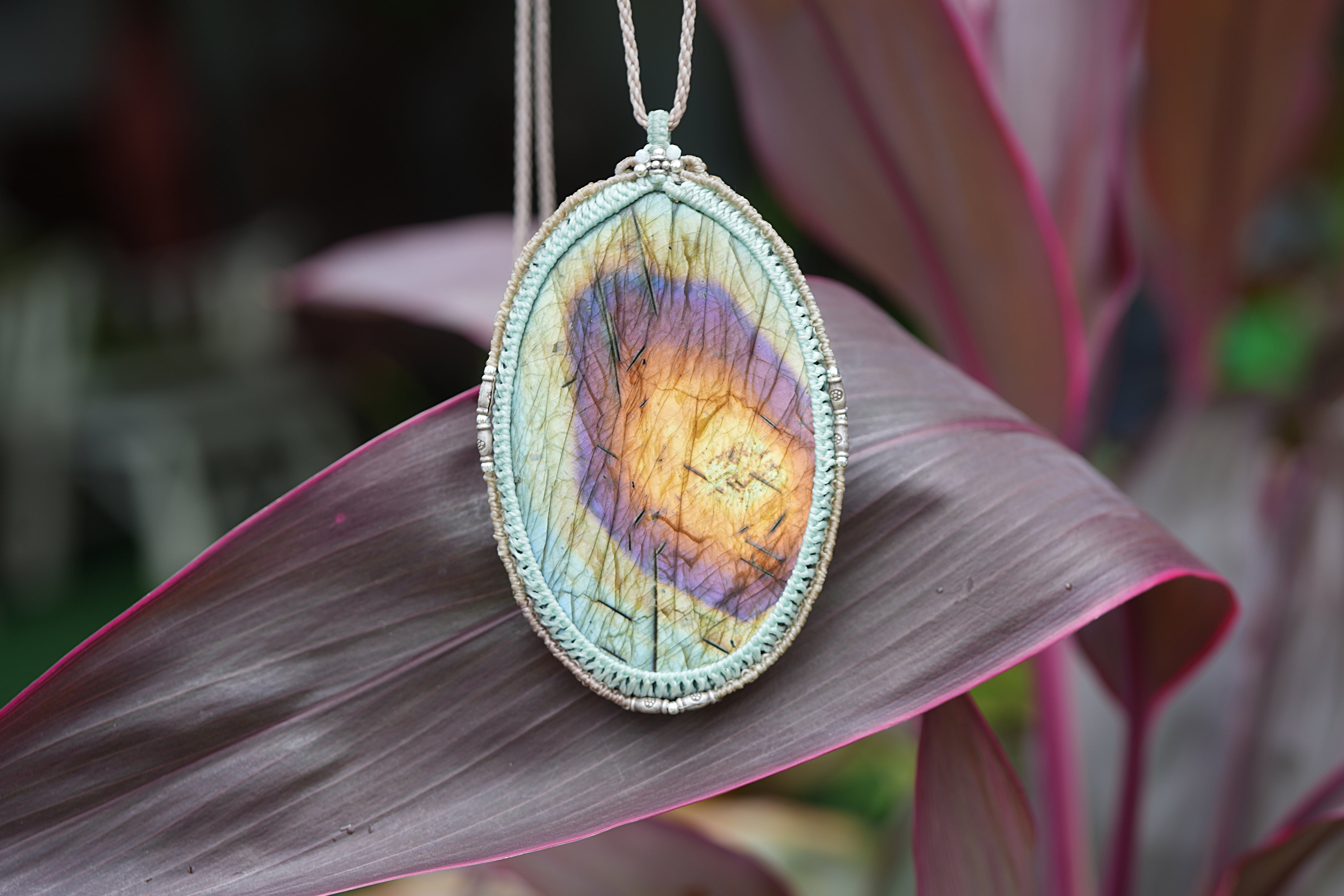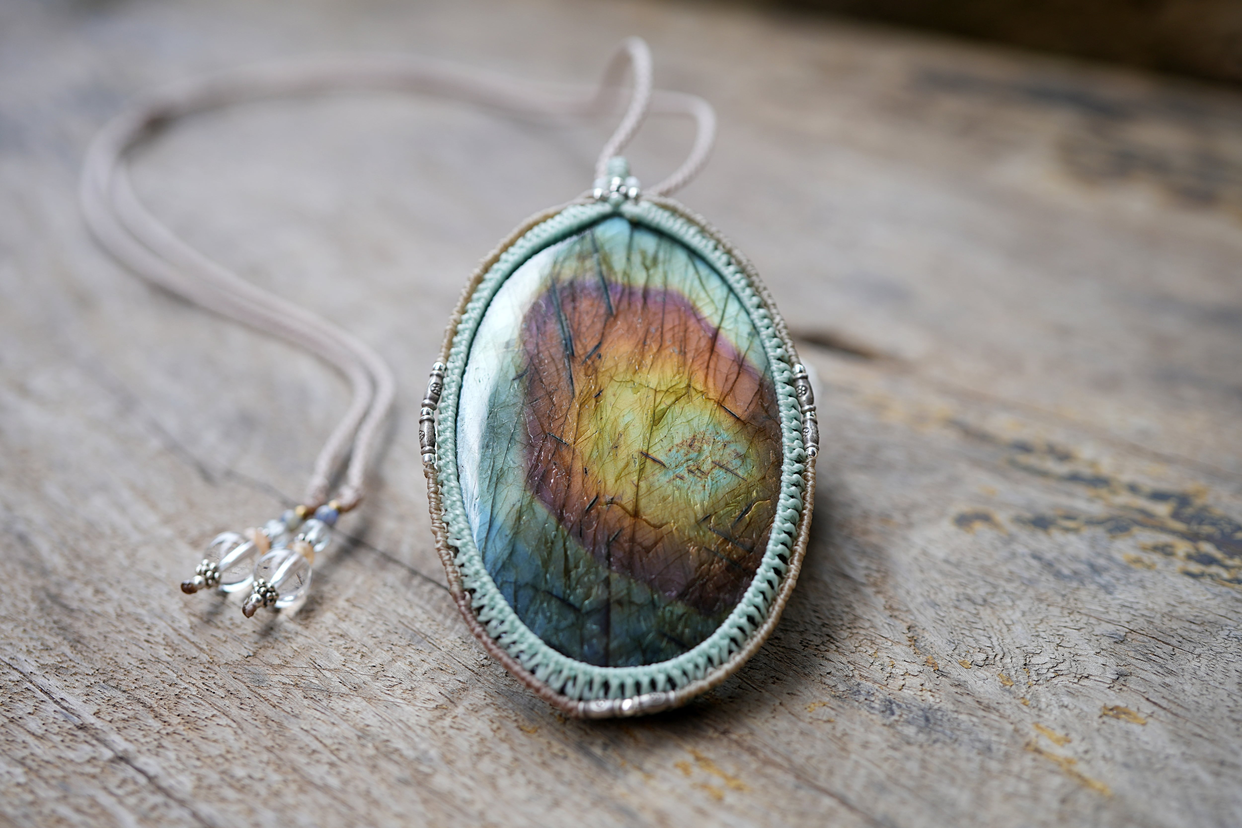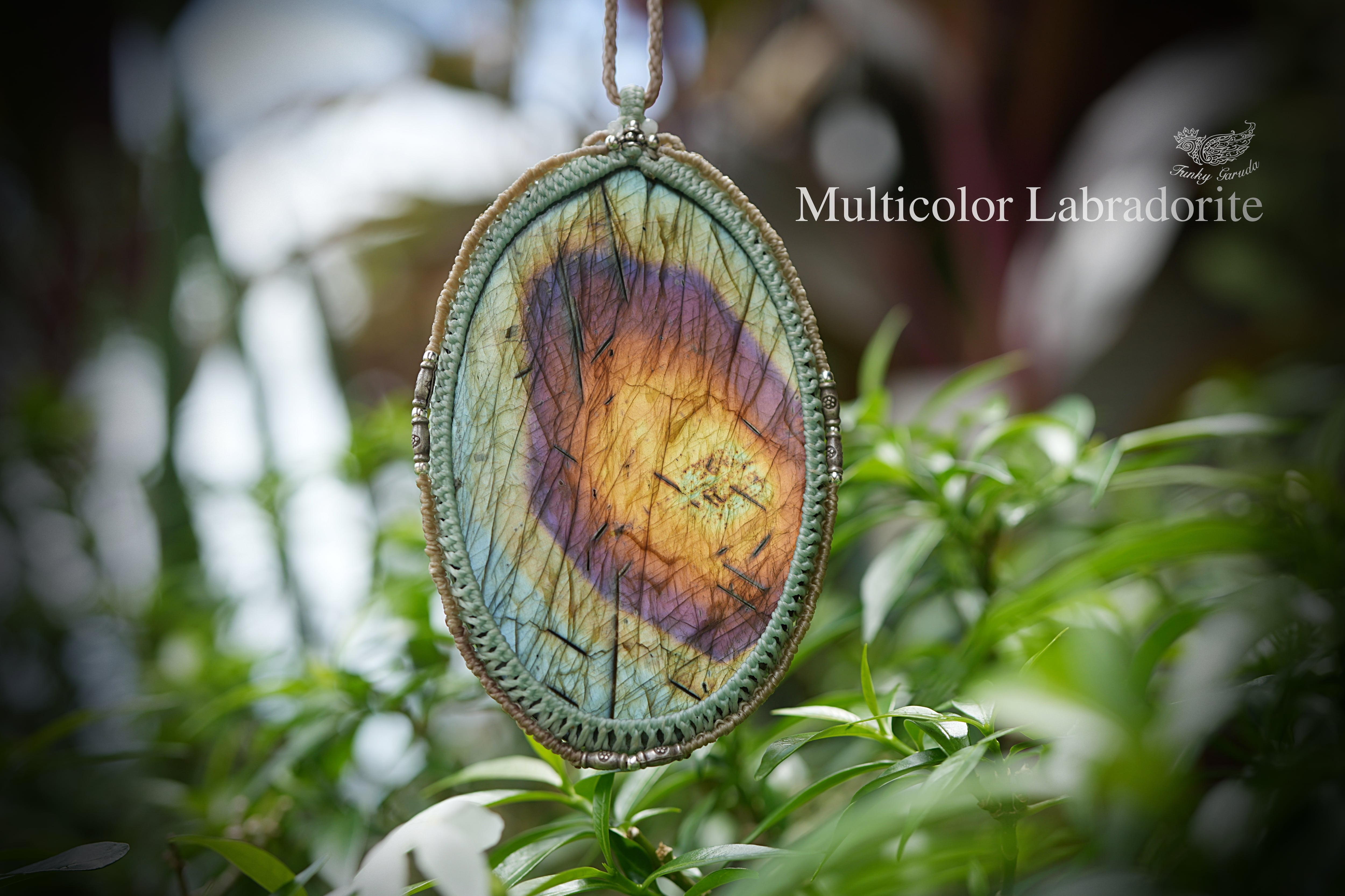 特大スペシャルな渦★高品質★マルチカラーラブラドライト マクラメネックレス1689