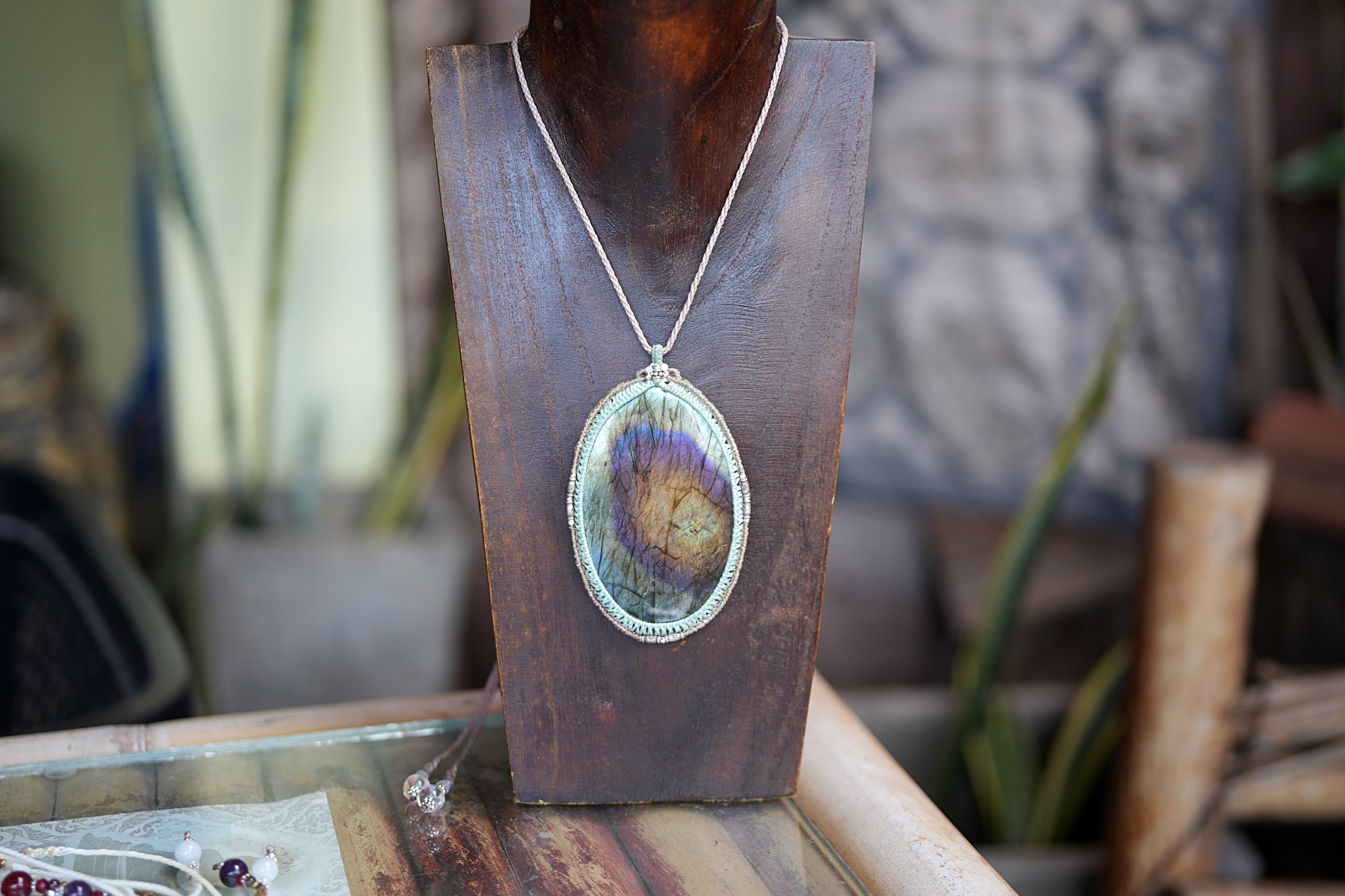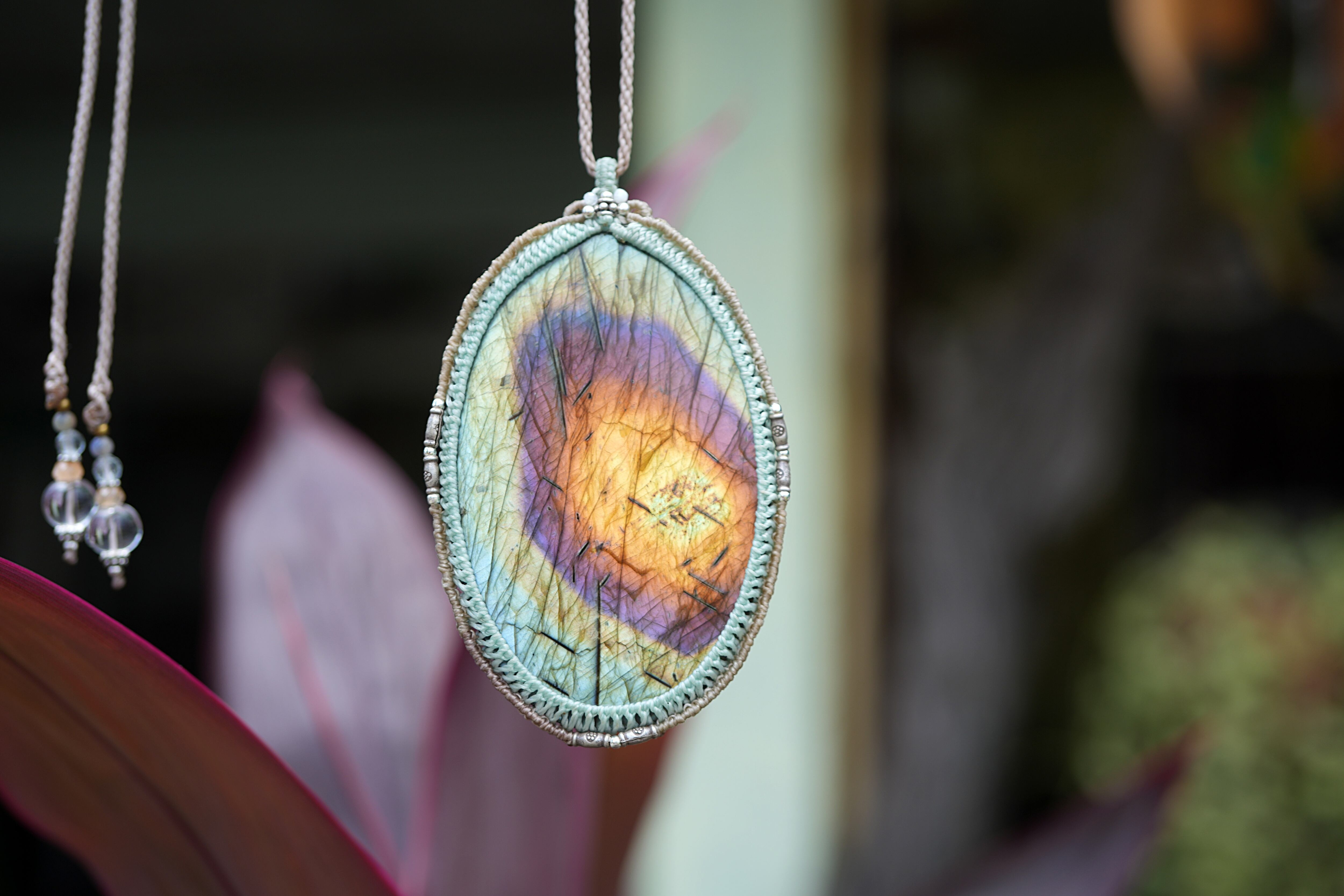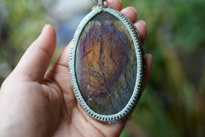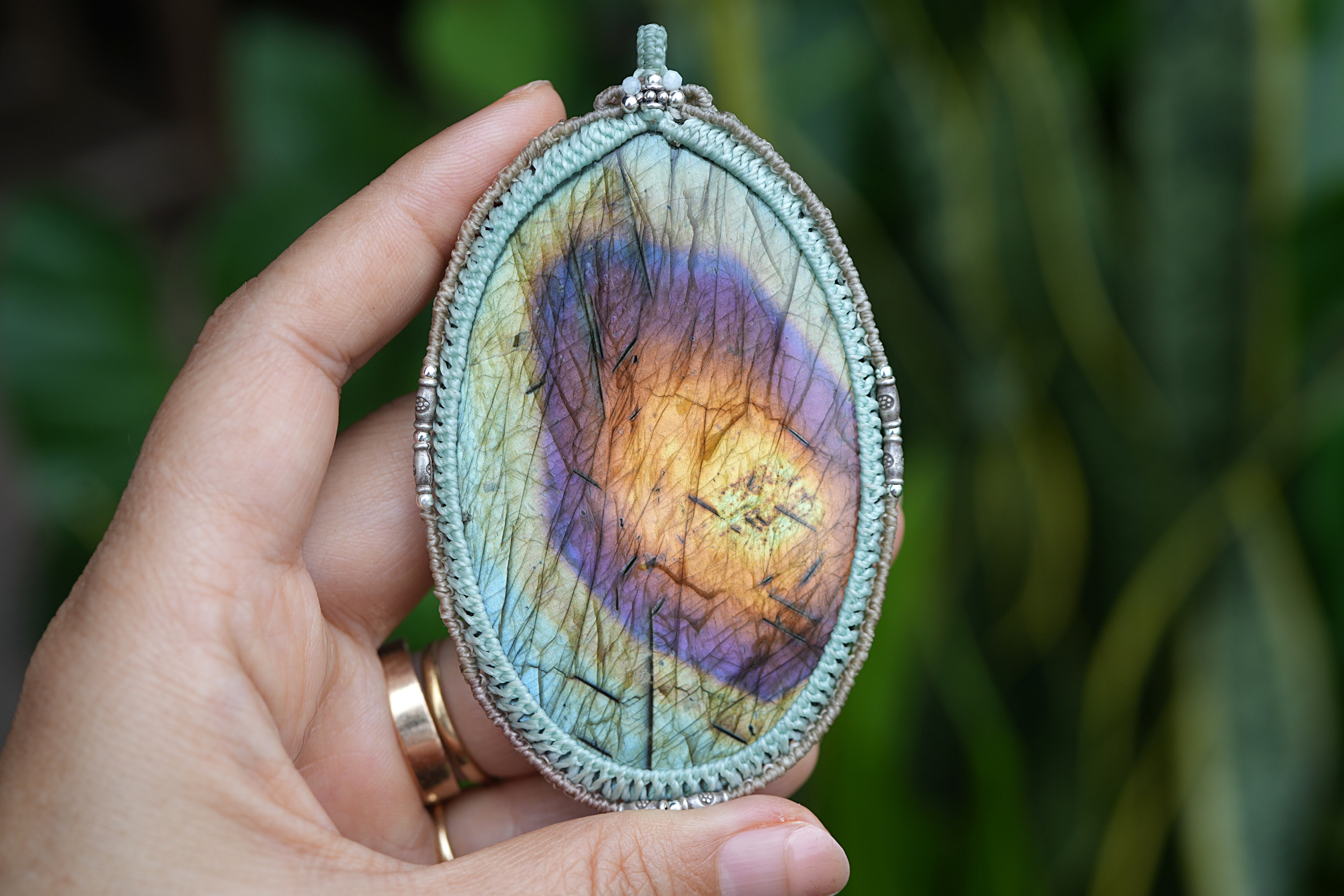 特大スペシャルな渦★高品質★マルチカラーラブラドライト マクラメネックレス1689