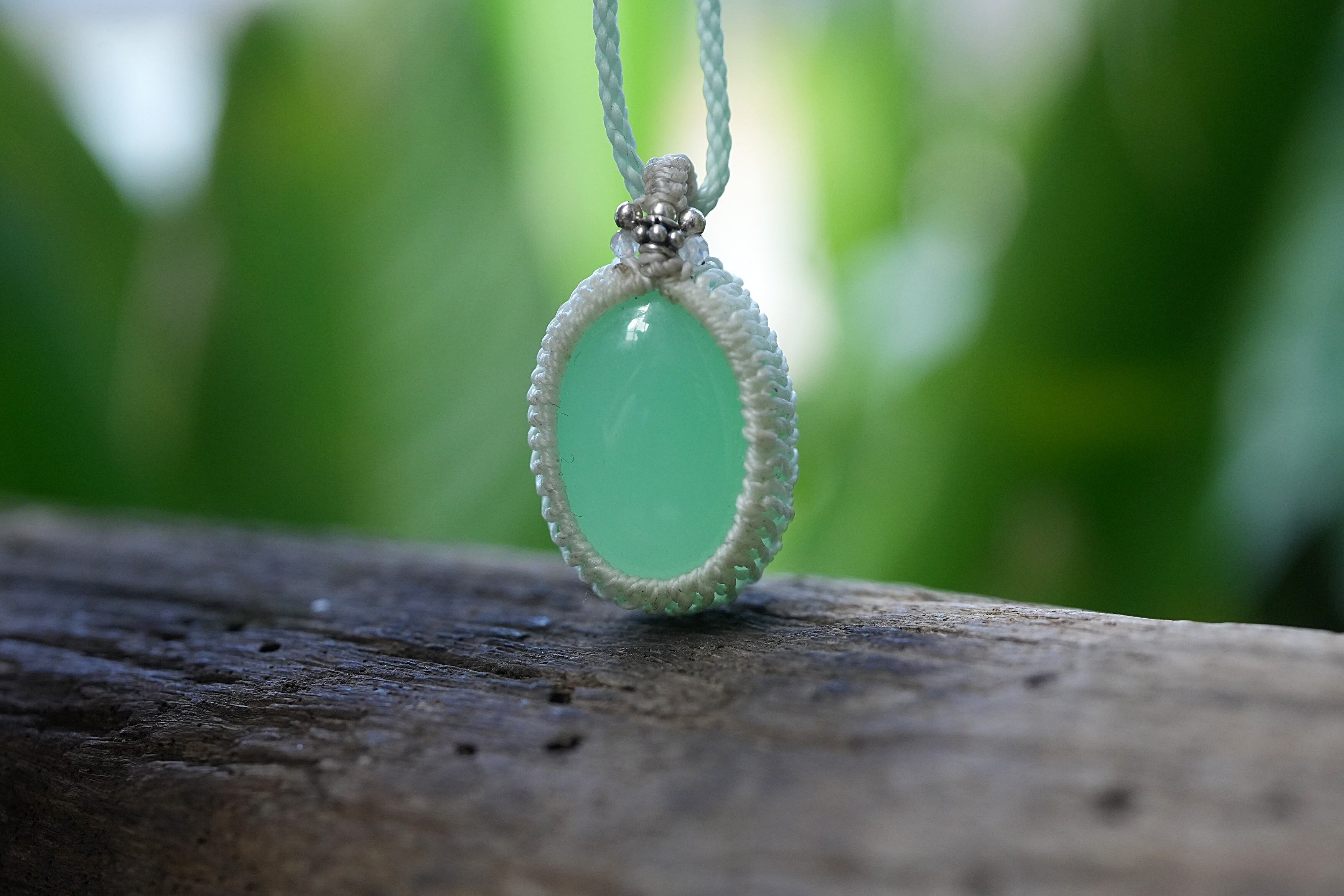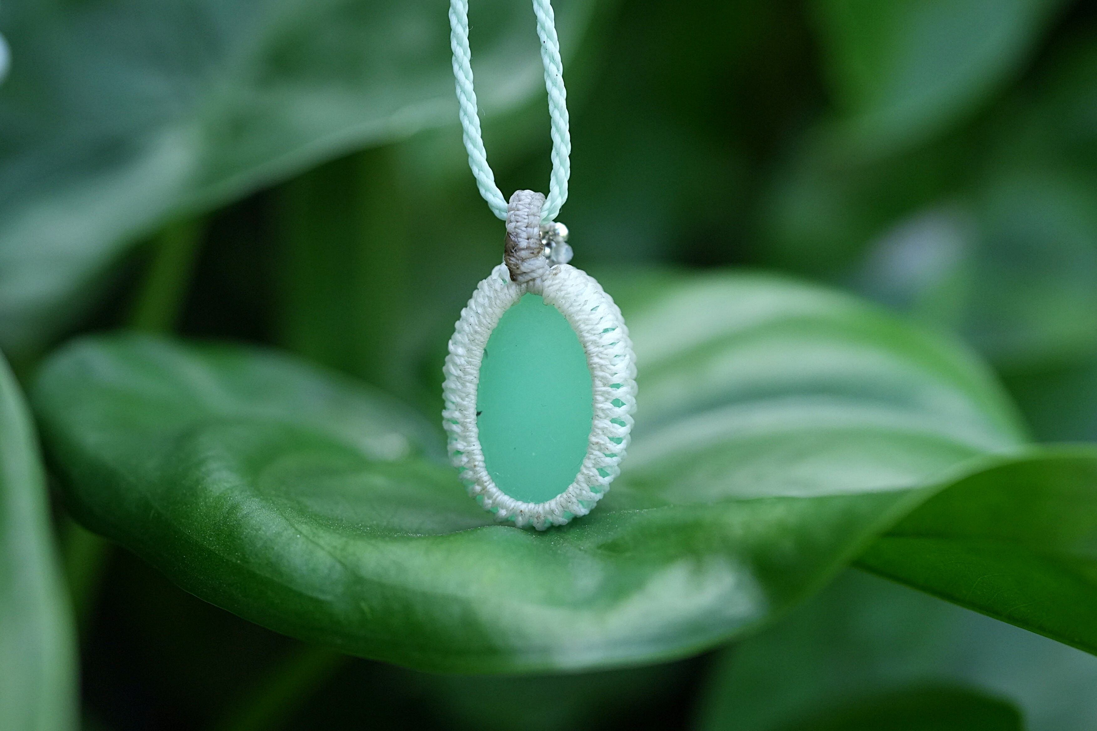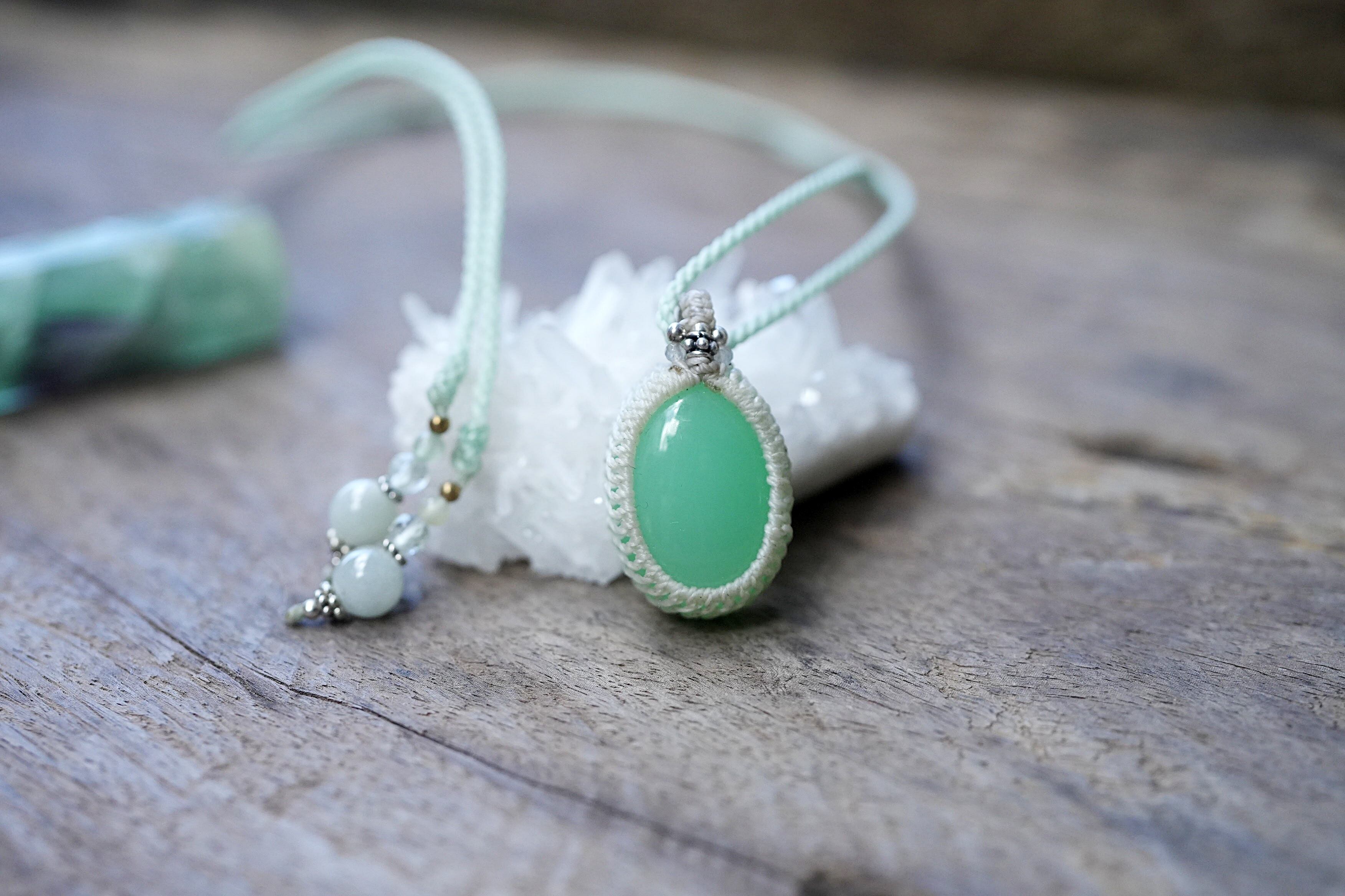 ぷっくり滑らかグリーン★クリソプレーズ マクラメネックレス1692