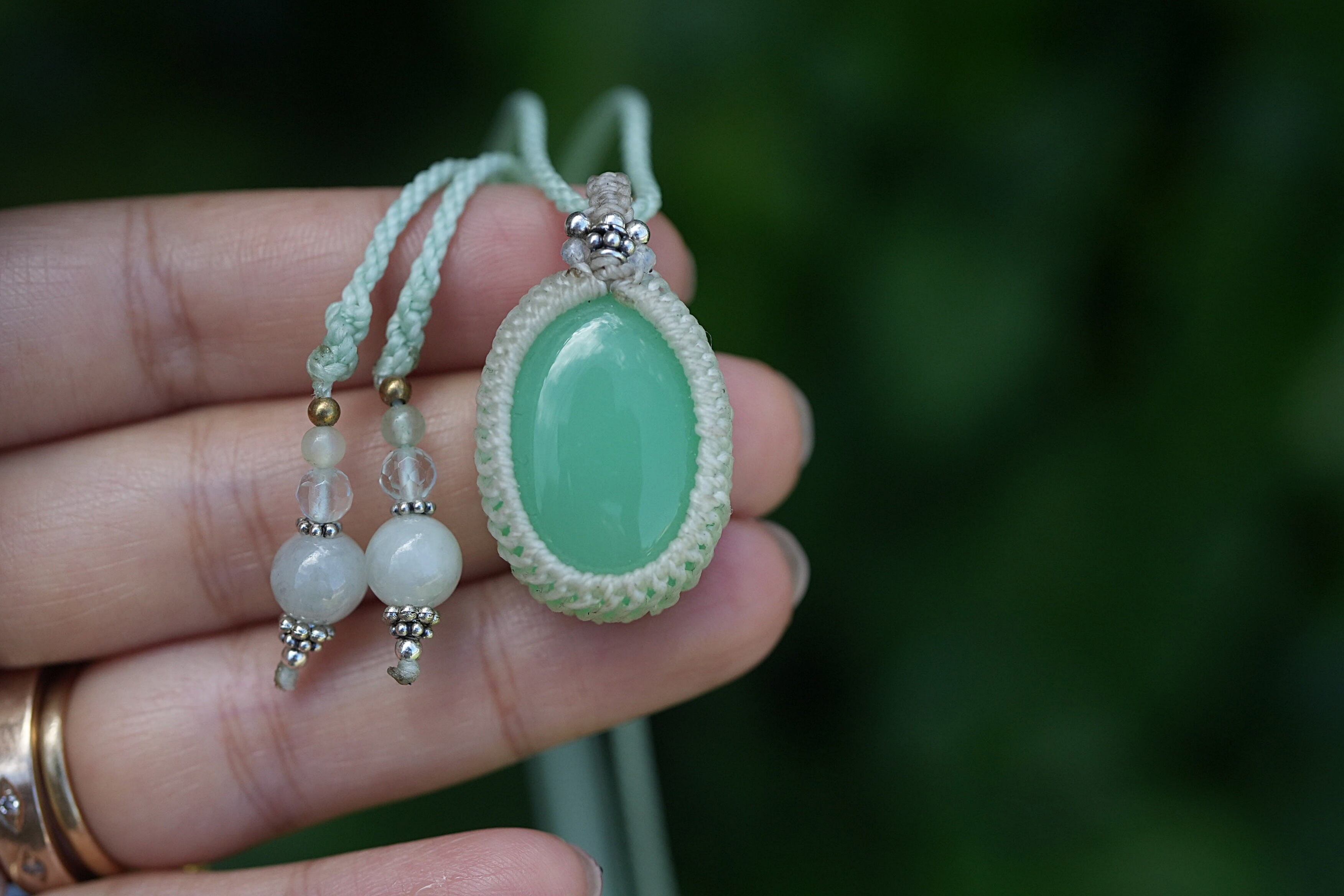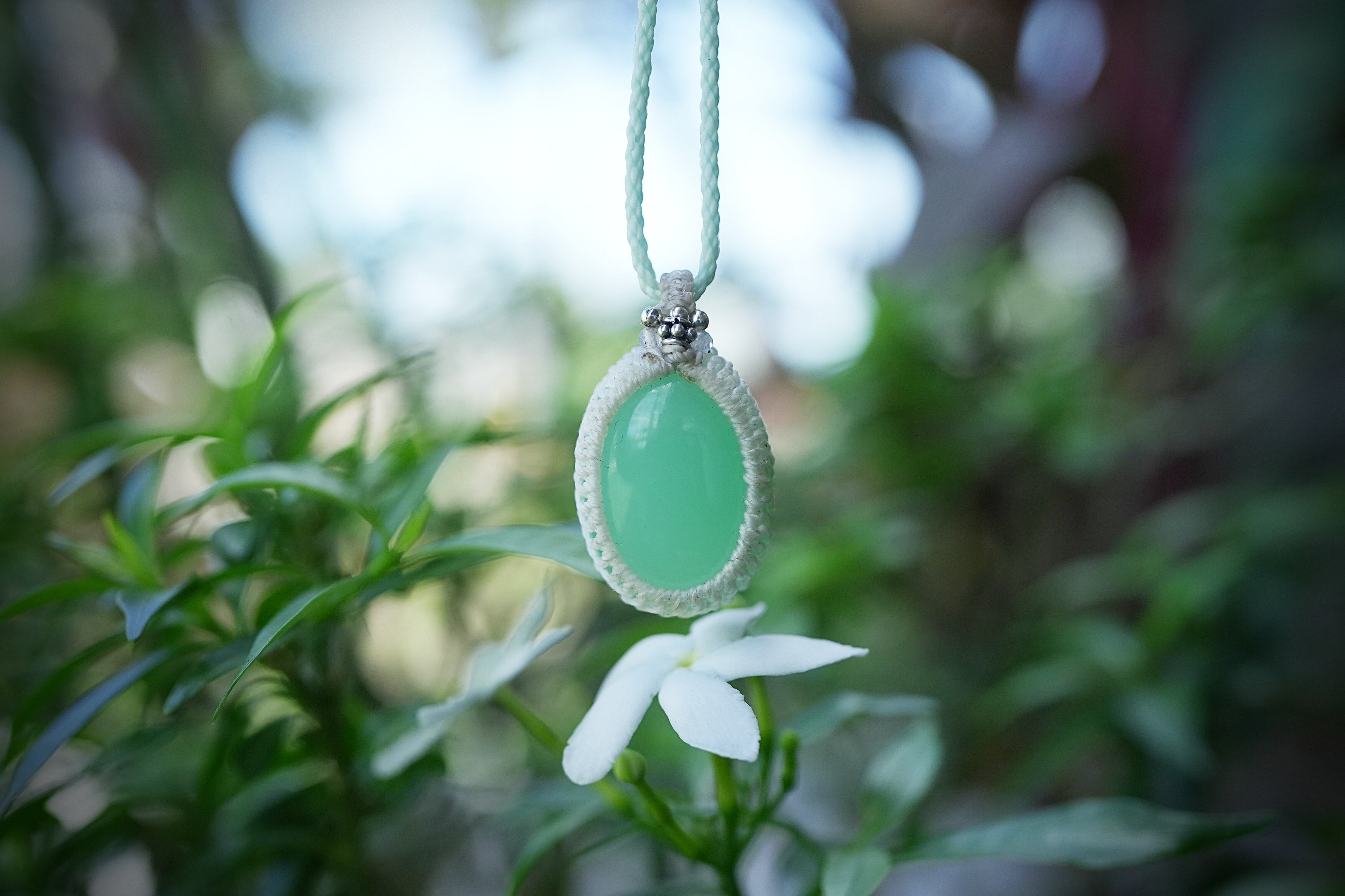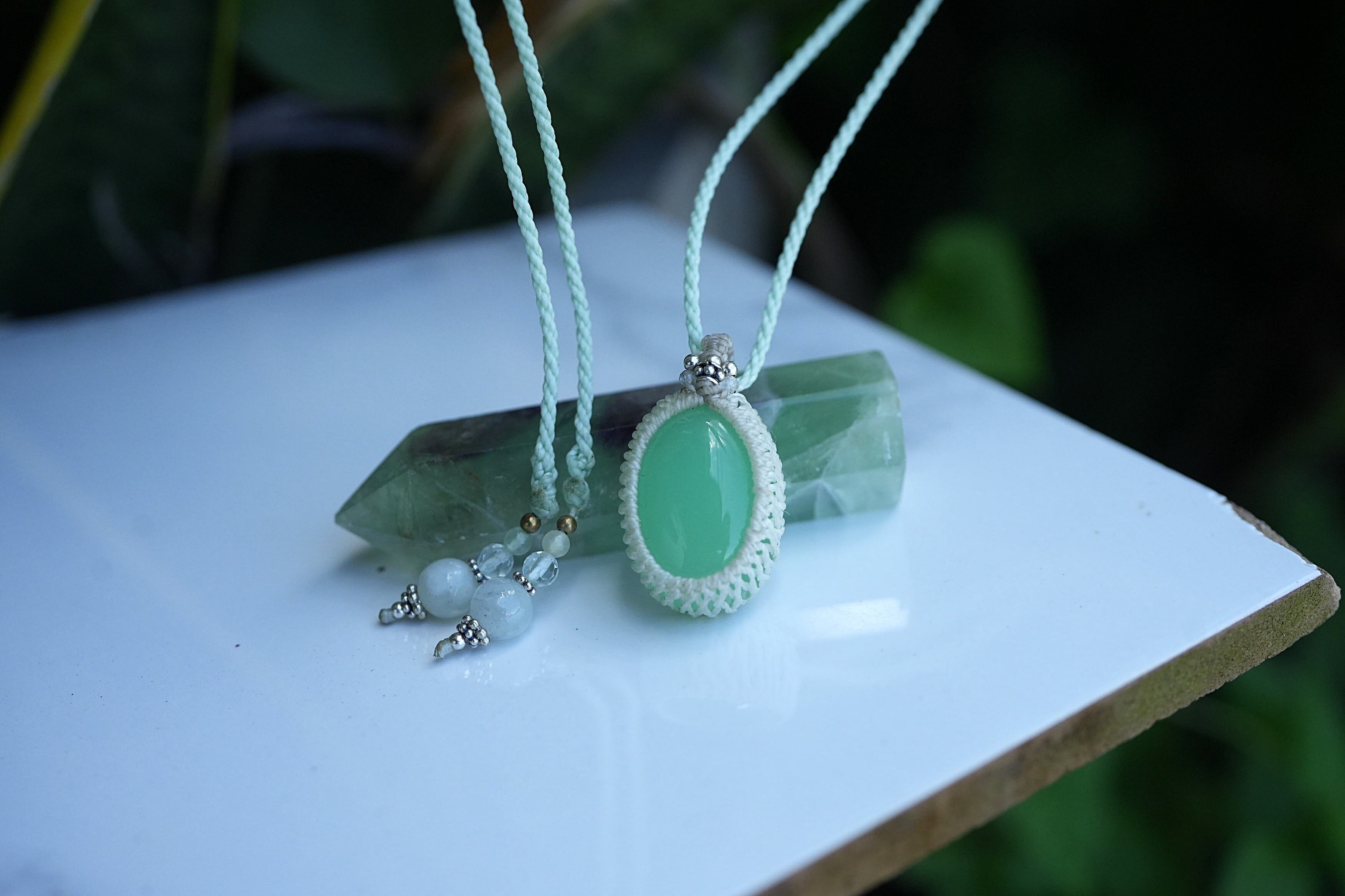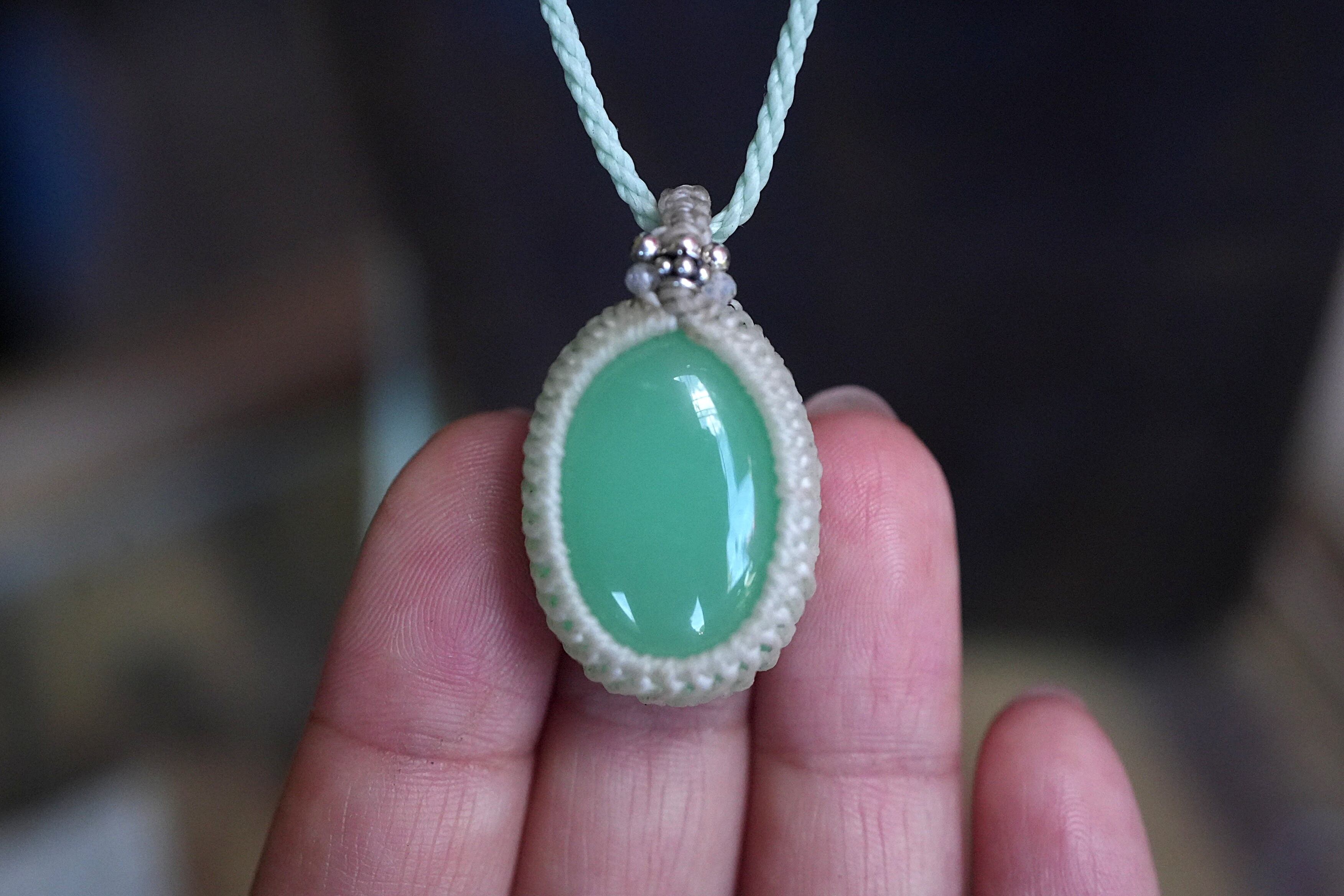 ぷっくり滑らかグリーン★クリソプレーズ マクラメネックレス1692