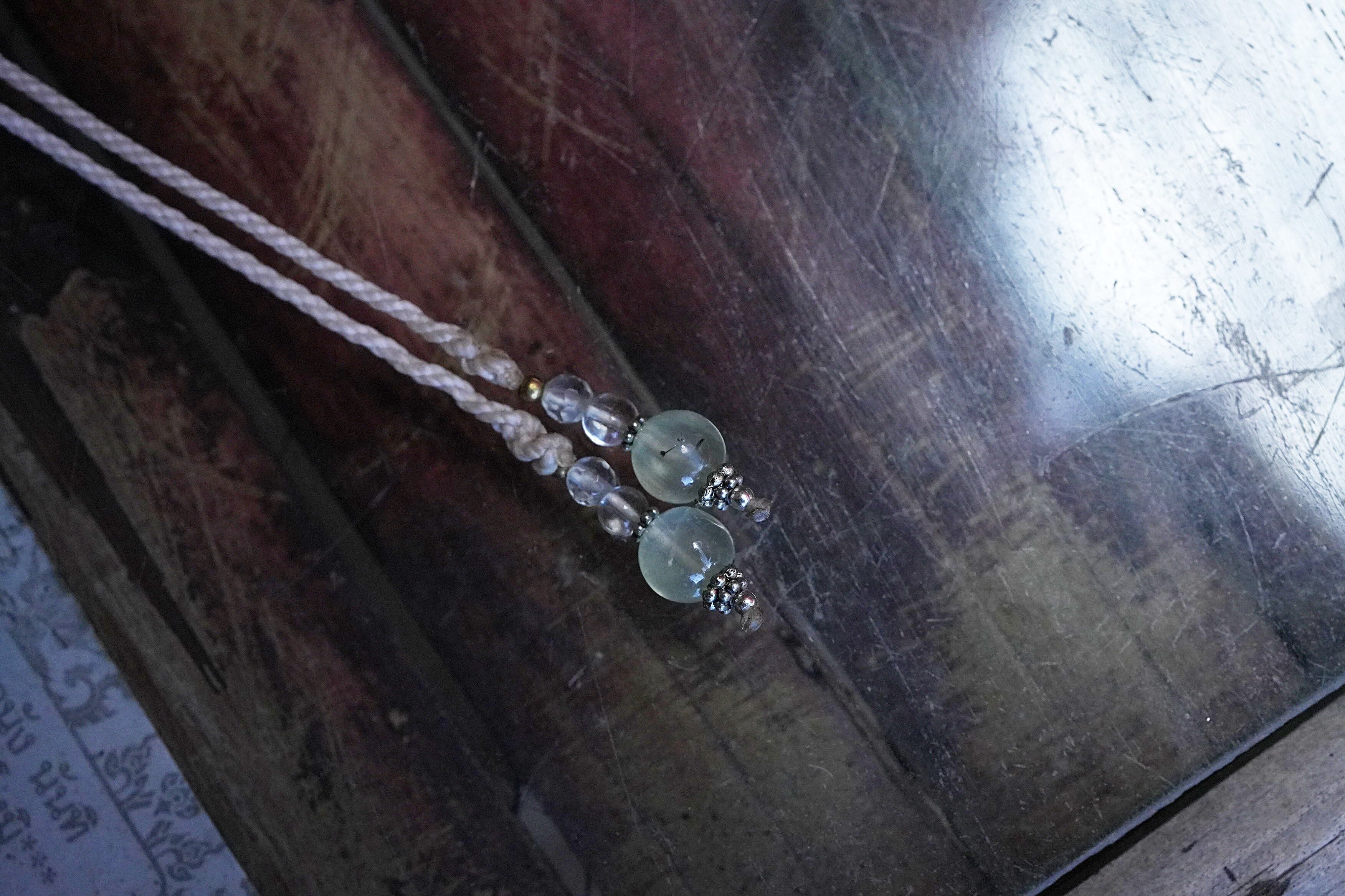 ◆アジャスター部分・首紐部分はミント色の蝋引き糸を使用。