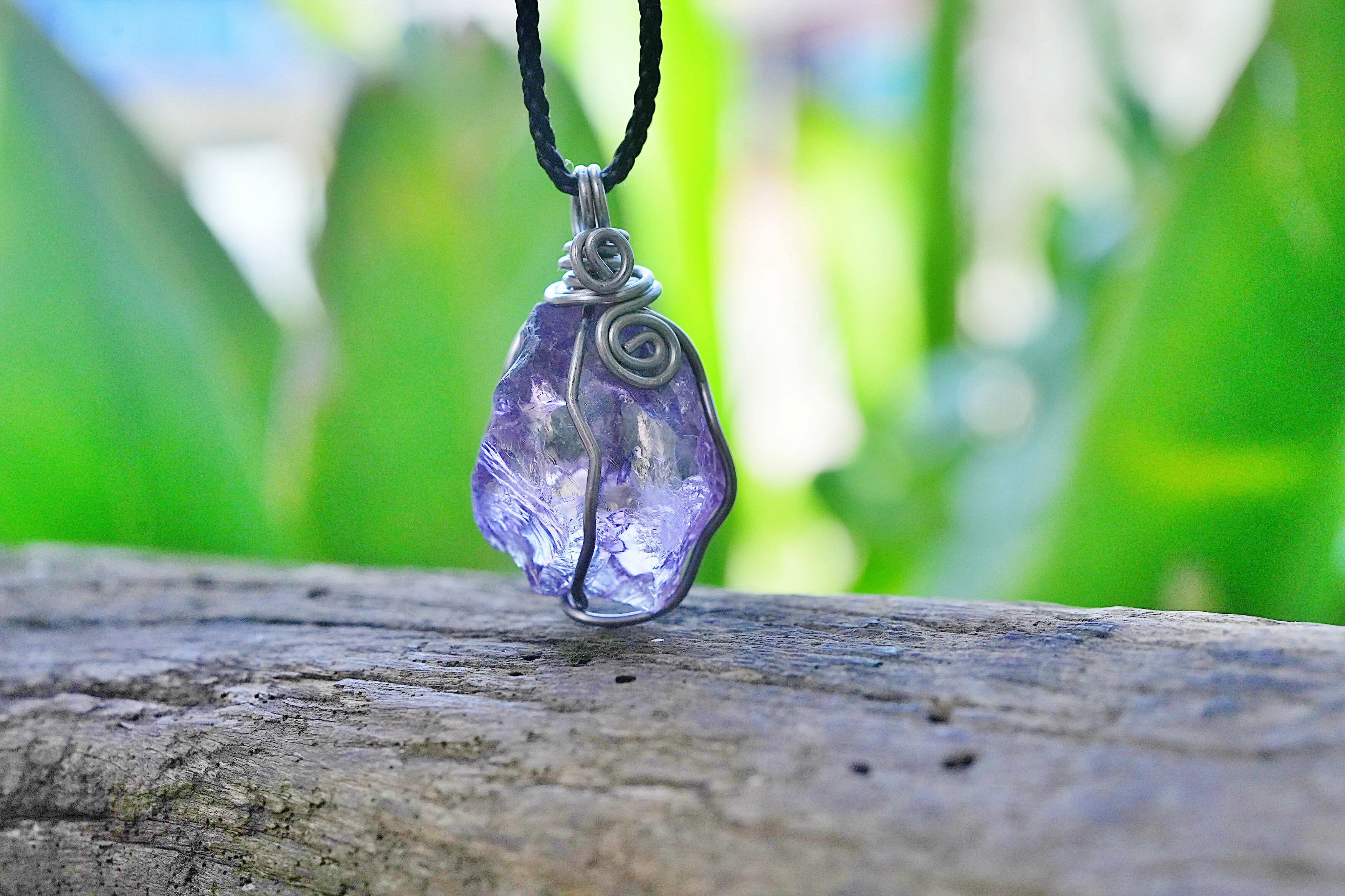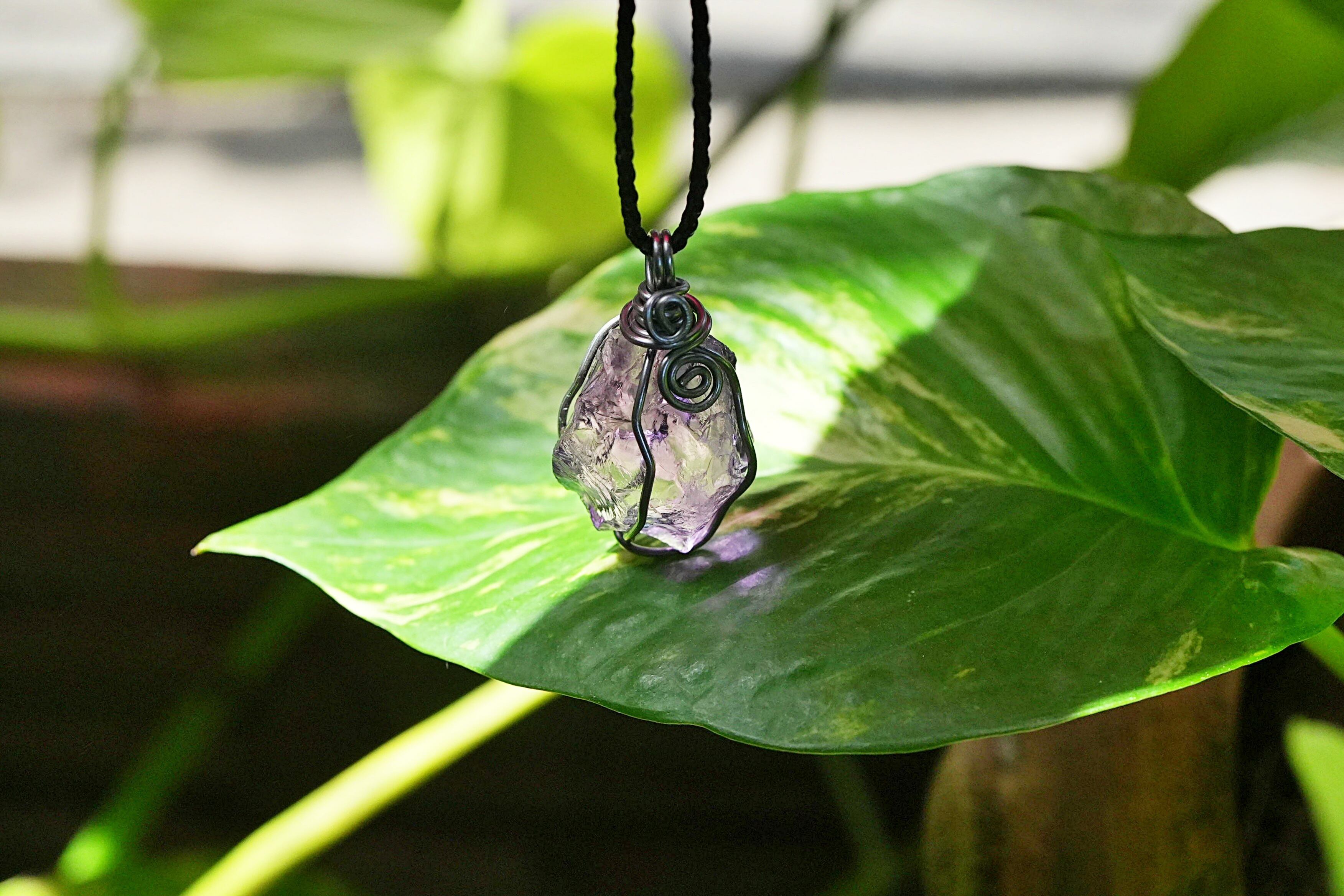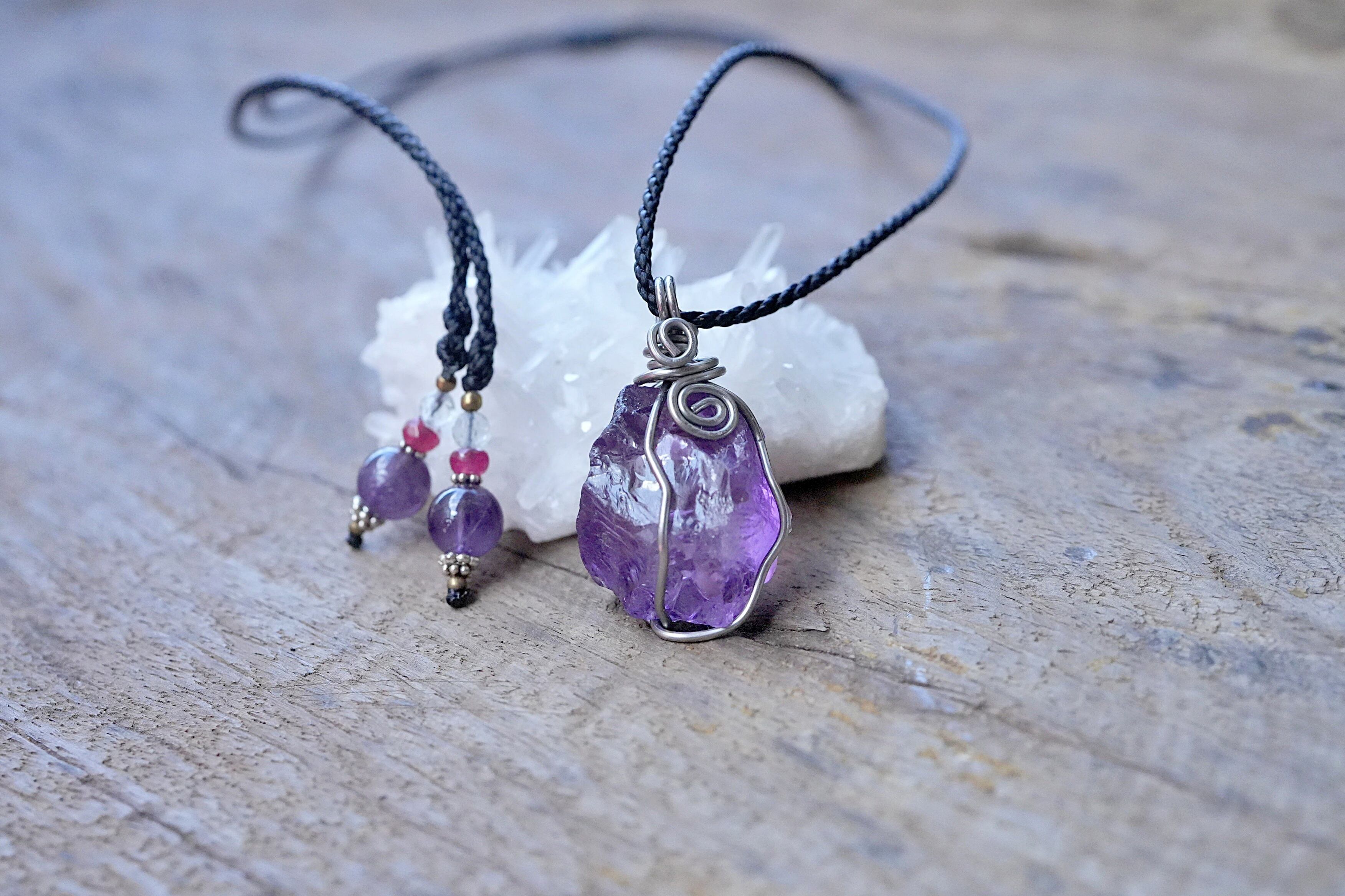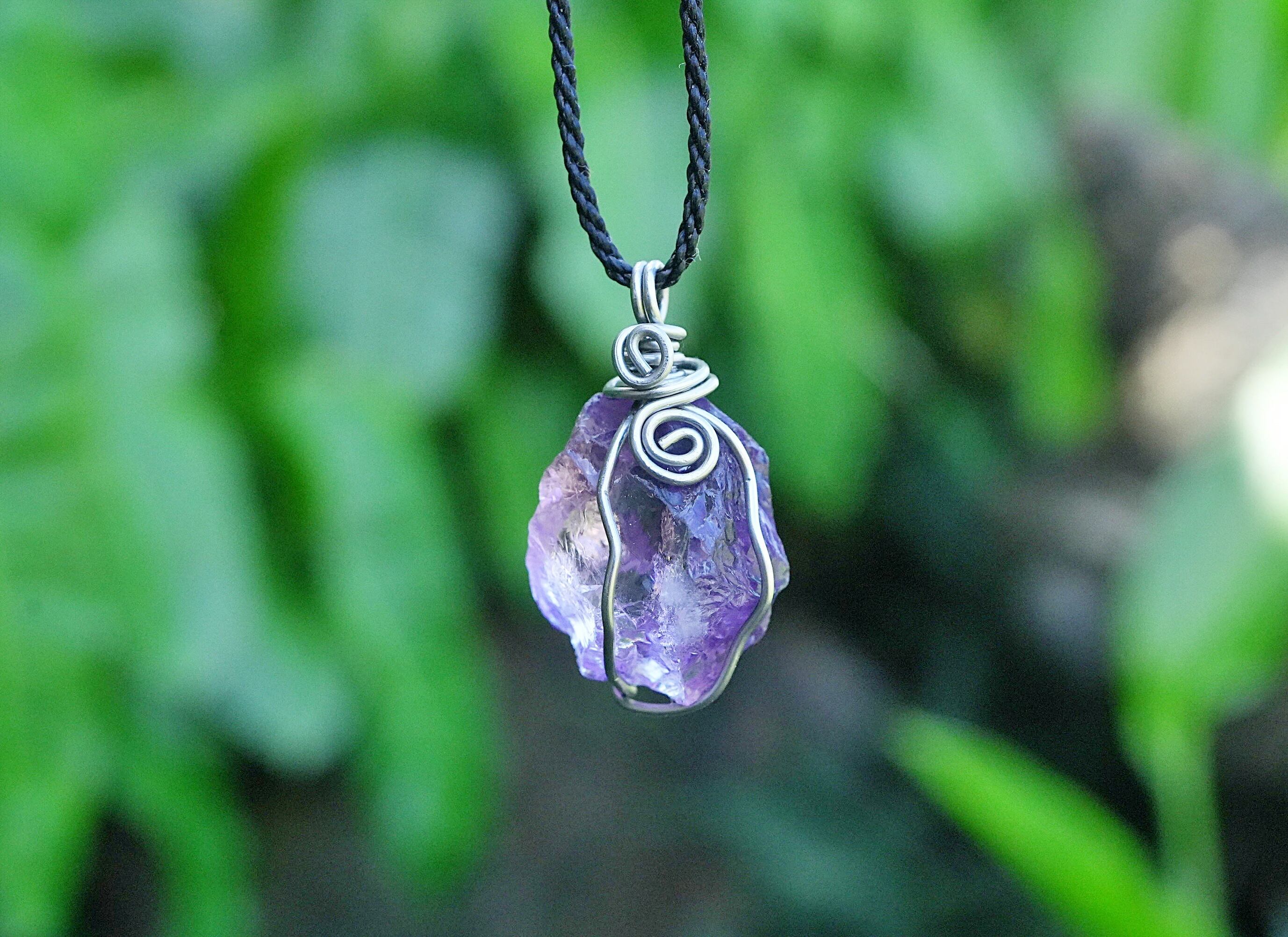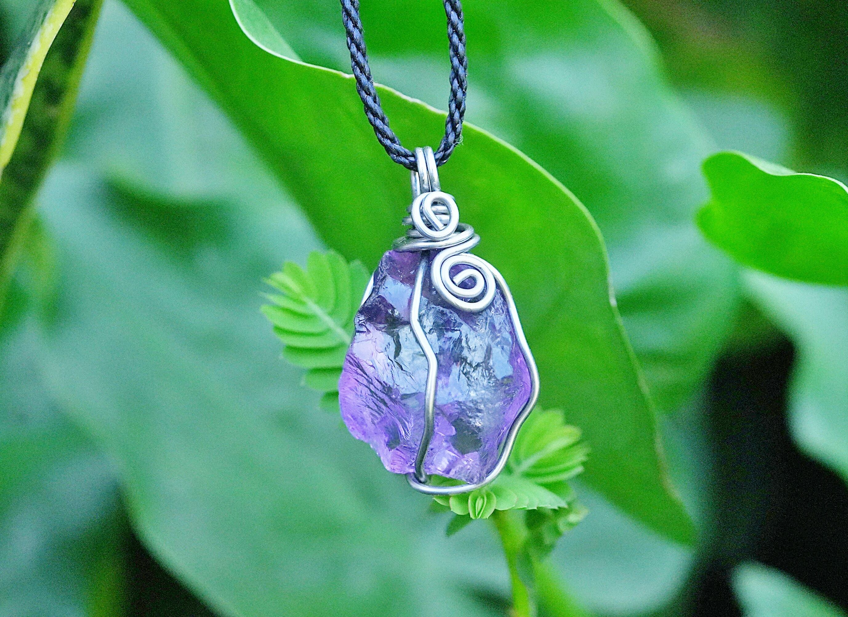高品質なアメジスト原石を使用し、ワイヤーワークを施してあります