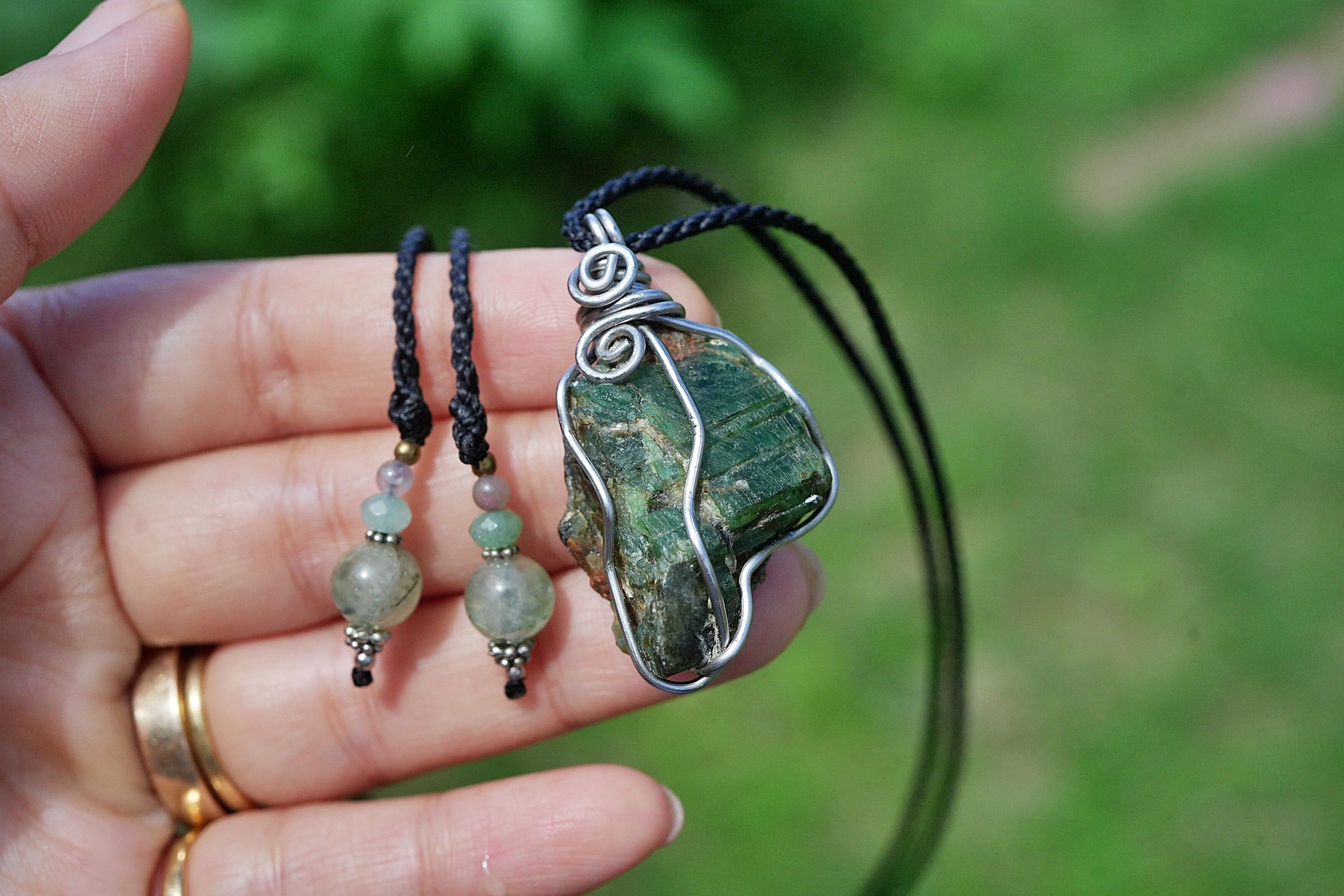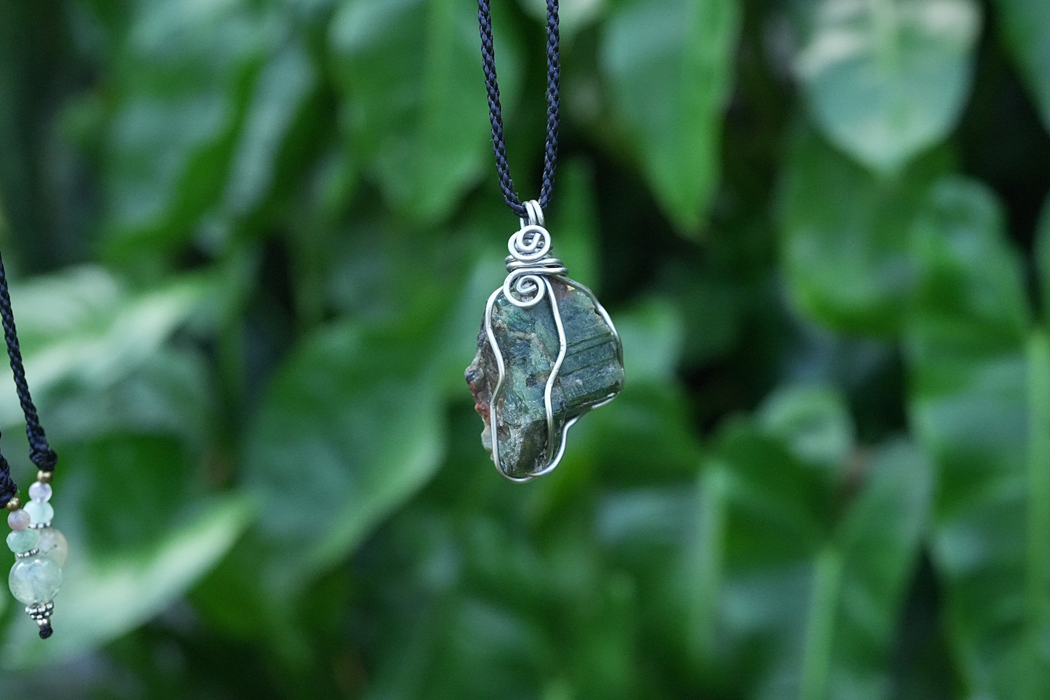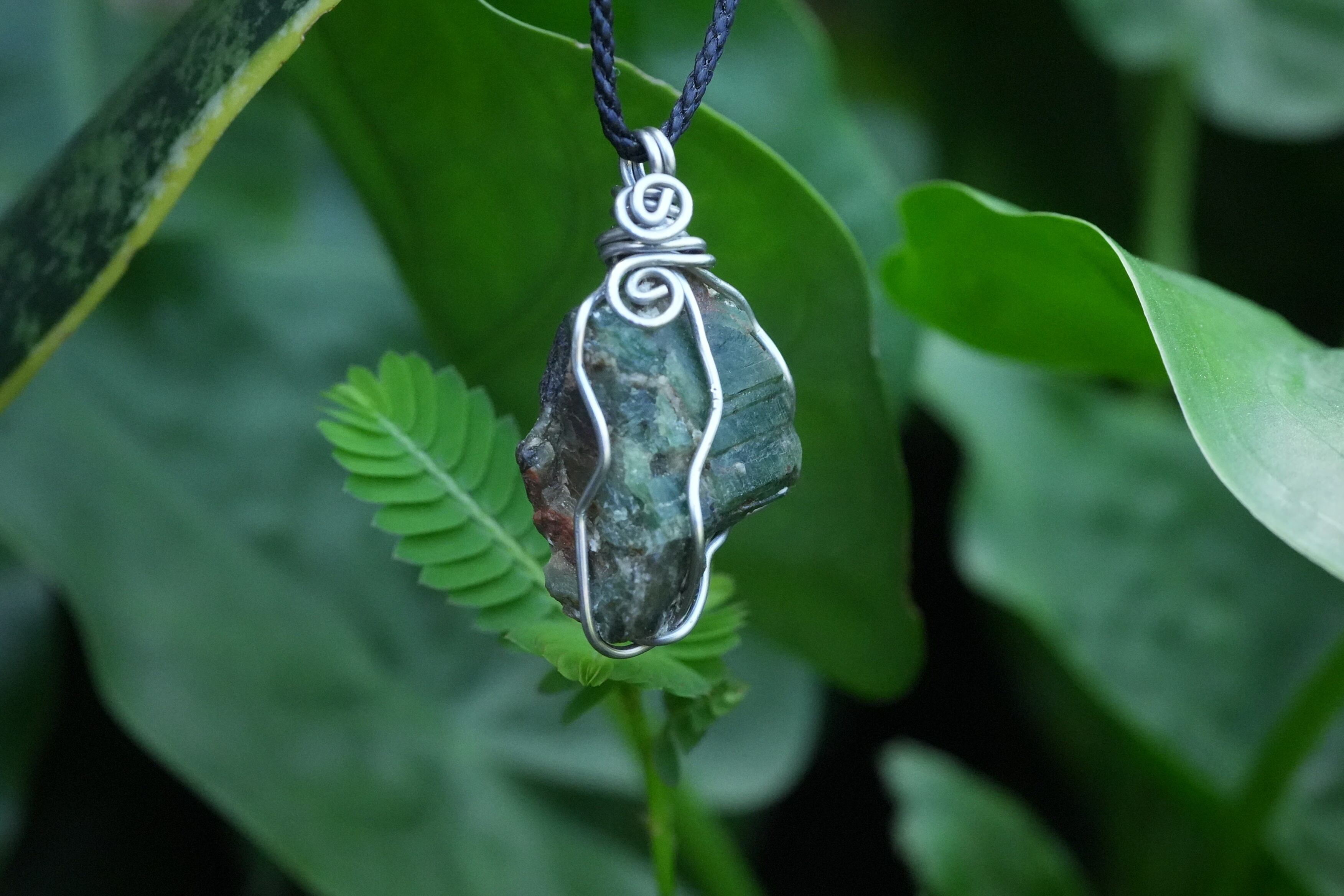 パイライト入り★エメラルド原石 ワイヤーネックレス1697