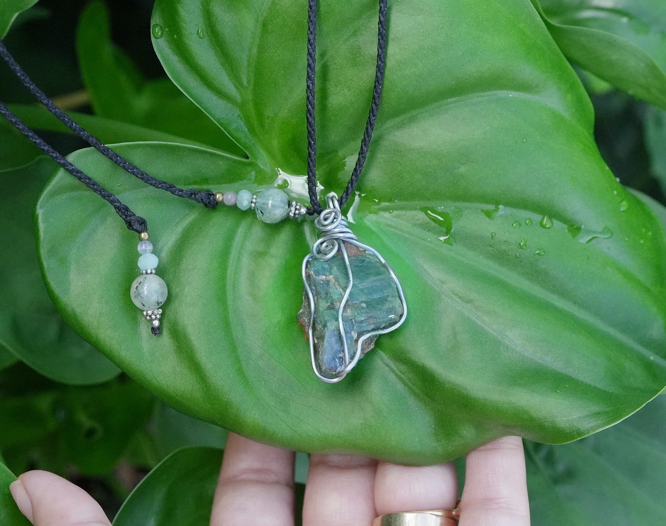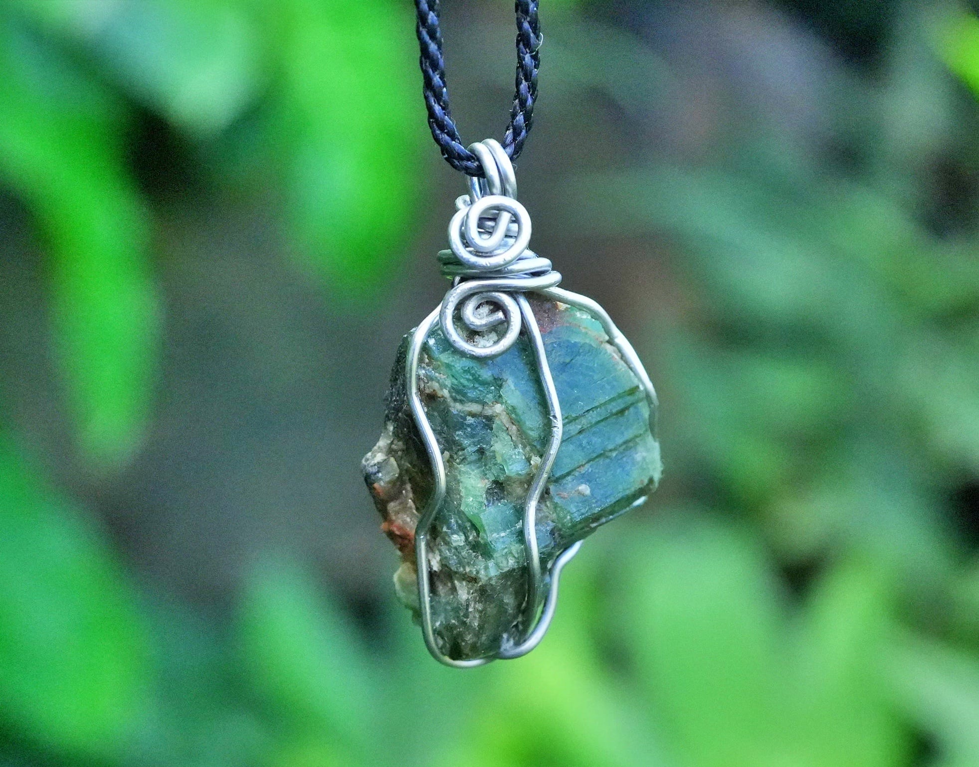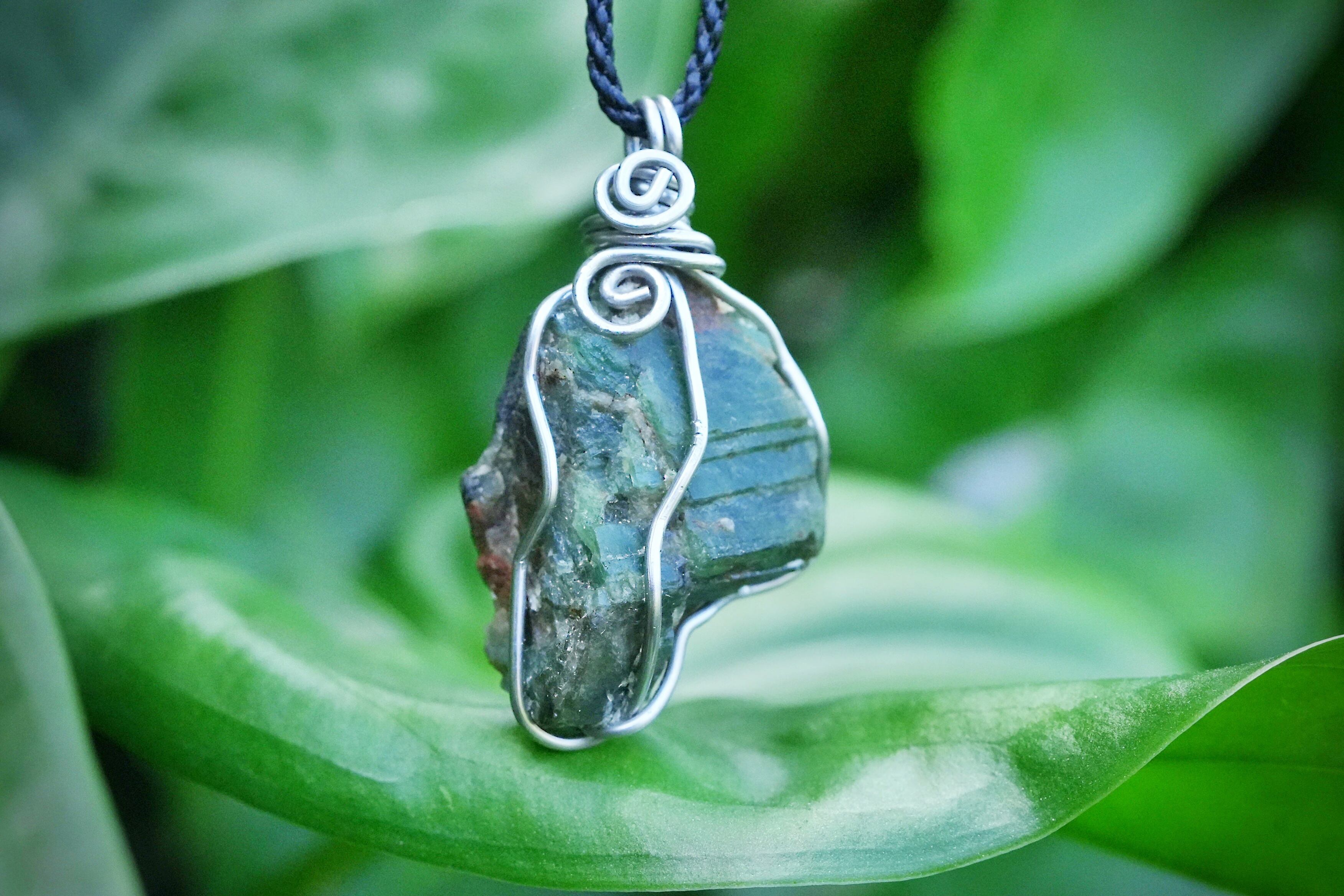 原石に沿ってワイヤーで巻き付けています。