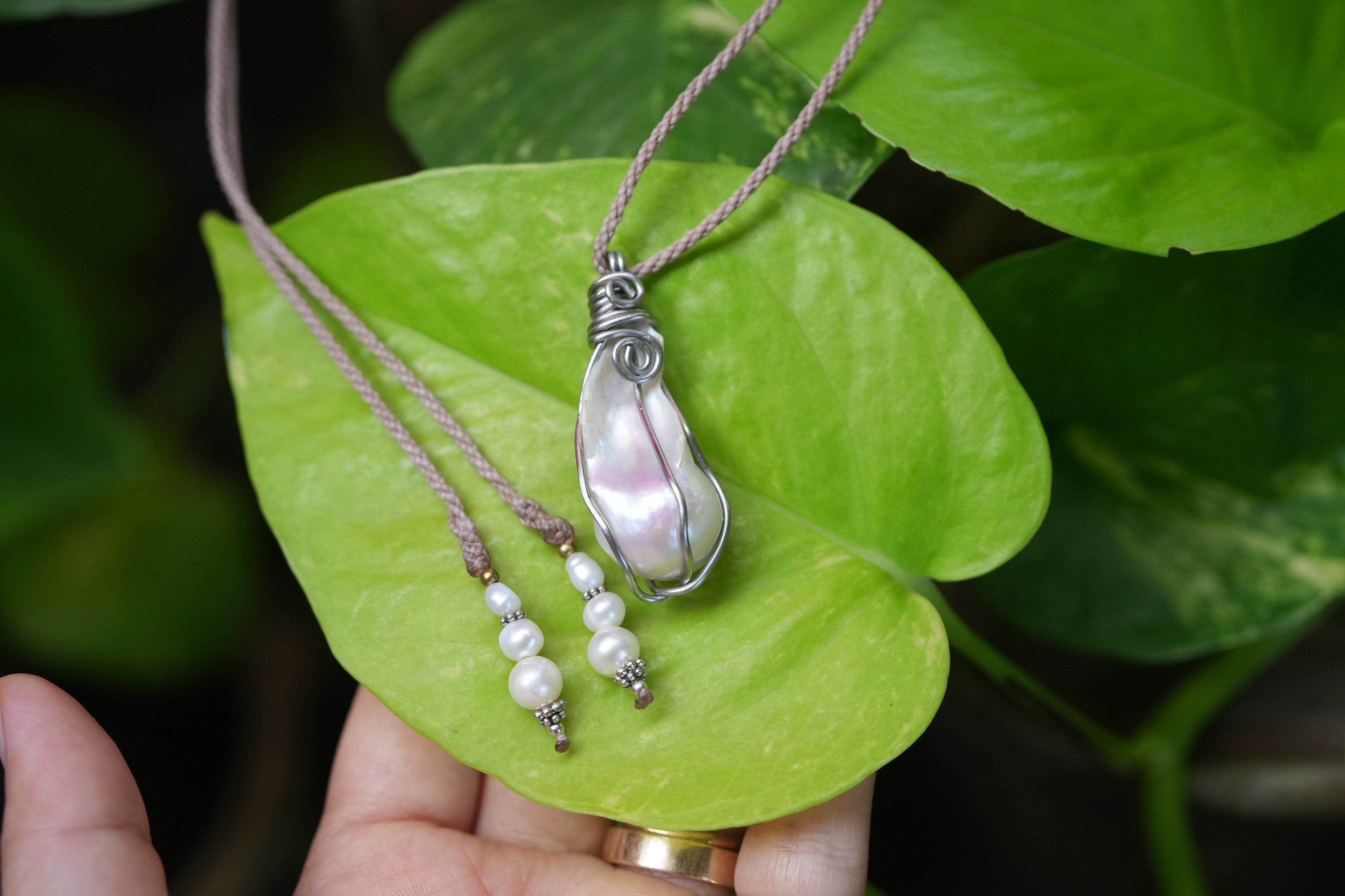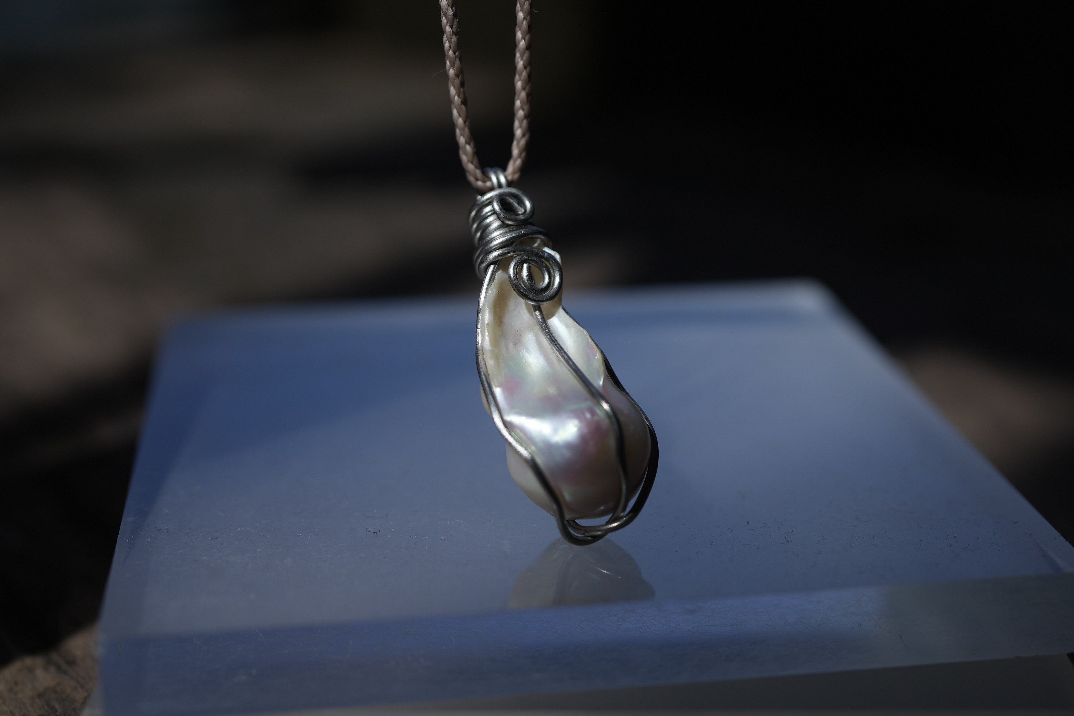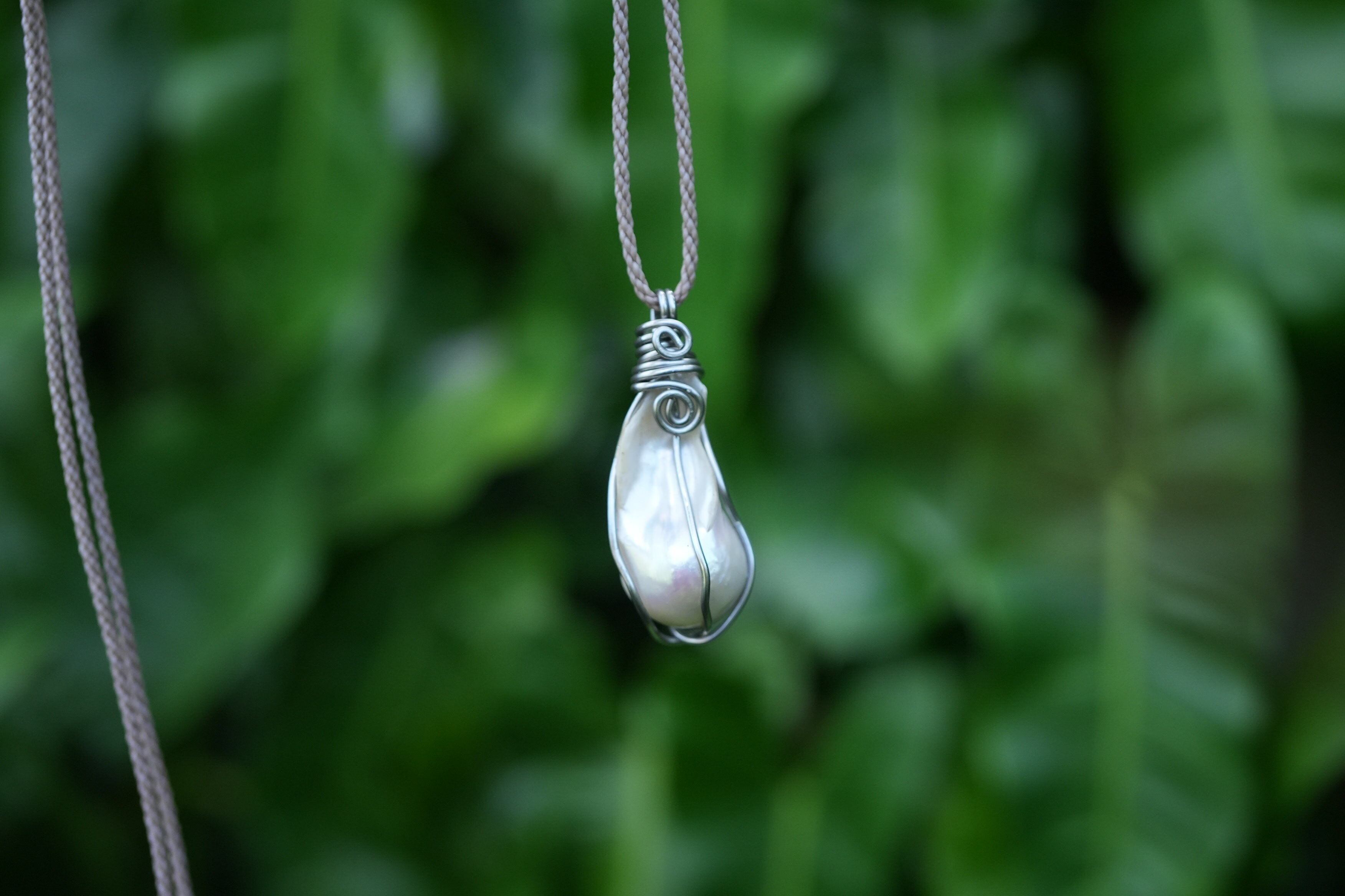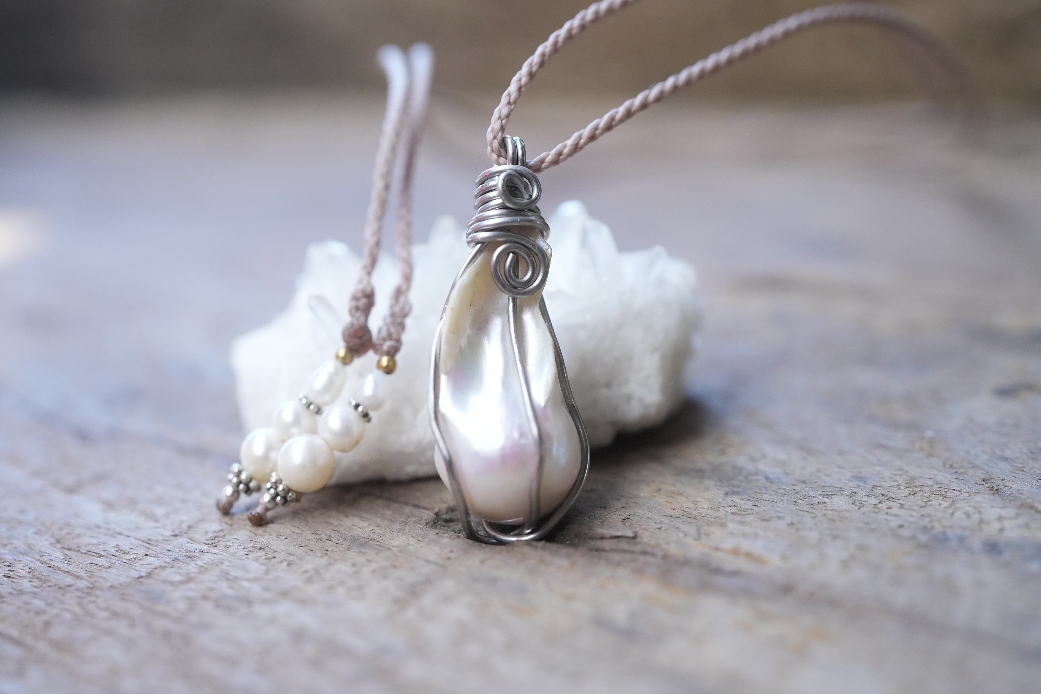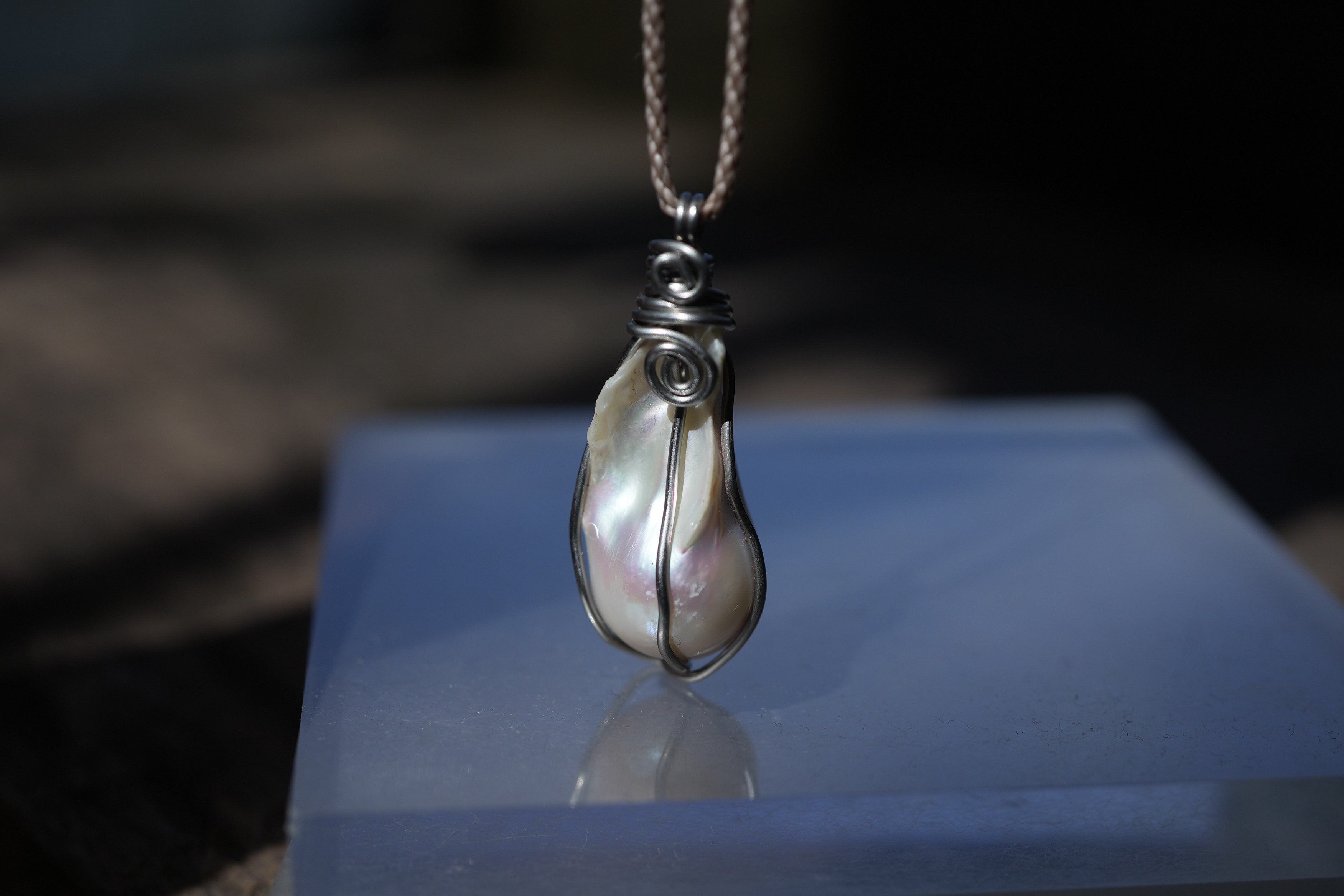 パールを傷つけず、大きなワイヤーを巻き付けて