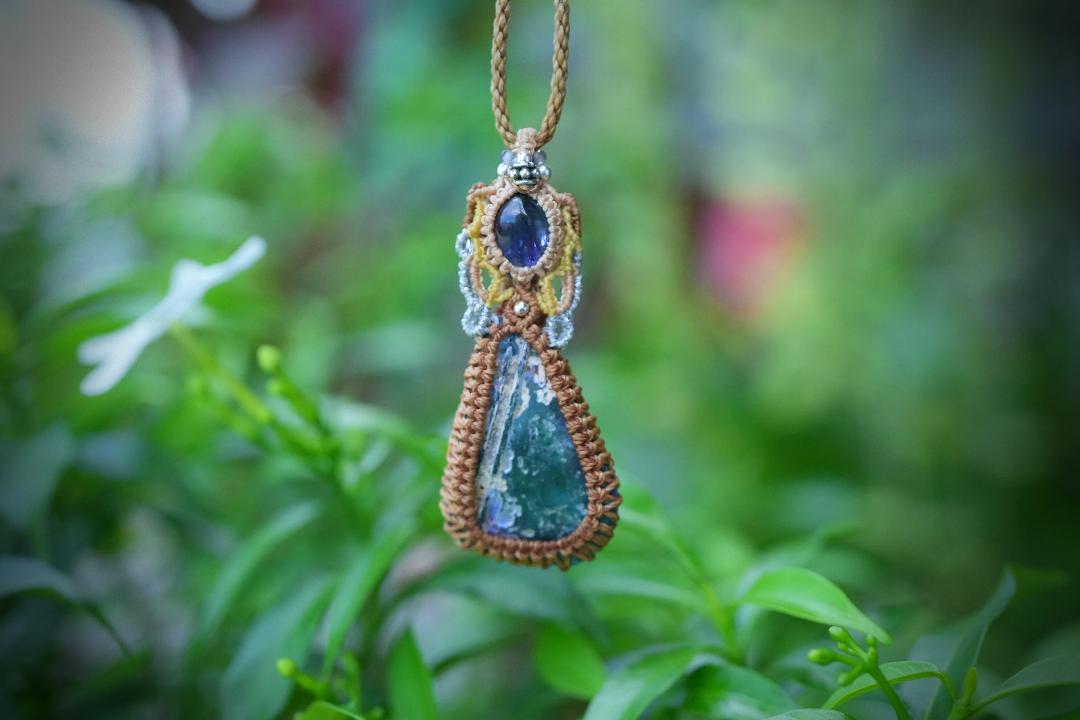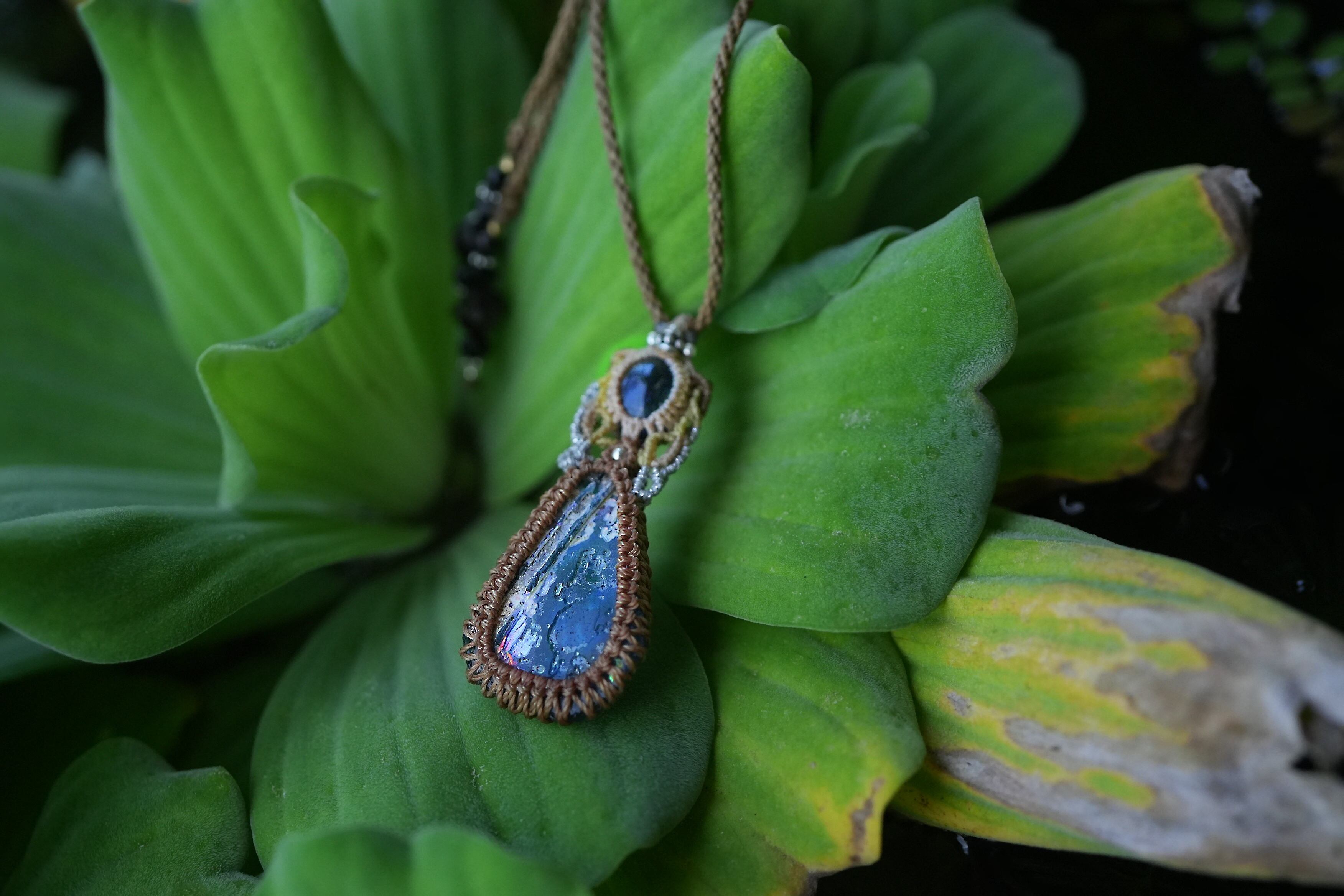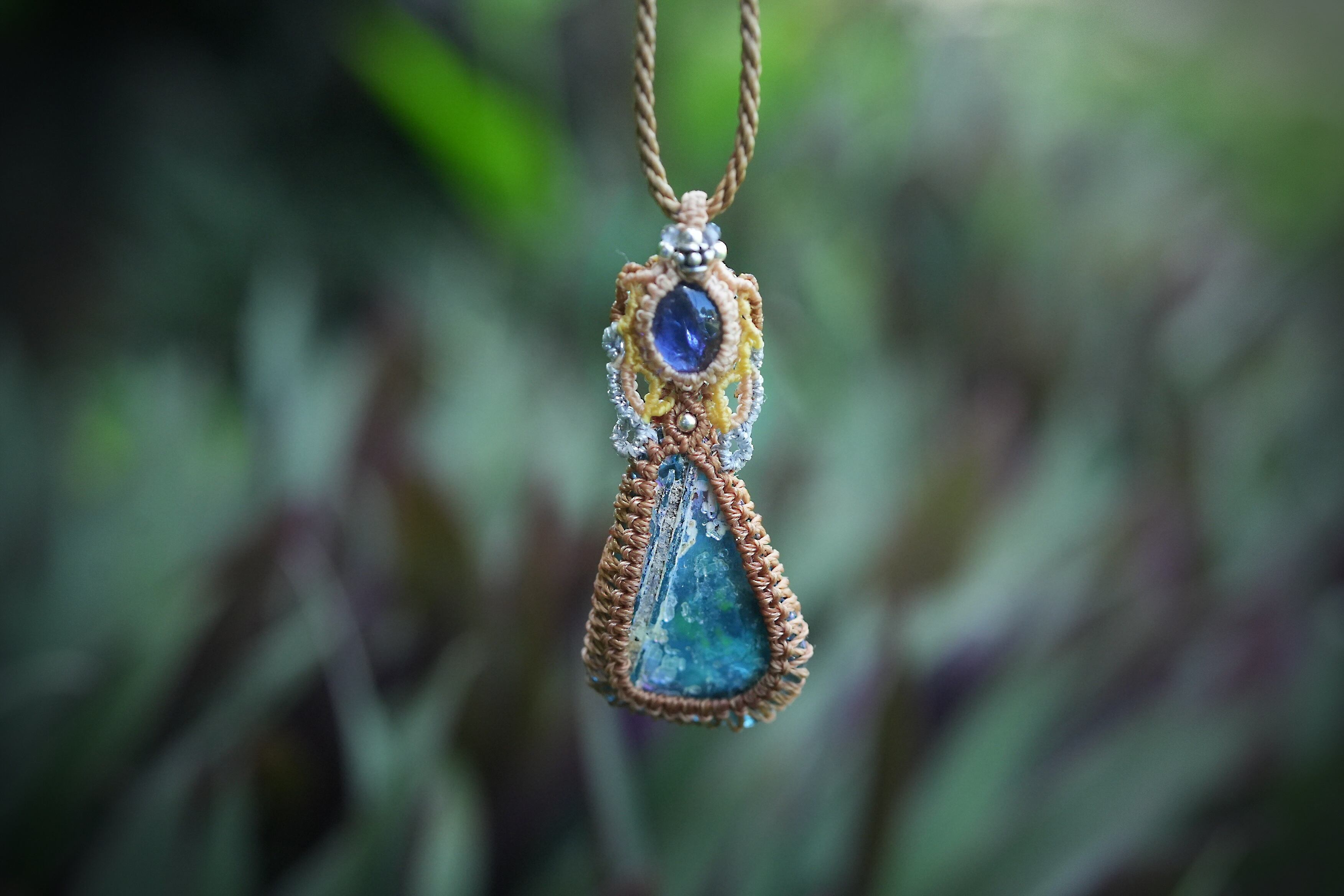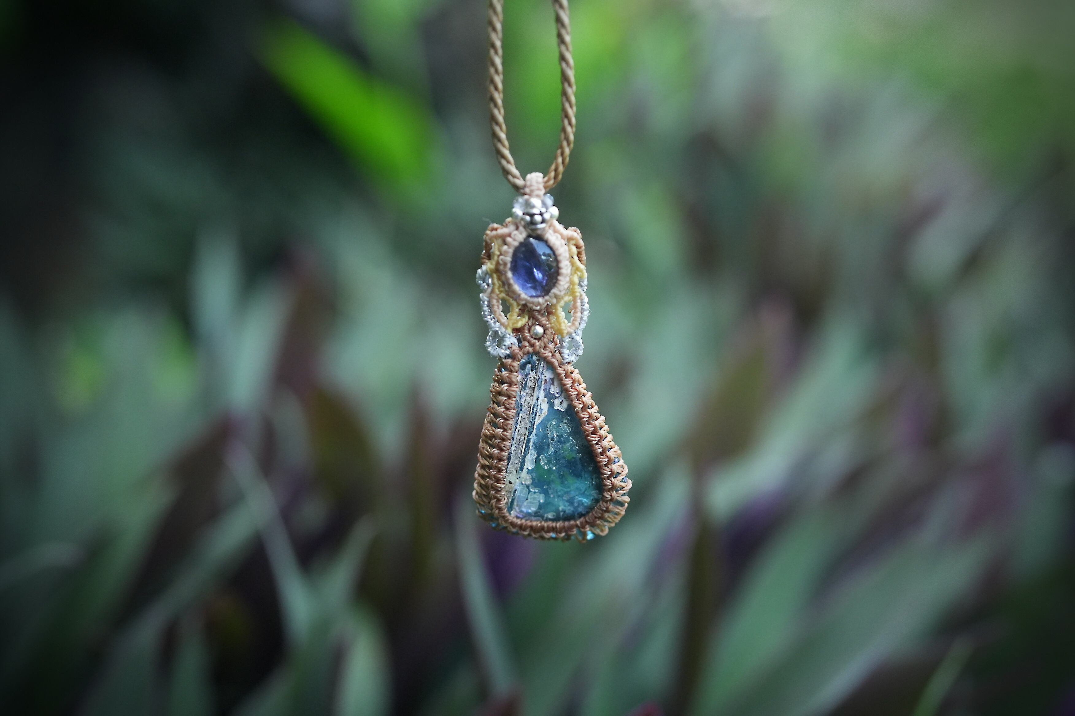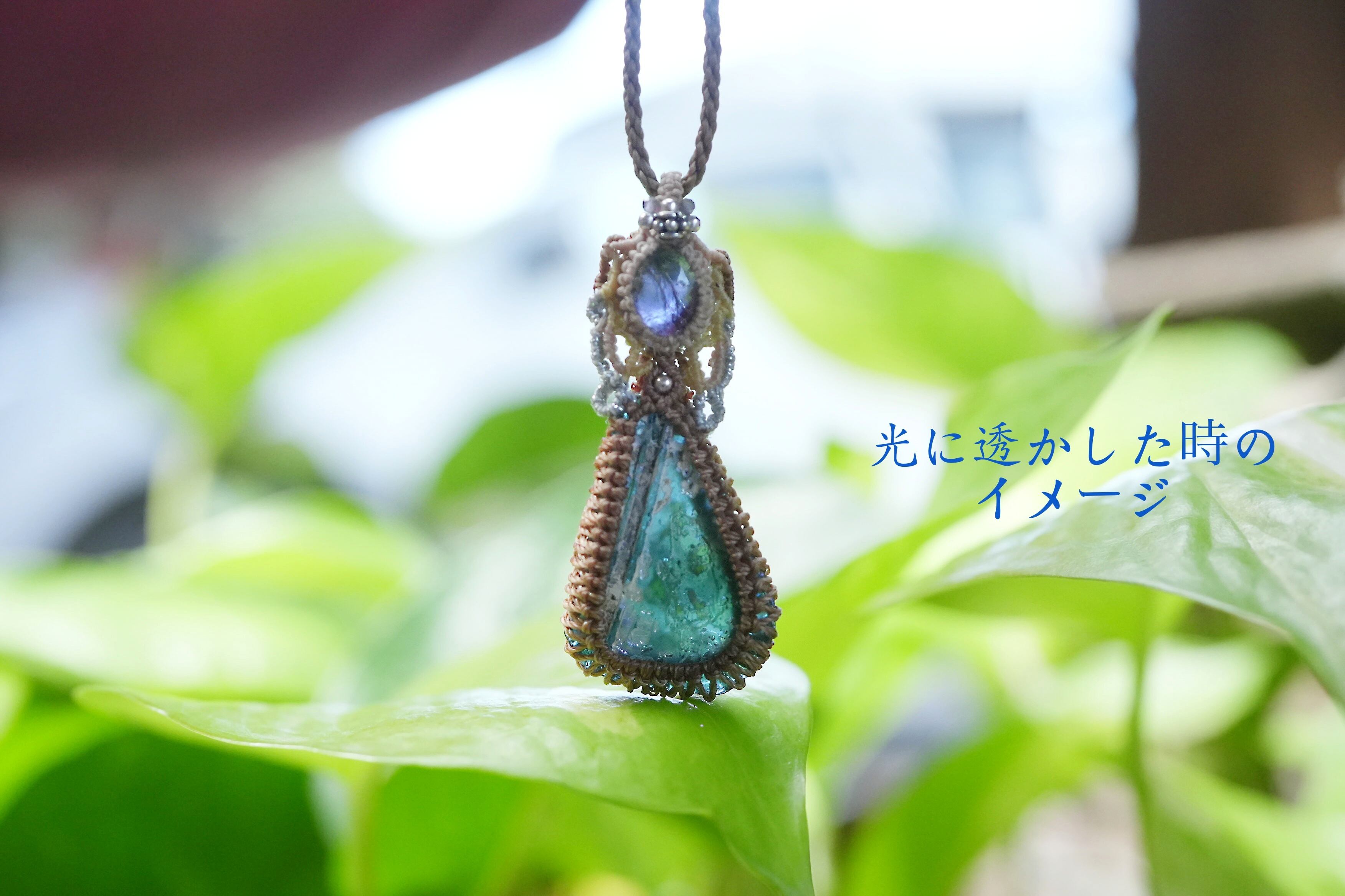 このたびはトップ部分に藍色でぷるっとしたアイオライトを結び