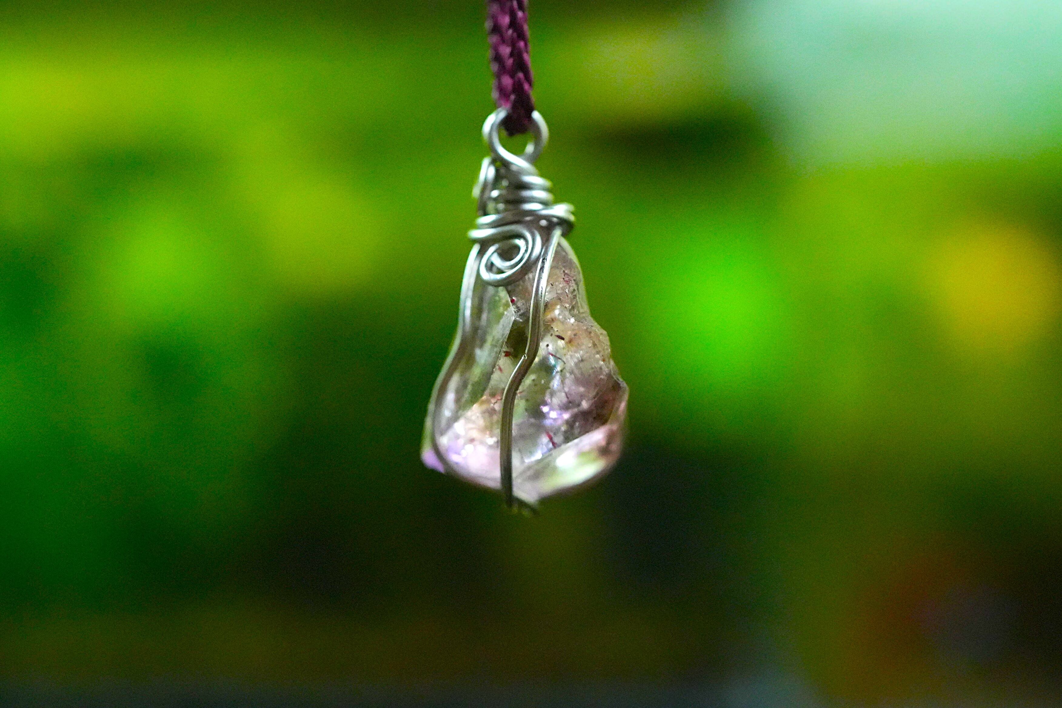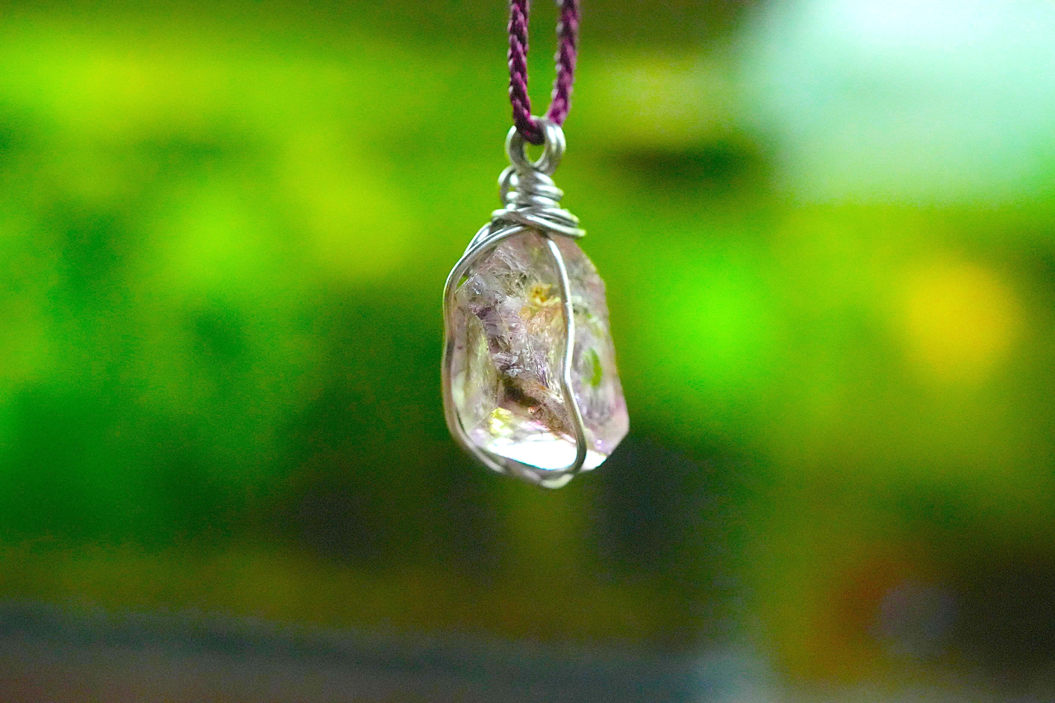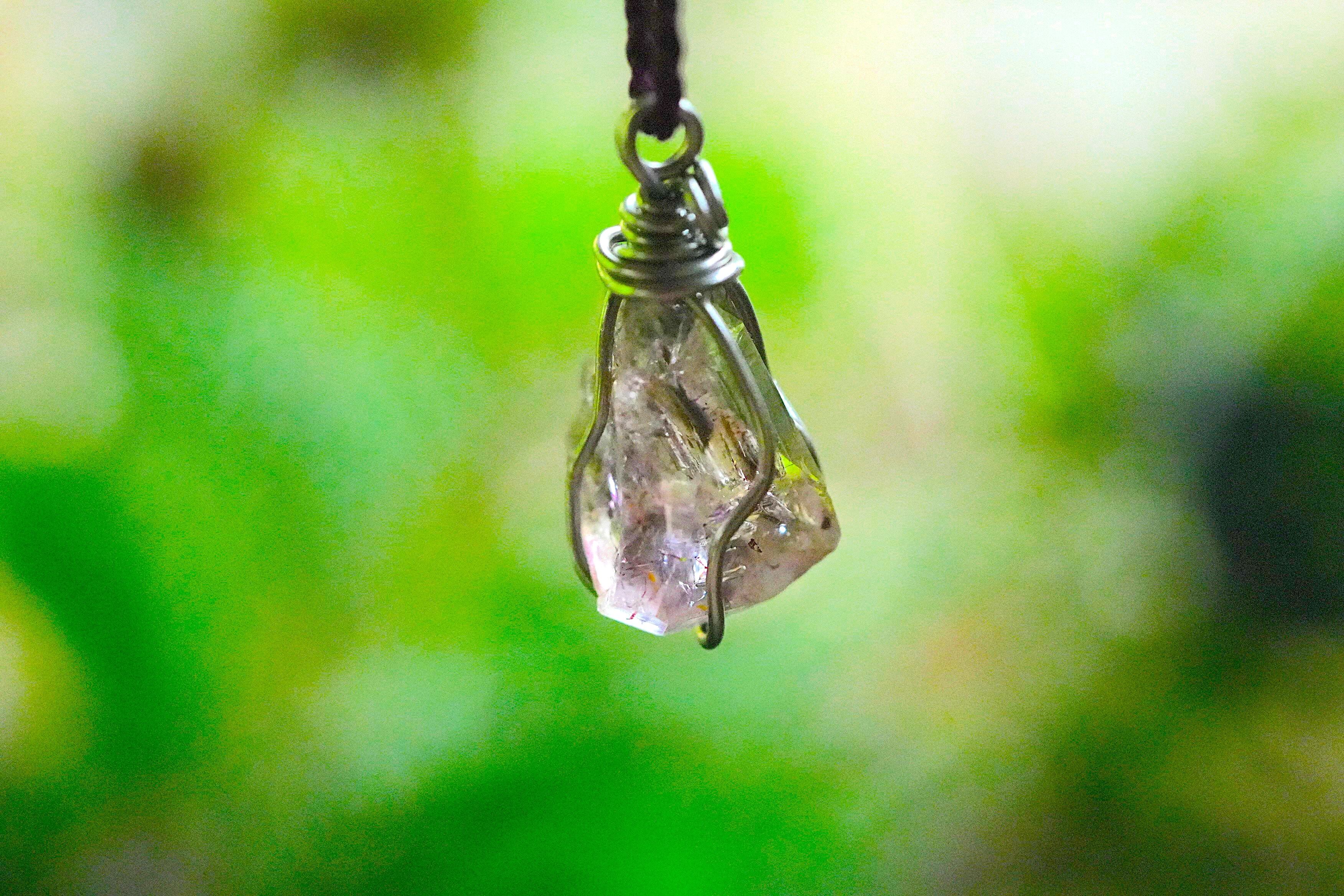 自然の原石の天然石の形をフォローしたワイヤーワークをお楽しみください。