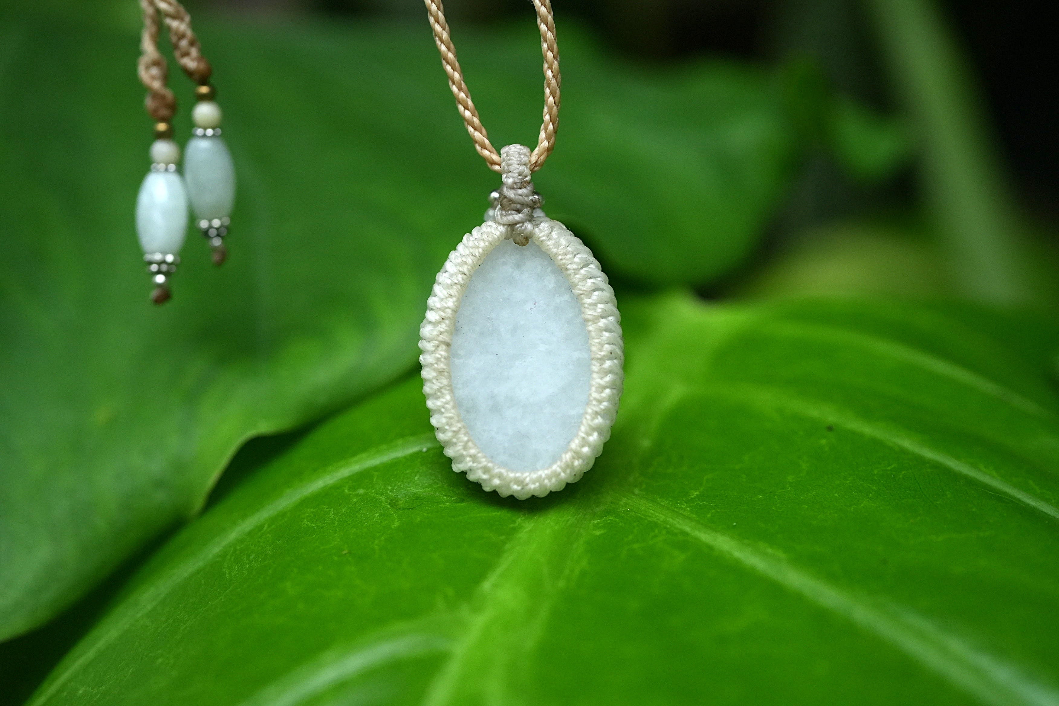 大粒★白雪ラベンダー★本翡翠マクラメネックレス1683