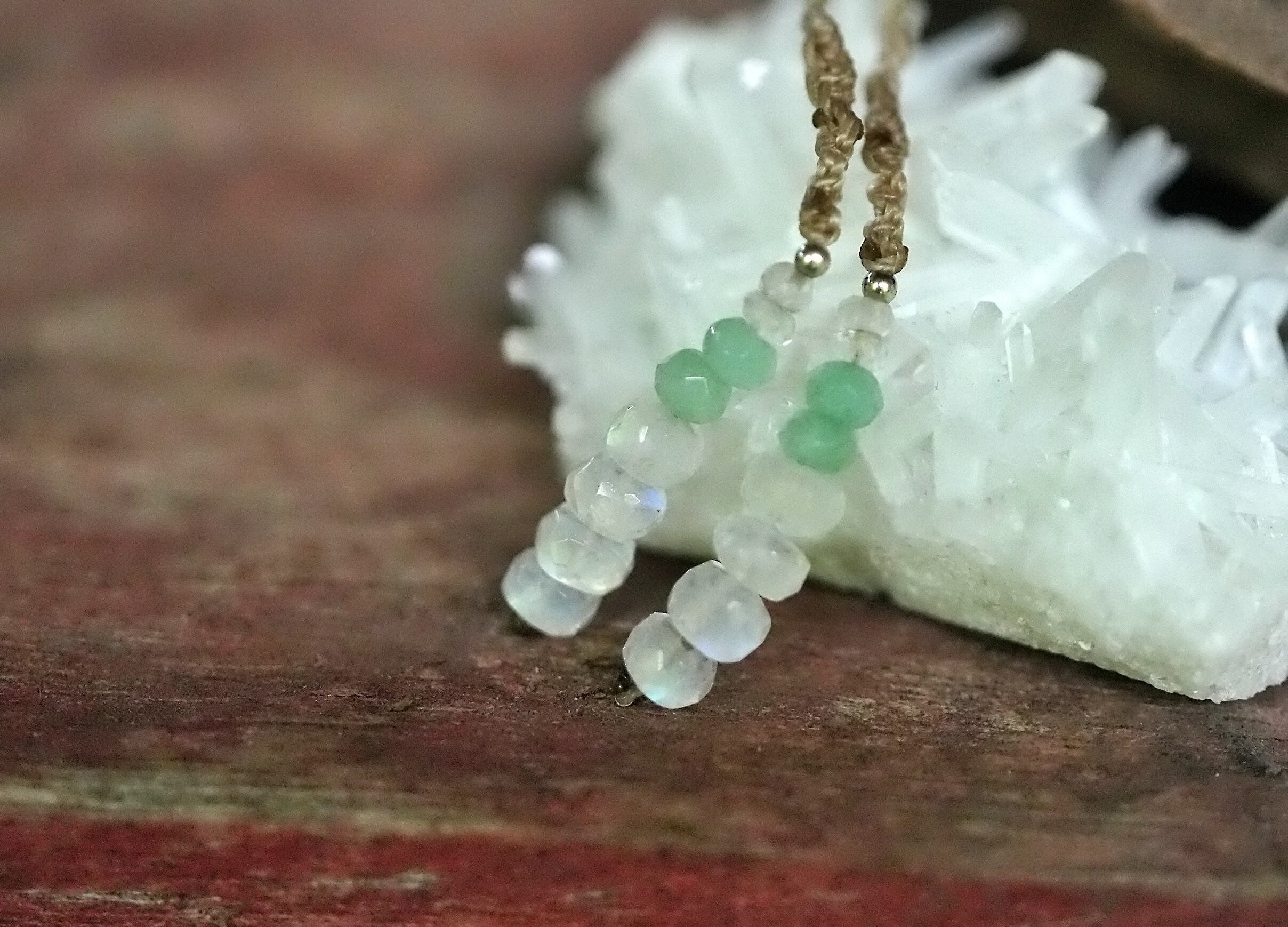 星の輝き★翡翠★レインボームーンストーン★ マクラメネックレス1686
