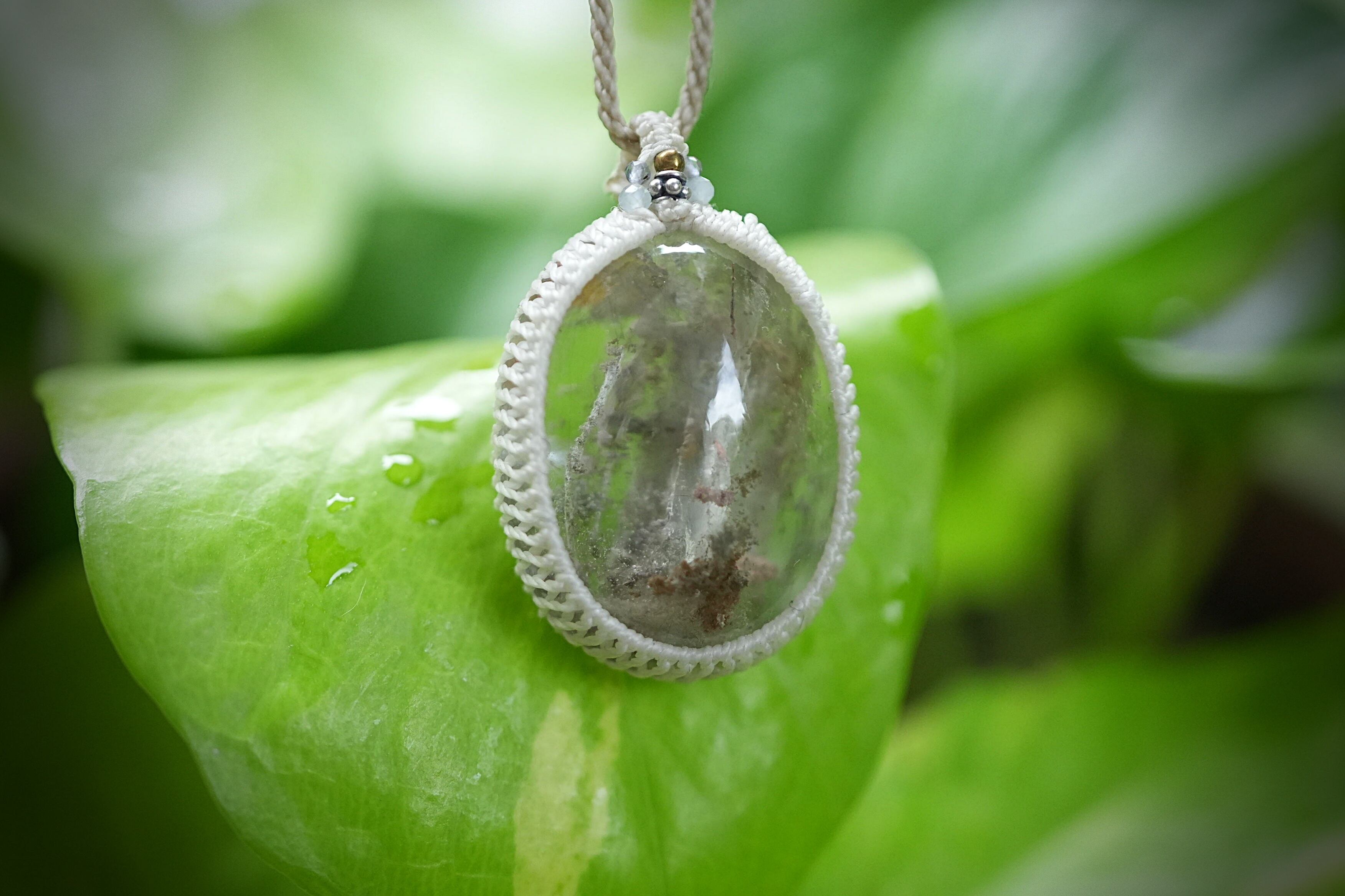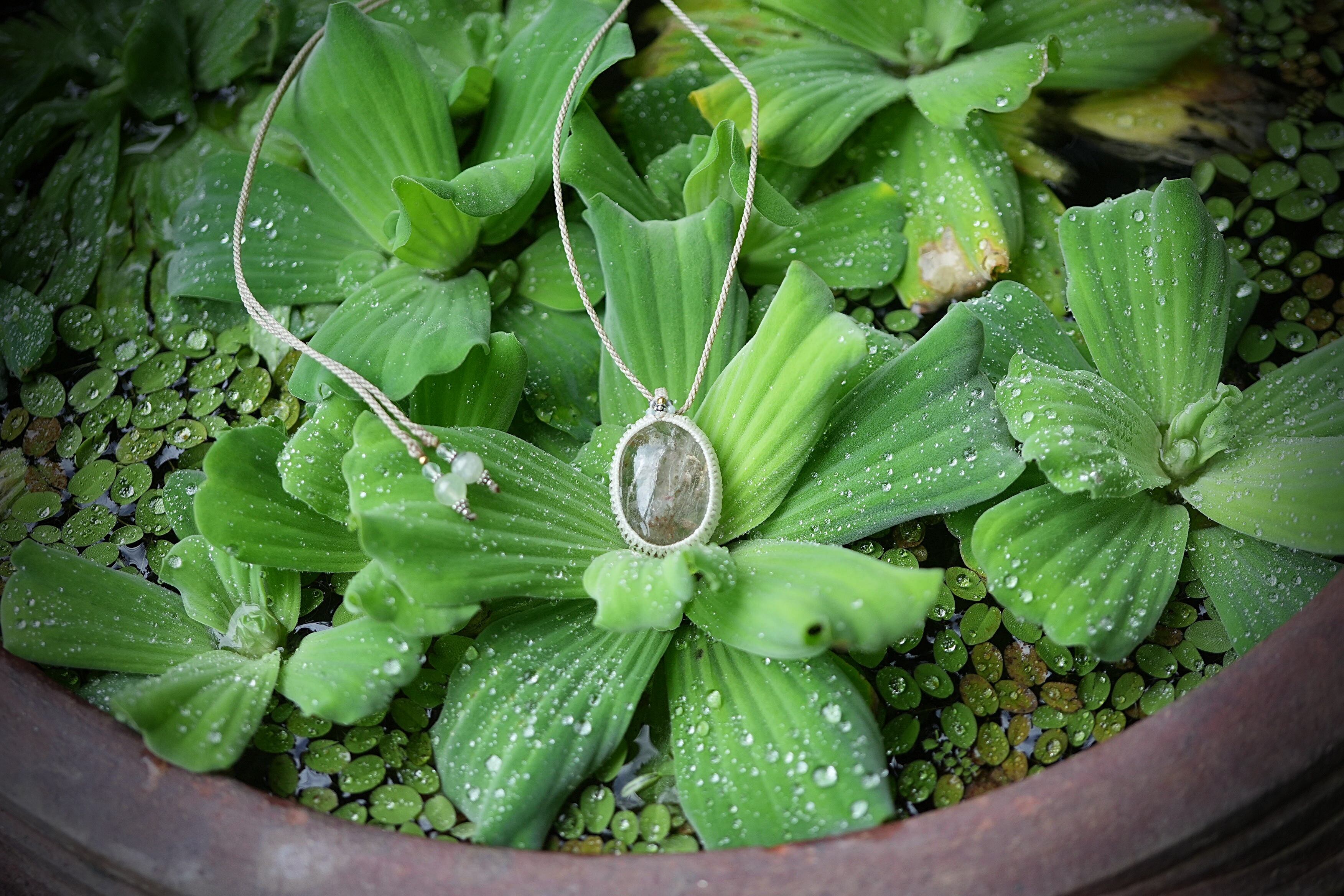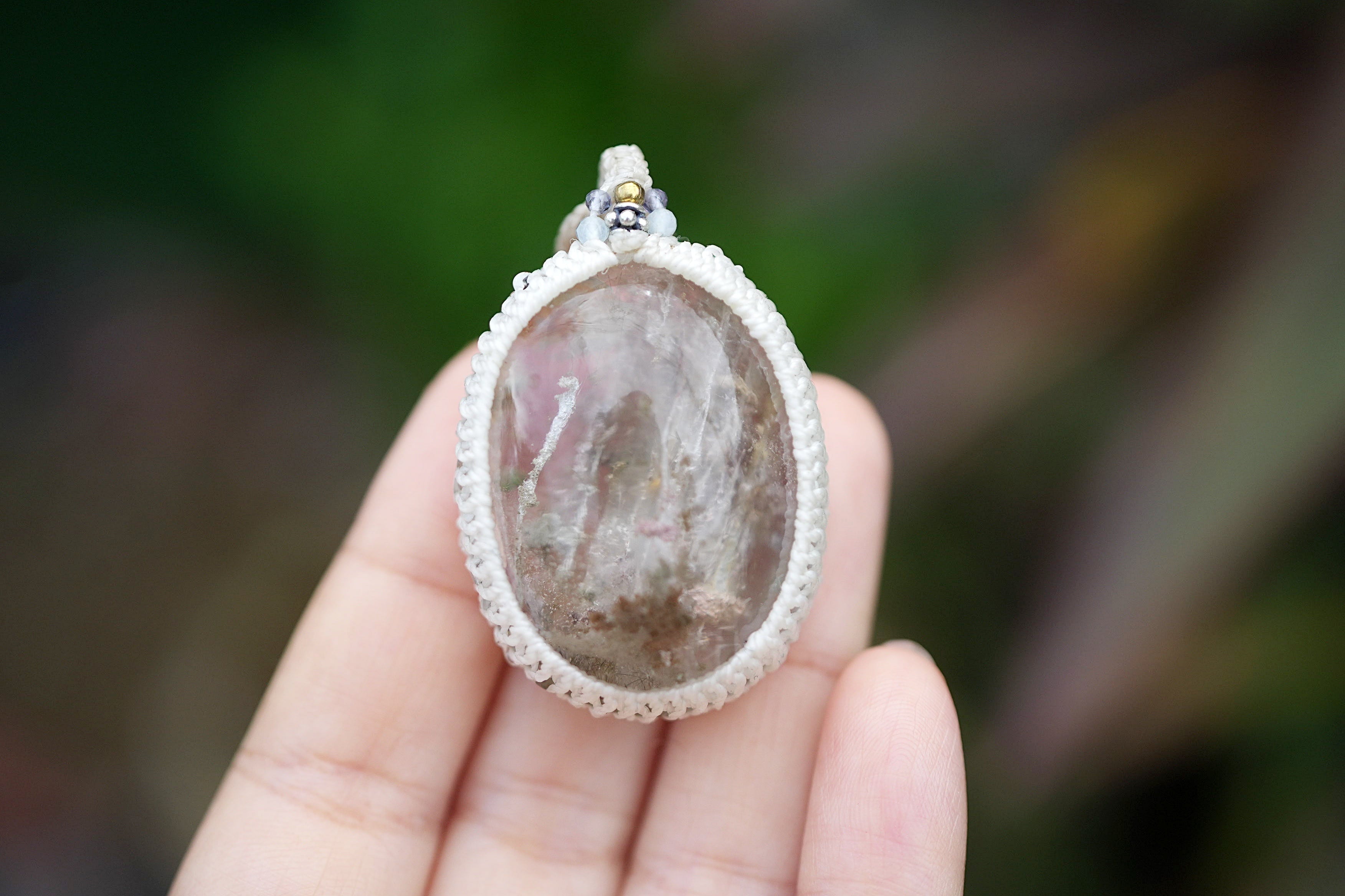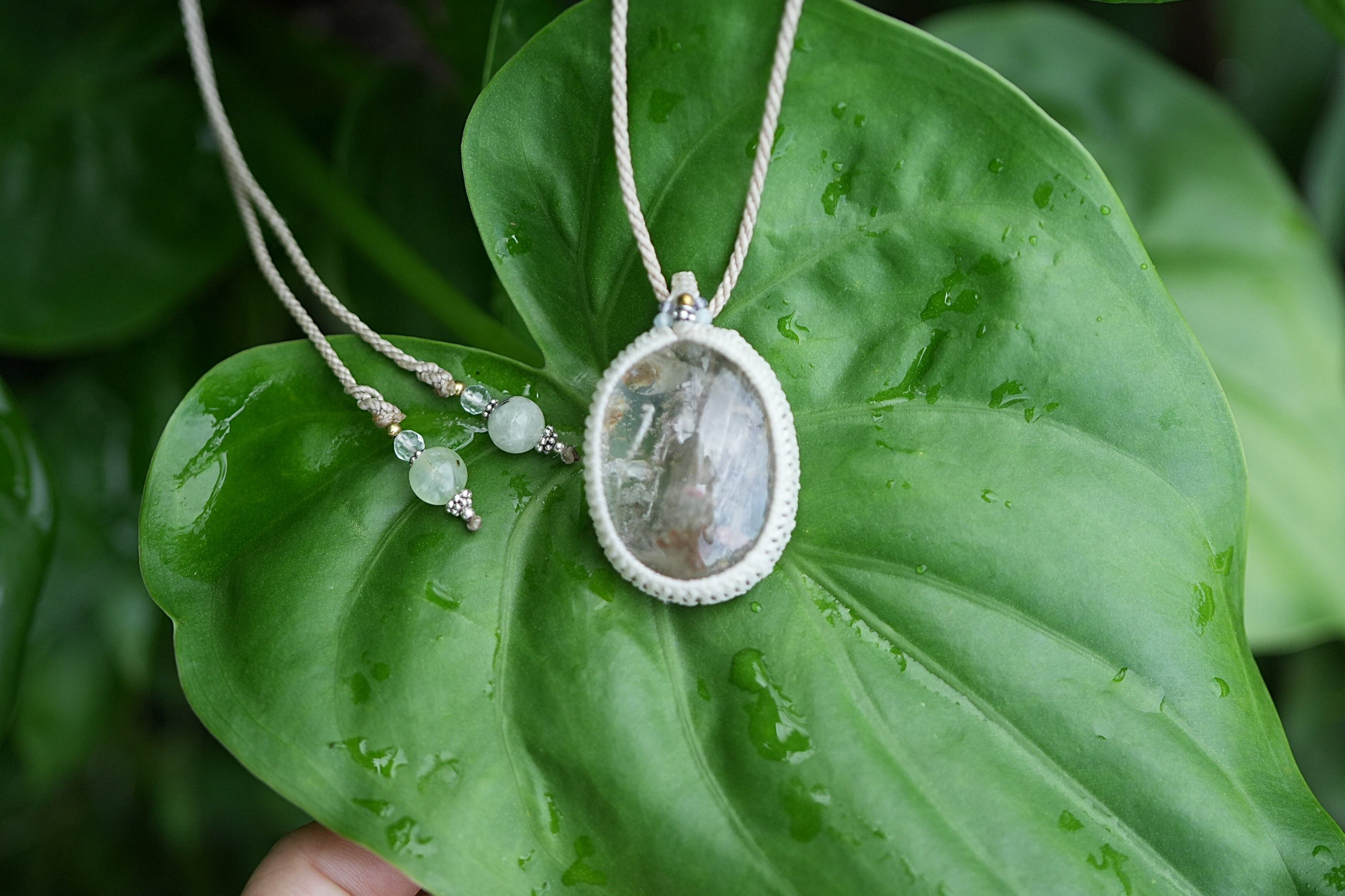 桜色と緑の滝★中粒★ガーデンクォーツ マクラメネックレス1700