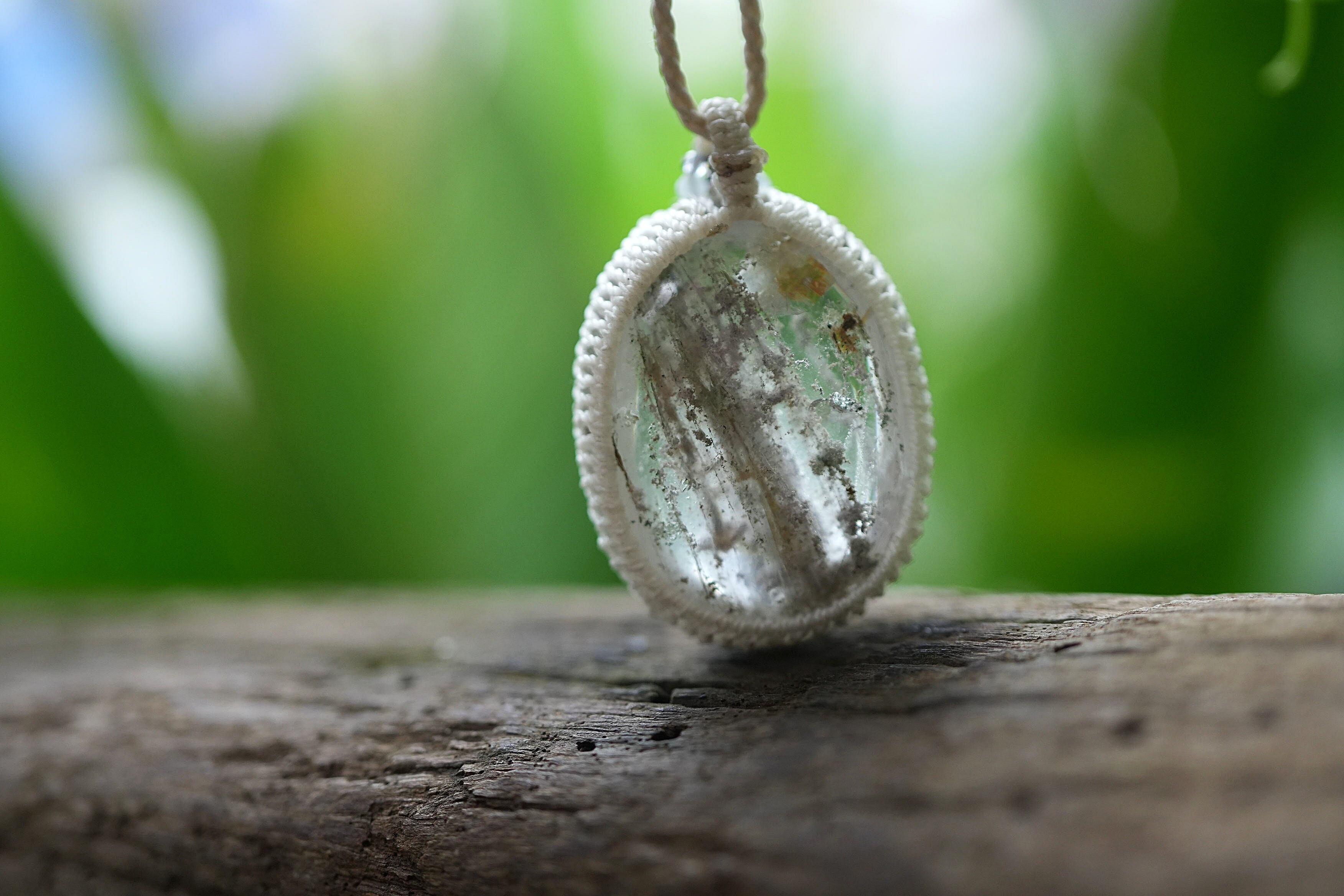 ◆このたびはナチュラルホワイト色の蝋引き糸を使用しマクラメ編み装飾を施しました。