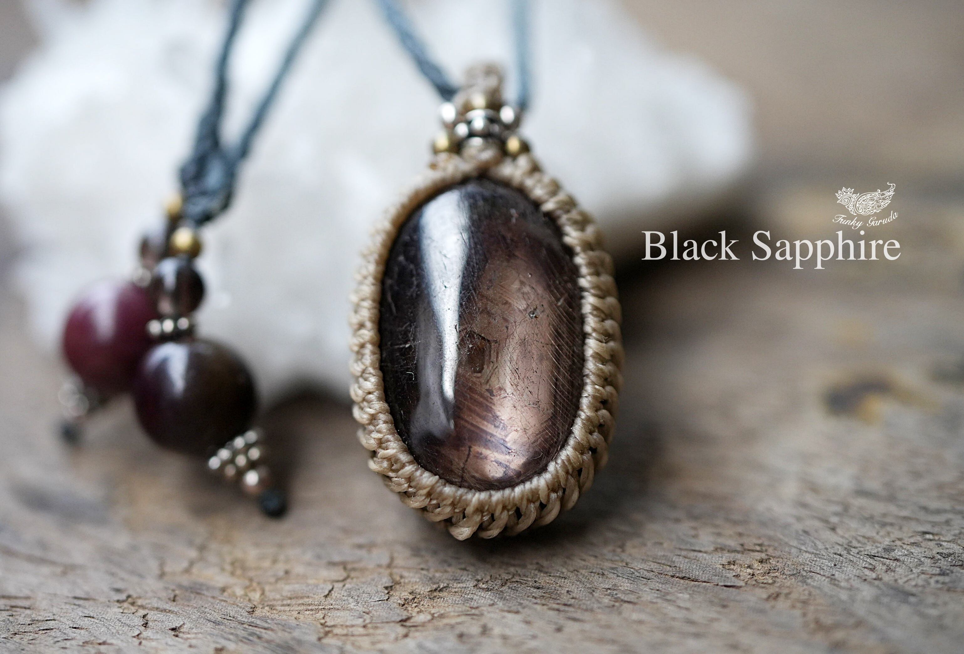 コランダムのおへそ★ブラックサファイア マクラメネックレス1701