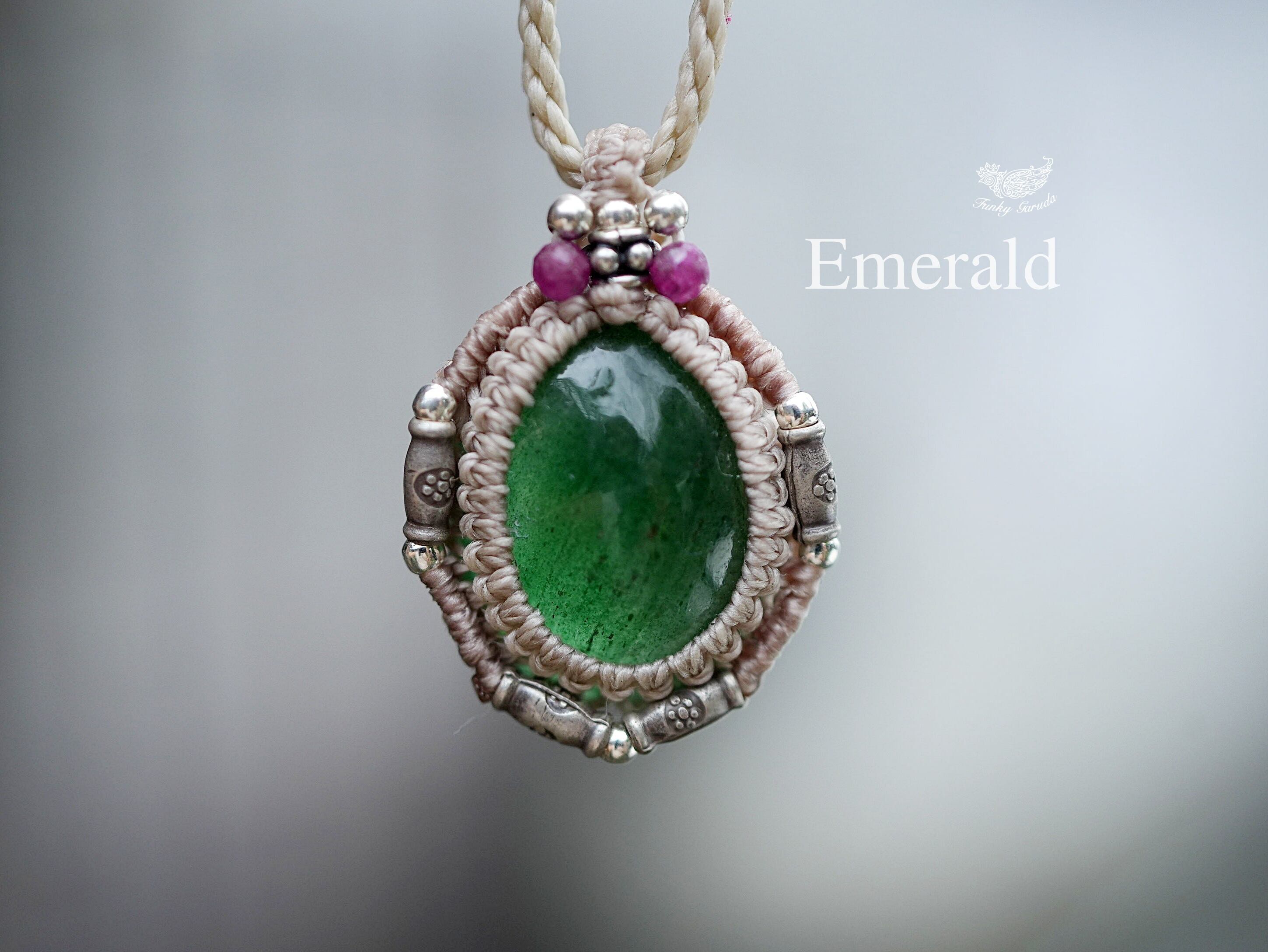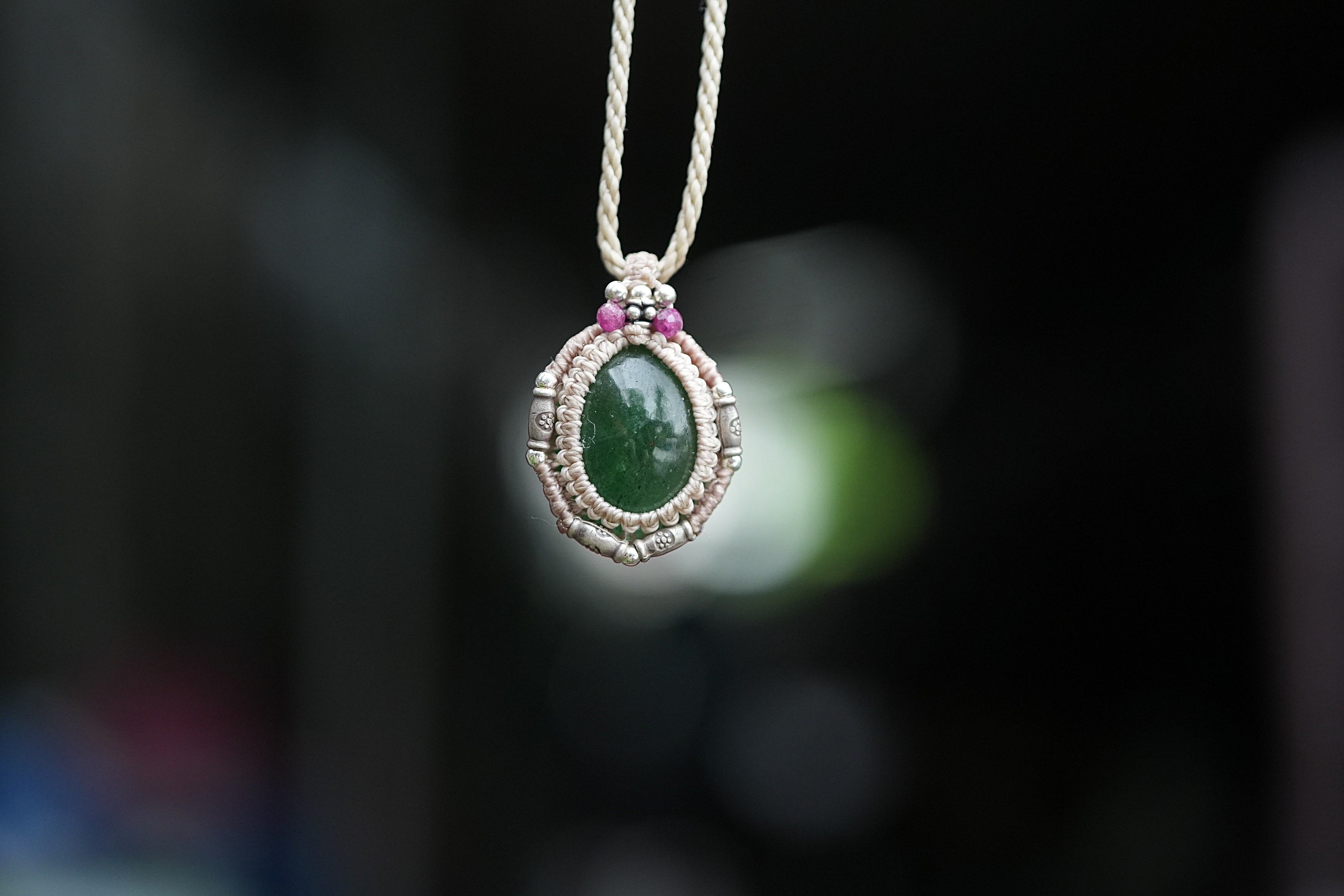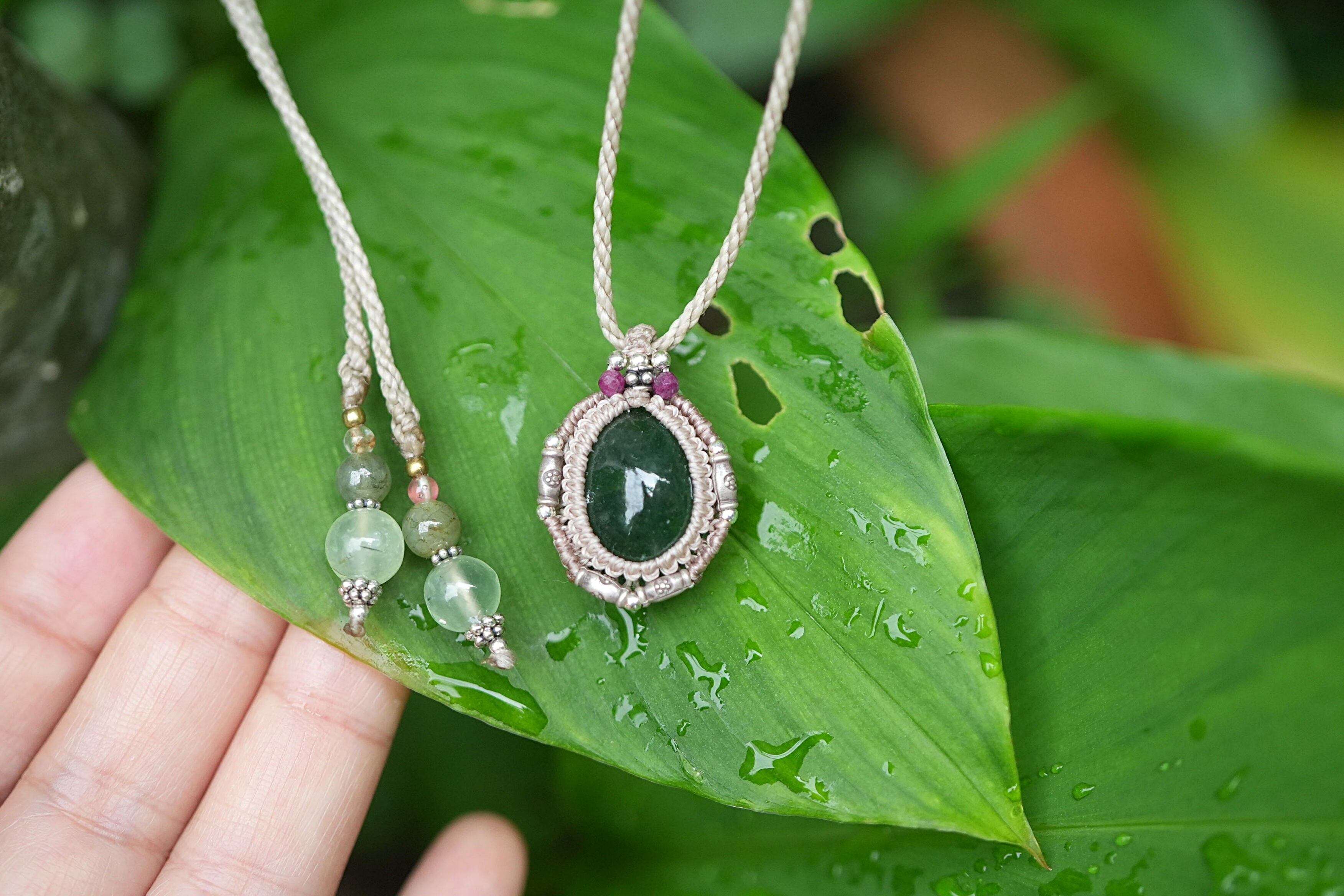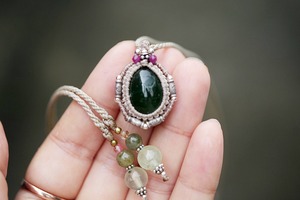 緑の静寂★エメラルド★マクラメネックレス 1704