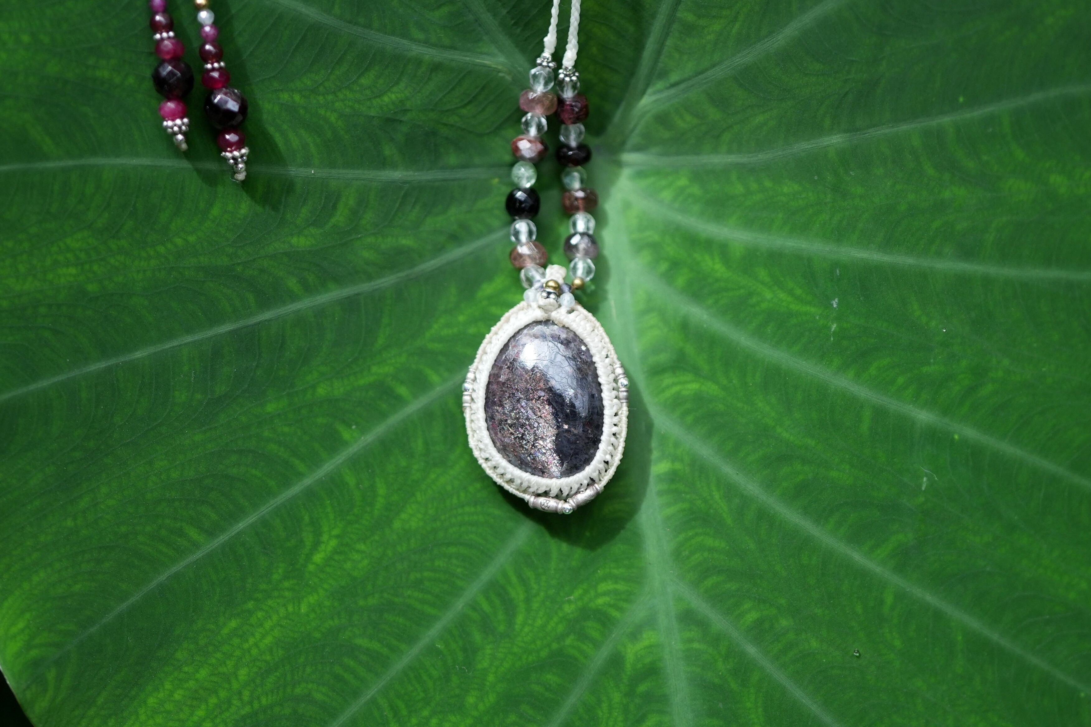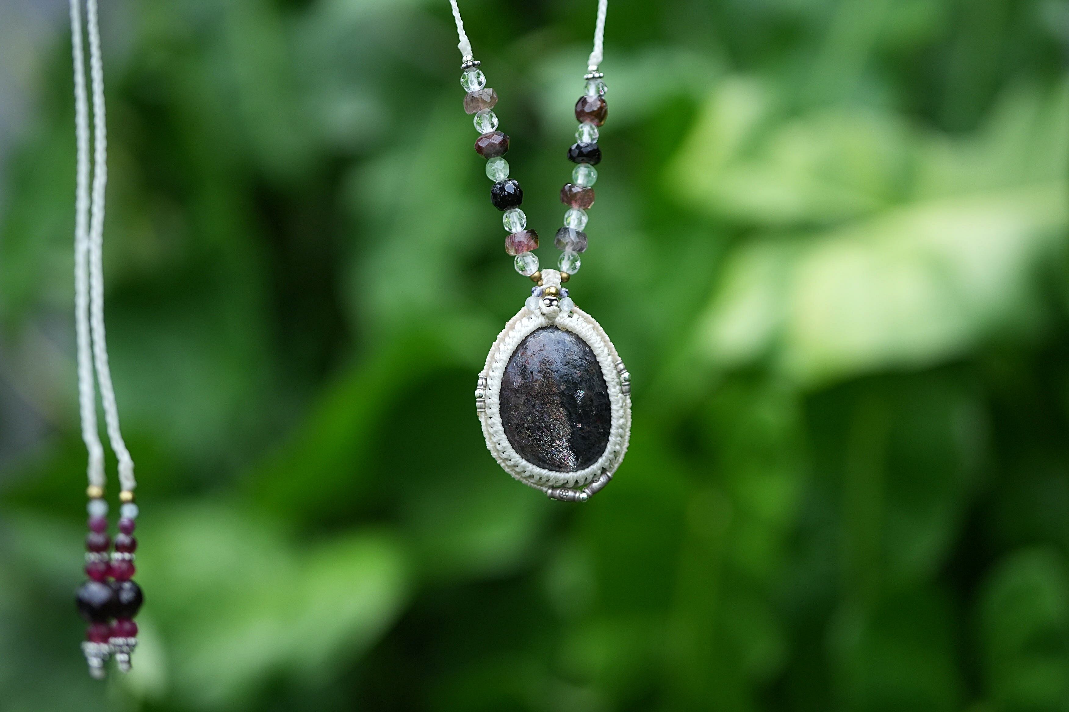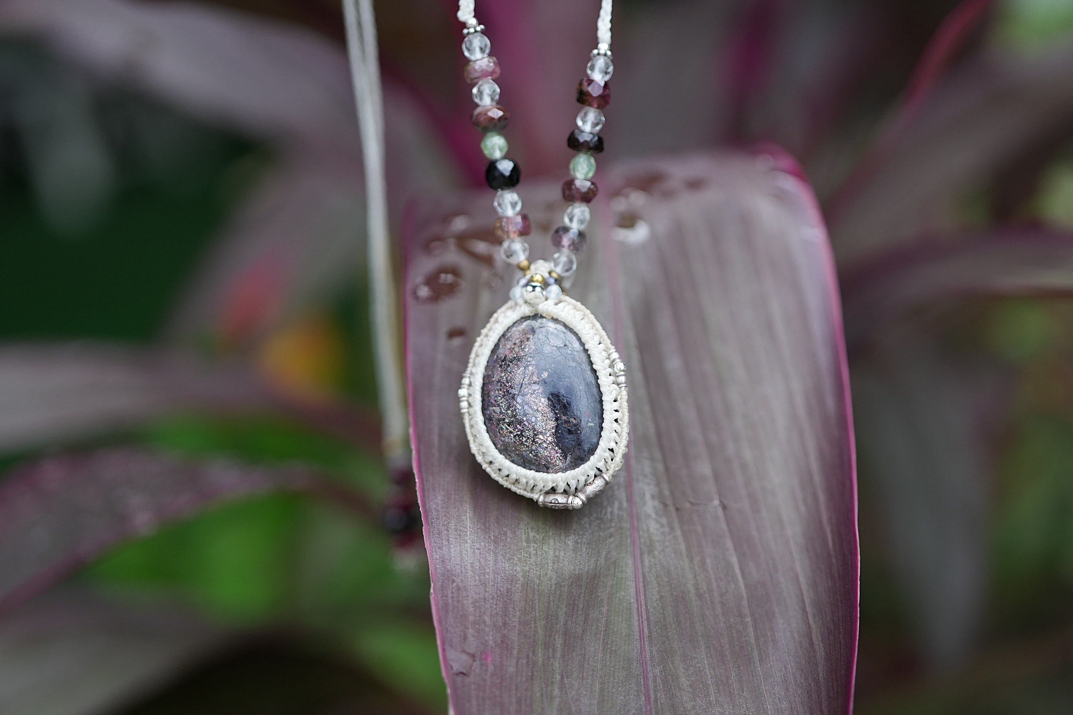 half/ブラットショット★アイオライトサンストーン マクラメネックレス1695