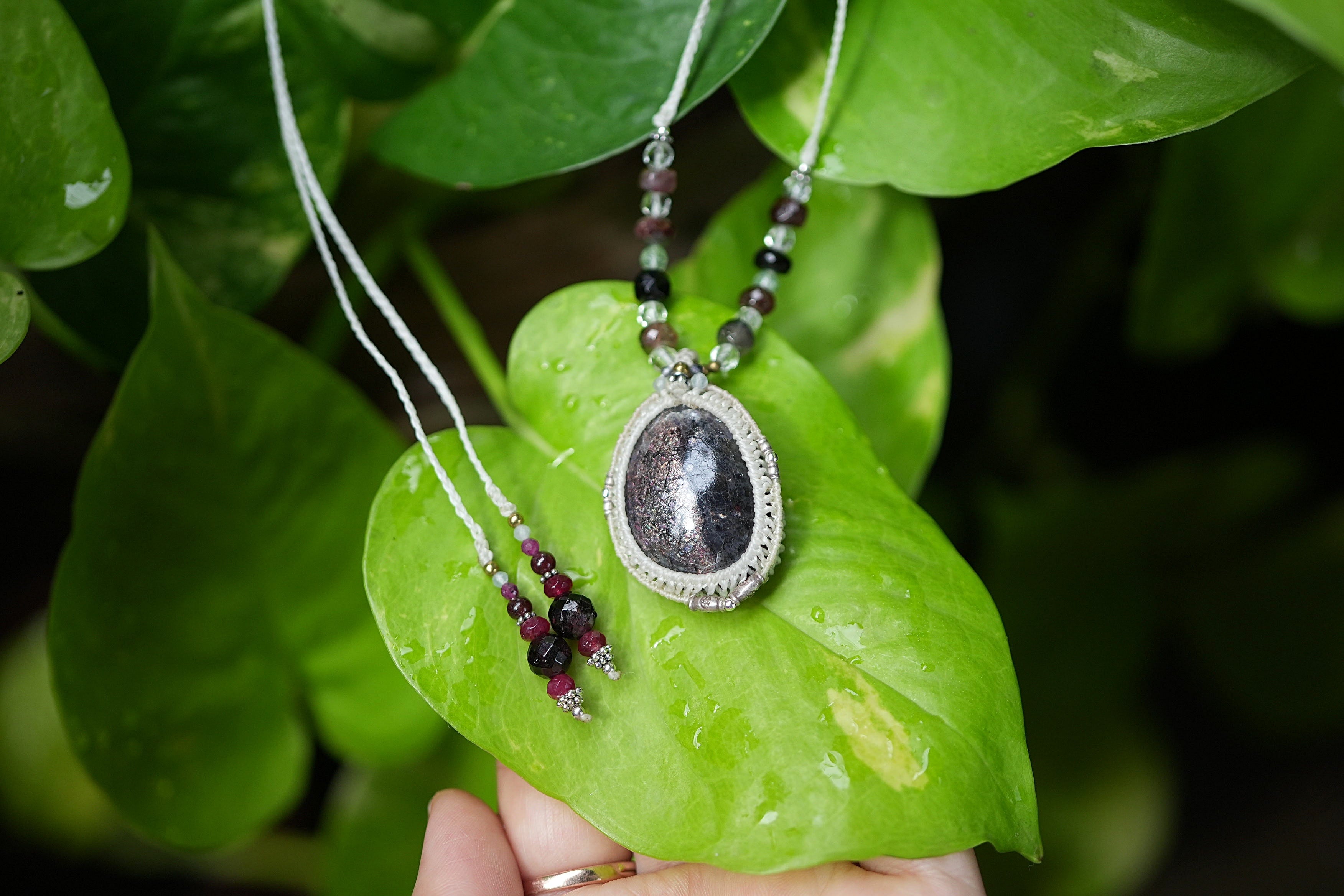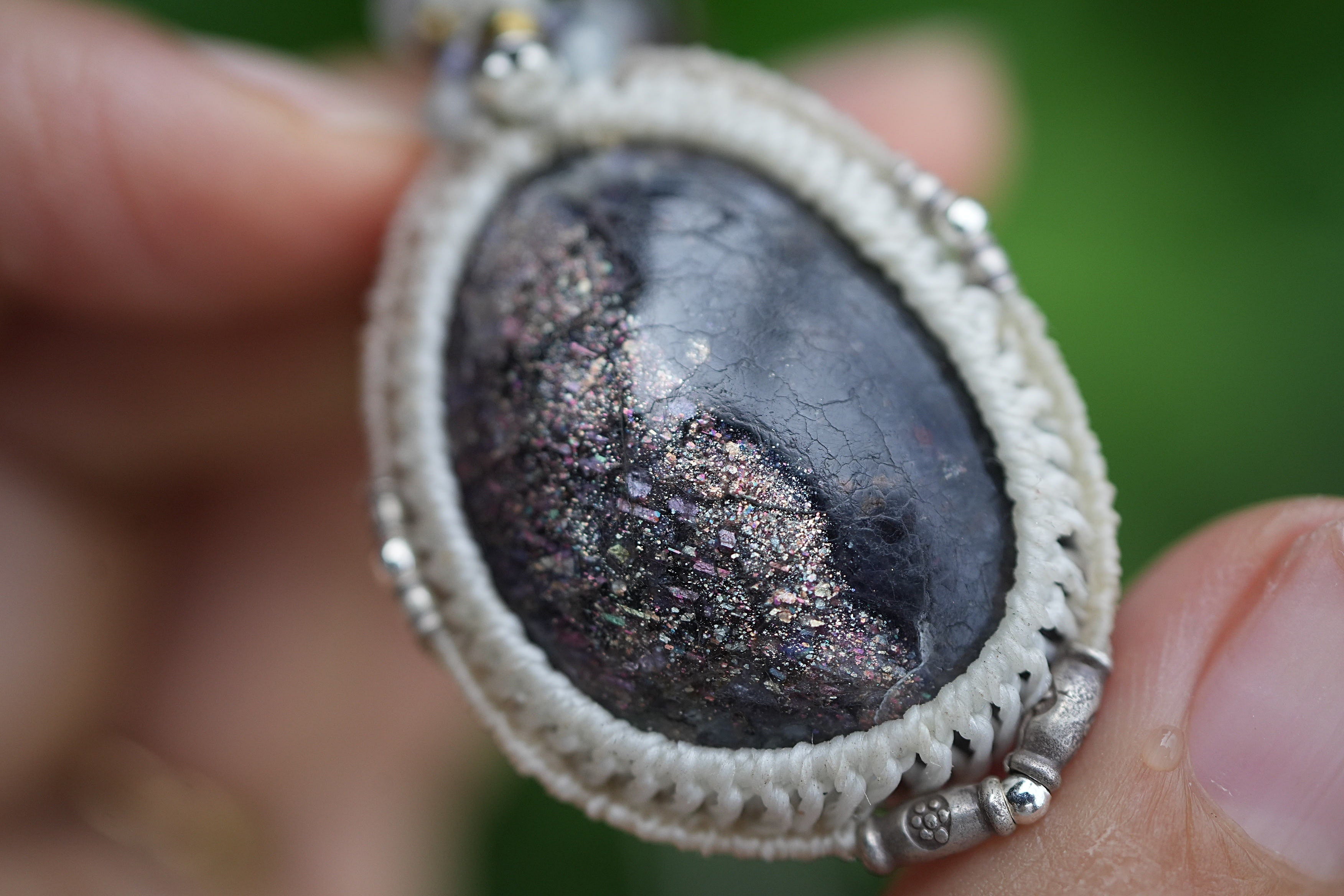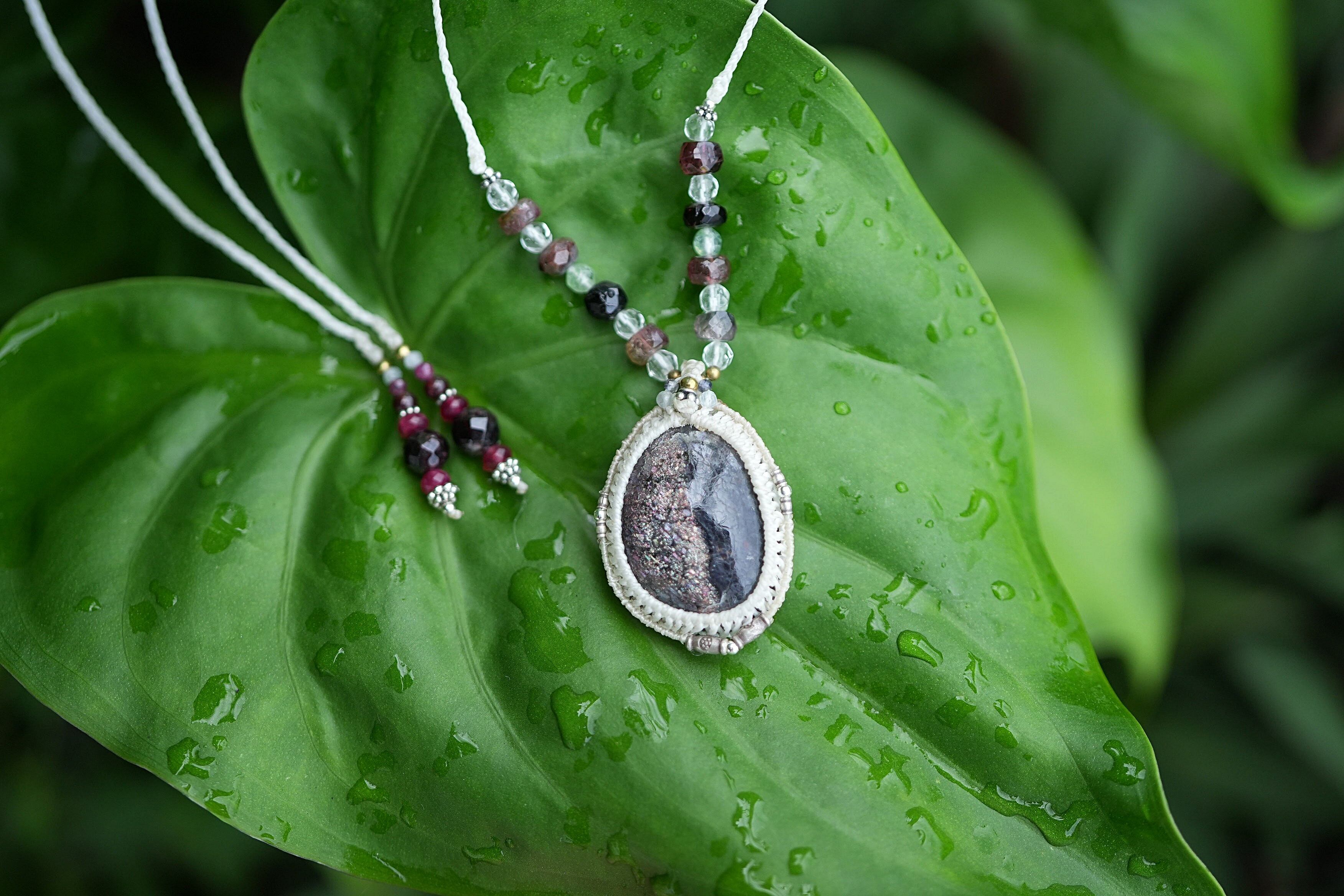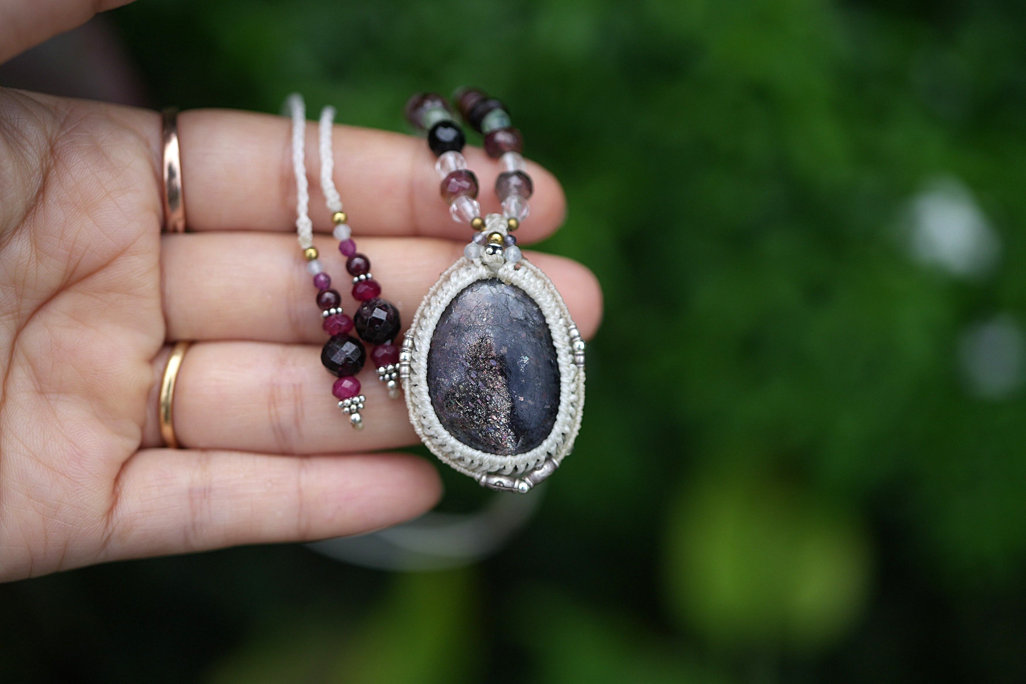 half/ブラットショット★アイオライトサンストーン マクラメネックレス1695