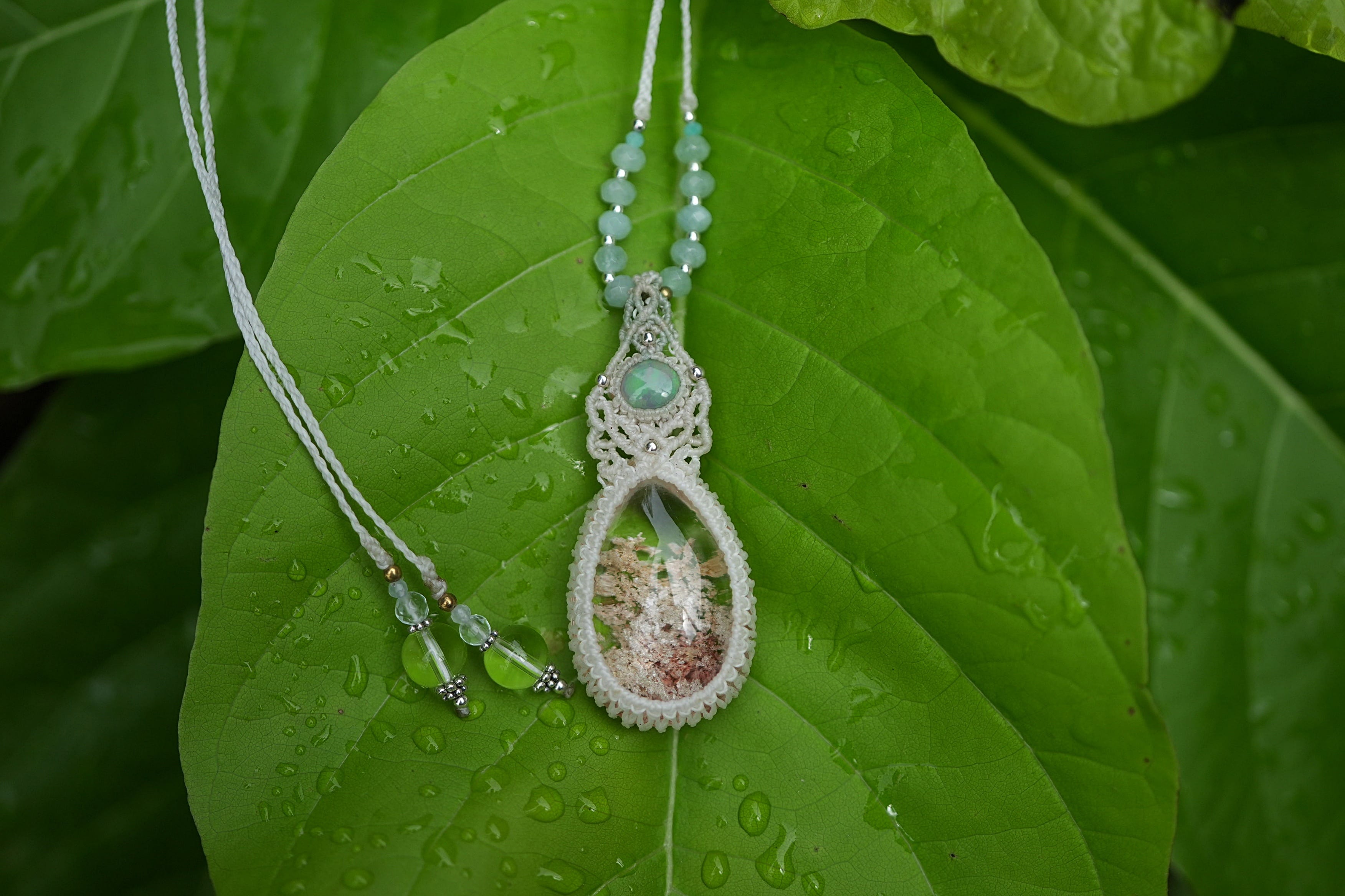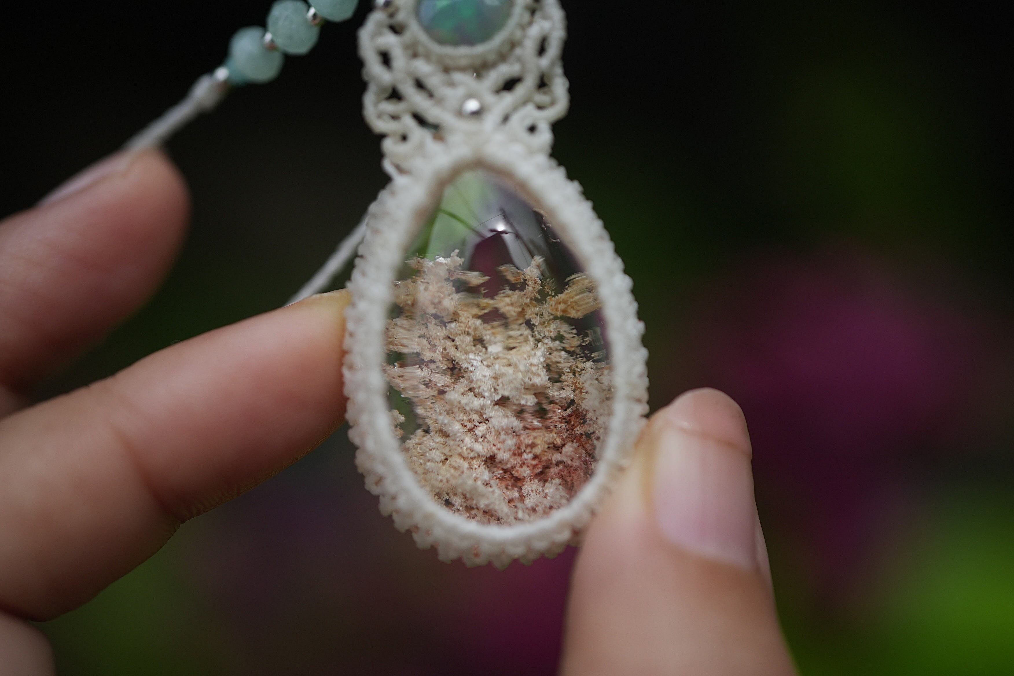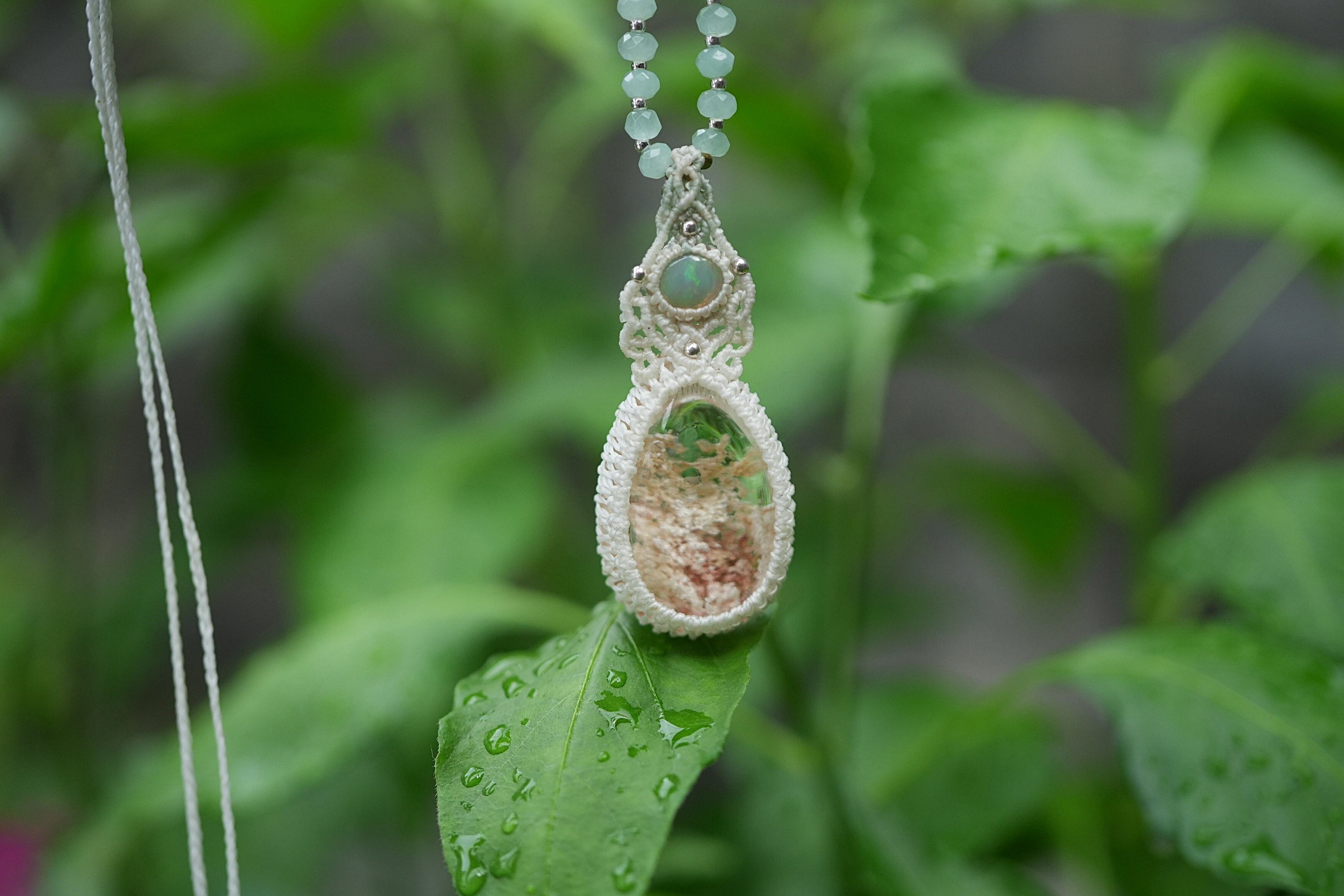 じんわりグラデーション★Opal ホワイトガーデンクォーツ マクラメネックレス1707