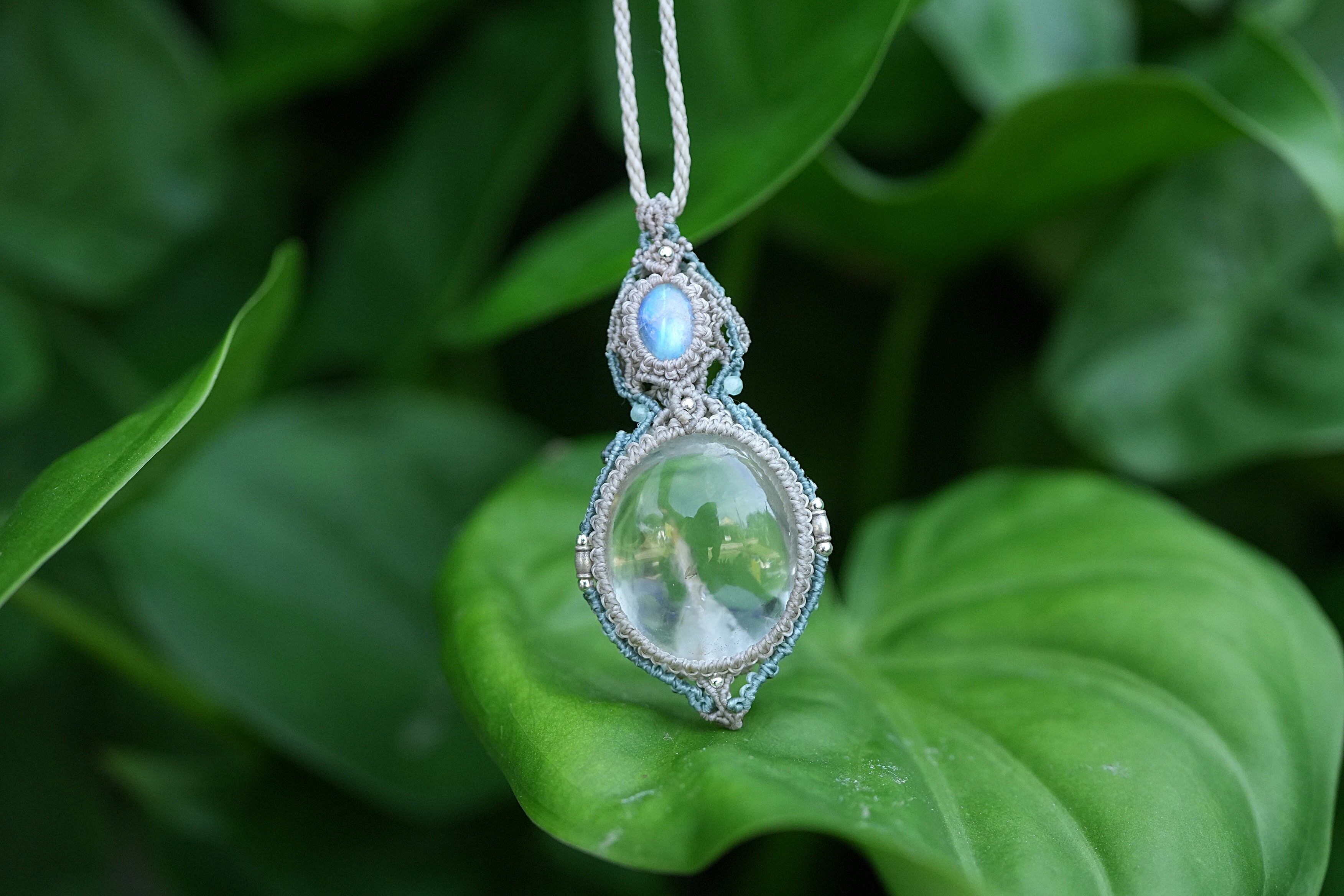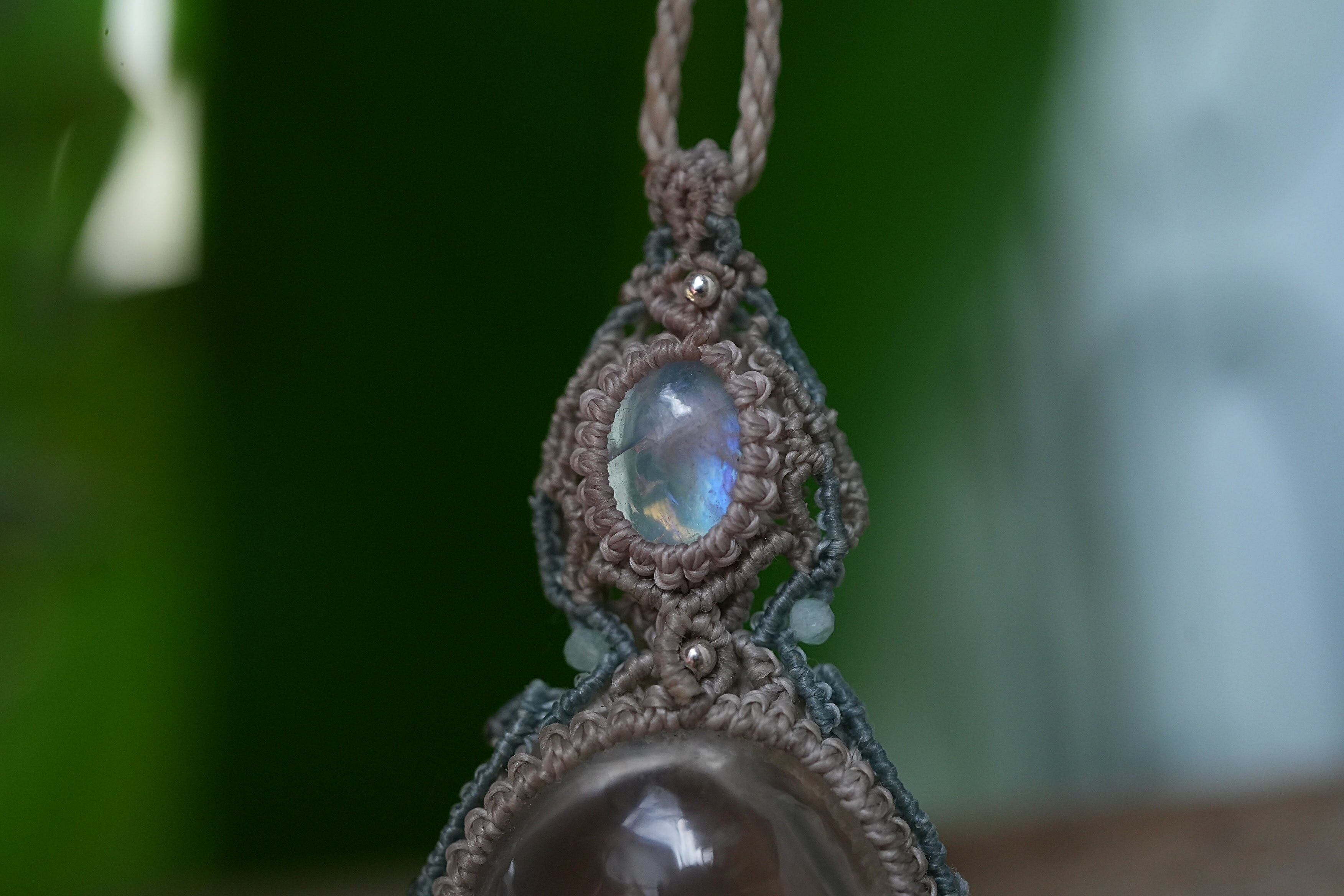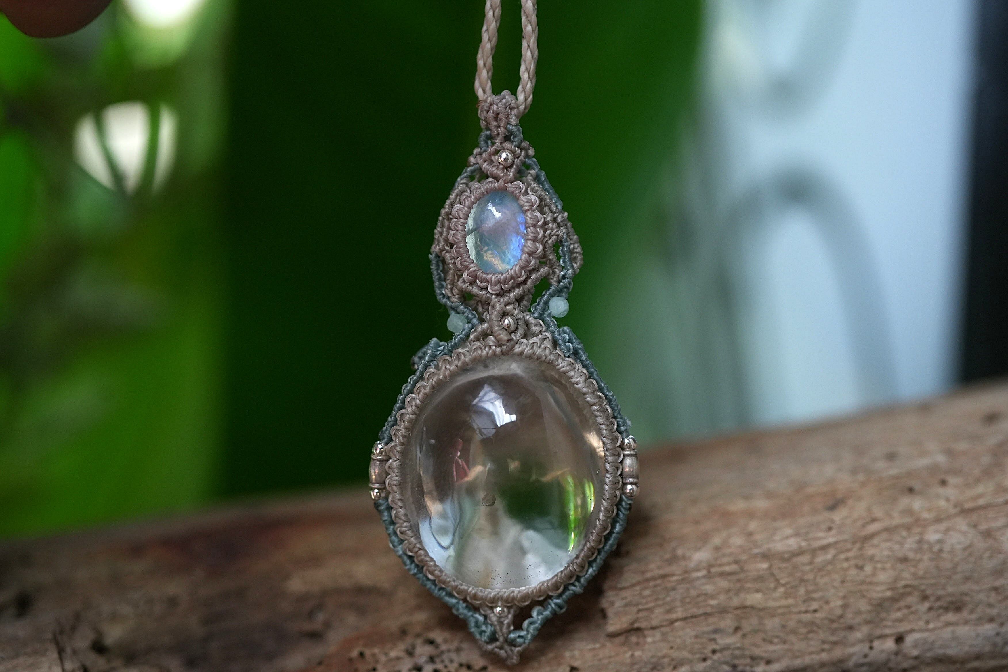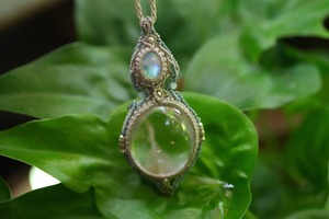 滝登り水晶★moonstone クォーツインクォーツマクラメネックレス 1708