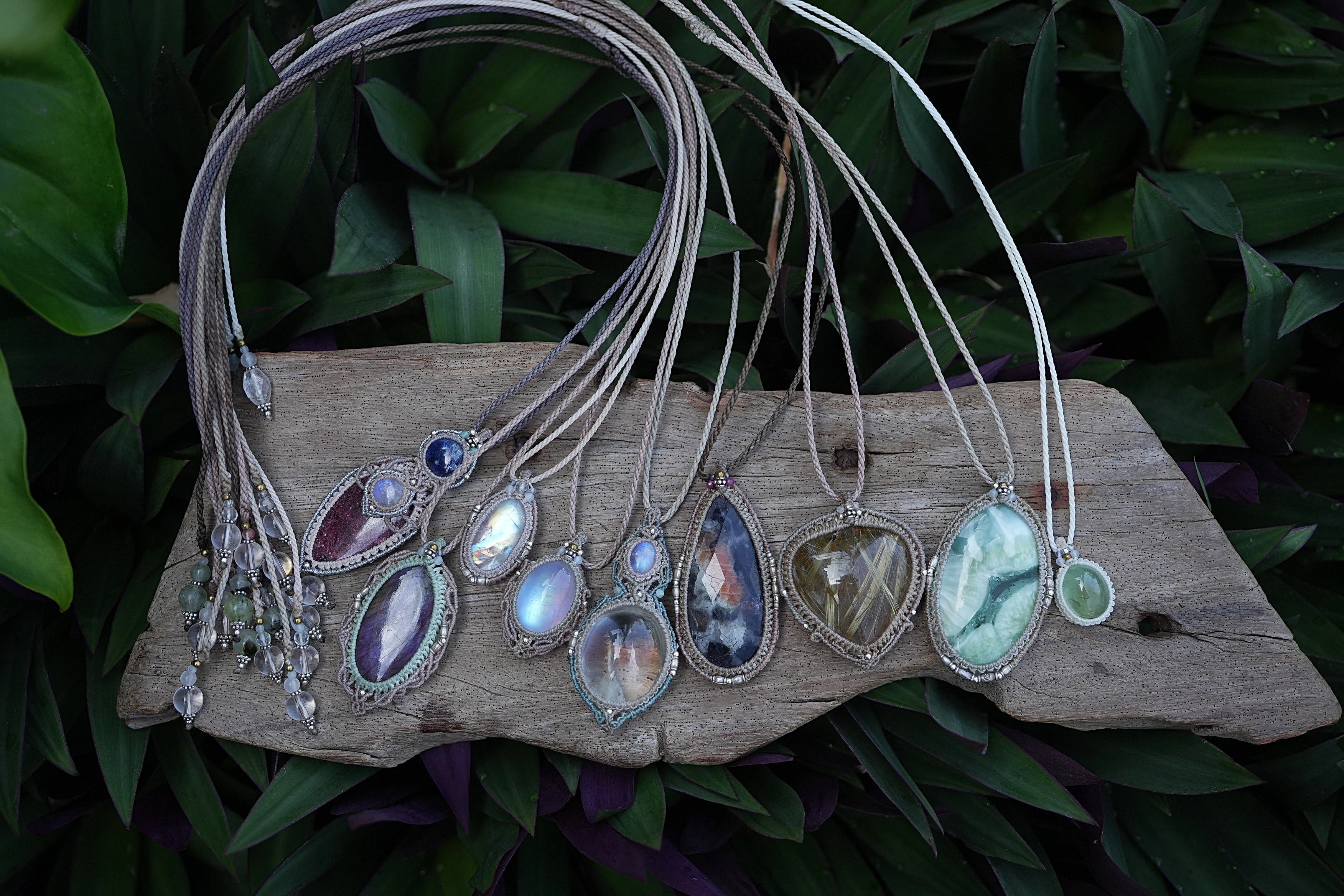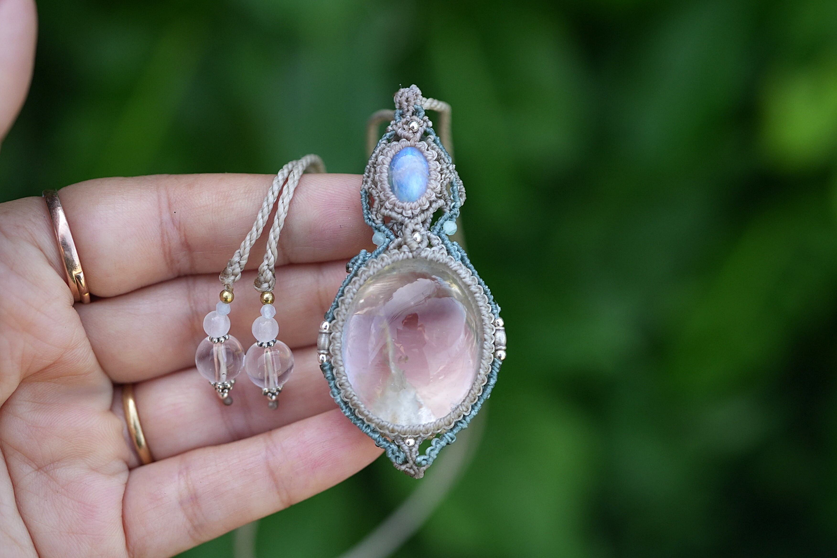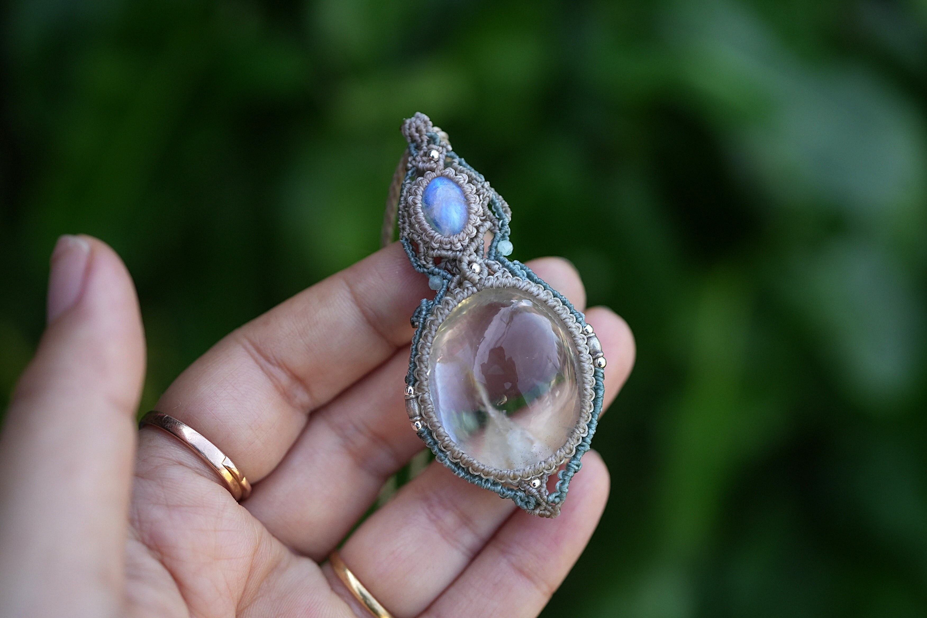 滝登り水晶★moonstone クォーツインクォーツマクラメネックレス 1708