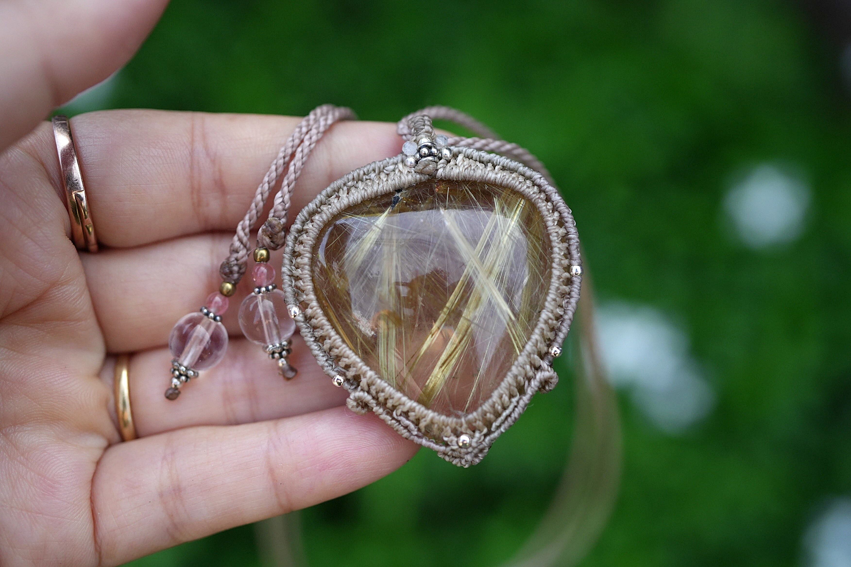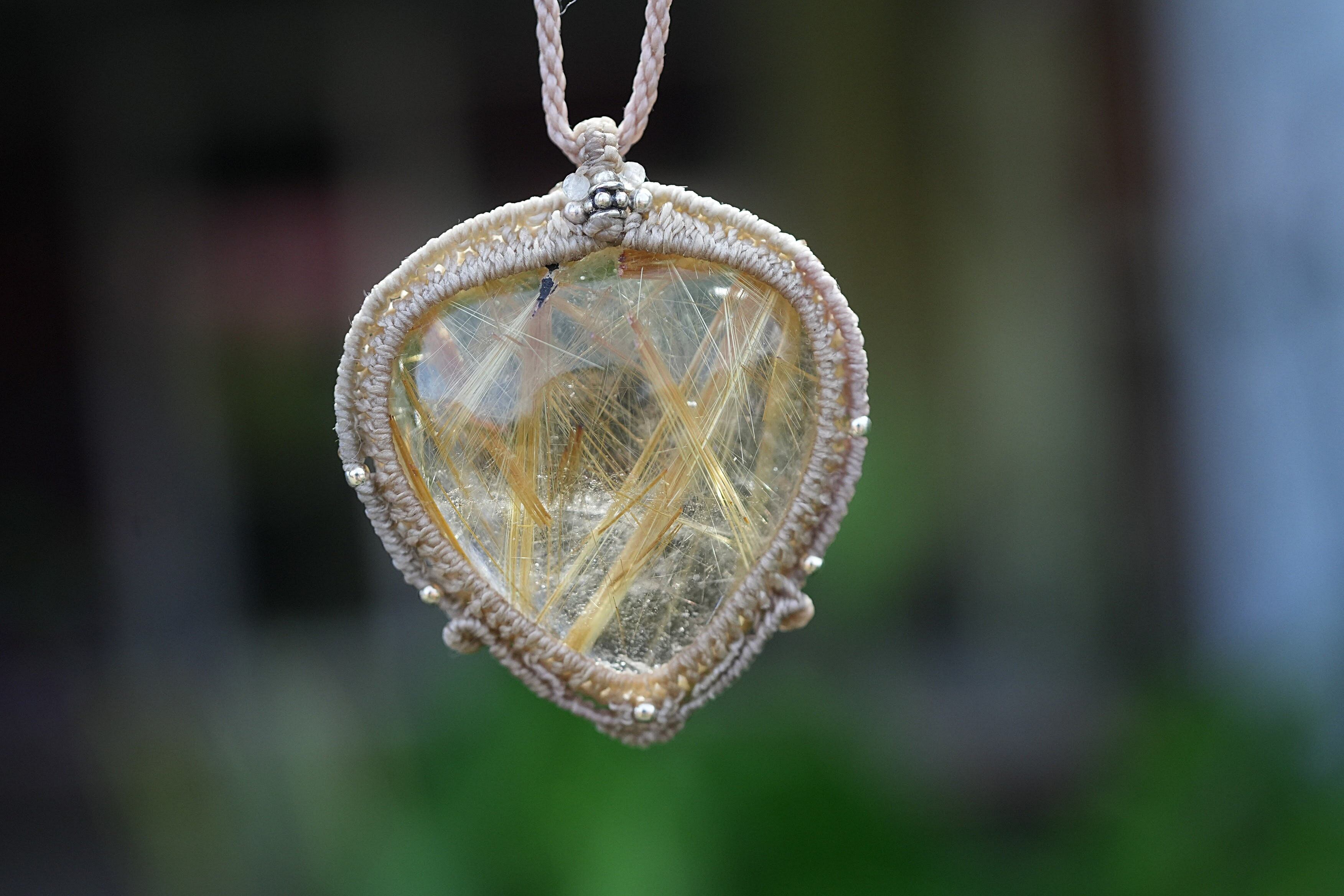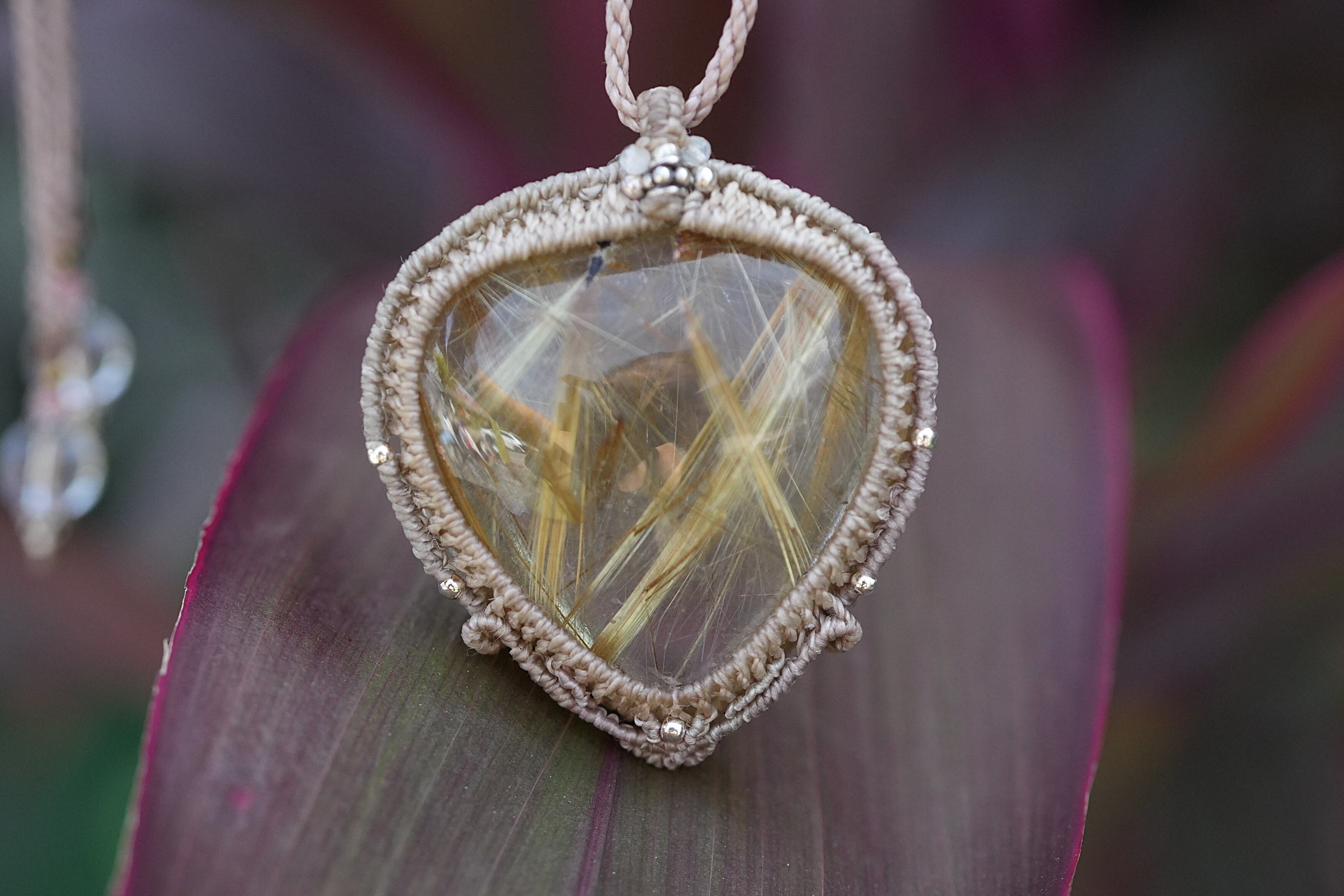 スペシャル大粒★高品質★ゴールドルチルクォーツ マクラメネックレス1713