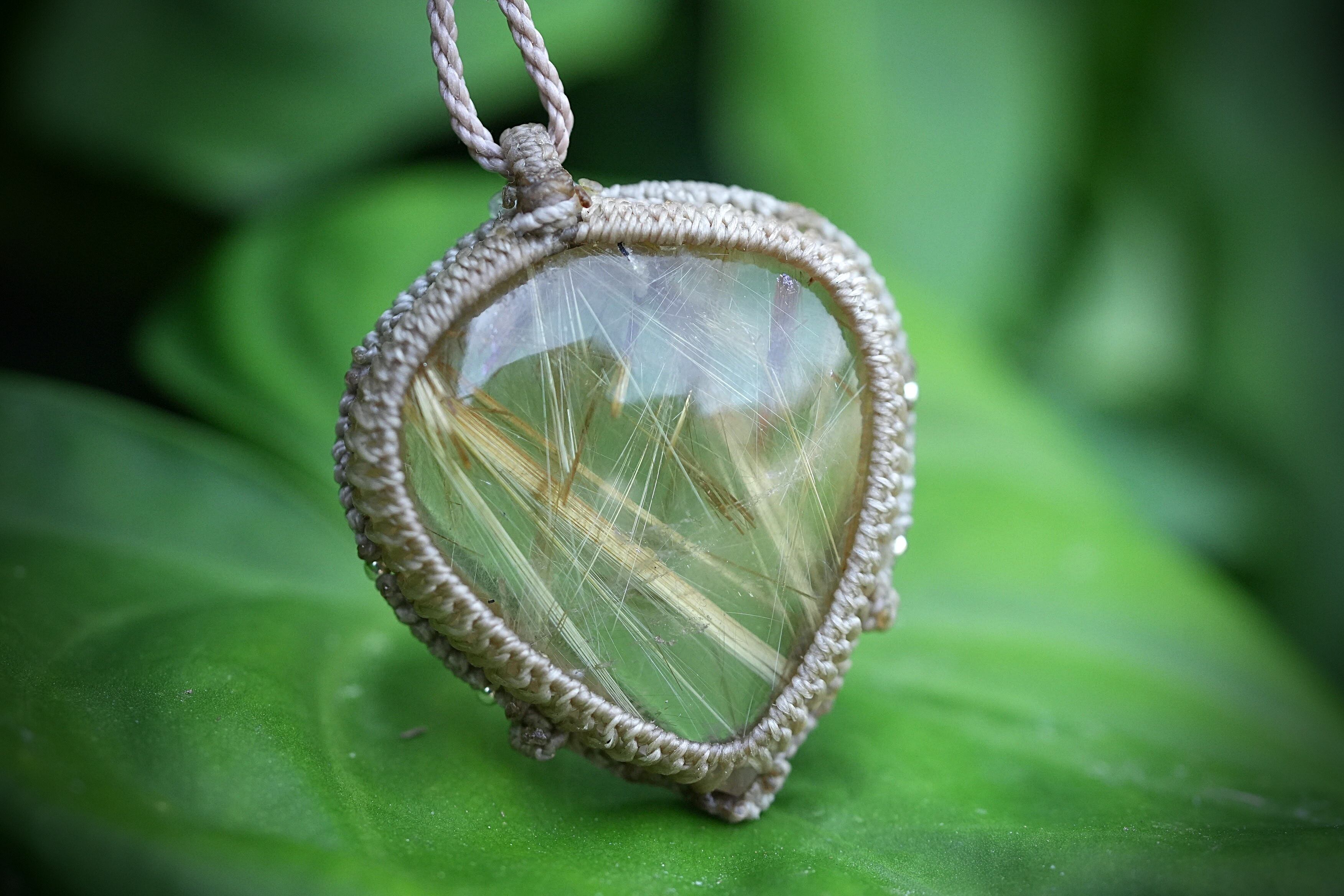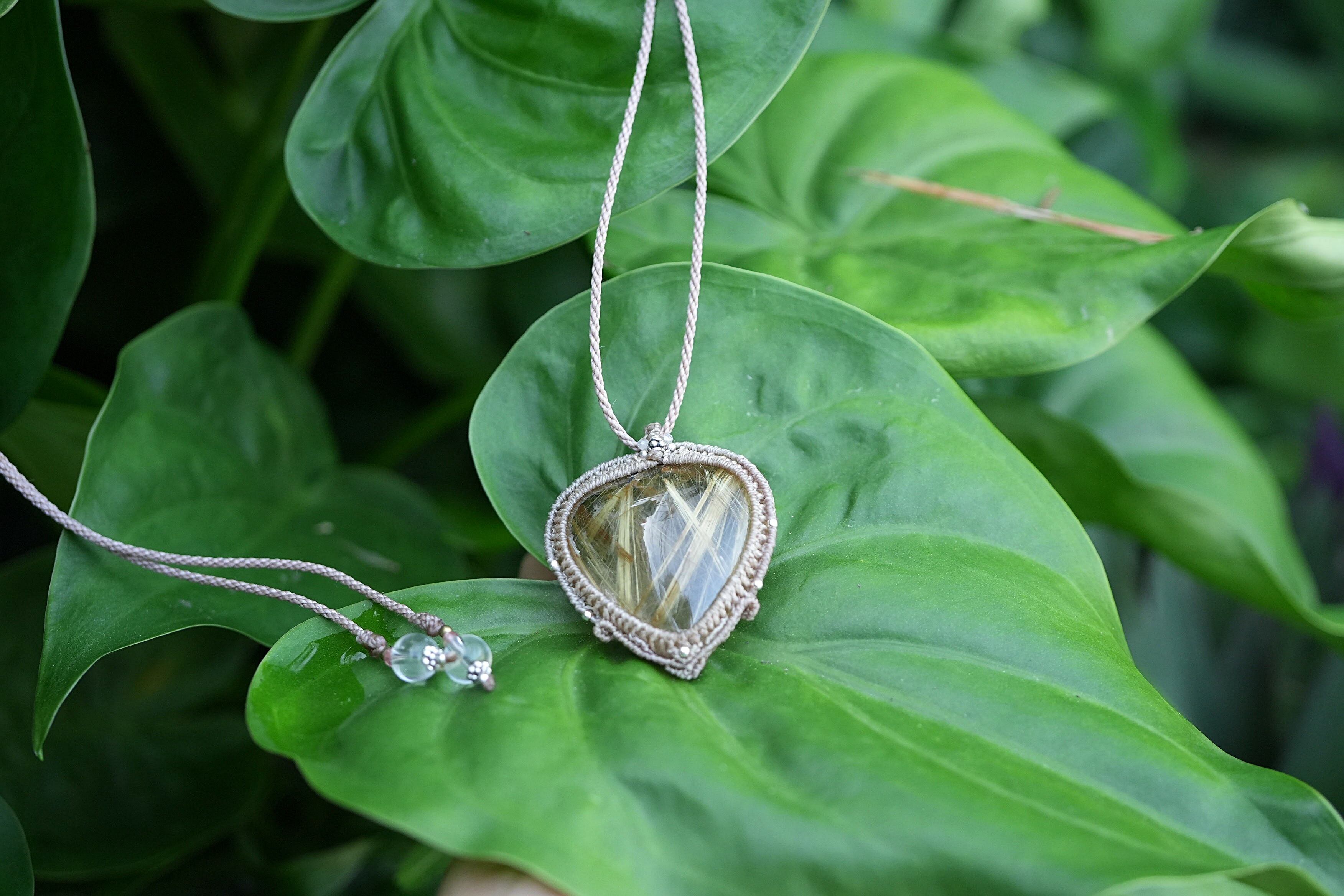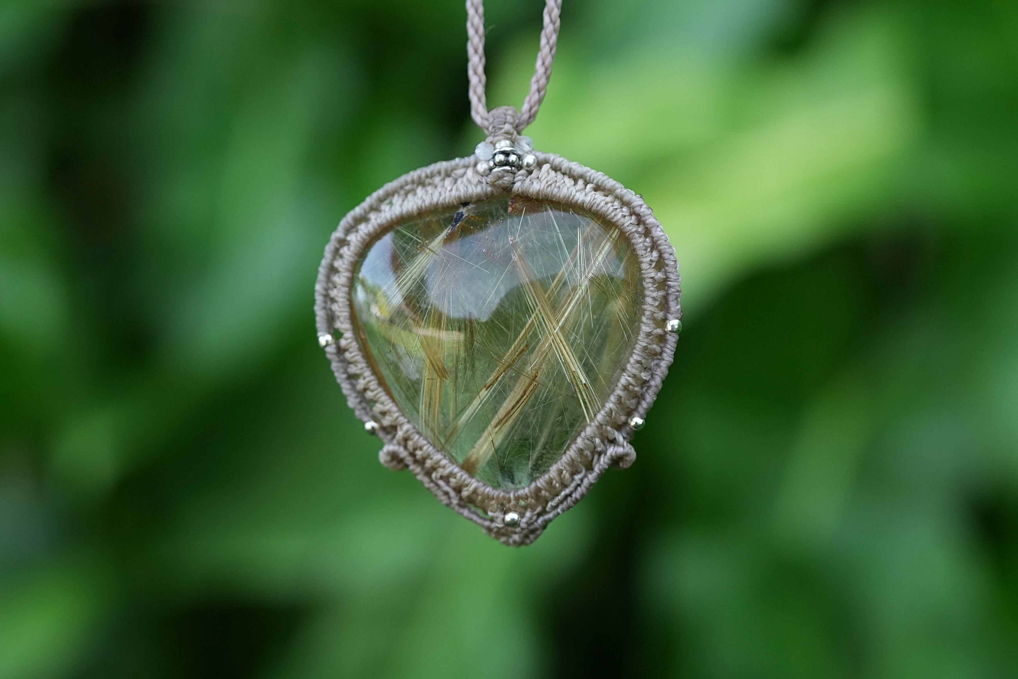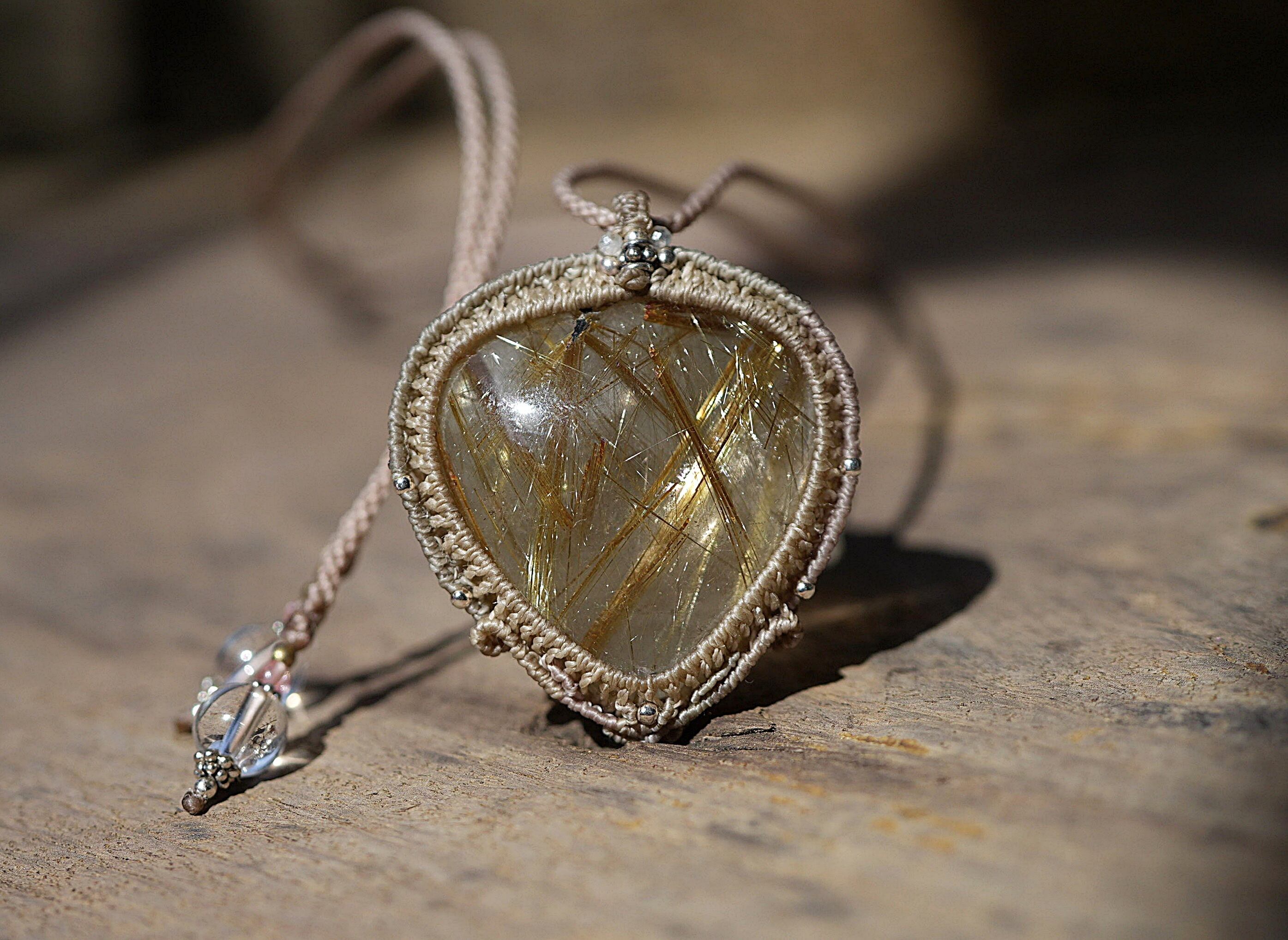スペシャル大粒★高品質★ゴールドルチルクォーツ マクラメネックレス1713