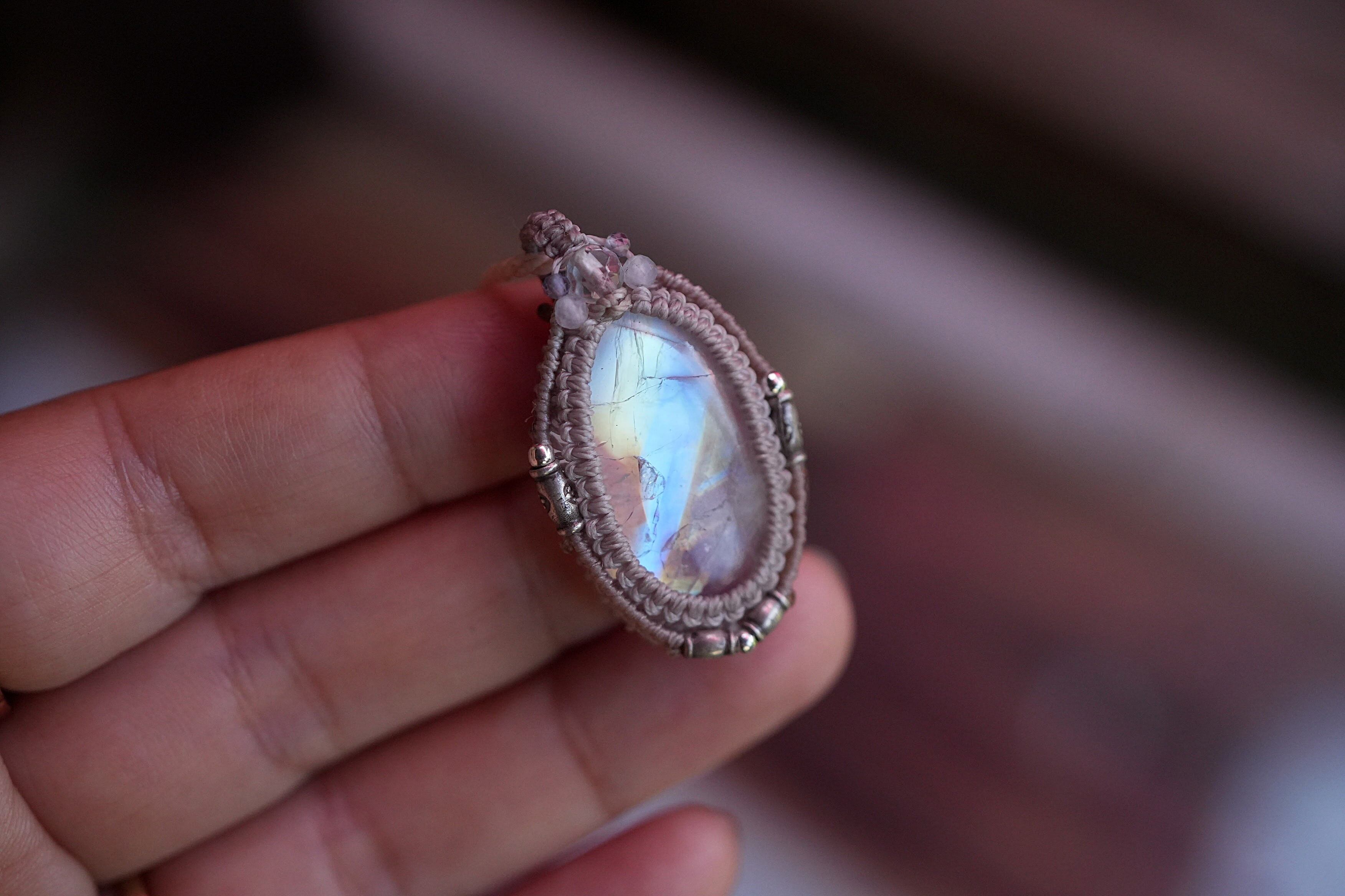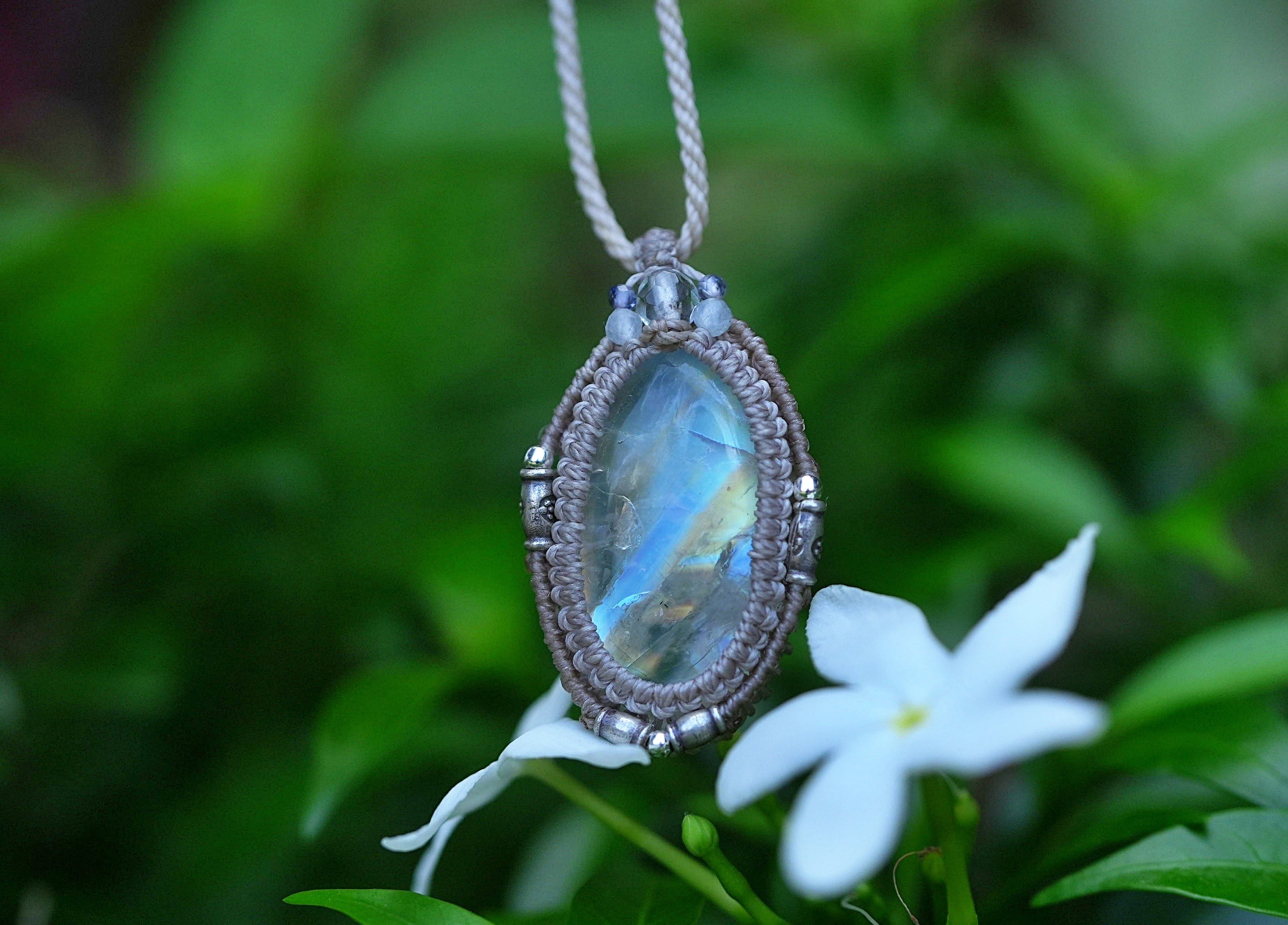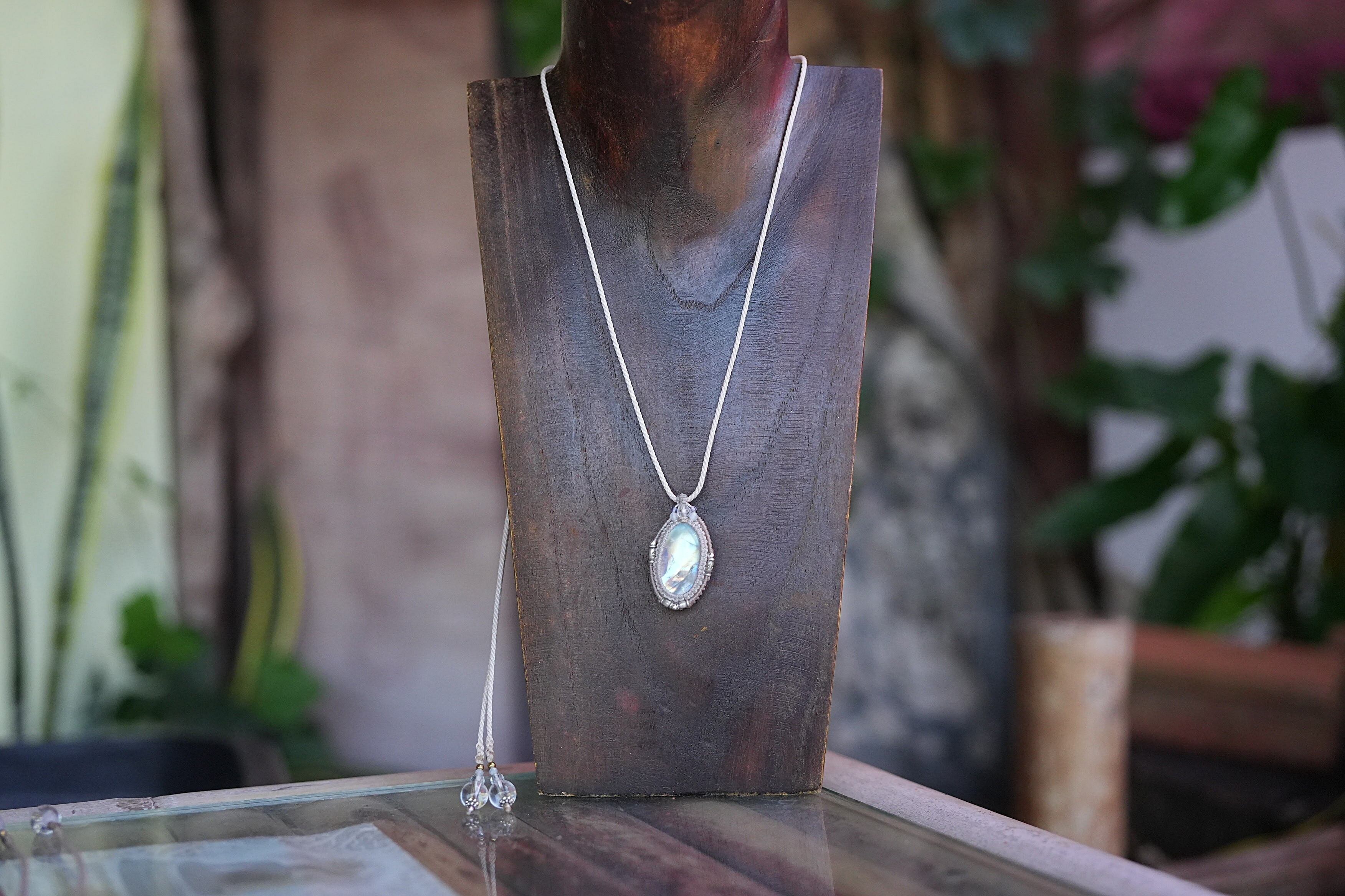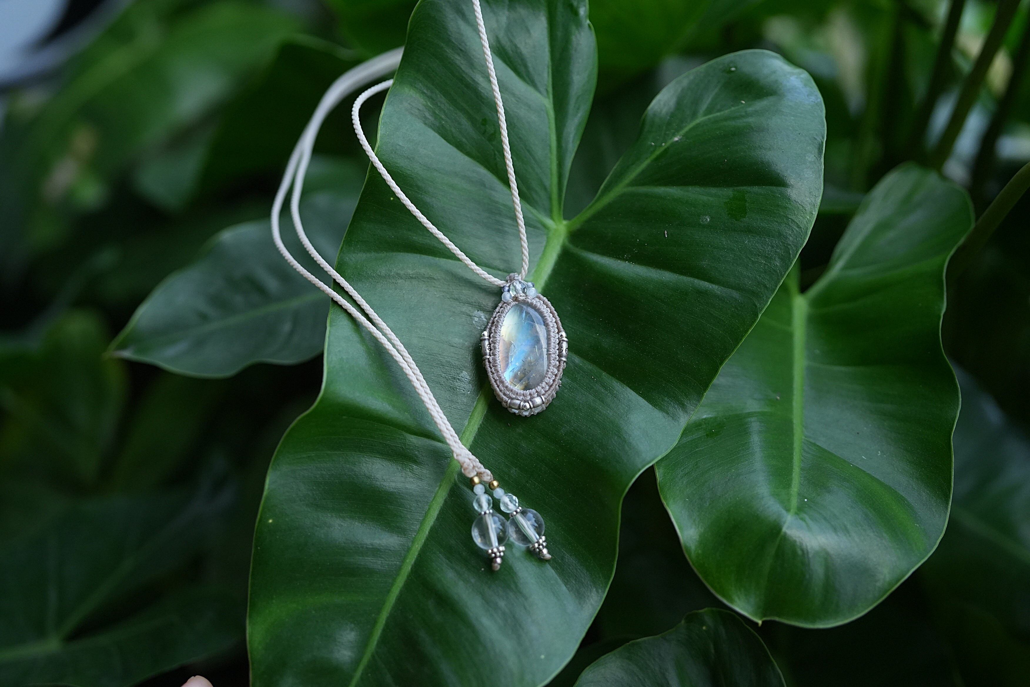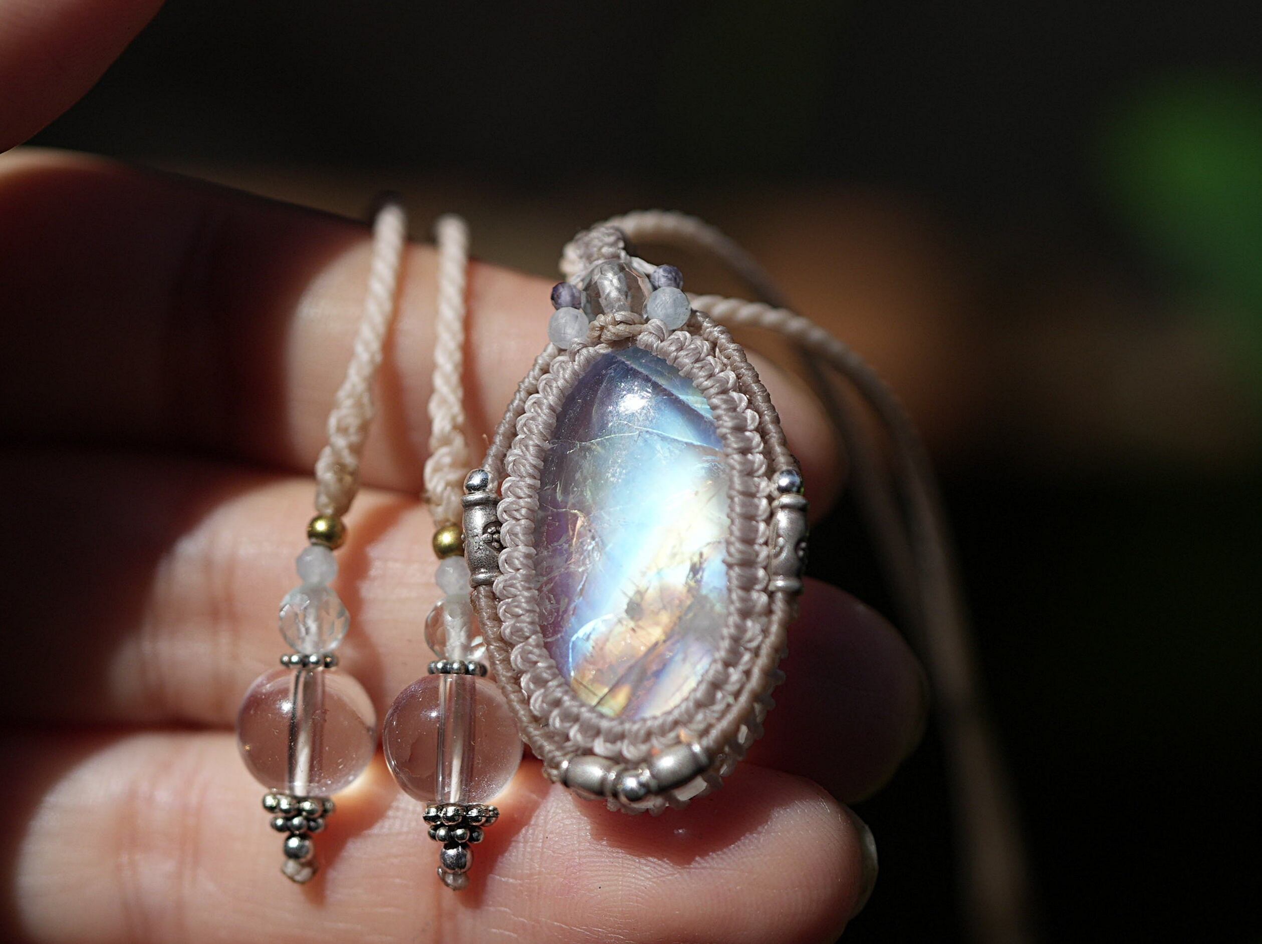 透明ロイヤル★ムーンストーン マクラメネックレス 1714