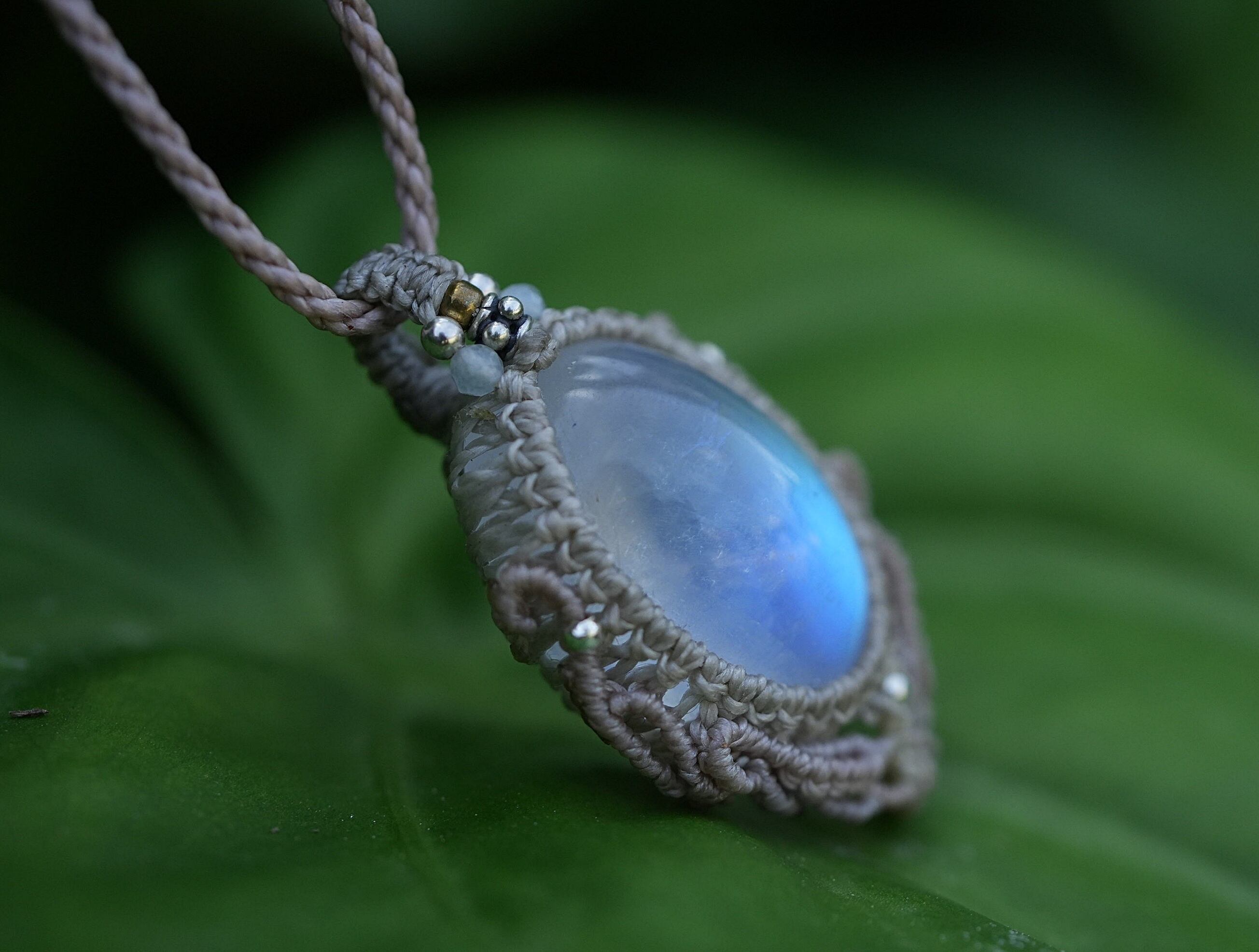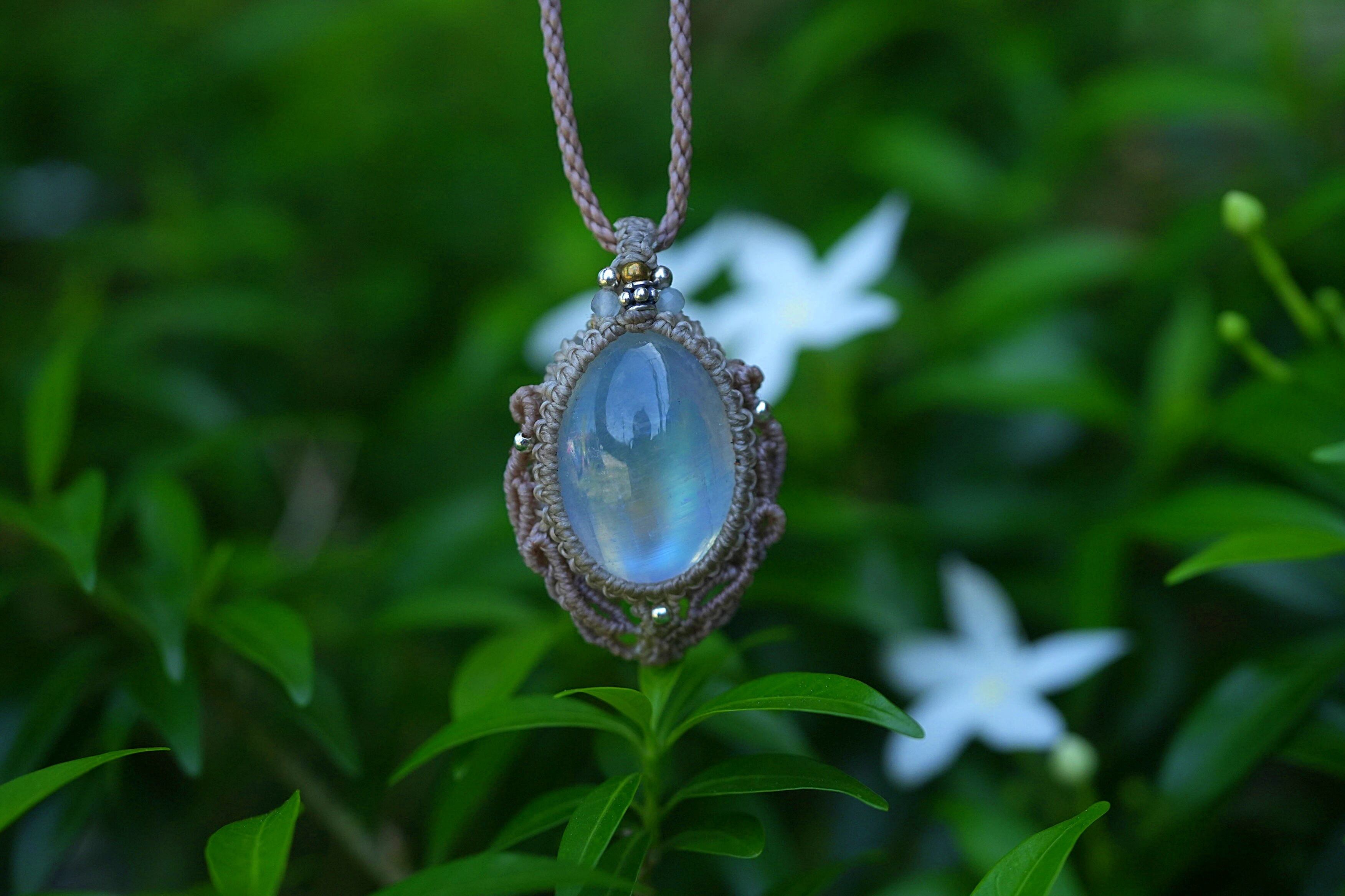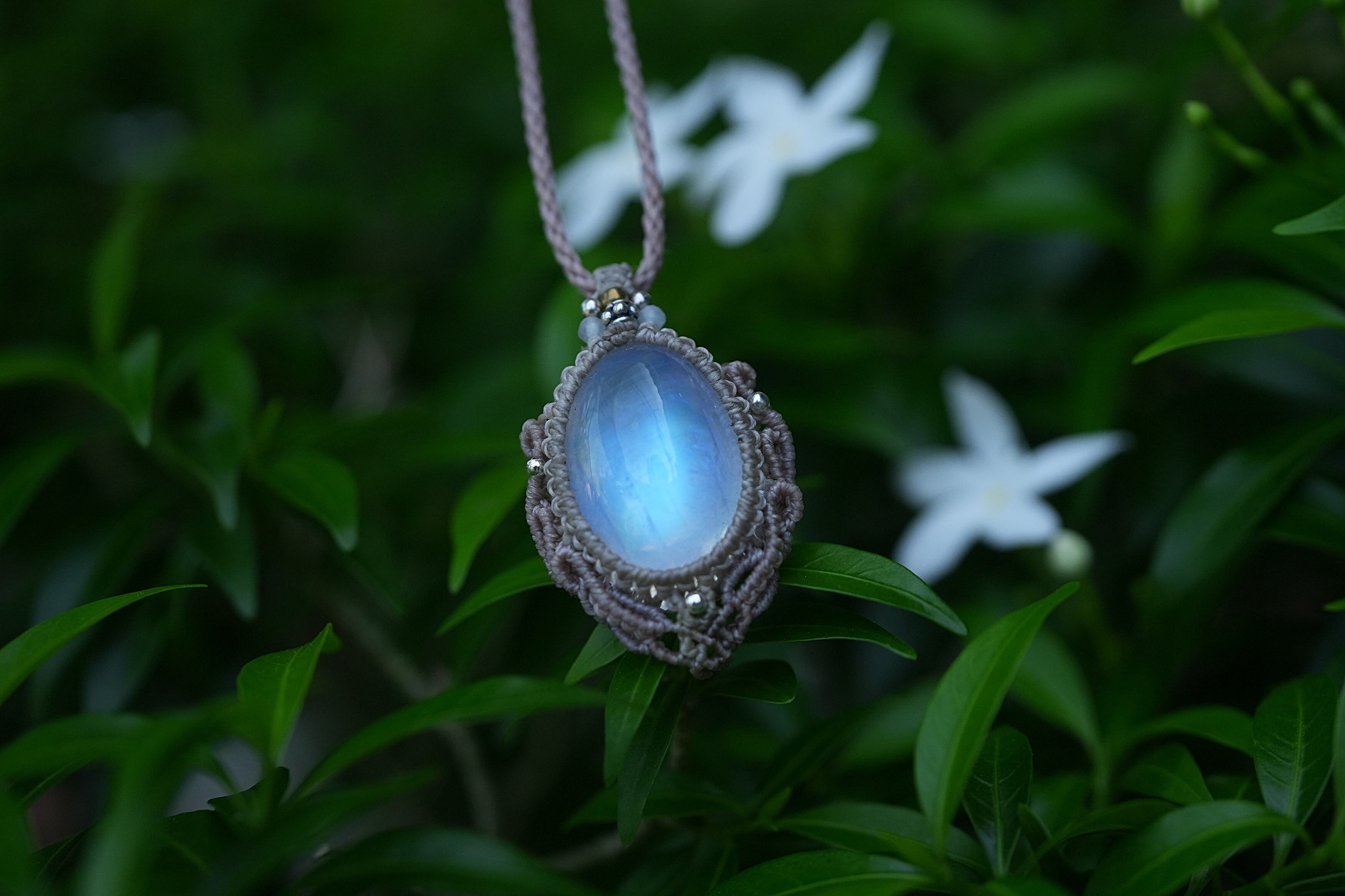 43.5ct ロイヤル★高品質★レインボームーンストーン マクラメネックレス1715