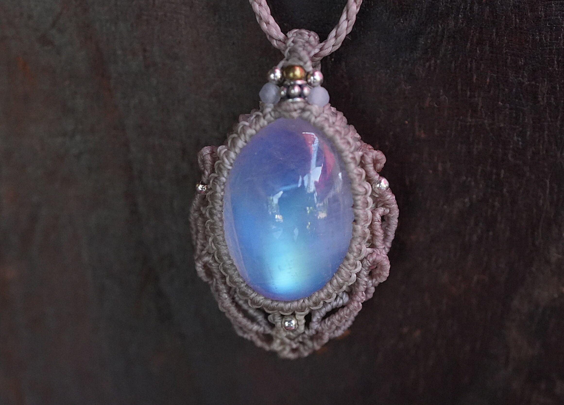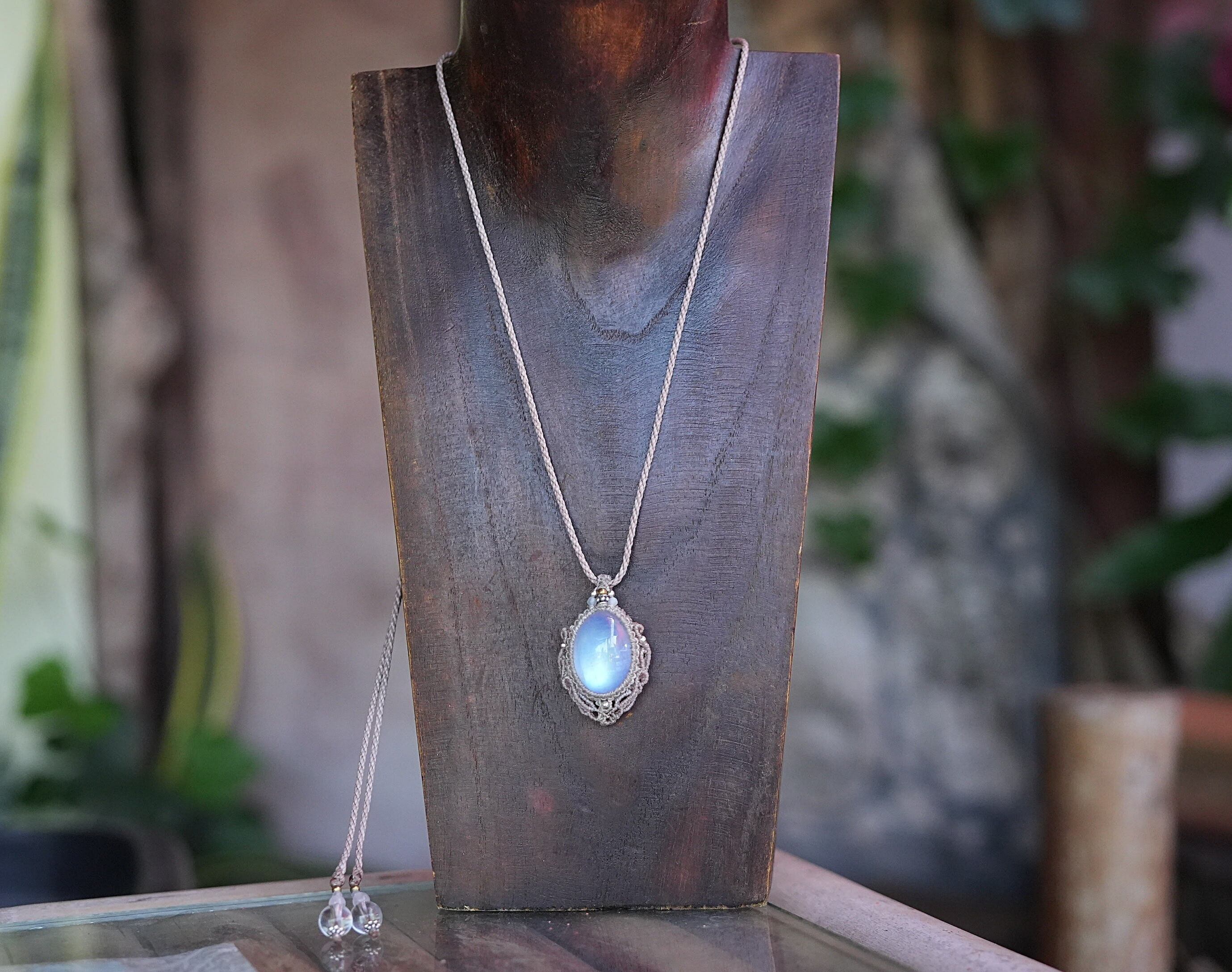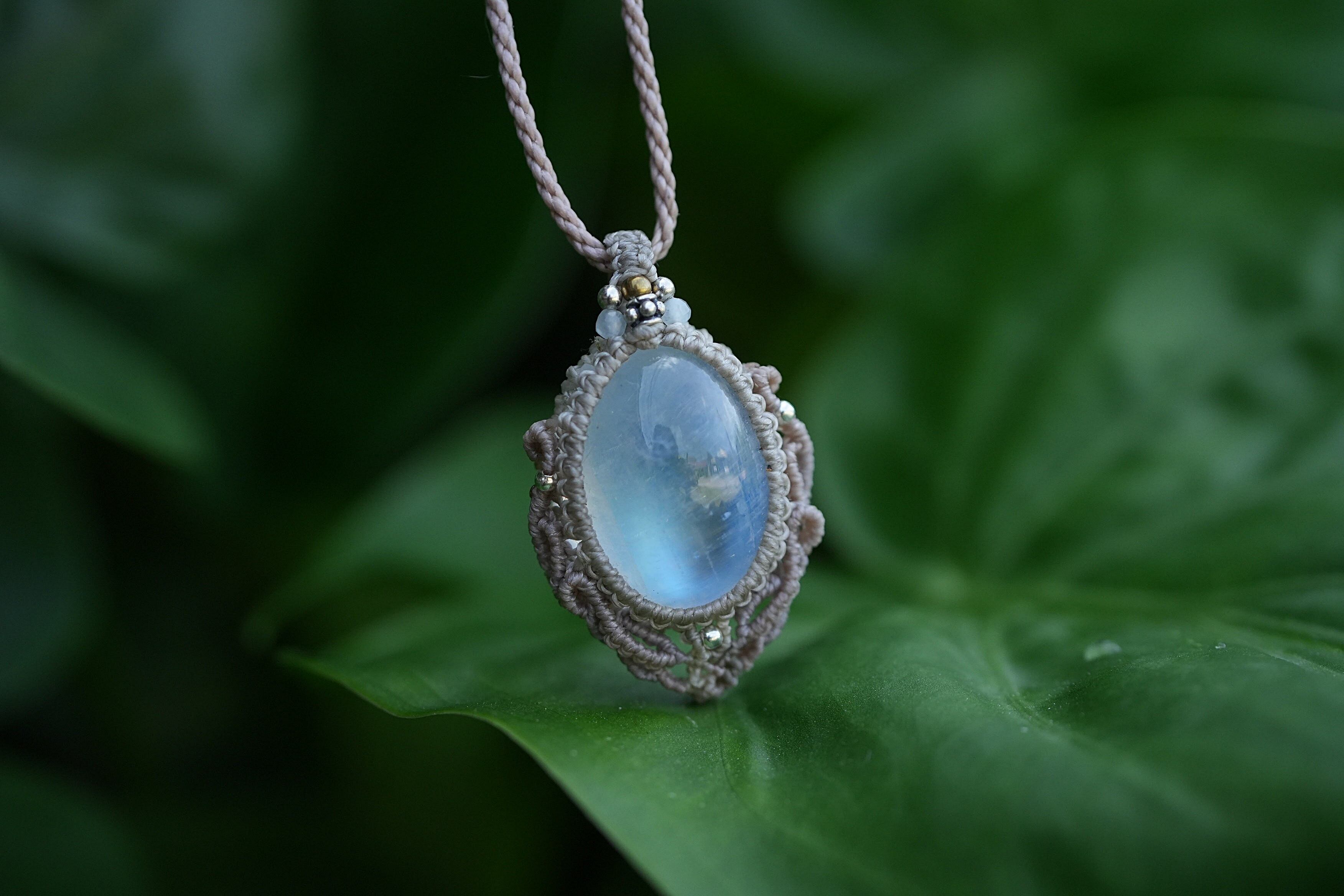43.5ct ロイヤル★高品質★レインボームーンストーン マクラメネックレス1715