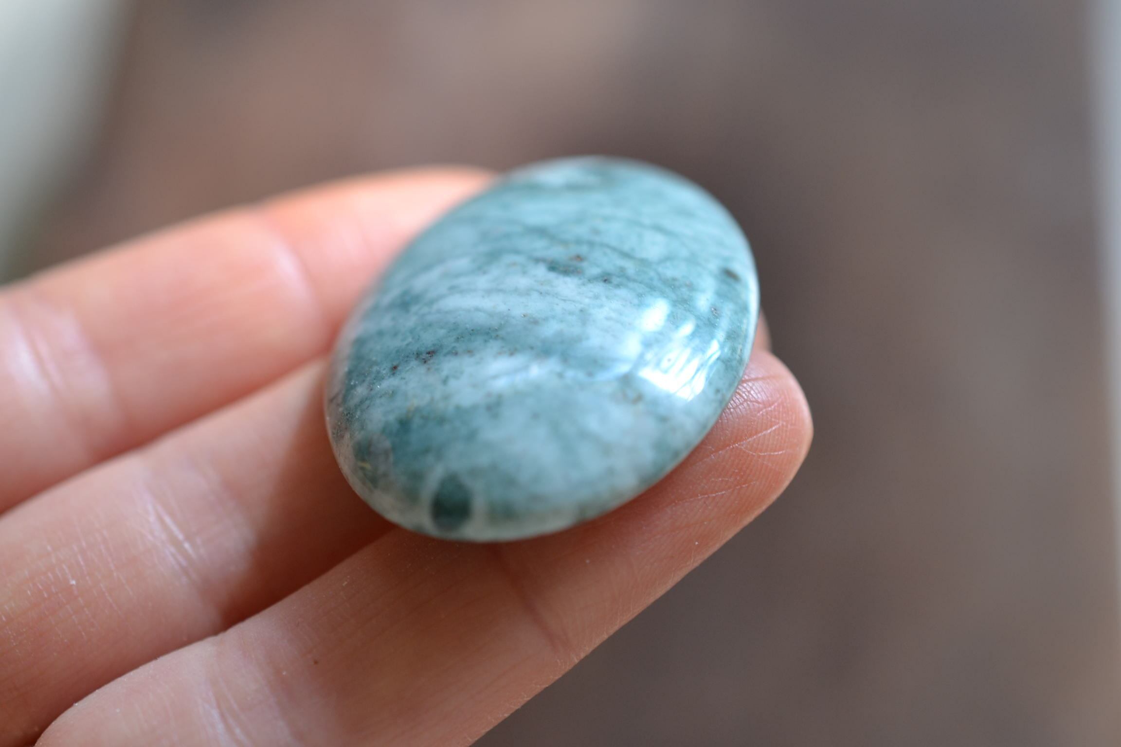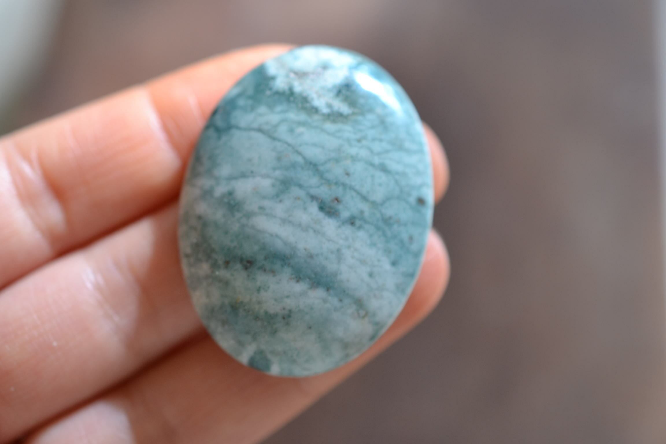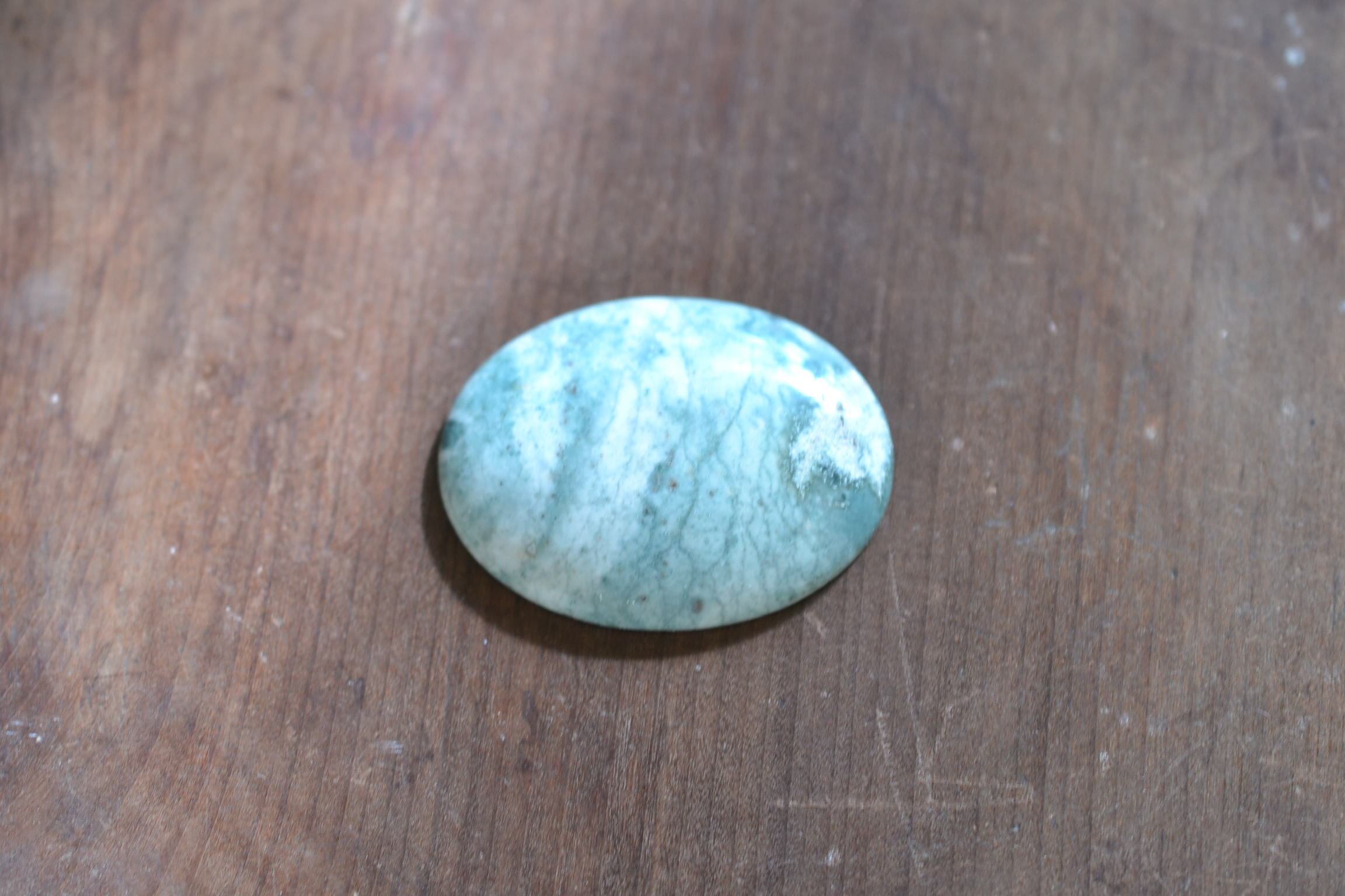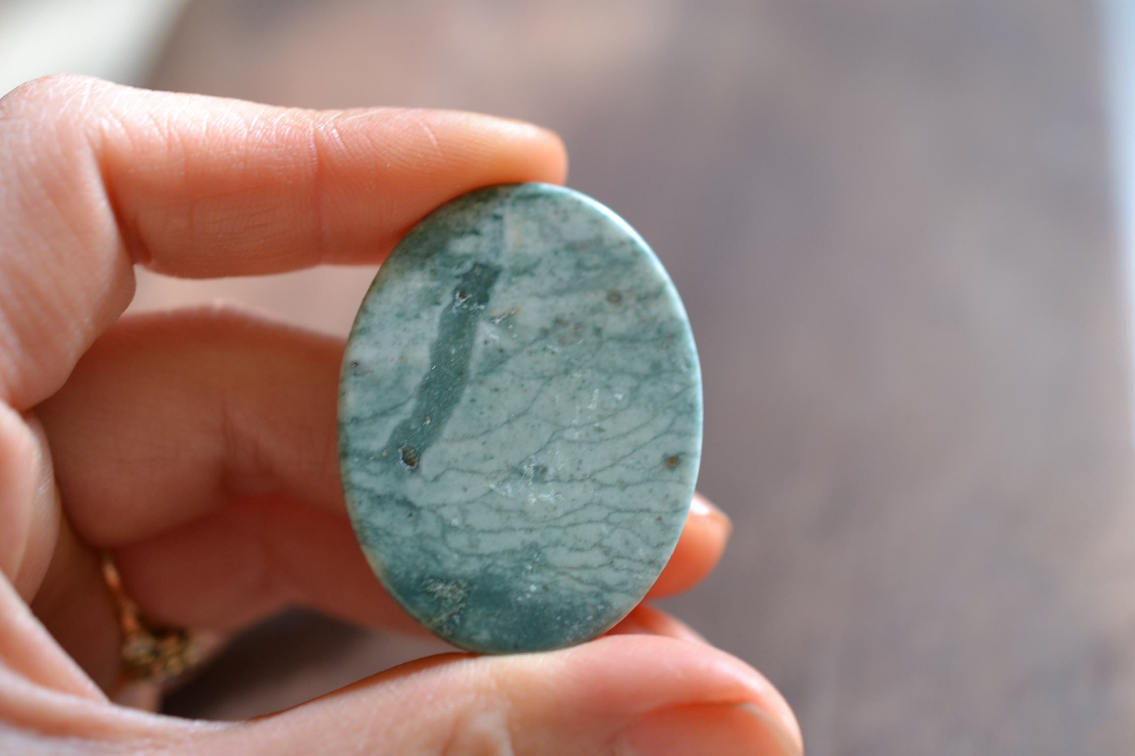 石の模様がなんともノスタルジック。グリーンの模様は他にはない自然のアートを魅せつけてくれる天然石ジャスパーです。綺麗に研磨された表面は手にしたくなる石のひとつ。