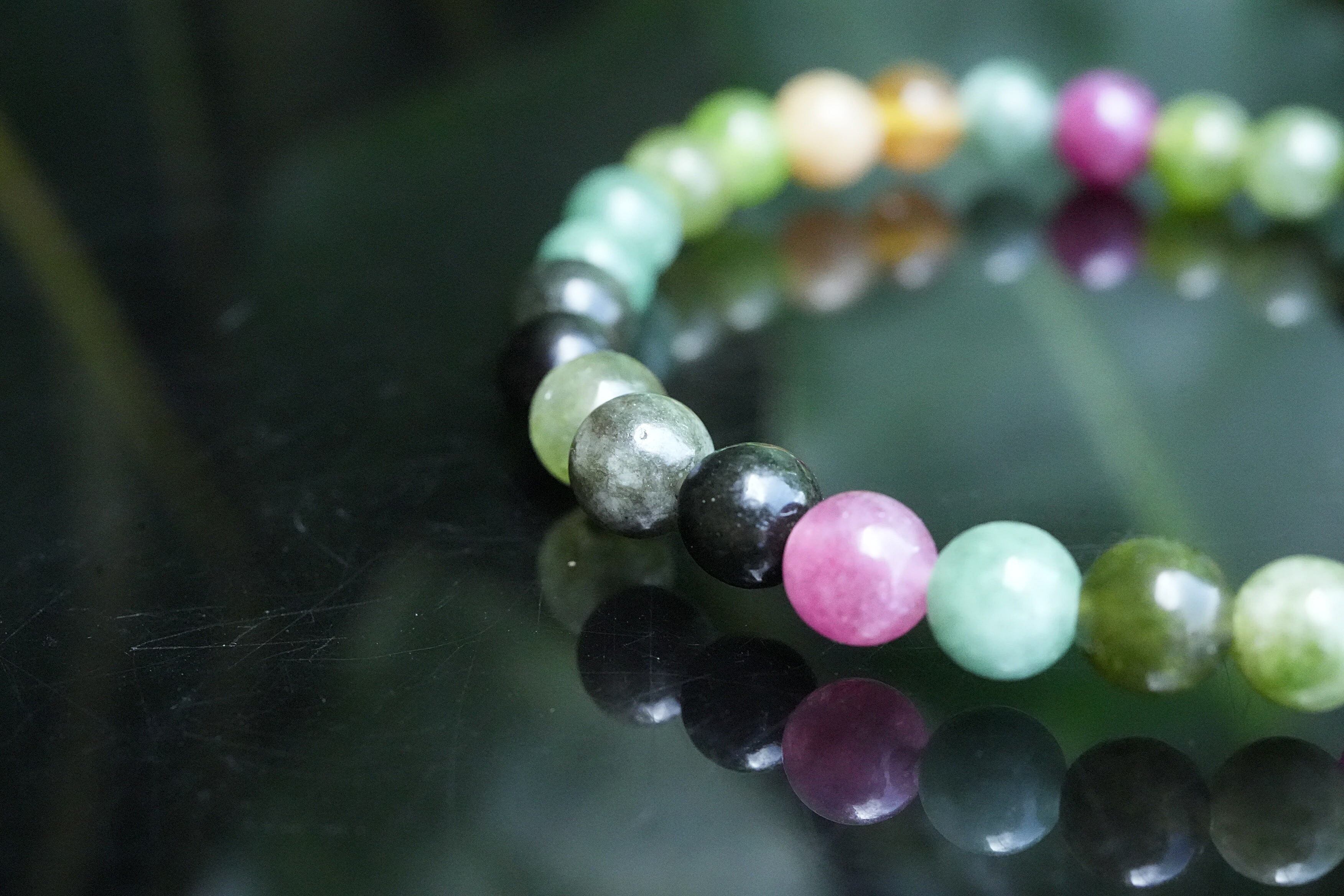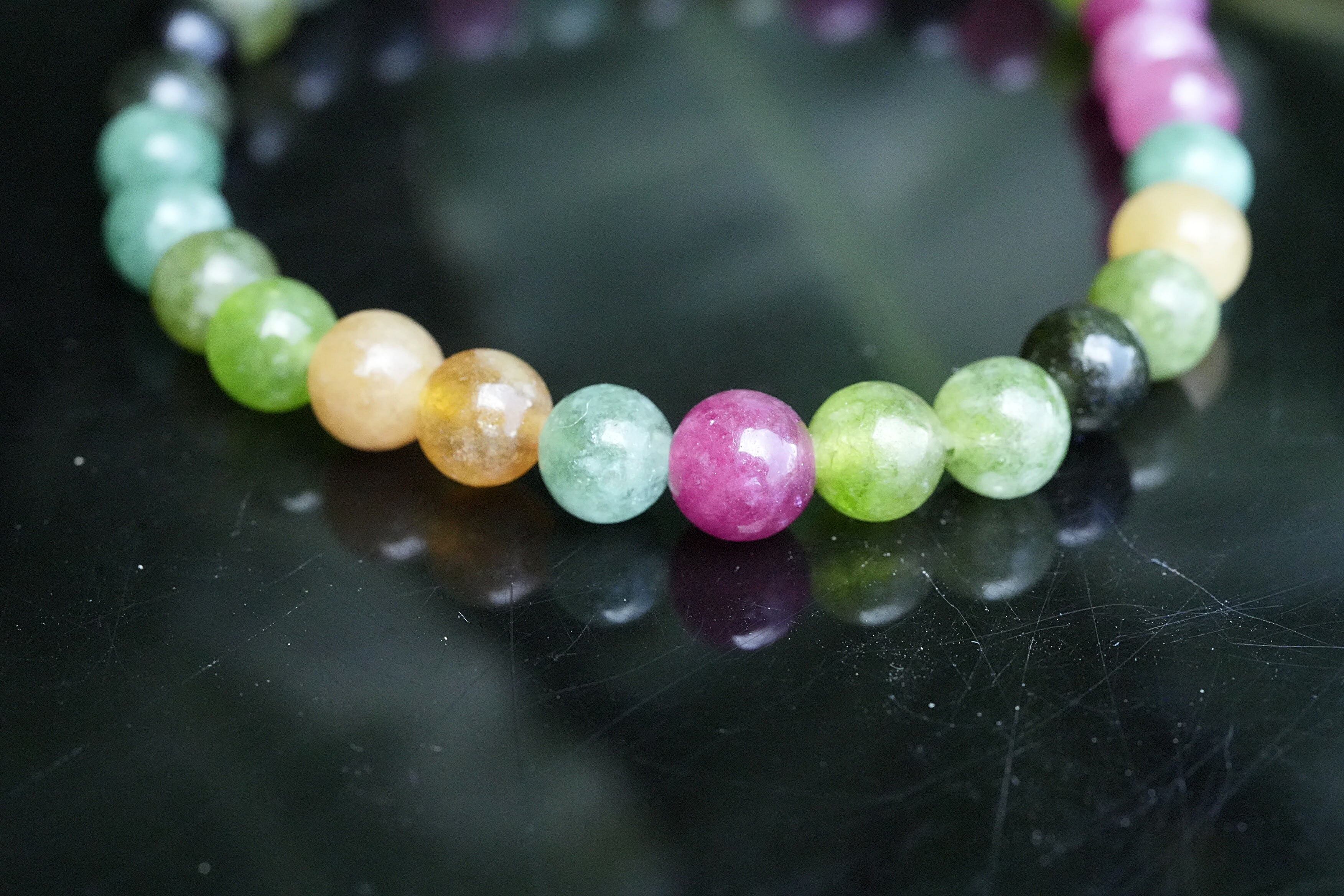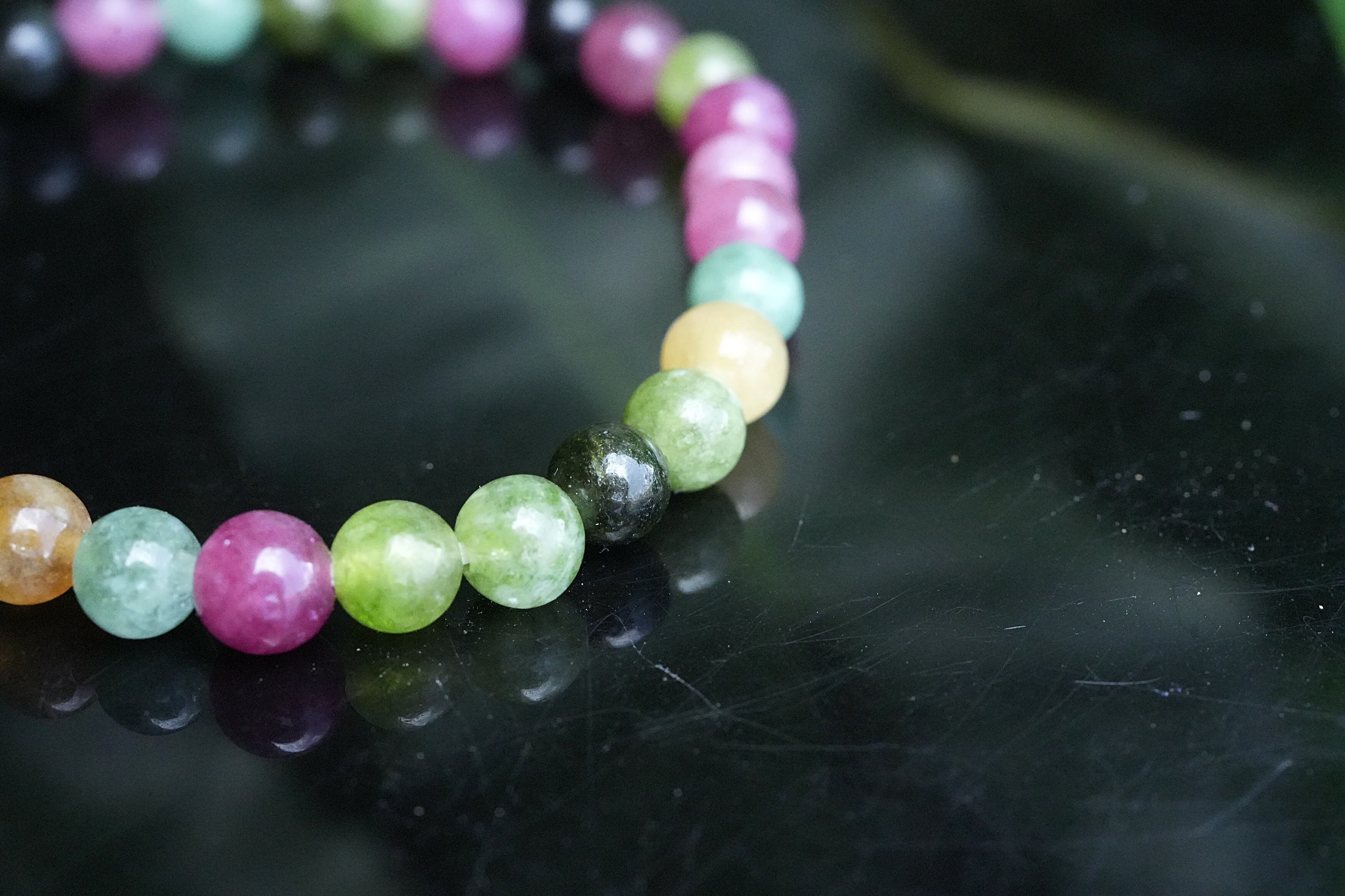 一粒一粒にトルマリン(ベリル鉱物)の色鮮やかな色合いを見ることができます。