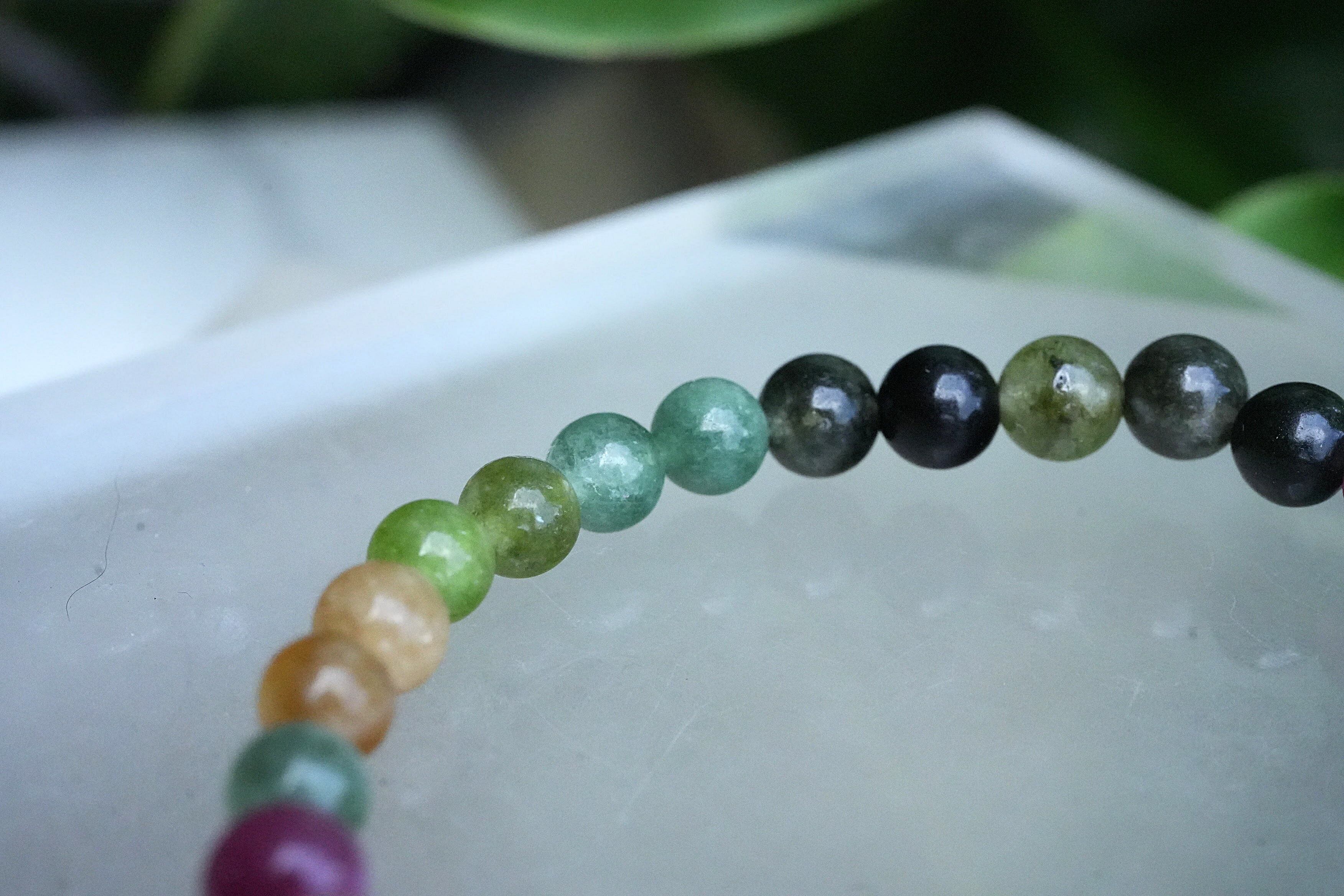 カラフルな色合いのトルマリンビーズを多めに仕込んだ