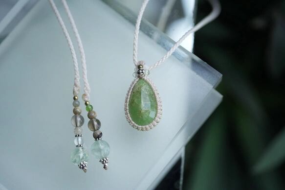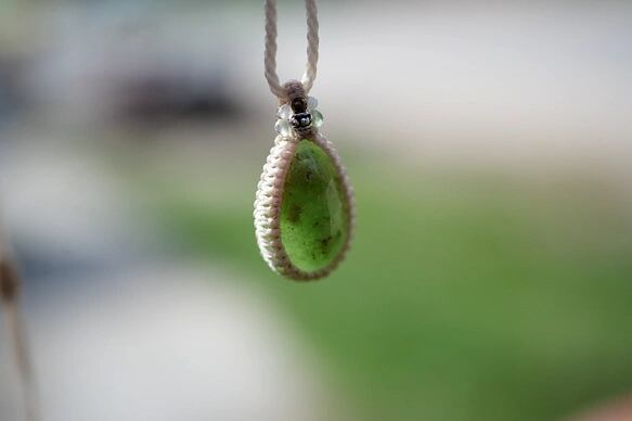 ◆このたびはナチュラルホワイト色の蝋引き糸を使用しマクラメ編み装飾を施しました