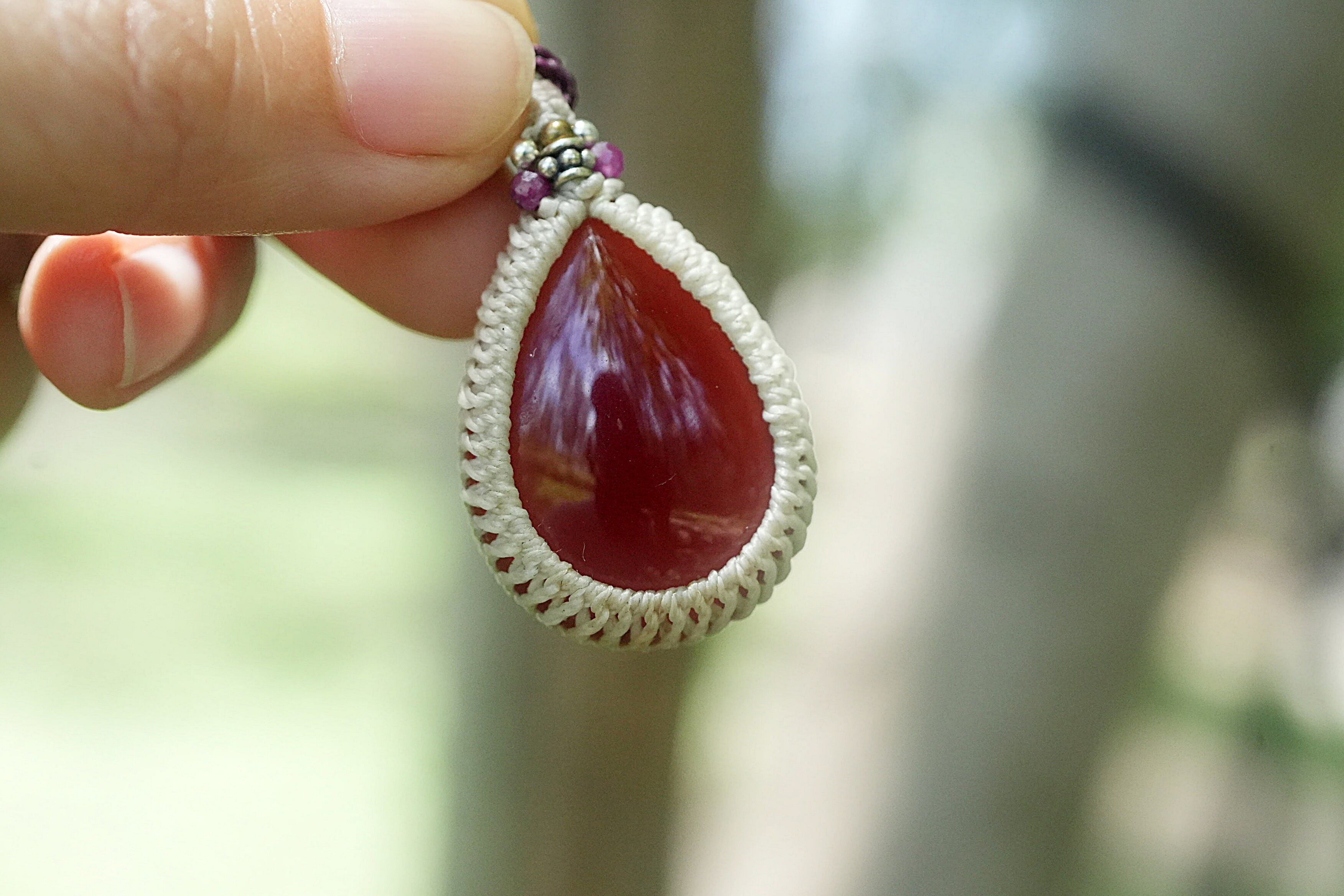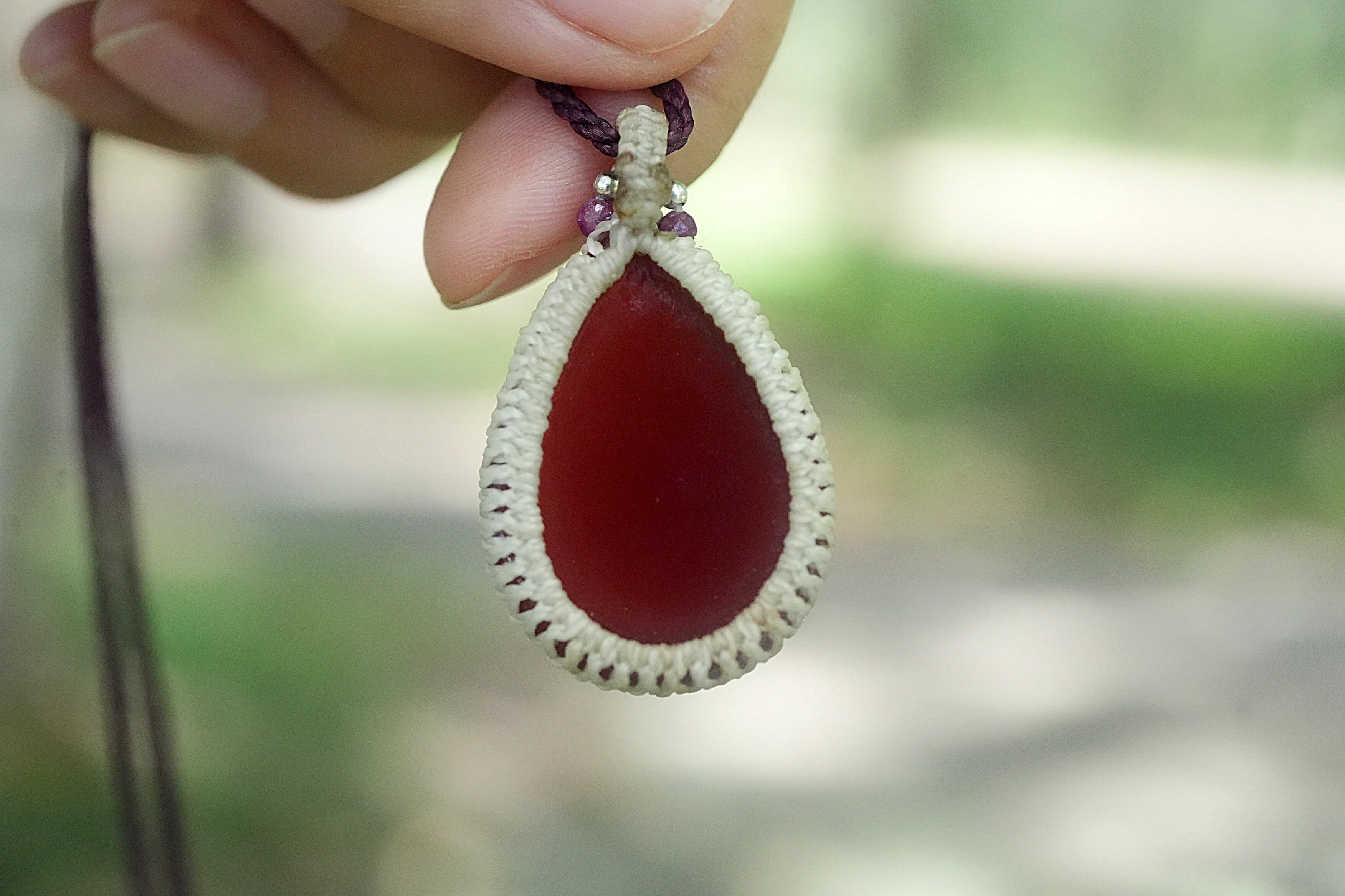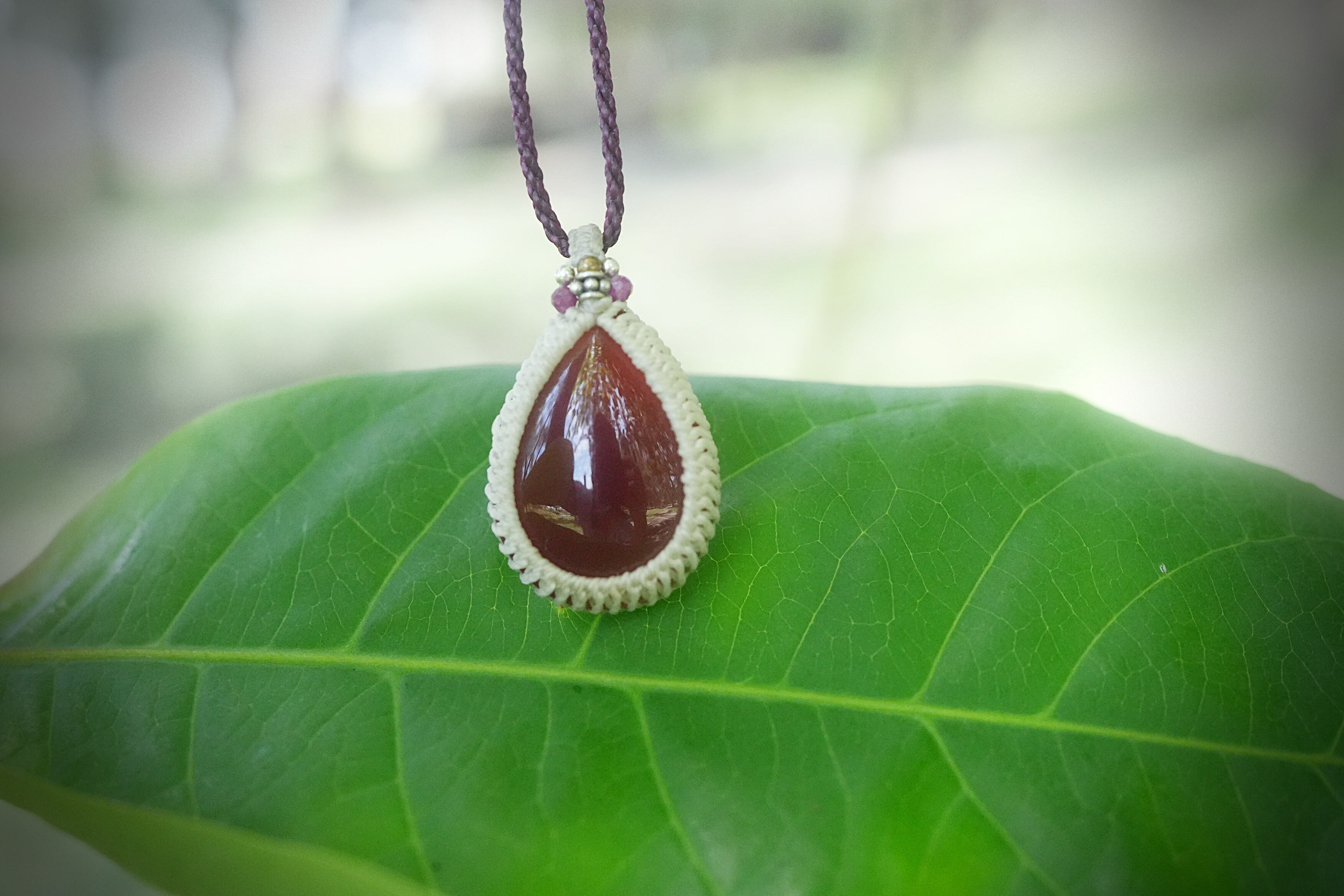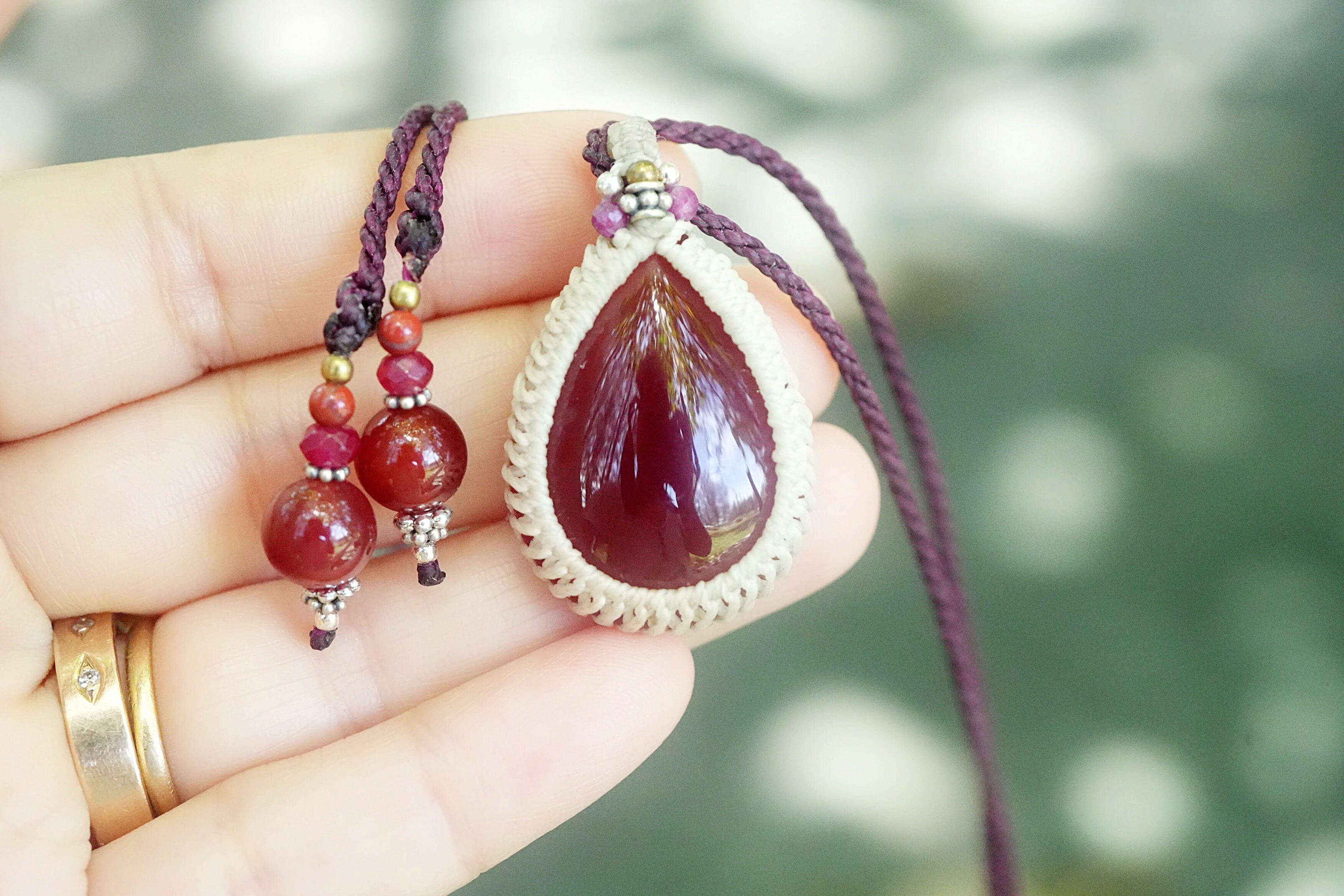 熟れたさくらんぼ色★カーネリアン マクラメネックレス1772