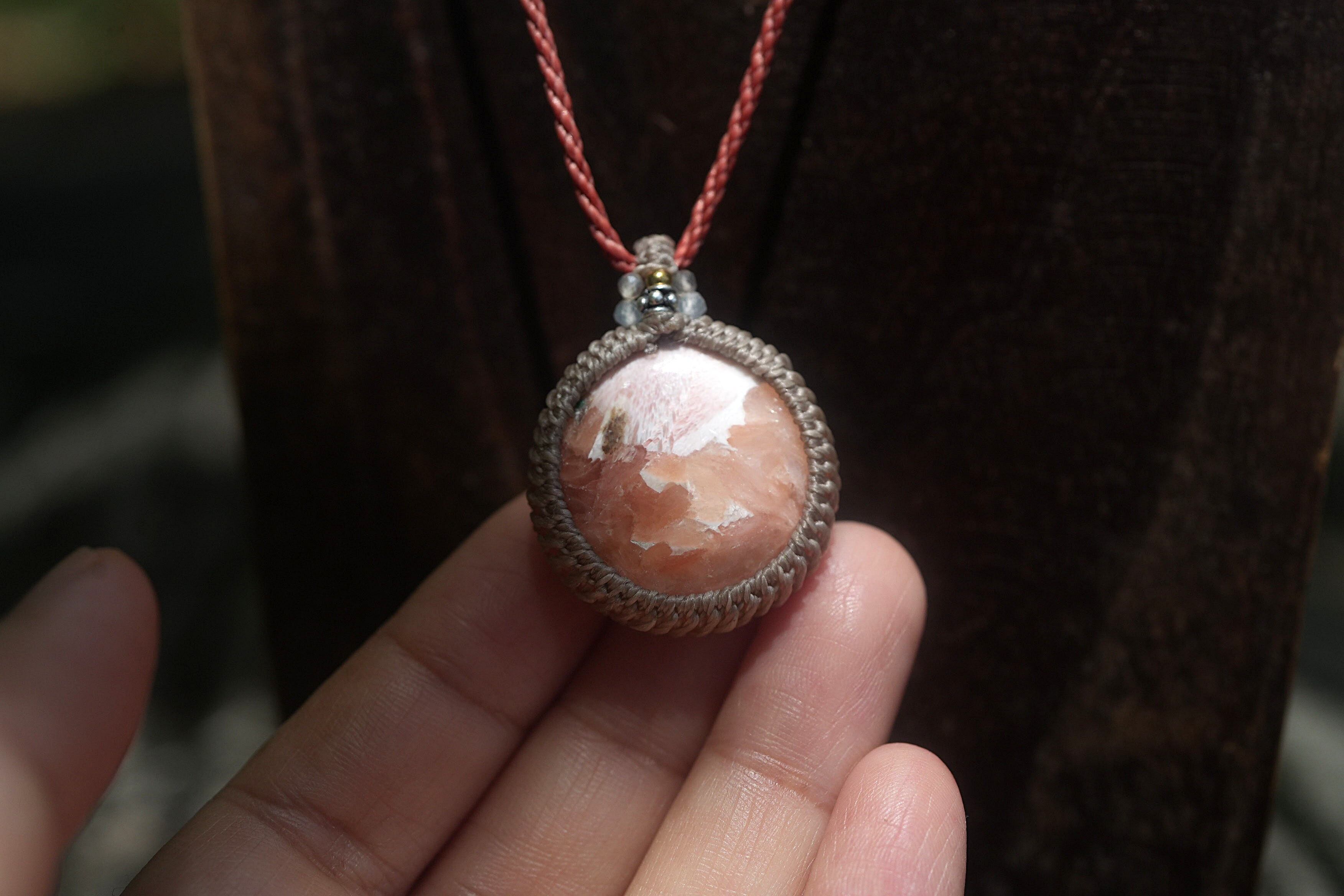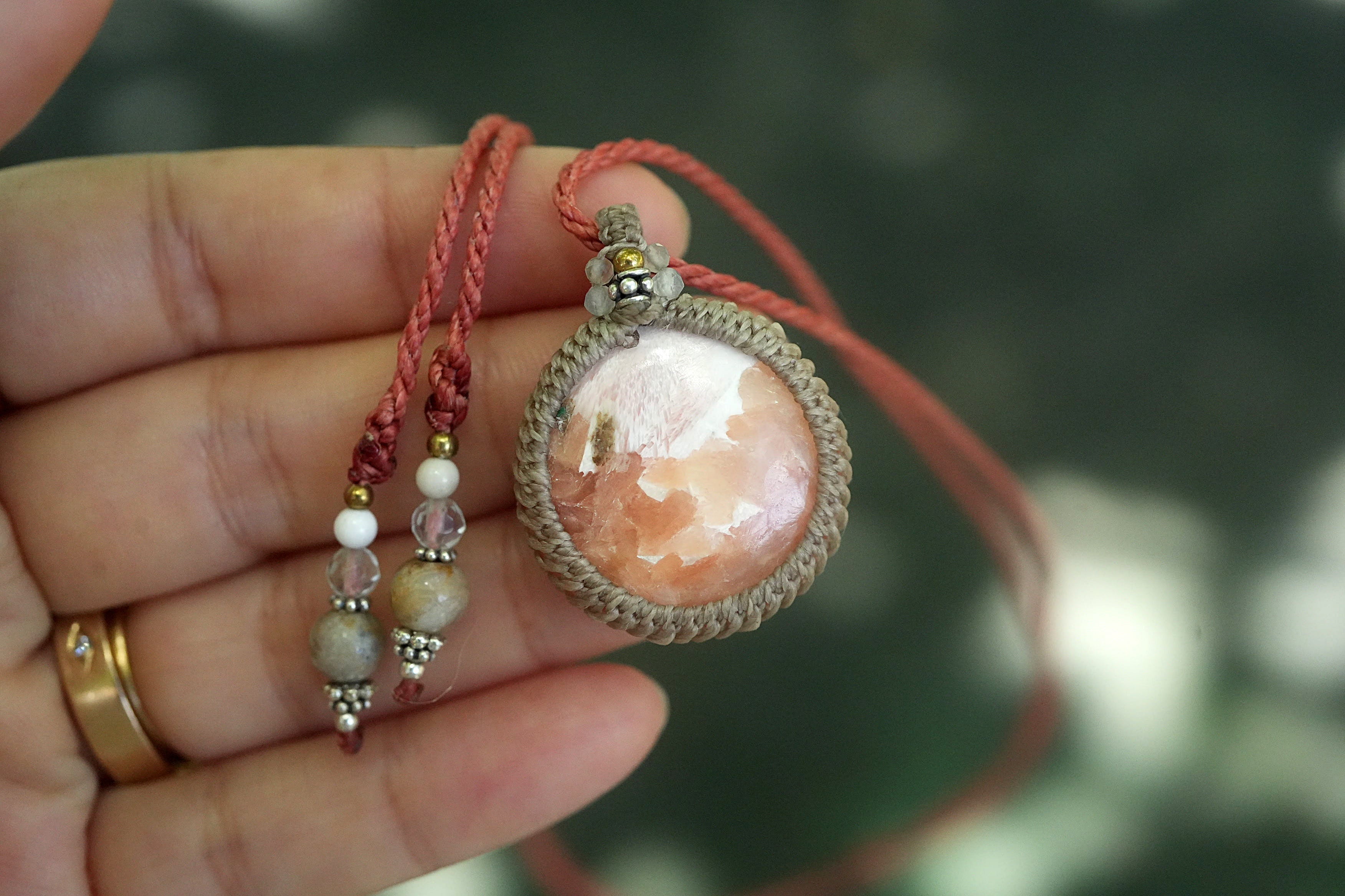 優しさオレンジ★スコレサイト マクラメネックレス1774
