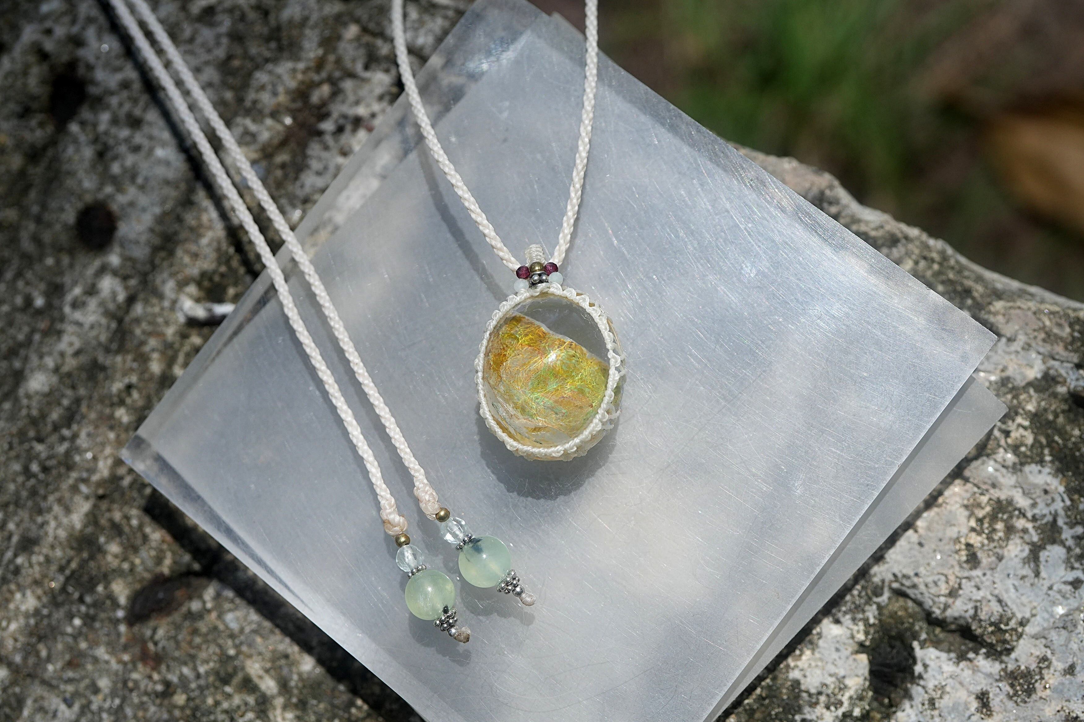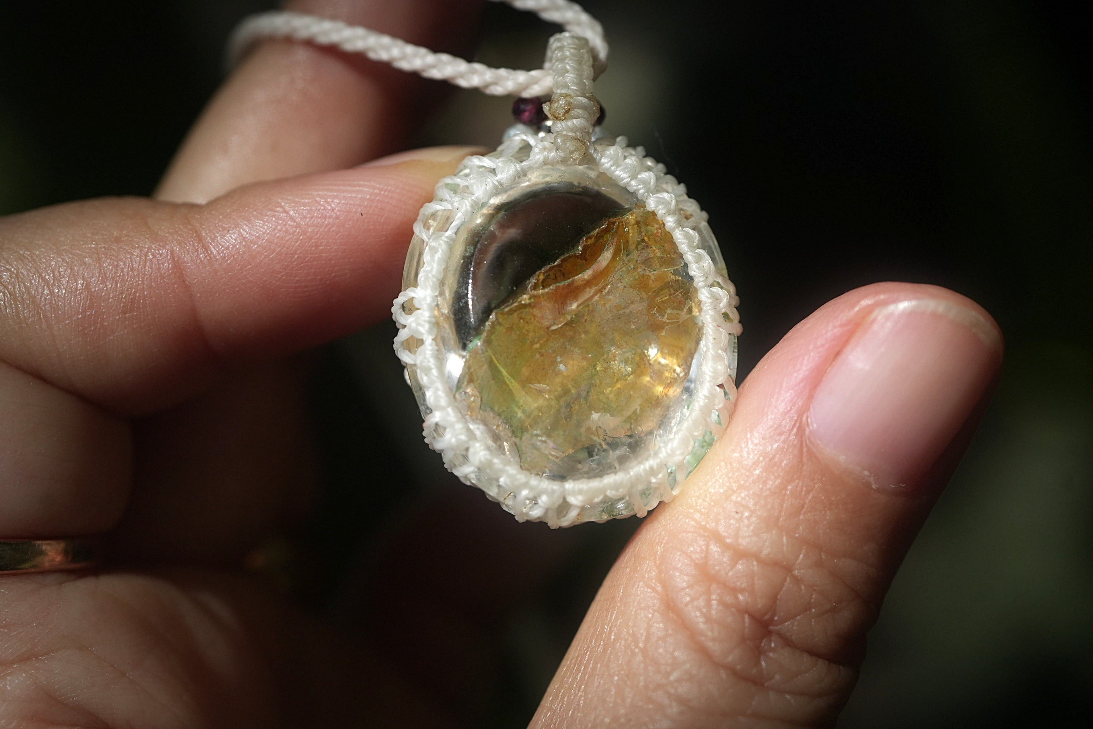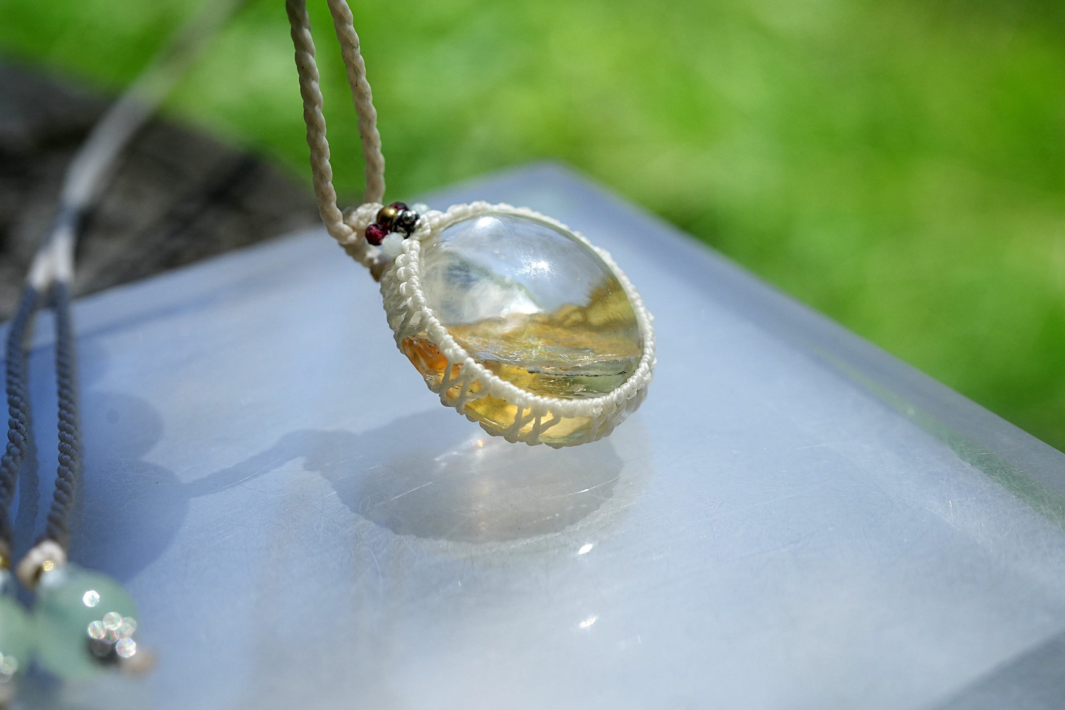 レア★黄色の炎 ガーデンクォーツ マクラメネックレス1777