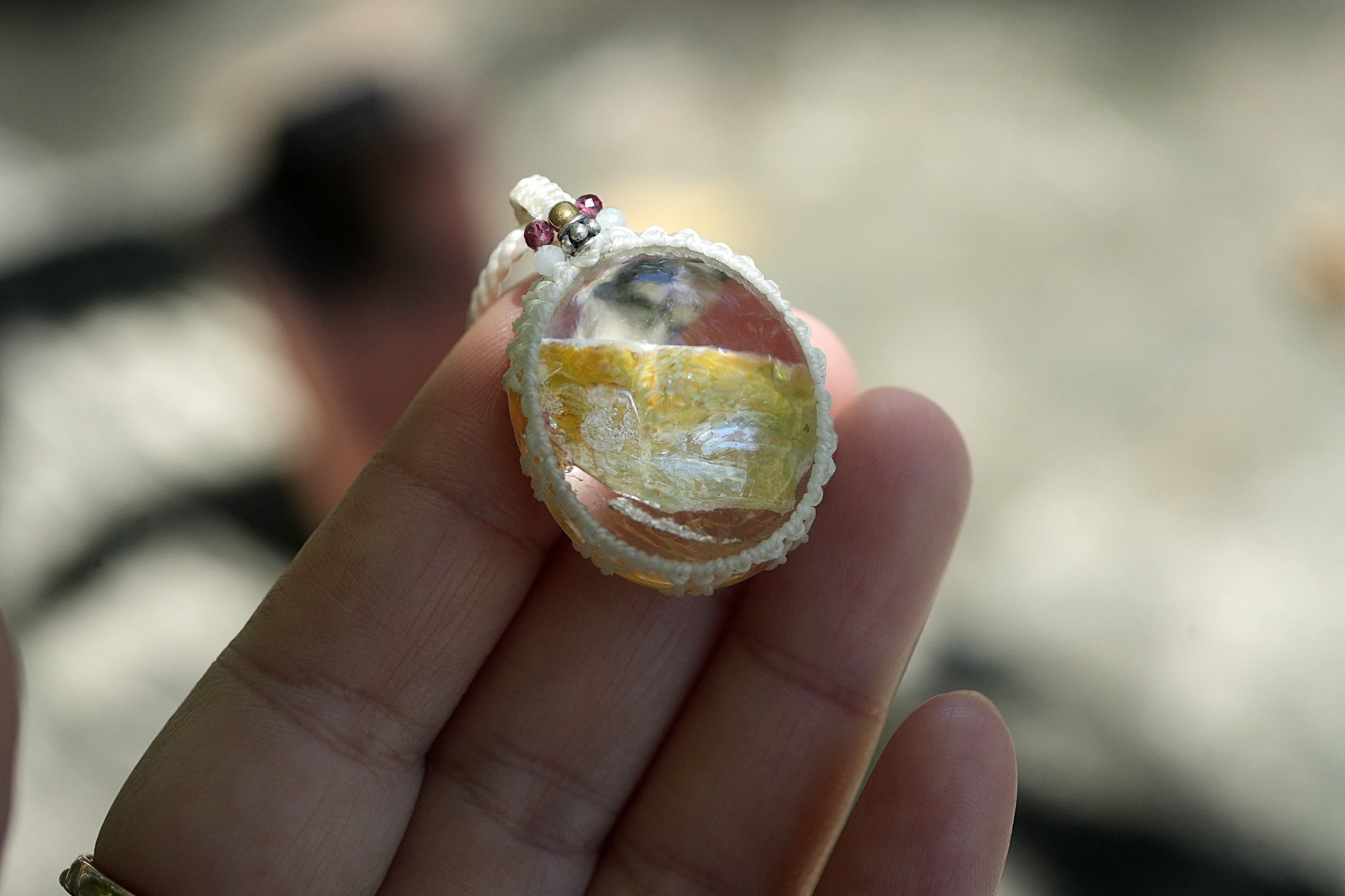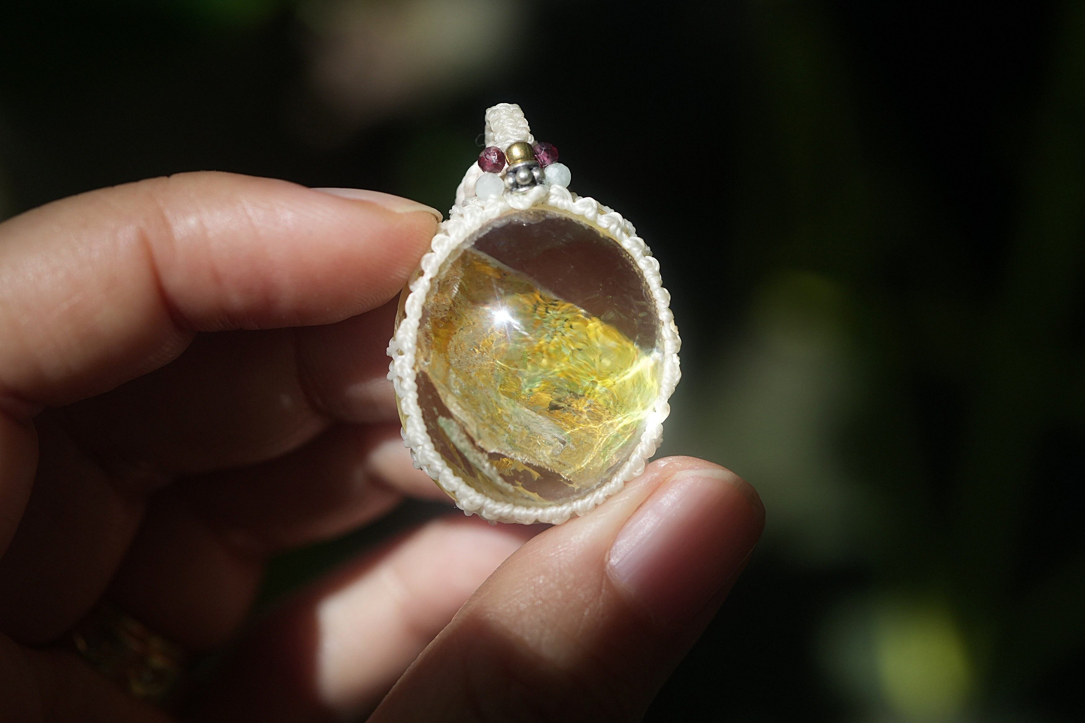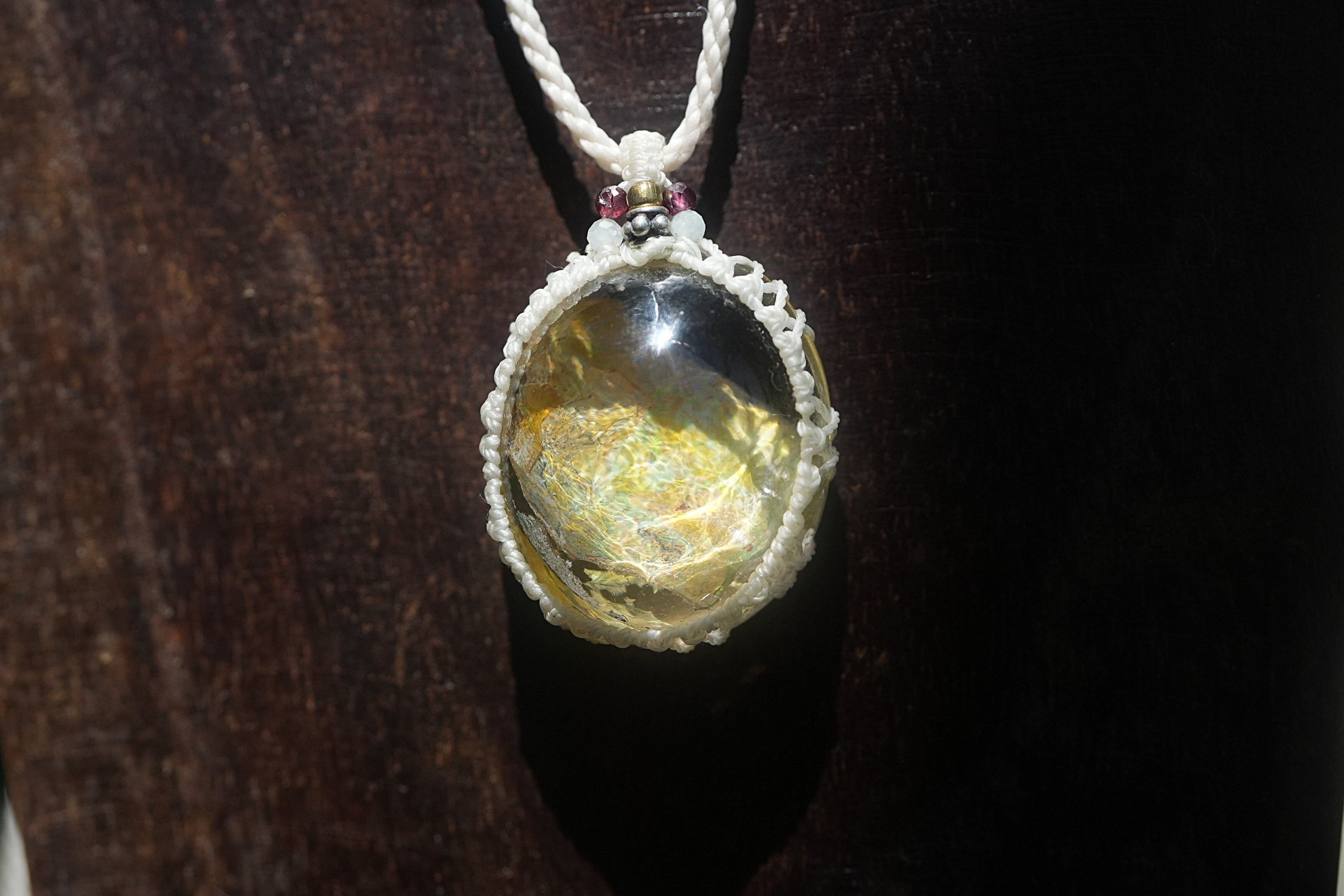 レア★黄色の炎 ガーデンクォーツ マクラメネックレス1777