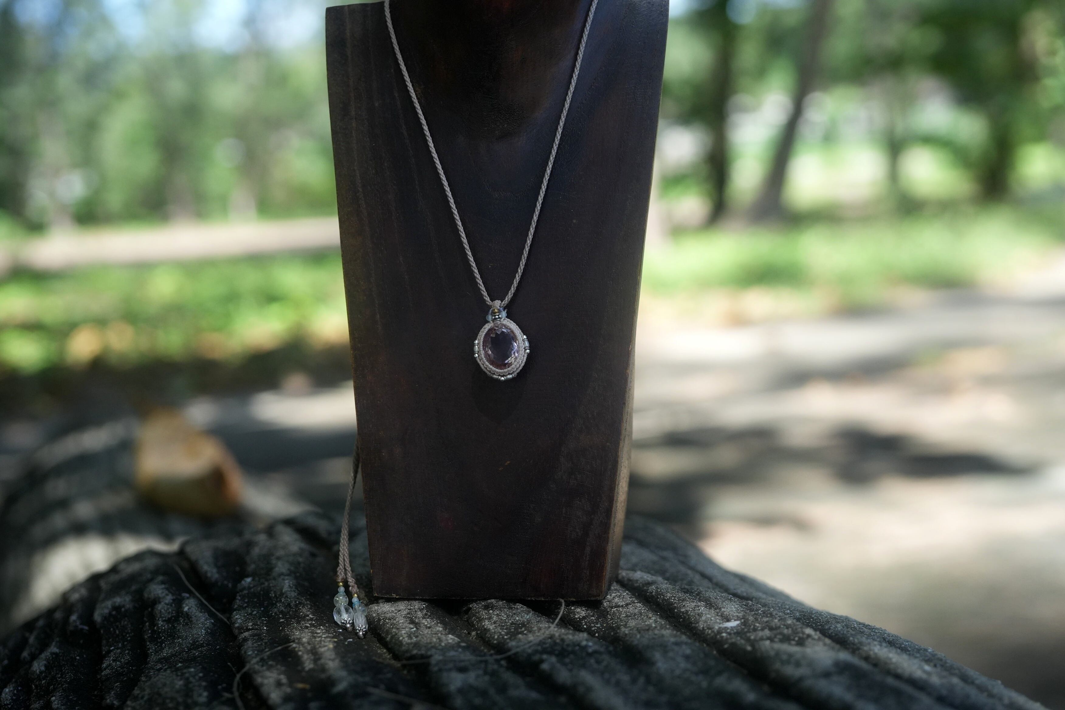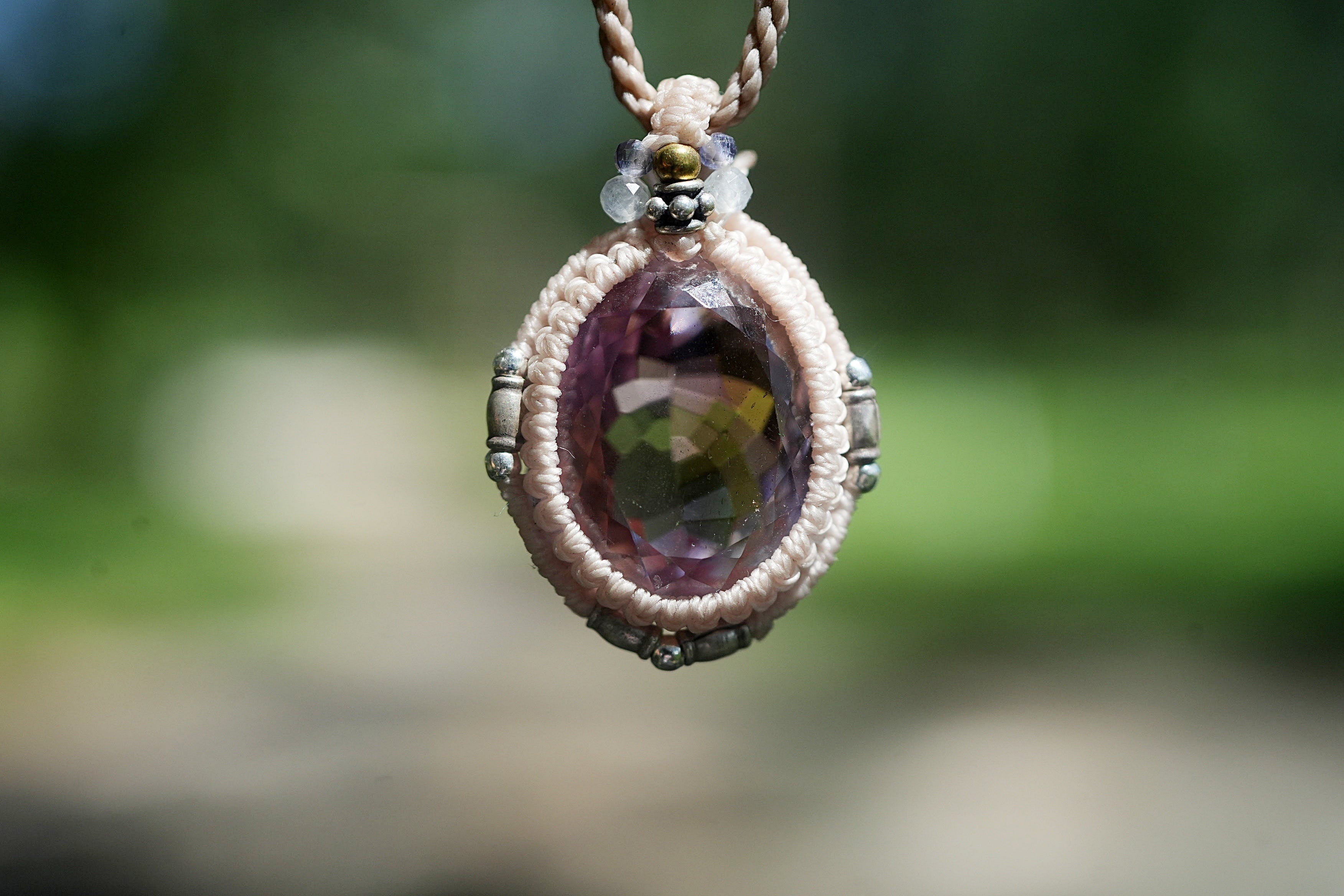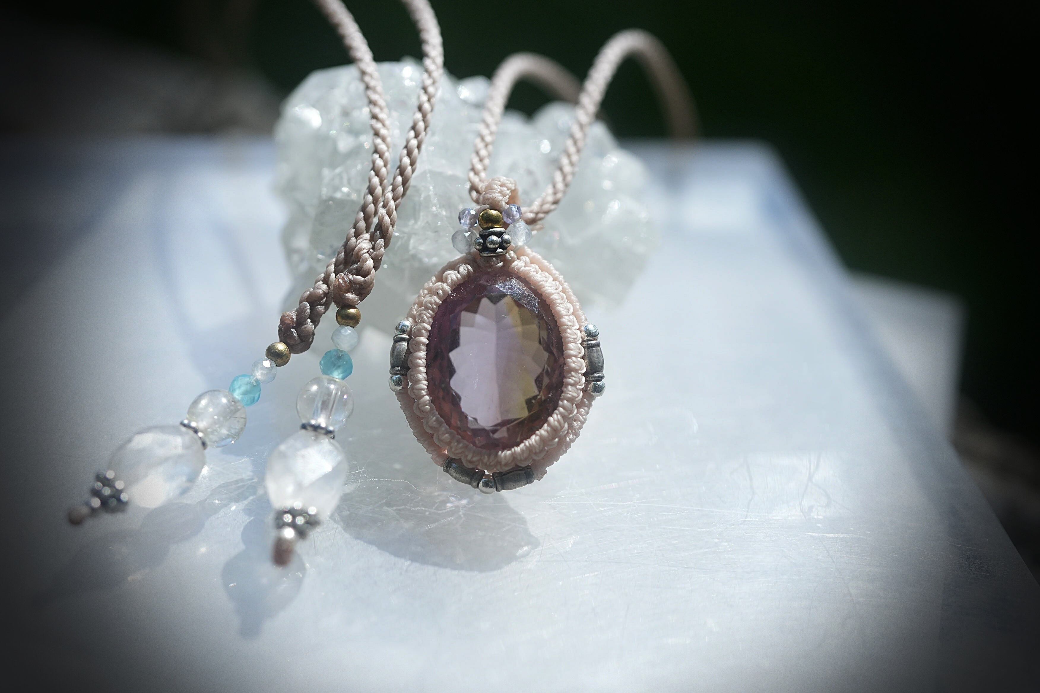このたびはそんなアメトリンをマクラメ編みネックレスとして