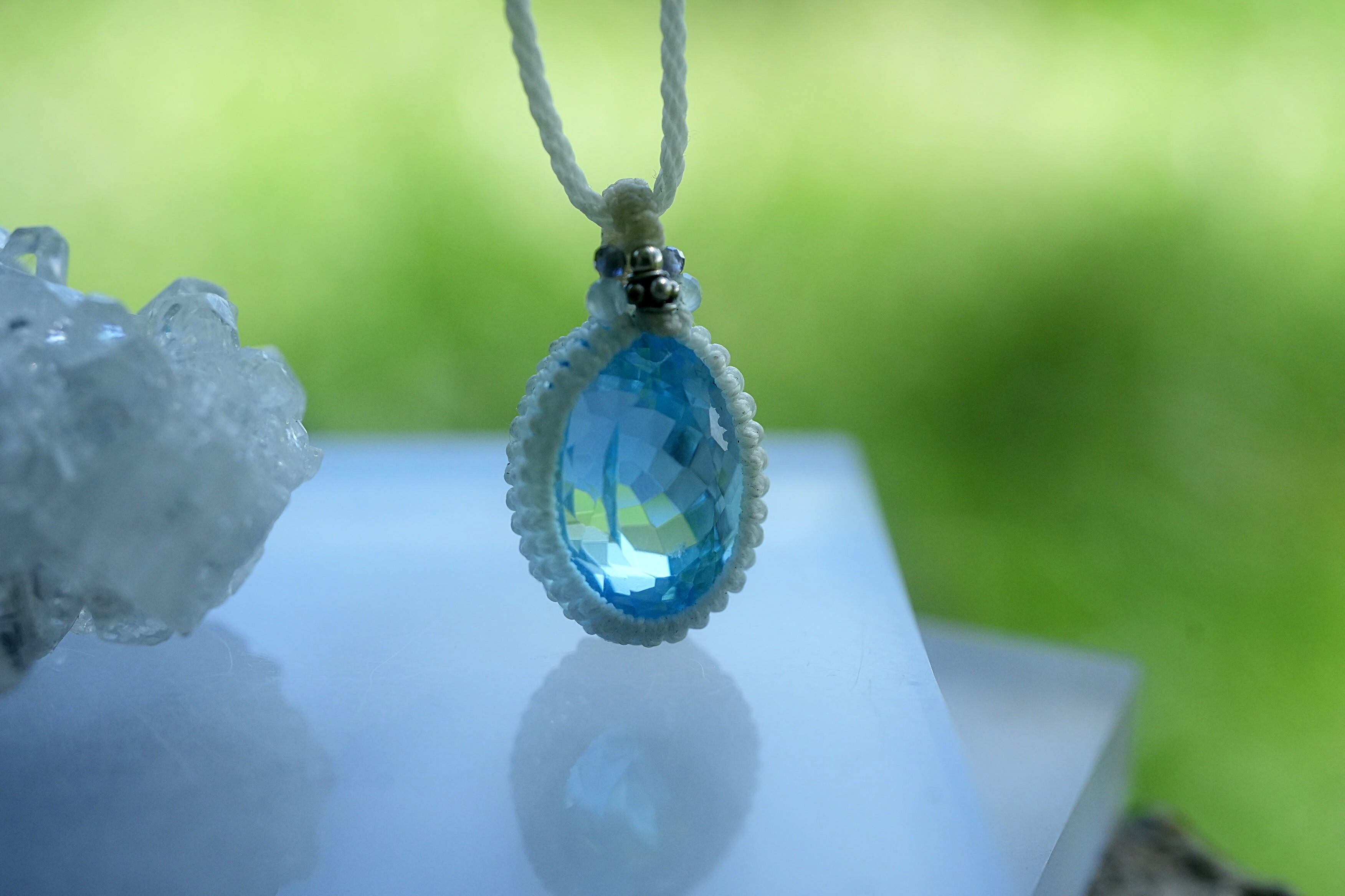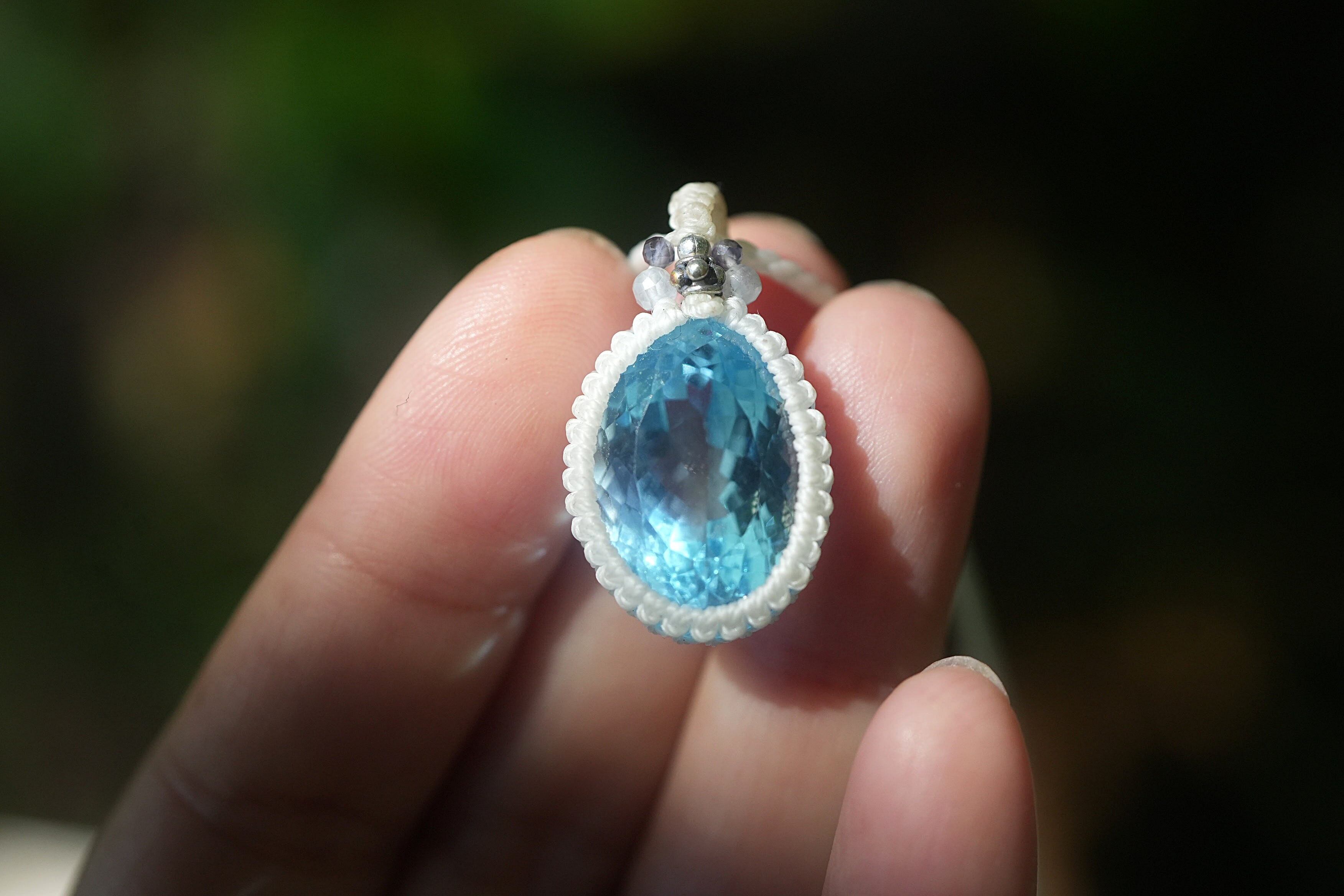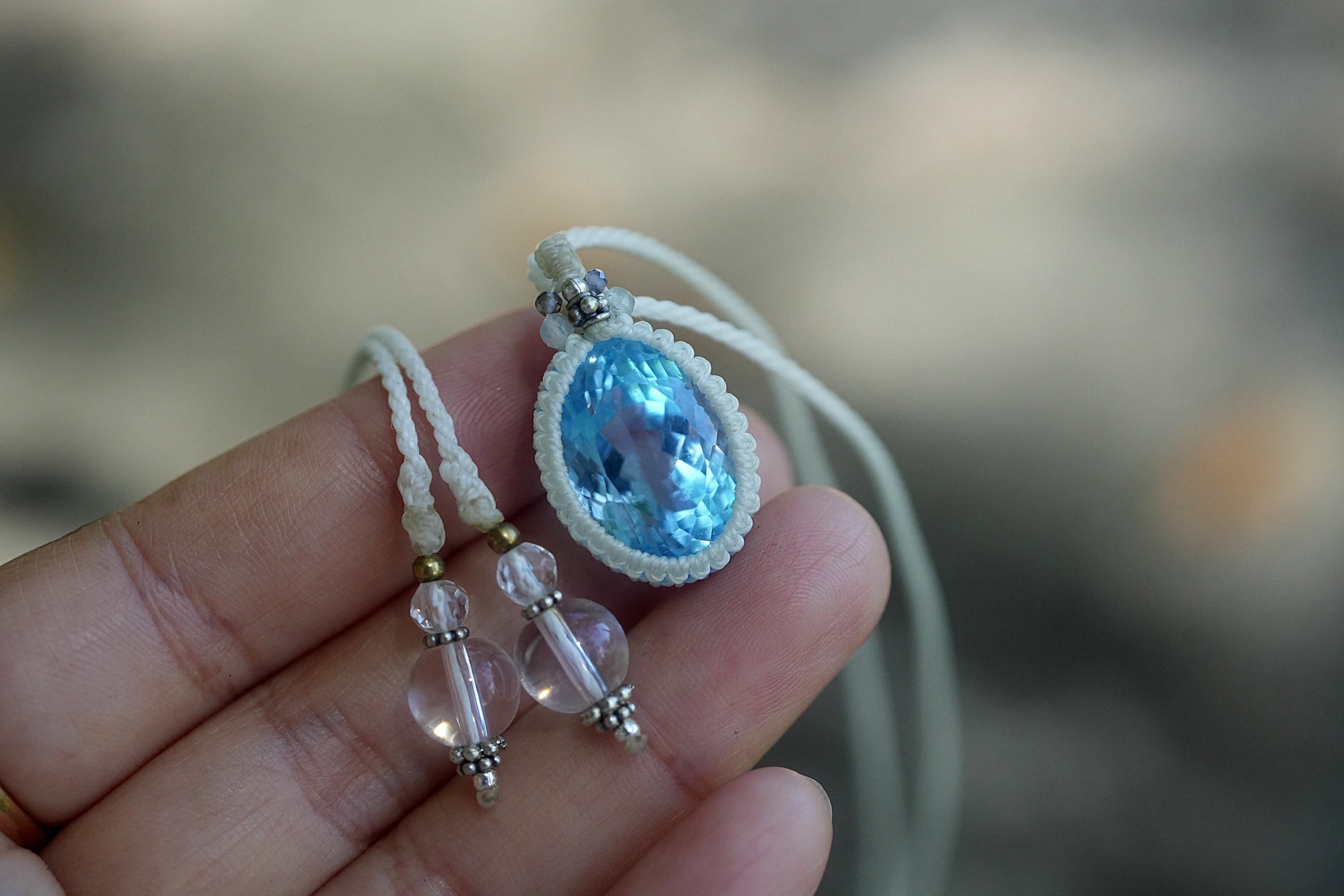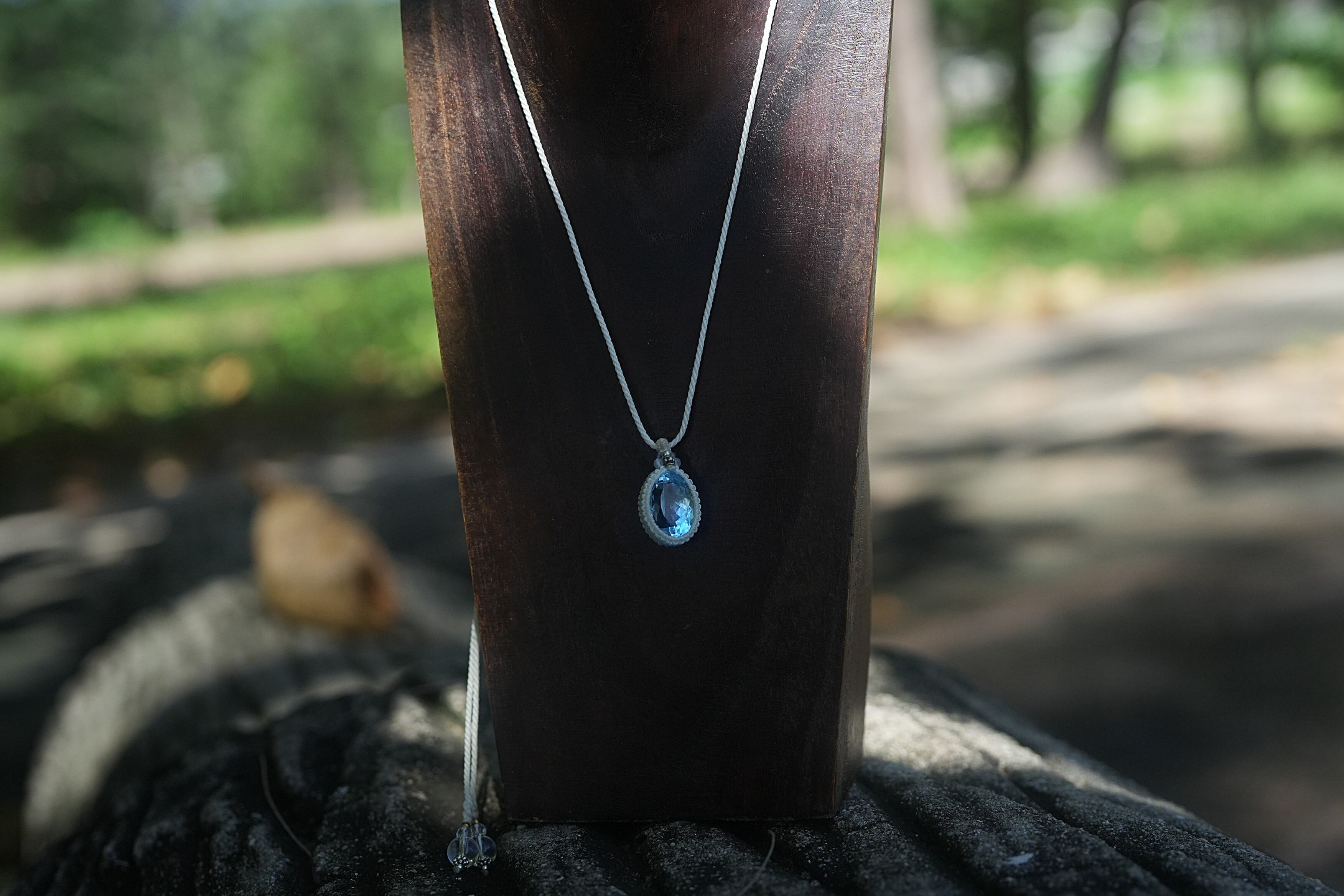 28ct宝石★ブルートパーズ マクラメネックレス1783