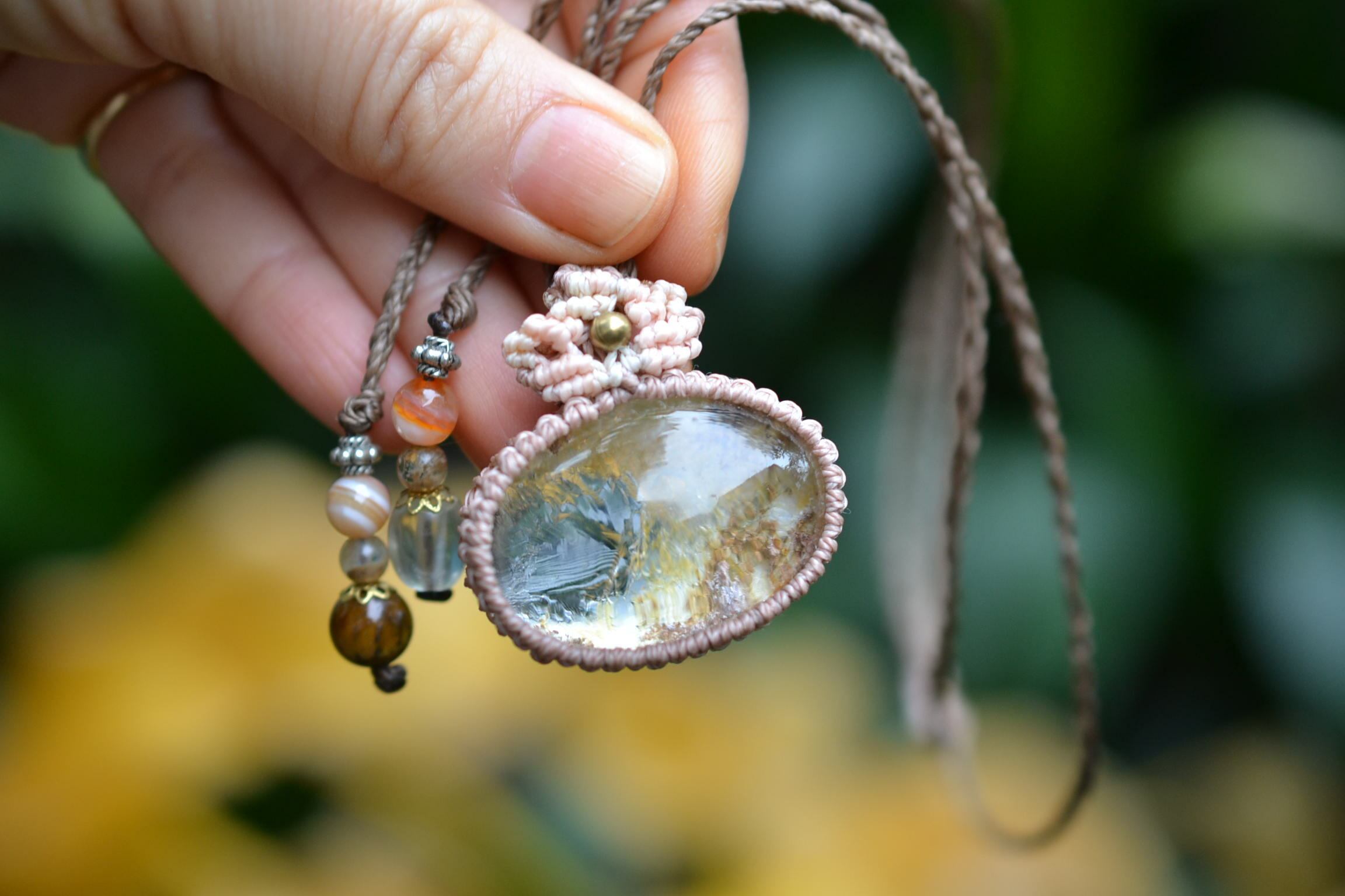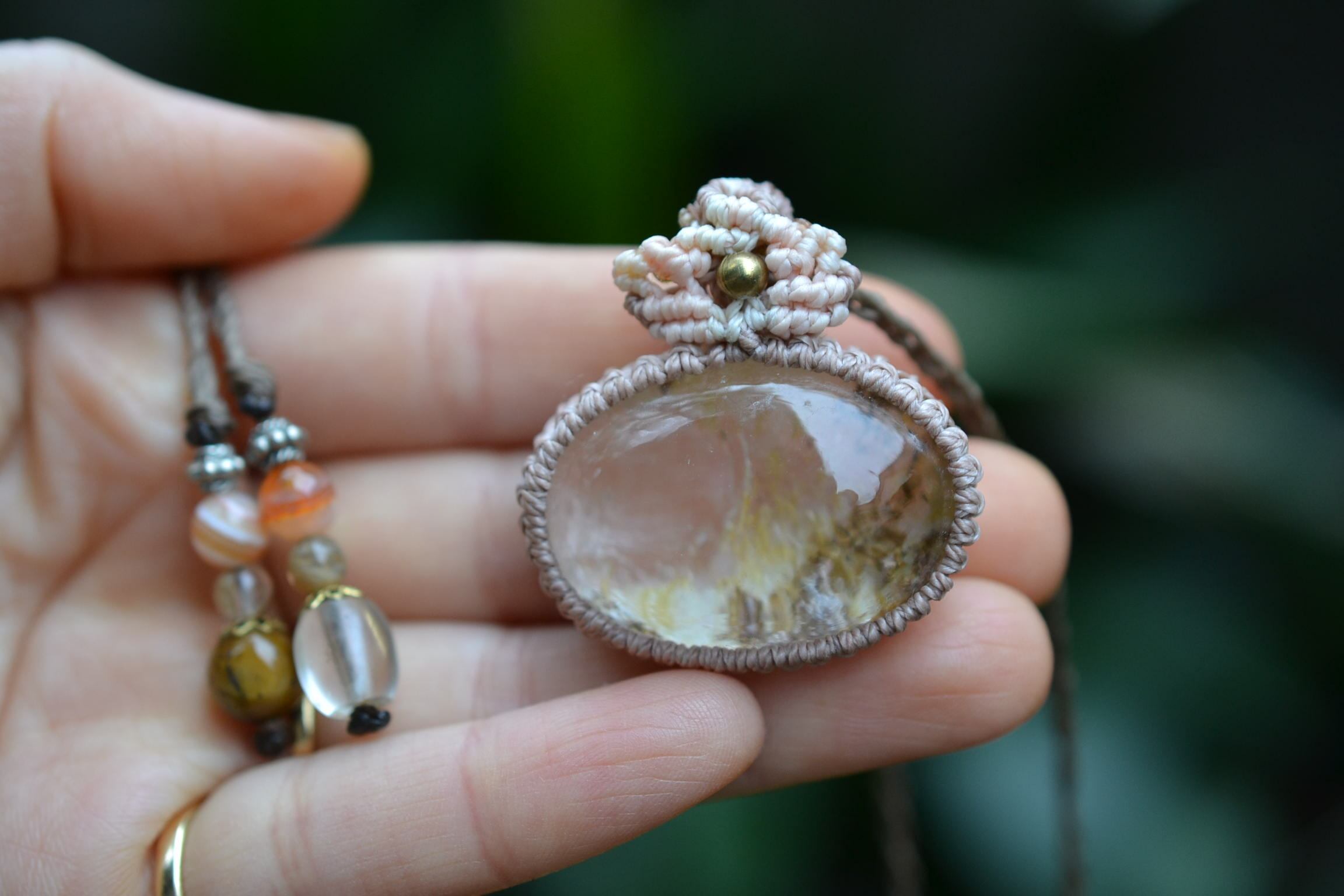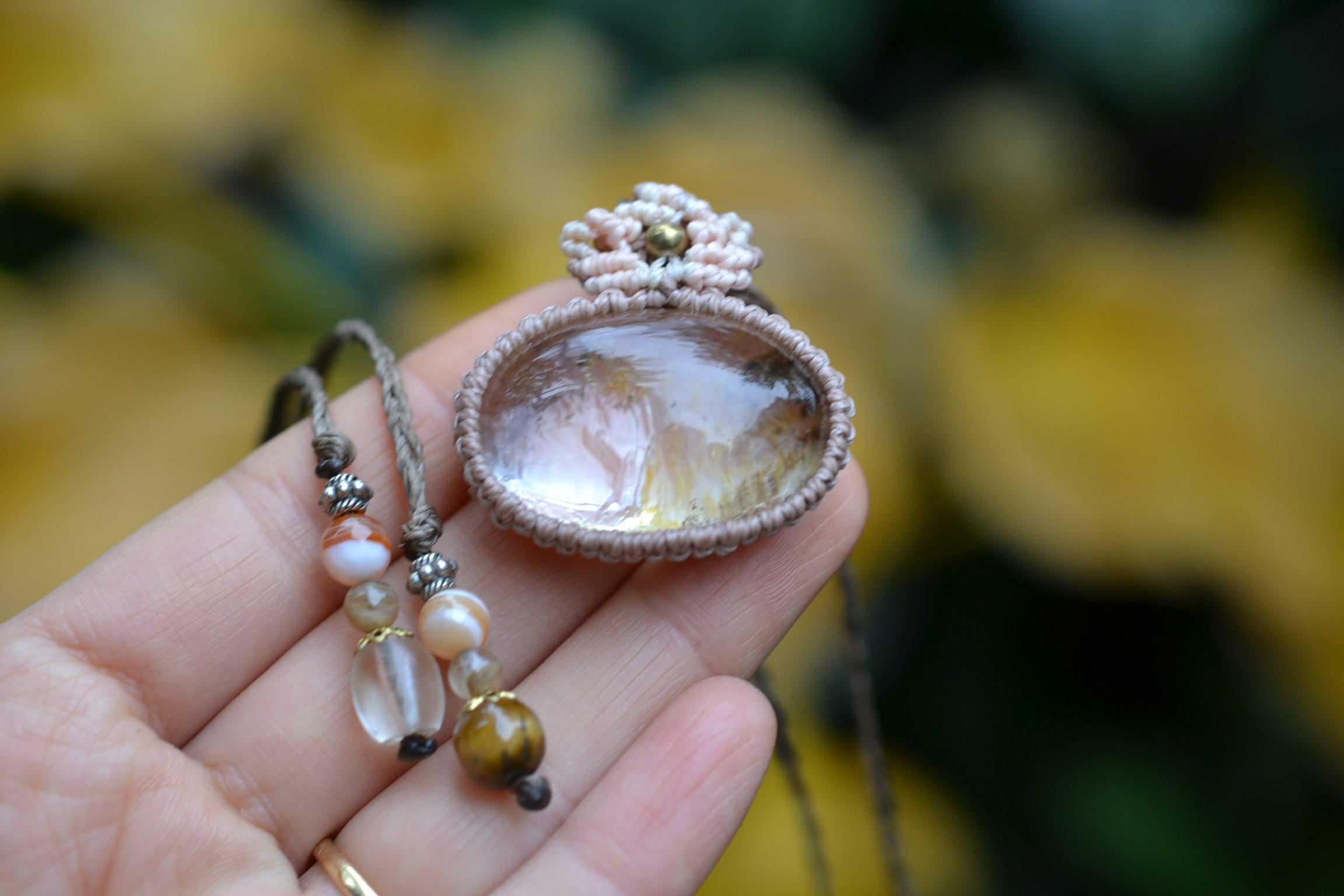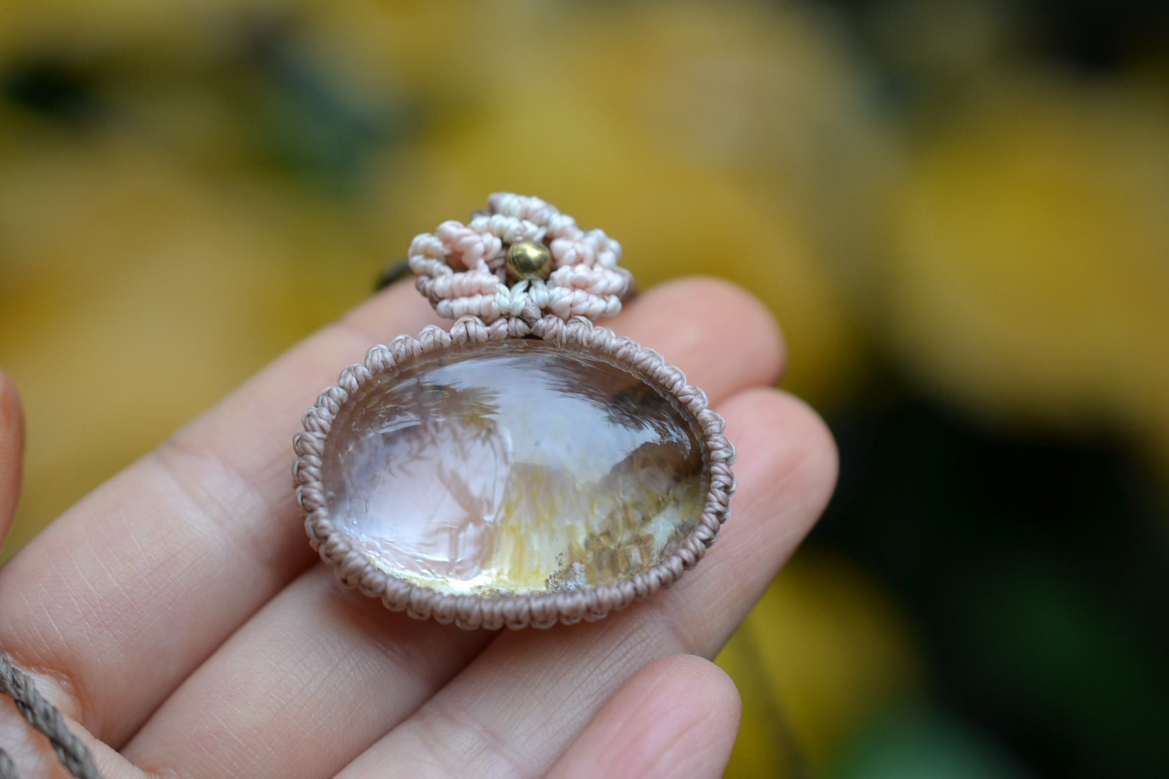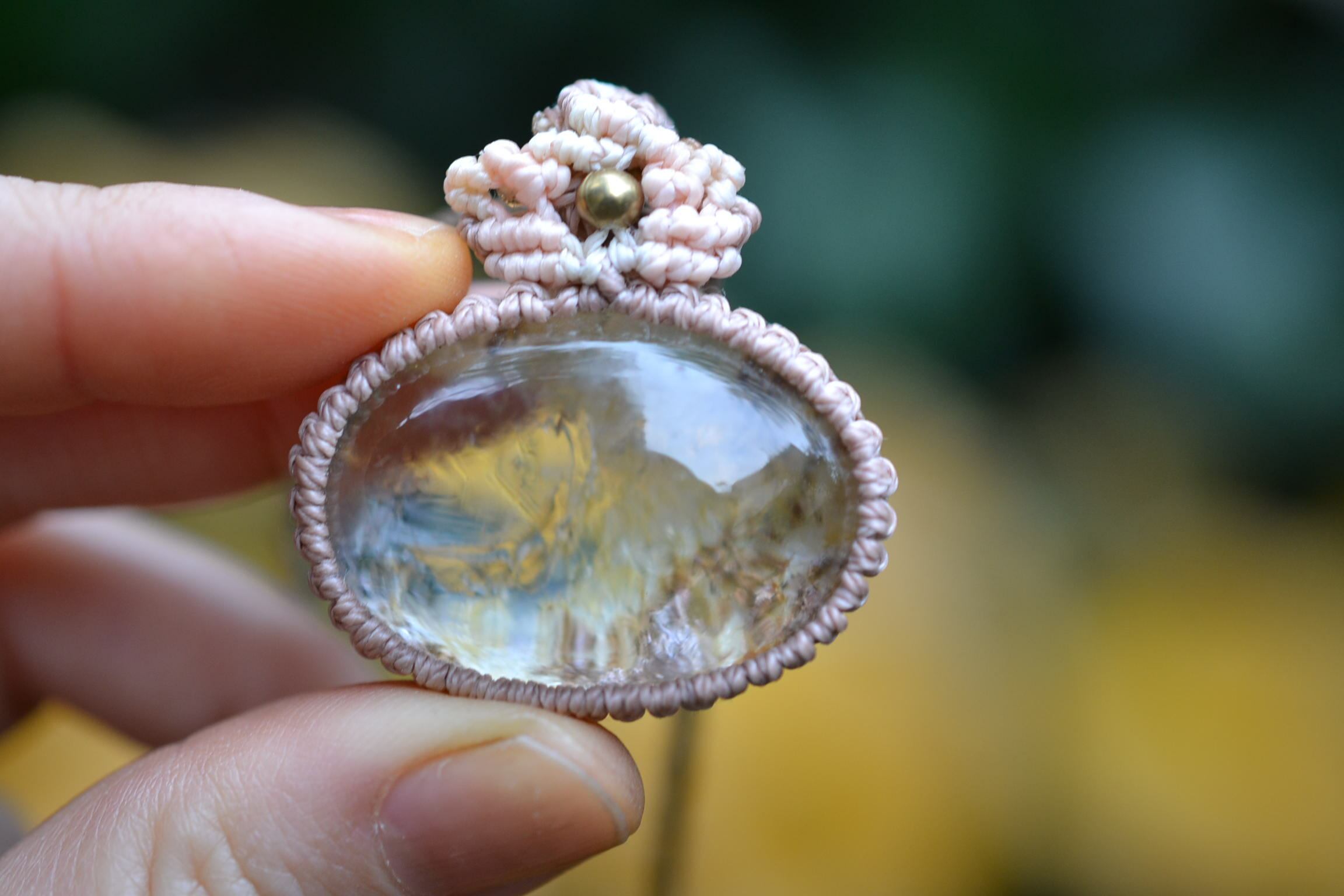 水晶と月の世界★大粒ガーデンクォーツ マクラメペンダント