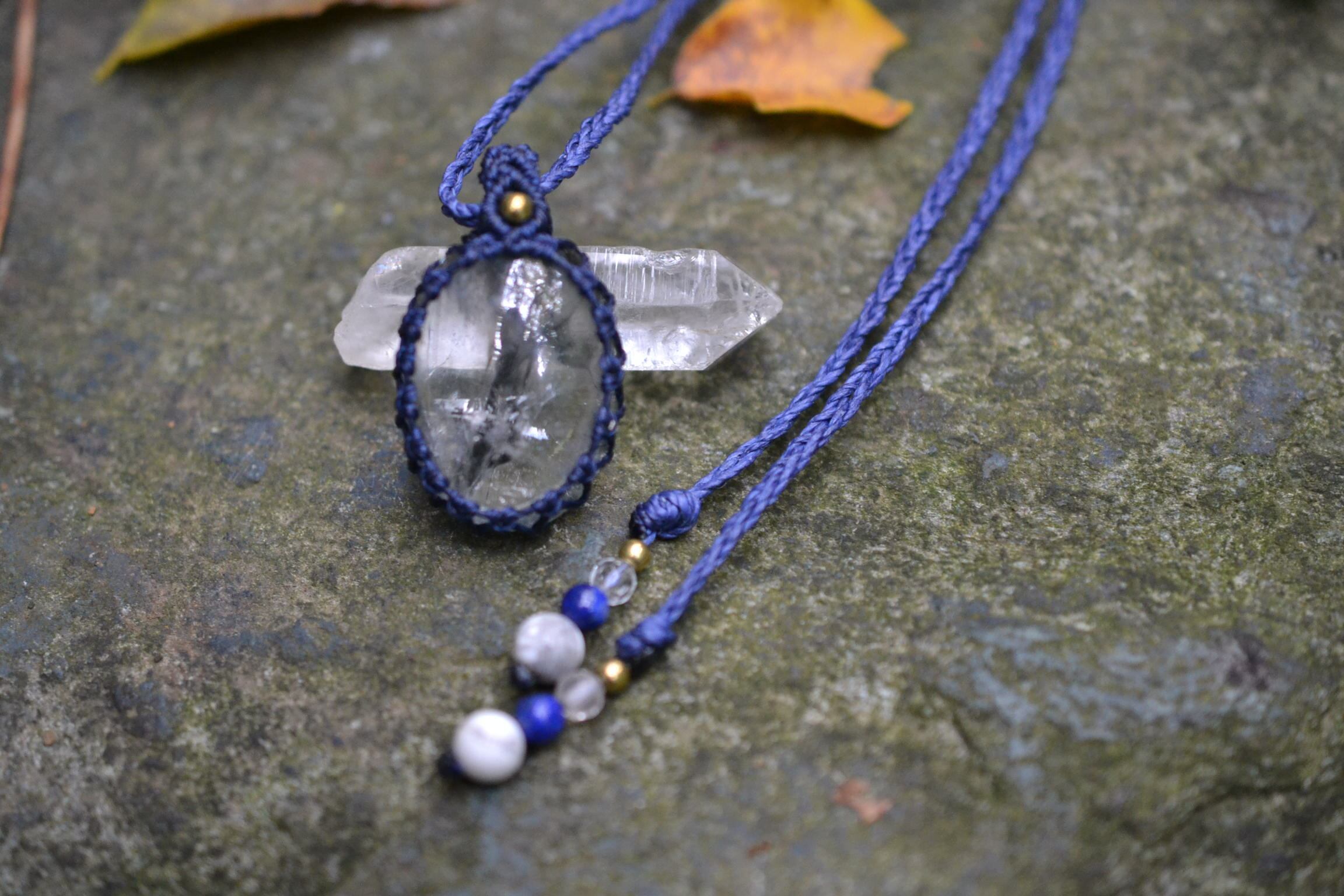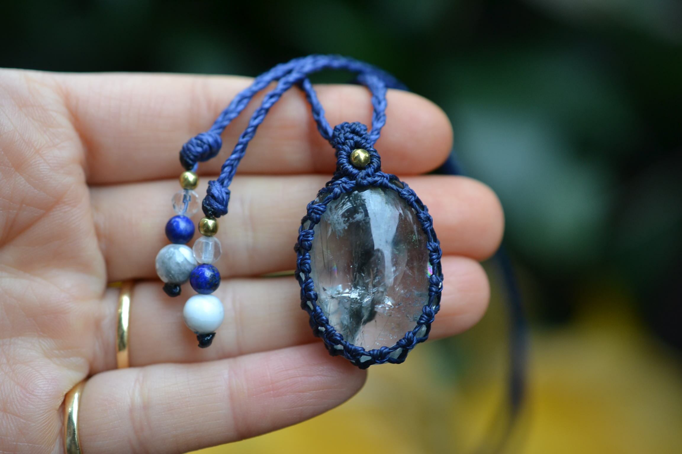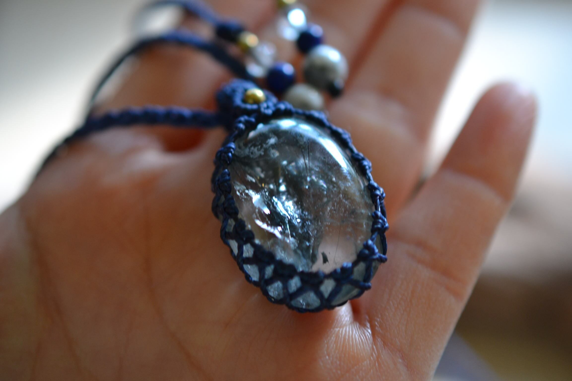 クローライト&透明度100%★ガーデンククォーツ マクラメペンダントgarm094